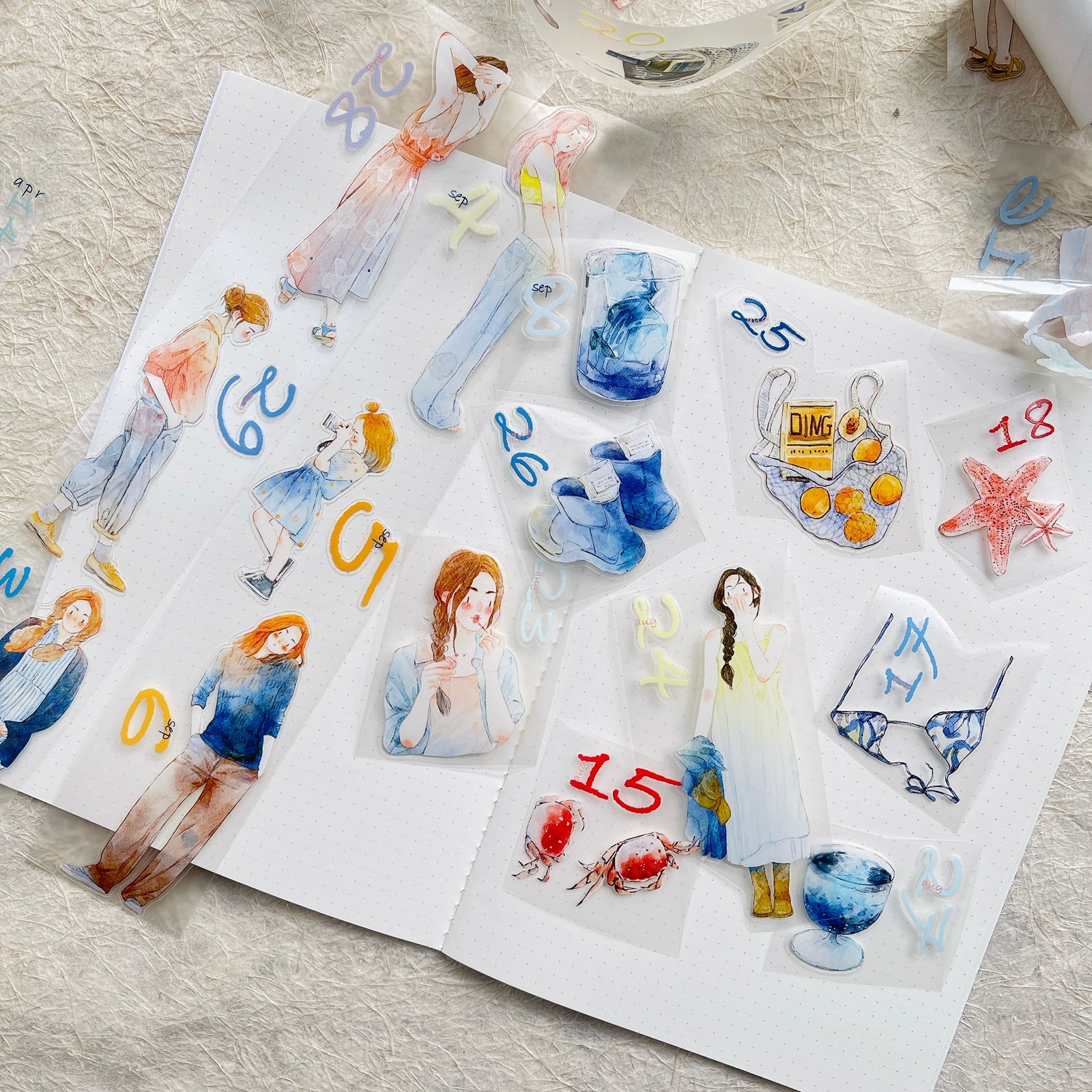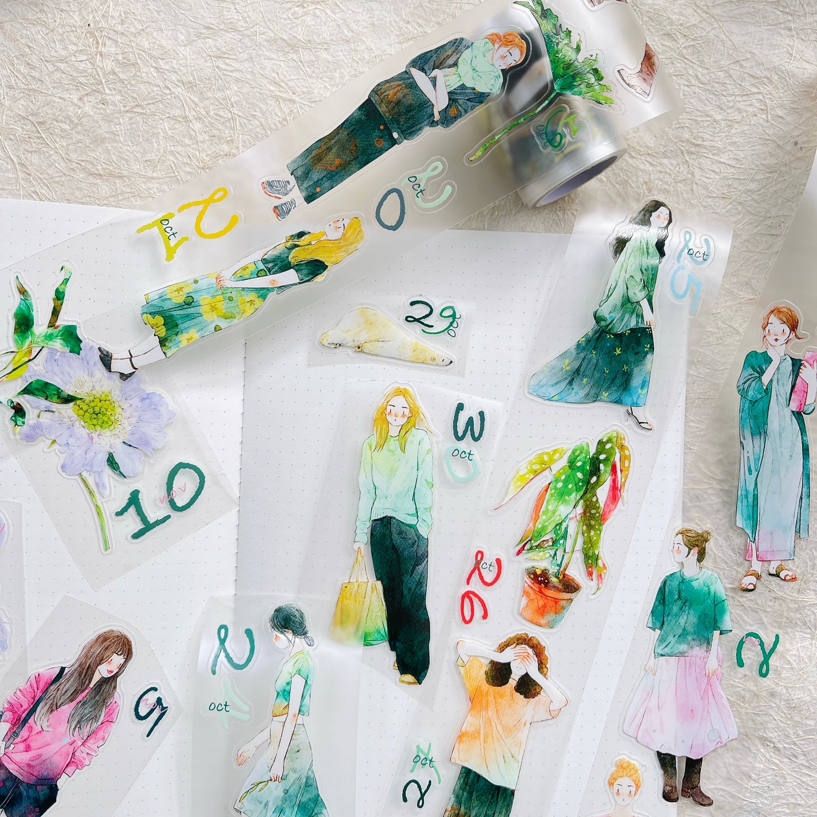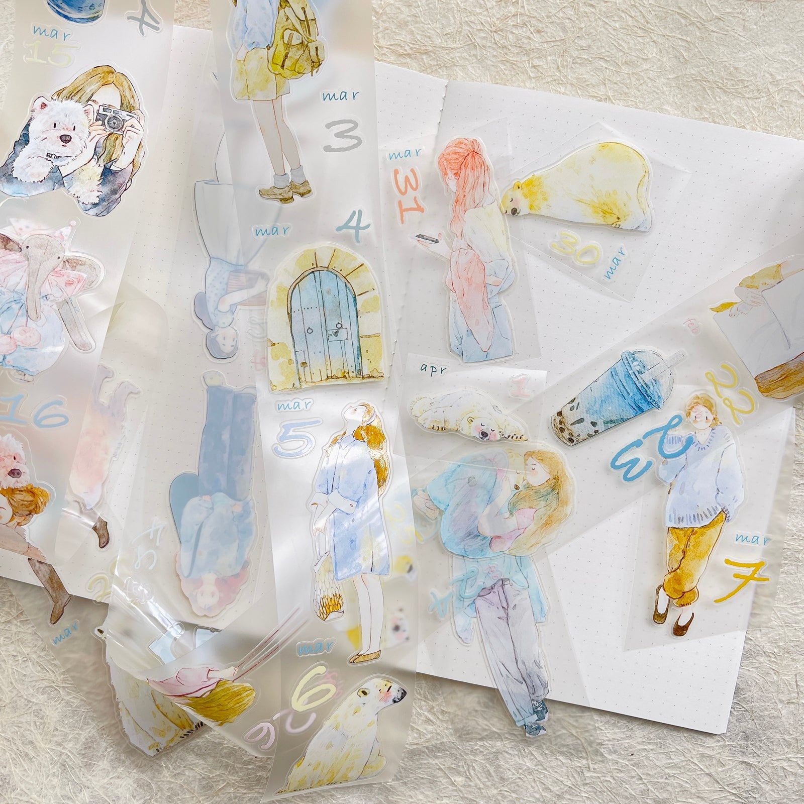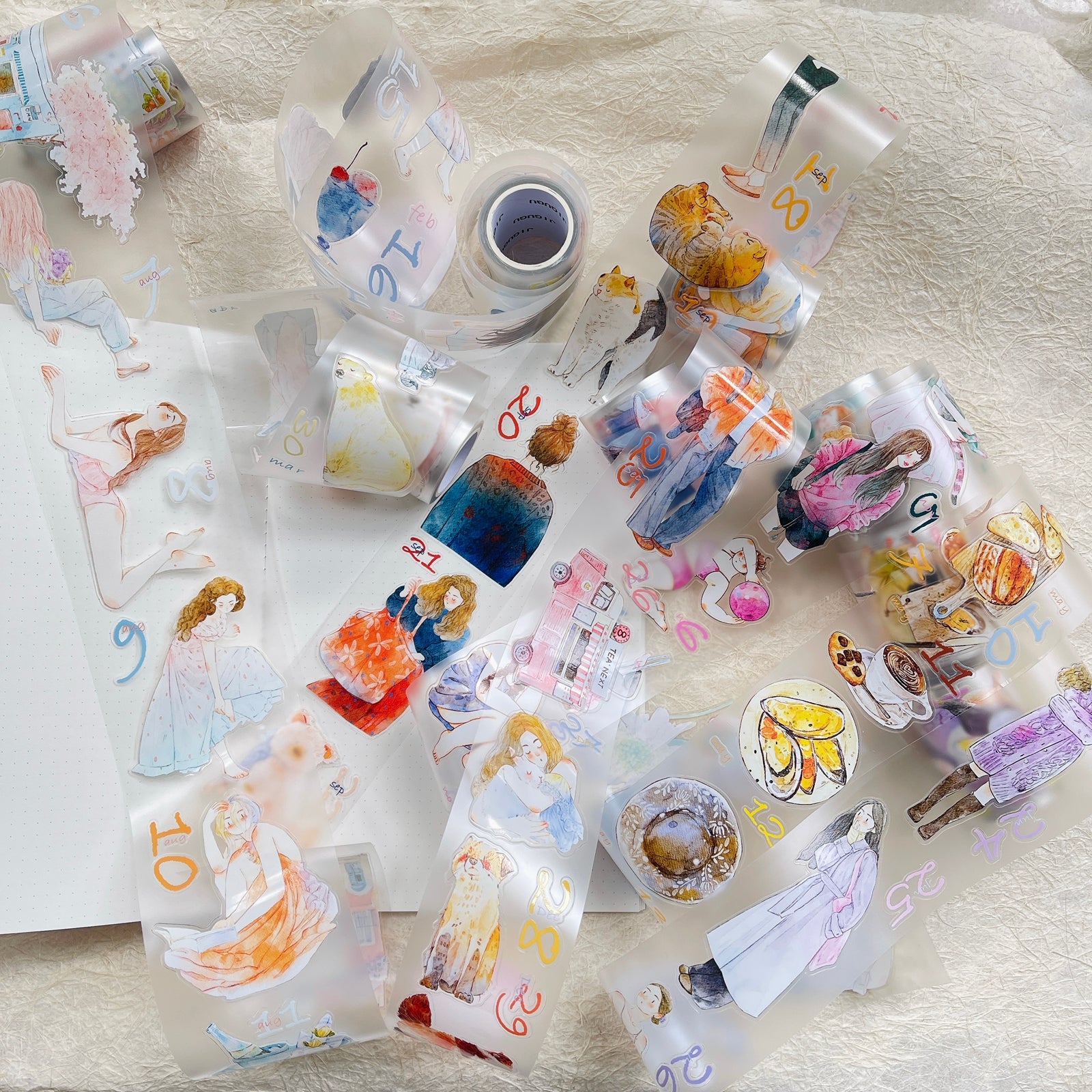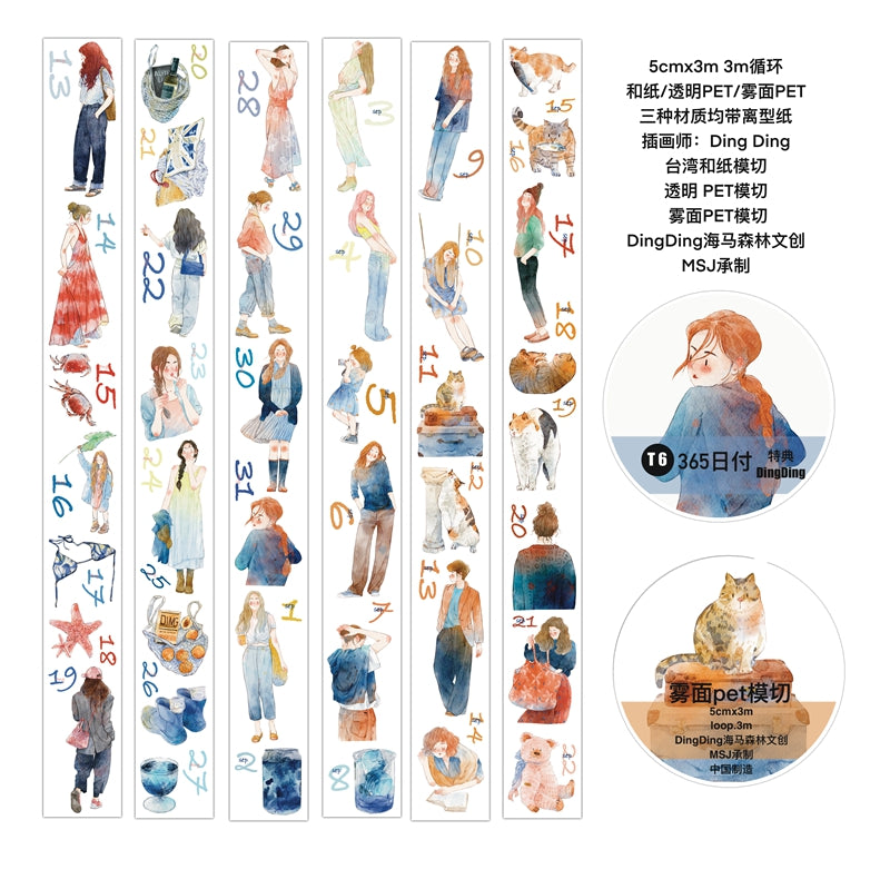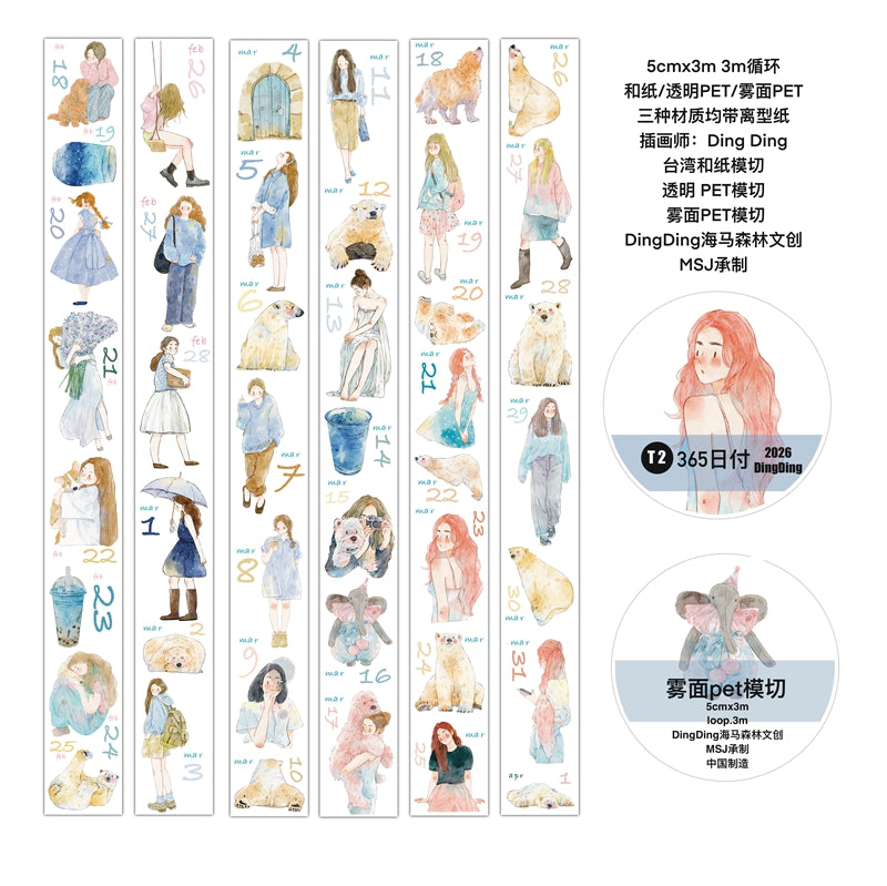 DingDing 2026 Annual Special Edition【365 Days No Loop-Undated Calendar Tape Set(Total 8 rolls) -for Any Year】Original Design,Pre-Cut Washi/PET Tape Stickers,for Scrapbook Supplies,Junk Journal,Planner Stickers