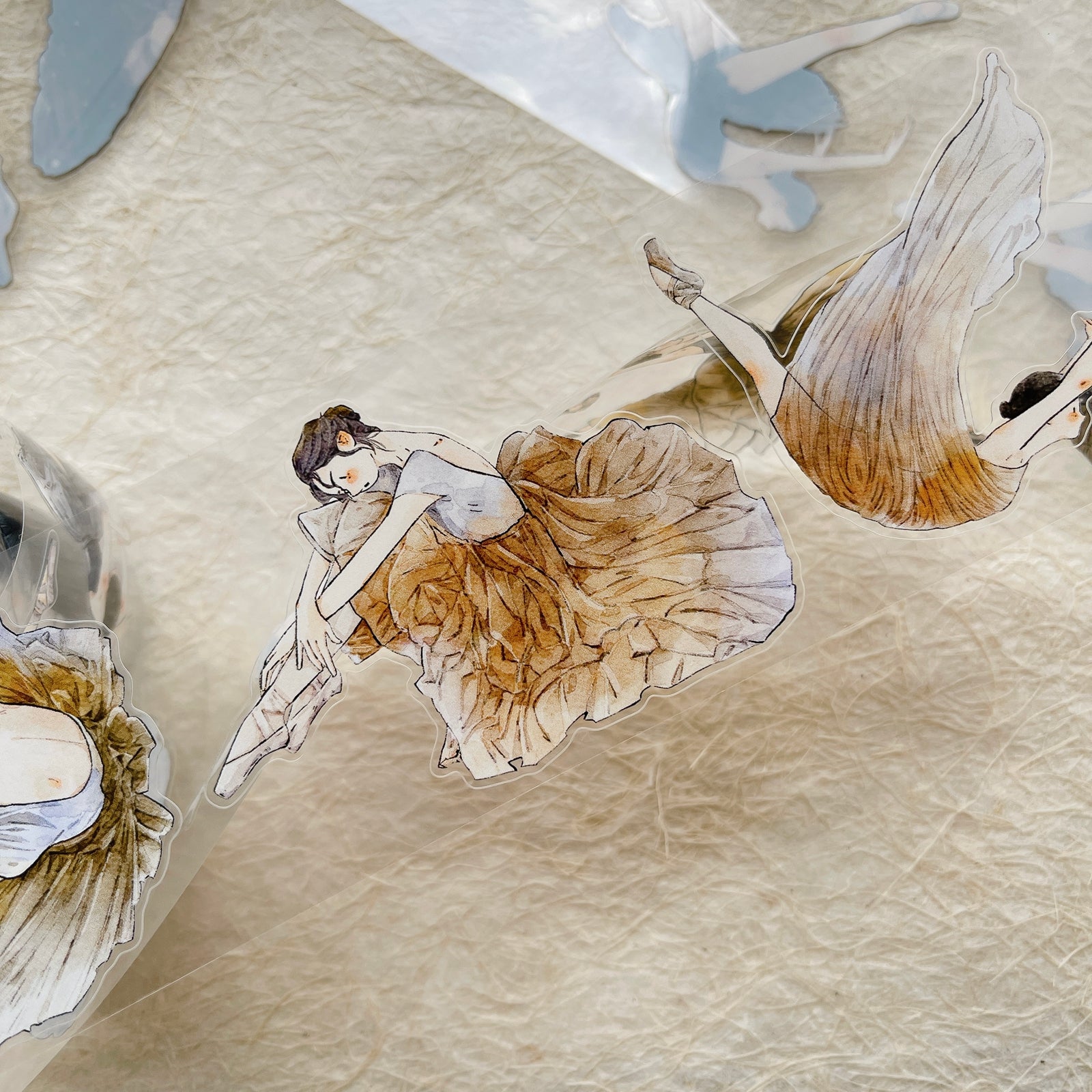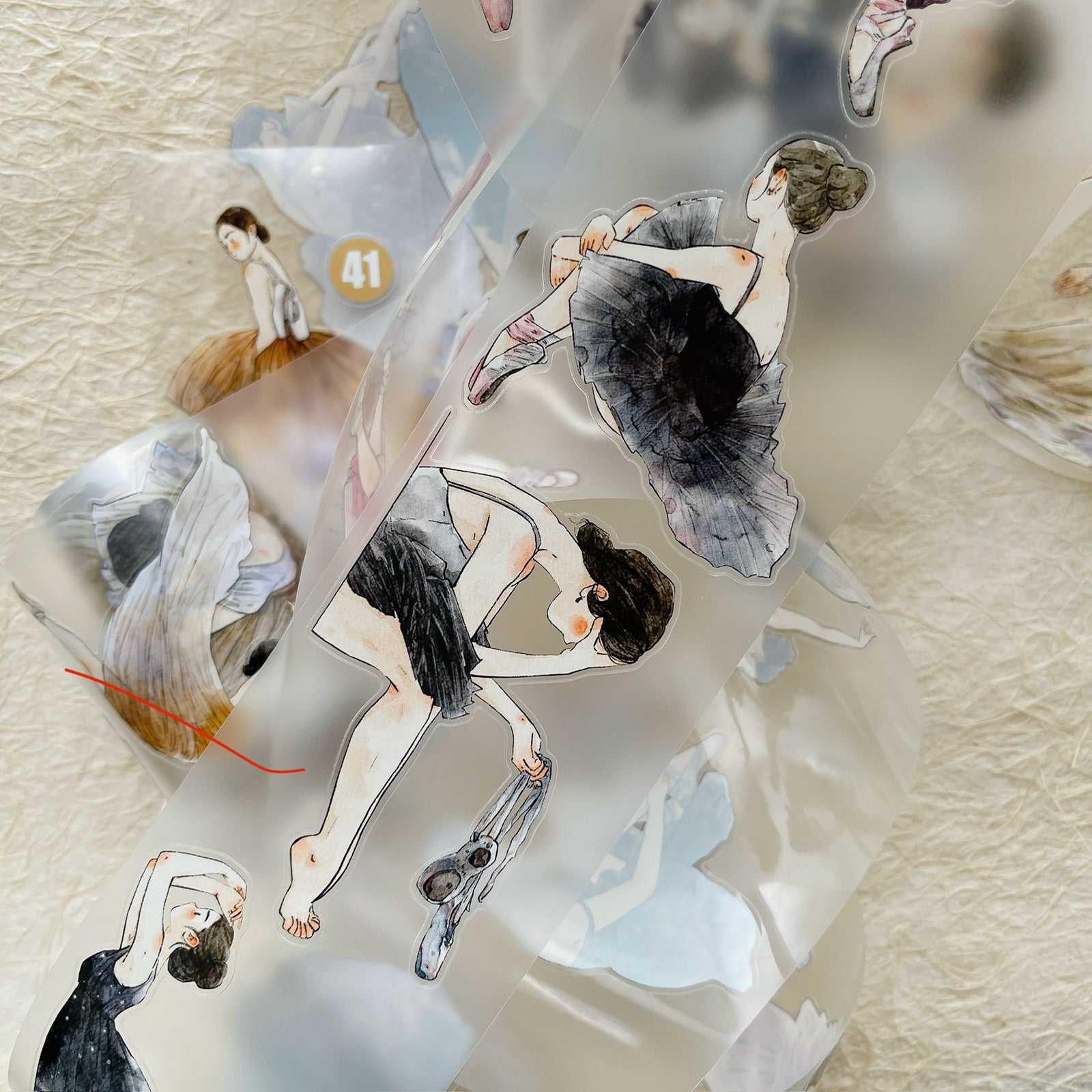 DingDing Vol11【41#Dancer】Original Design Pre-Cut Washi/PET Tape Stickers,for Scrapbook Supplies,Journaling,Junk Journal,Bullet Journal,Planner Stickers
