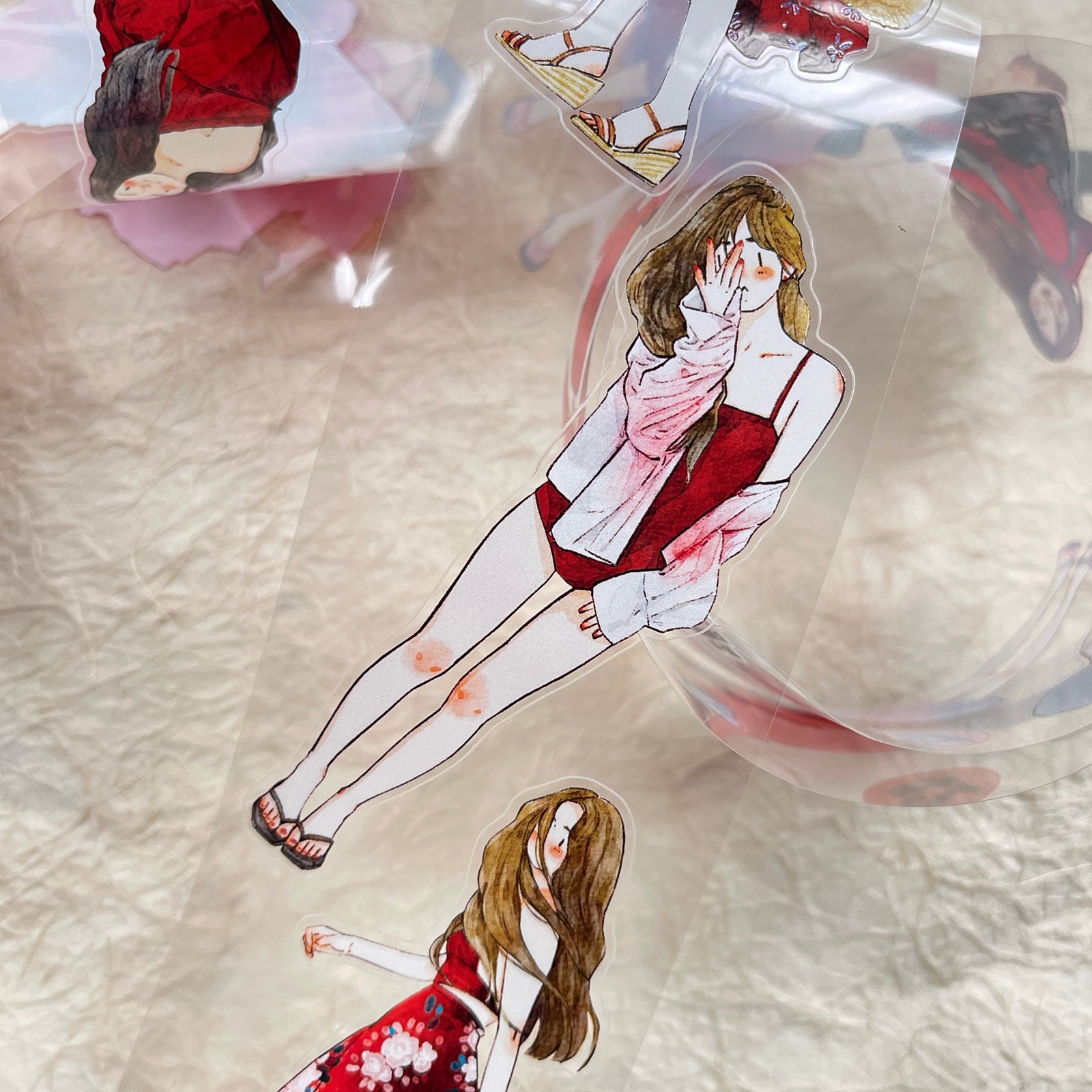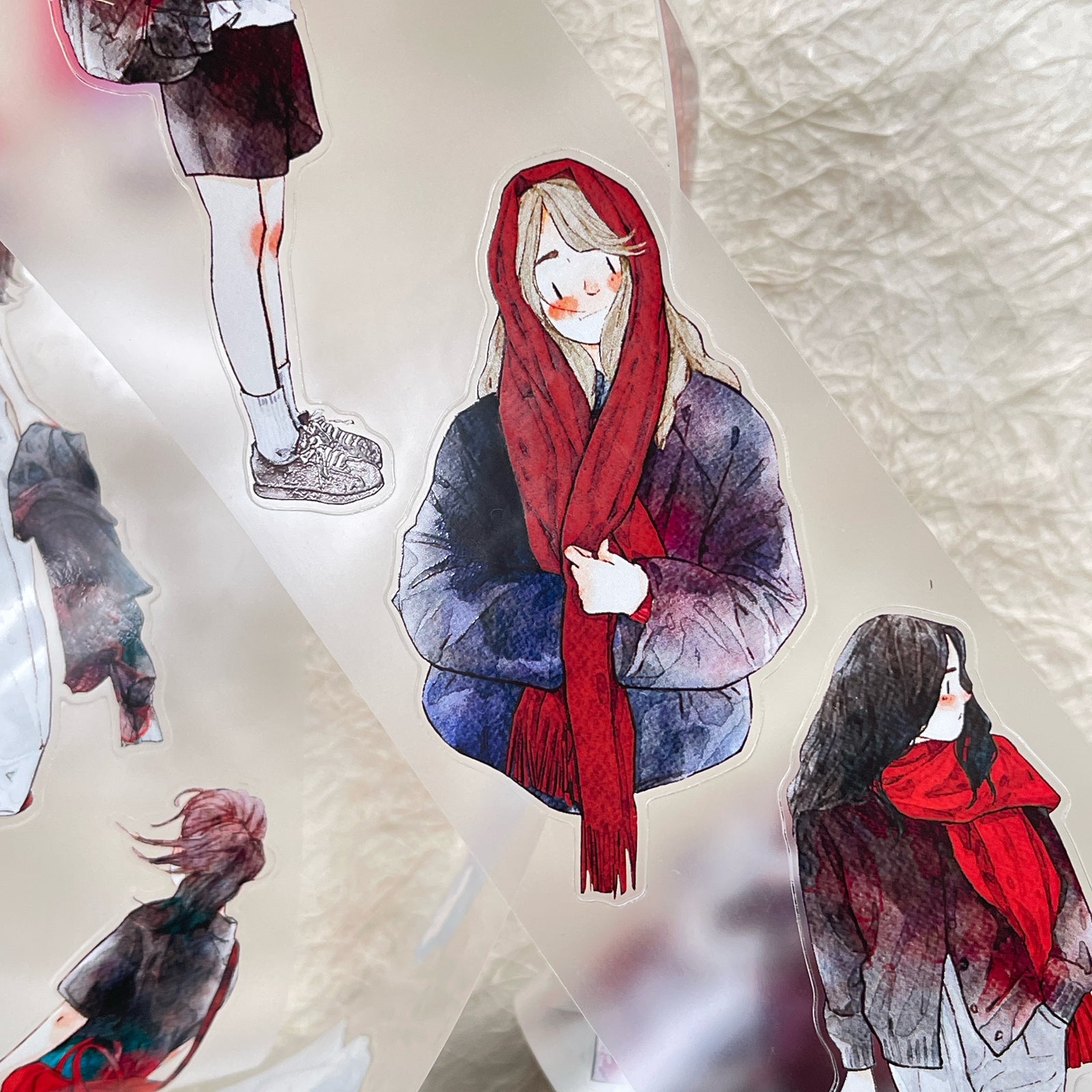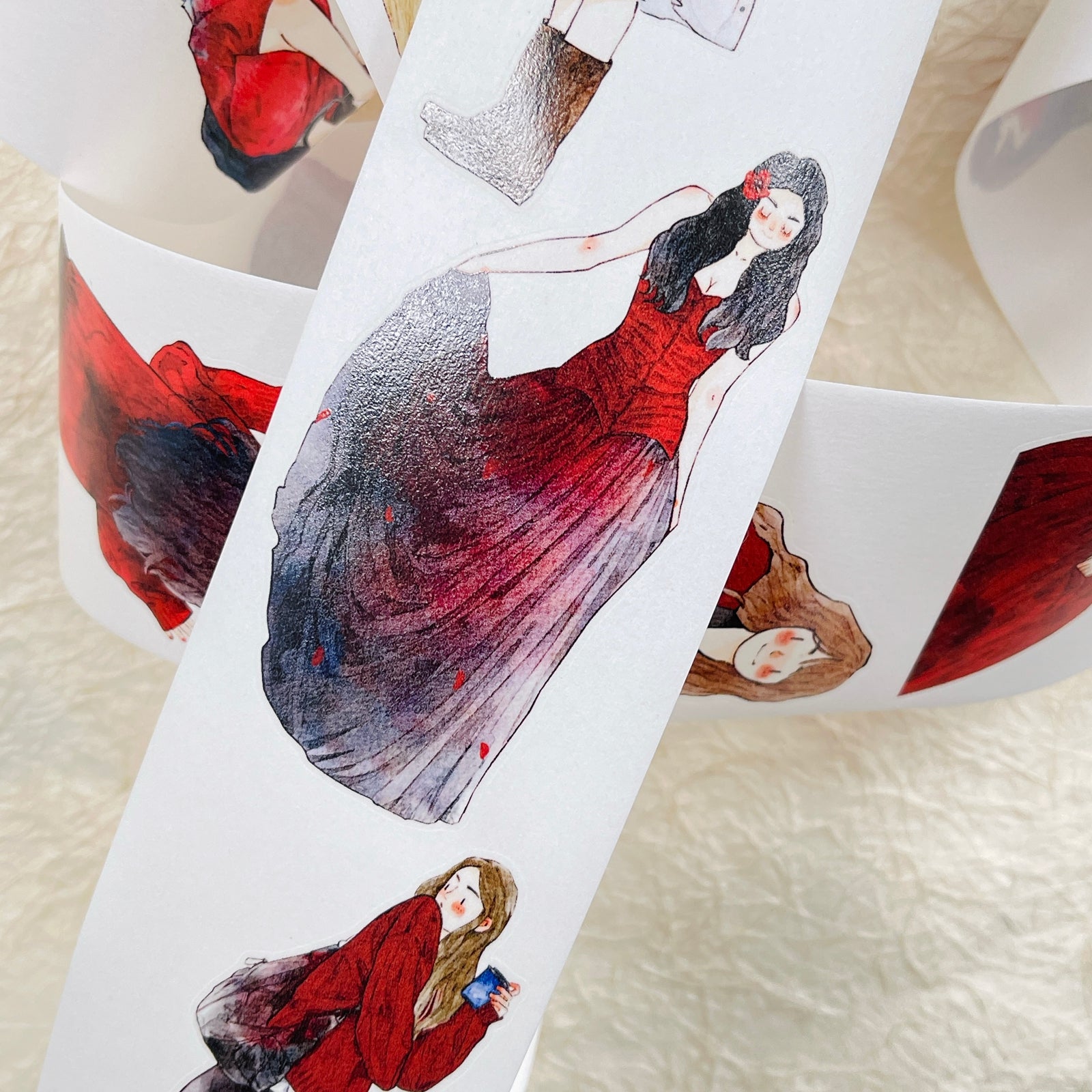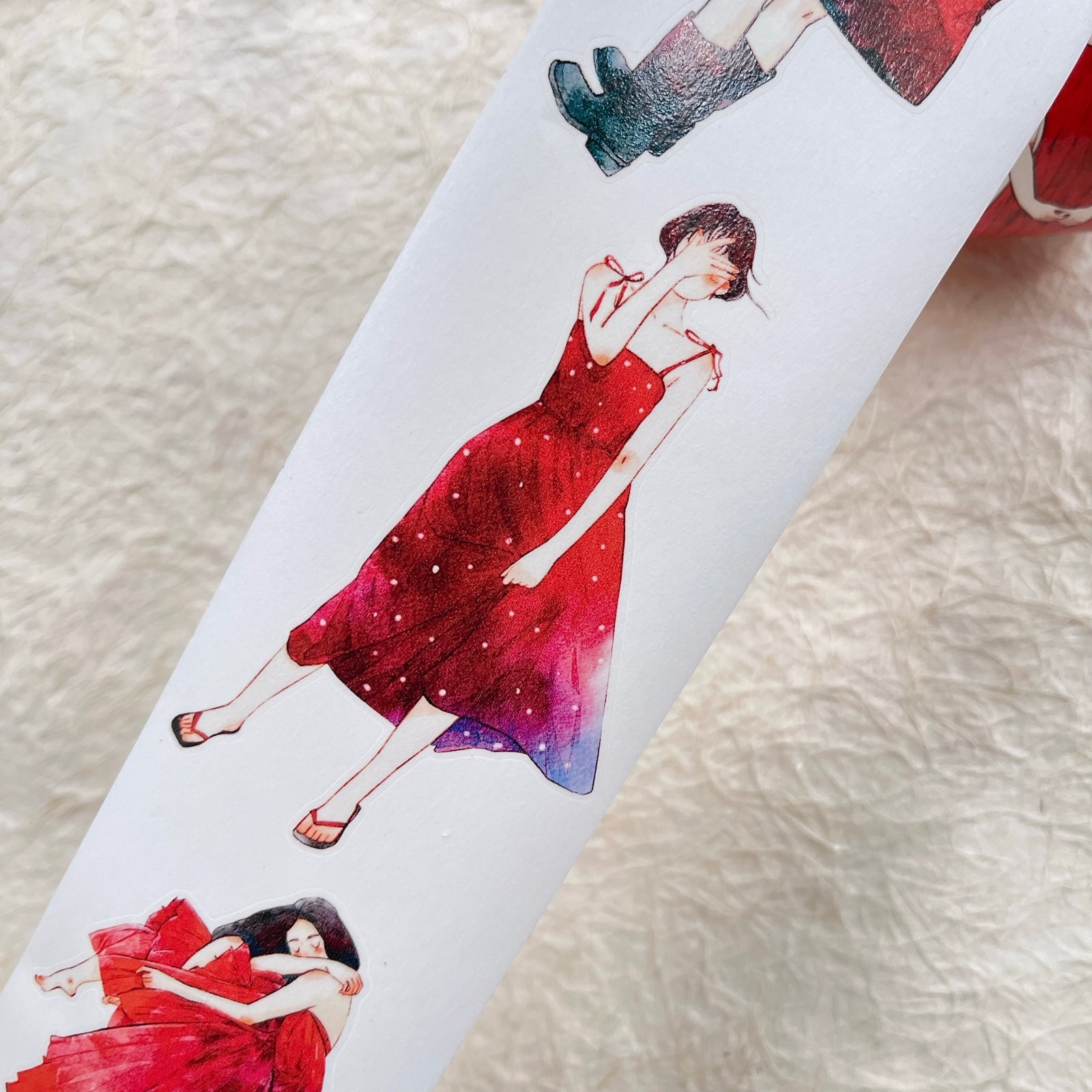 DingDing Vol12【42#A Little Red】Original Design Pre-Cut Washi/PET Tape Stickers,for Scrapbook Supplies,Journaling,Junk Journal,Bullet Journal,Planner Stickers