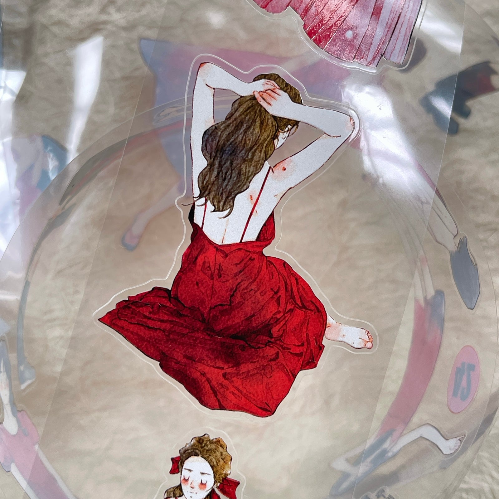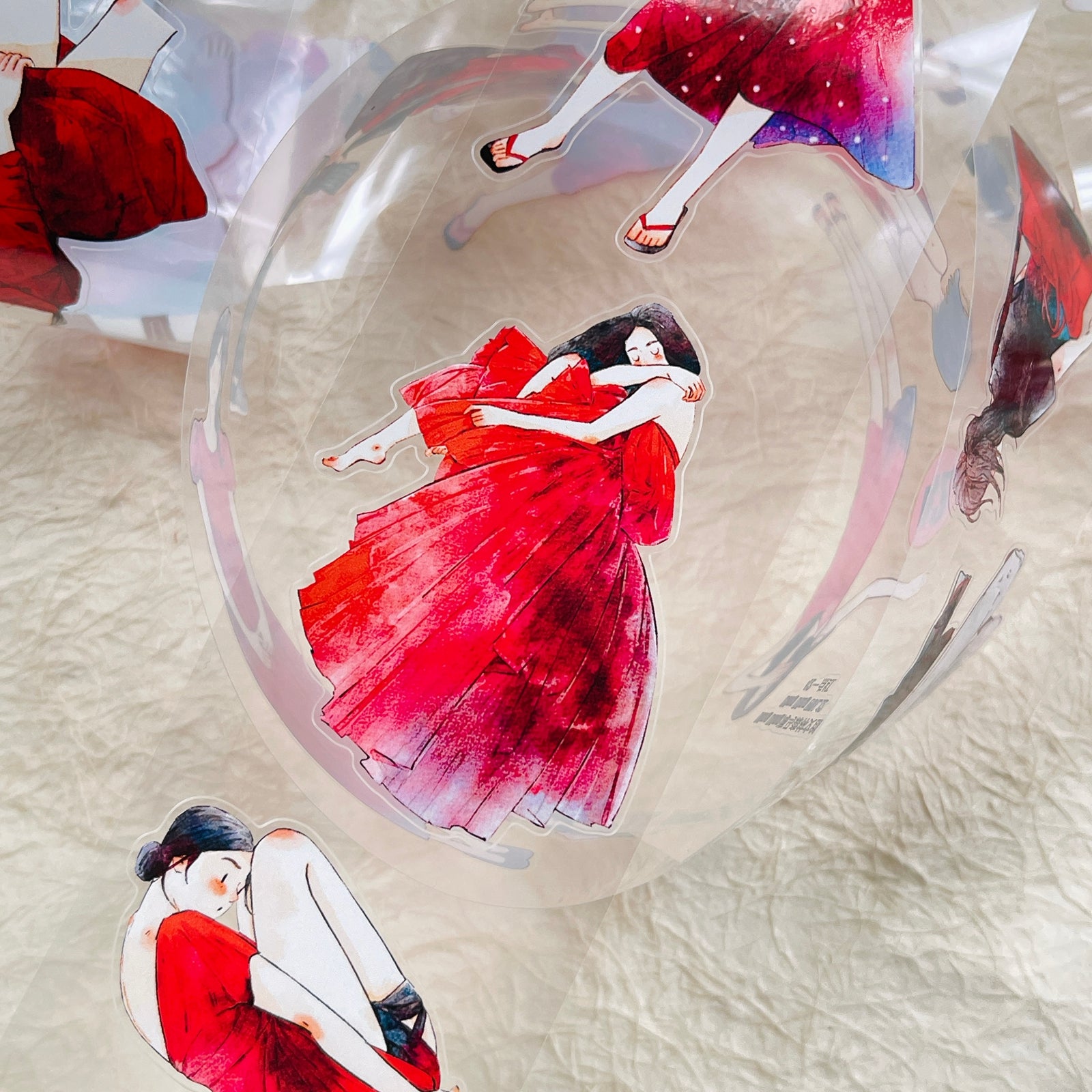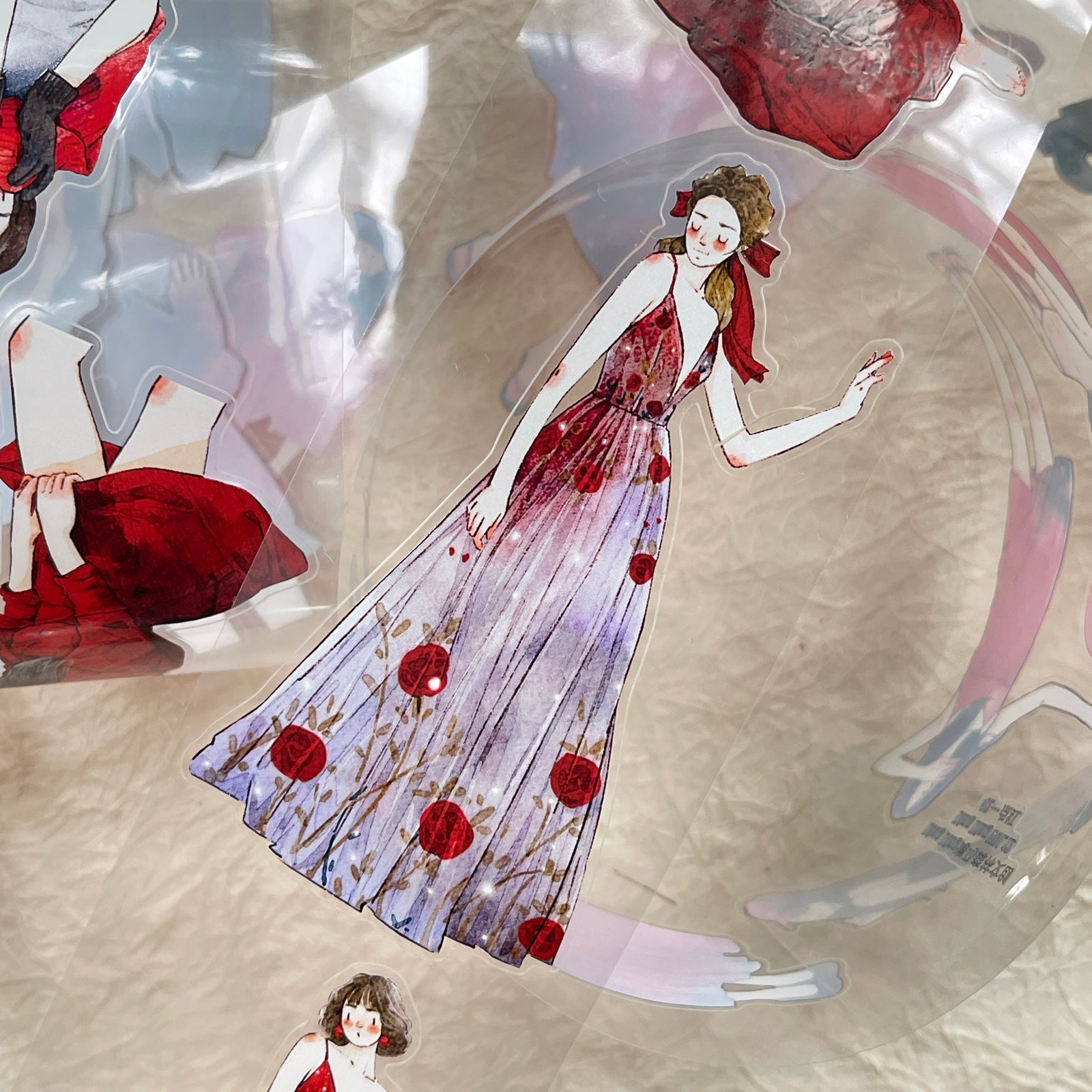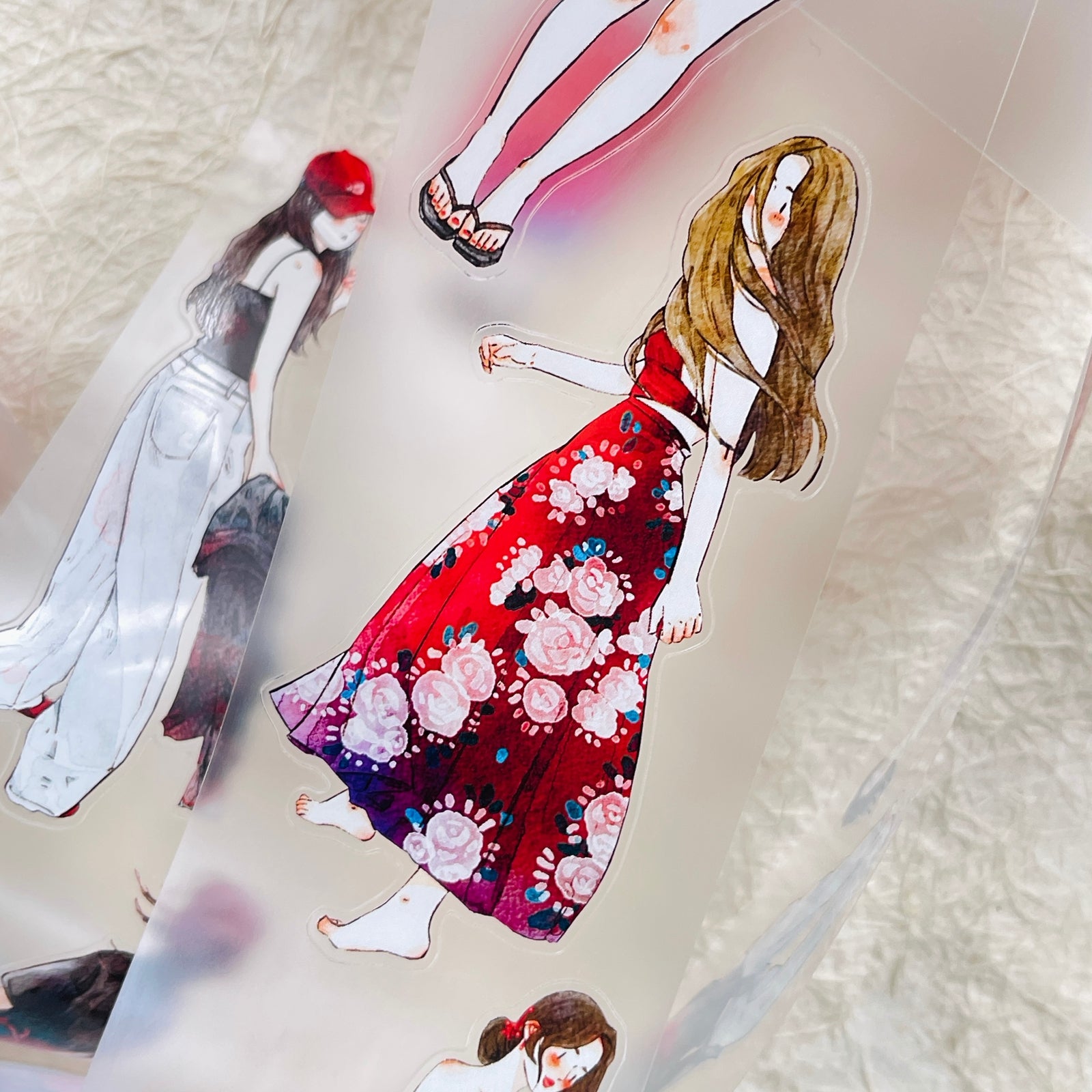 DingDing Vol12【42#A Little Red】Original Design Pre-Cut Washi/PET Tape Stickers,for Scrapbook Supplies,Journaling,Junk Journal,Bullet Journal,Planner Stickers
