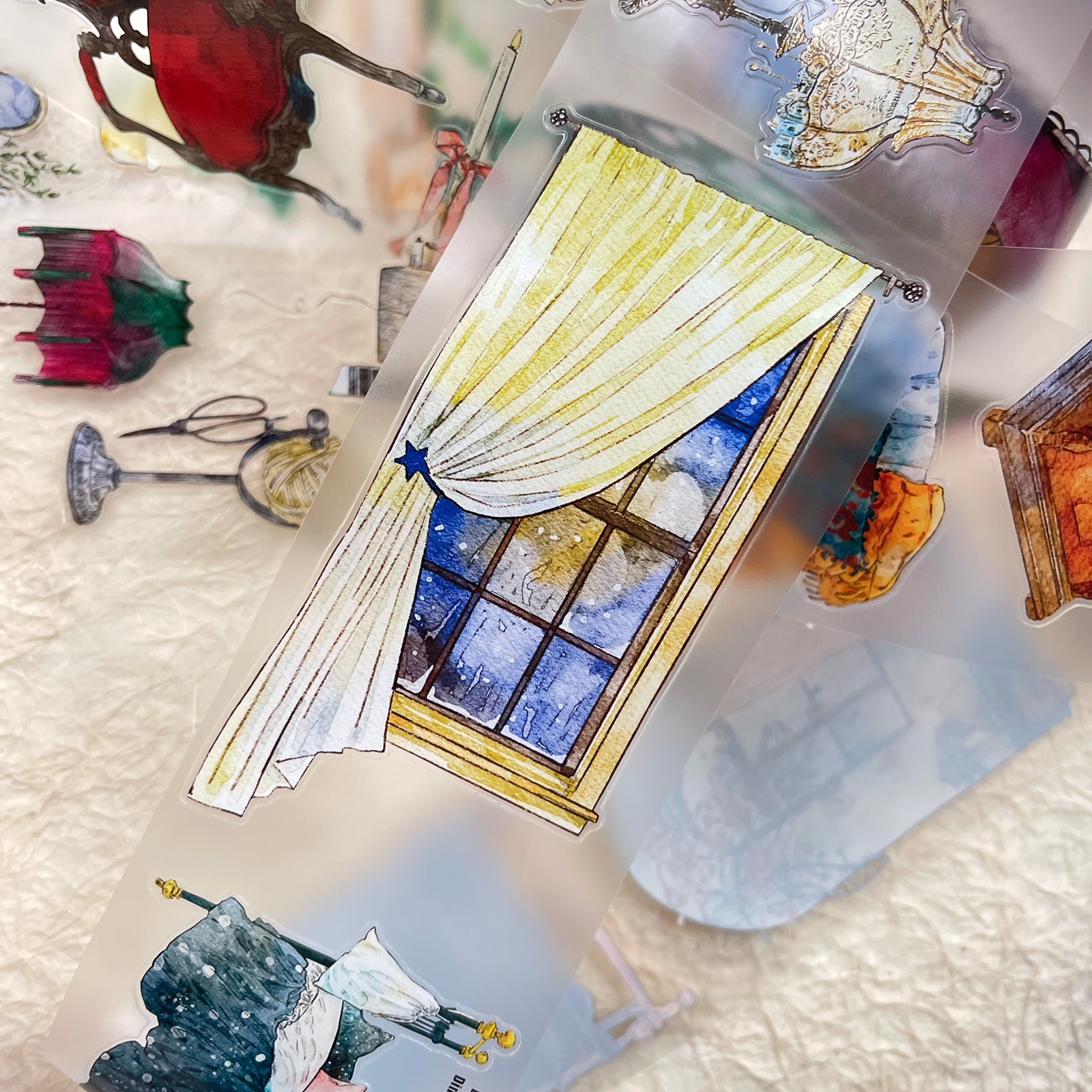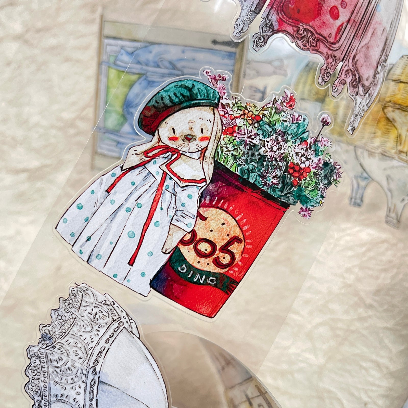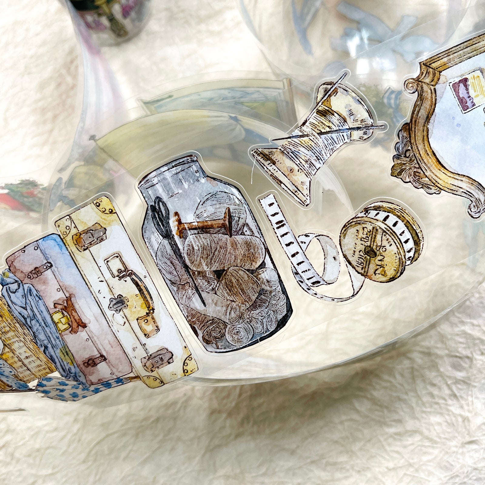 DingDing Vol12【45#Time Imprint】Original Design Pre-Cut Washi/PET Tape Stickers,for Scrapbook Supplies,Journaling,Junk Journal,Bullet Journal,Planner Stickers