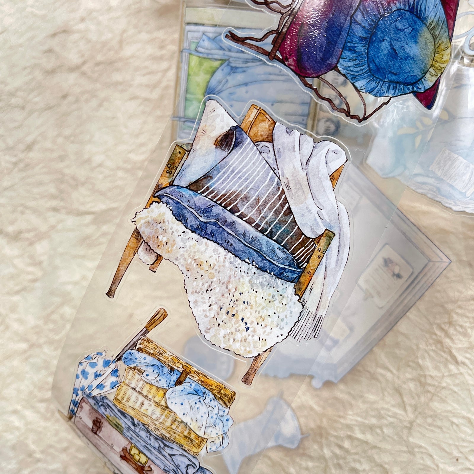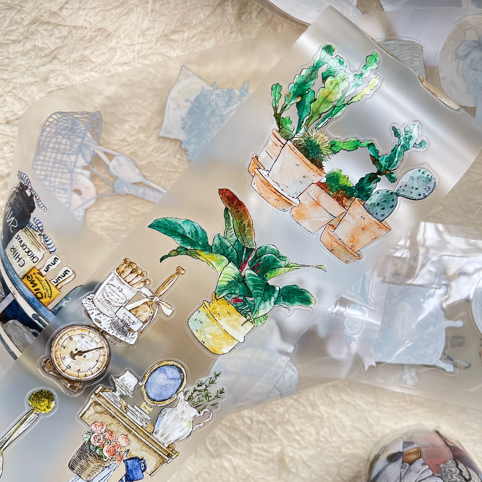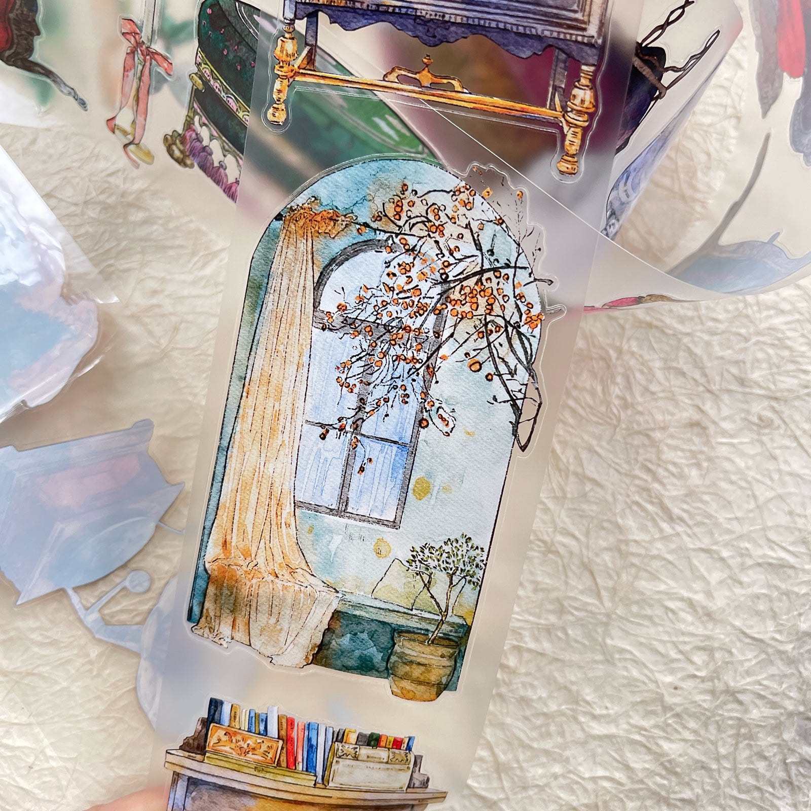 DingDing Vol12【45#Time Imprint】Original Design Pre-Cut Washi/PET Tape Stickers,for Scrapbook Supplies,Journaling,Junk Journal,Bullet Journal,Planner Stickers
