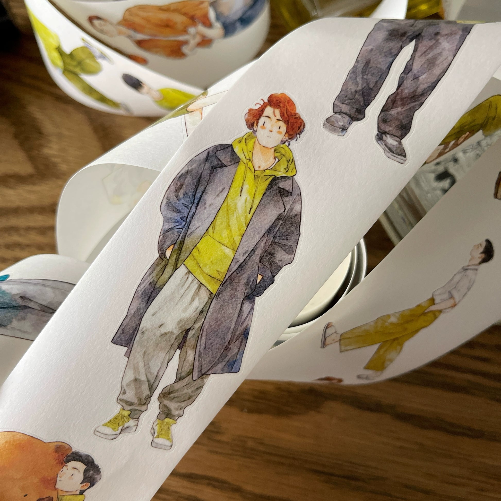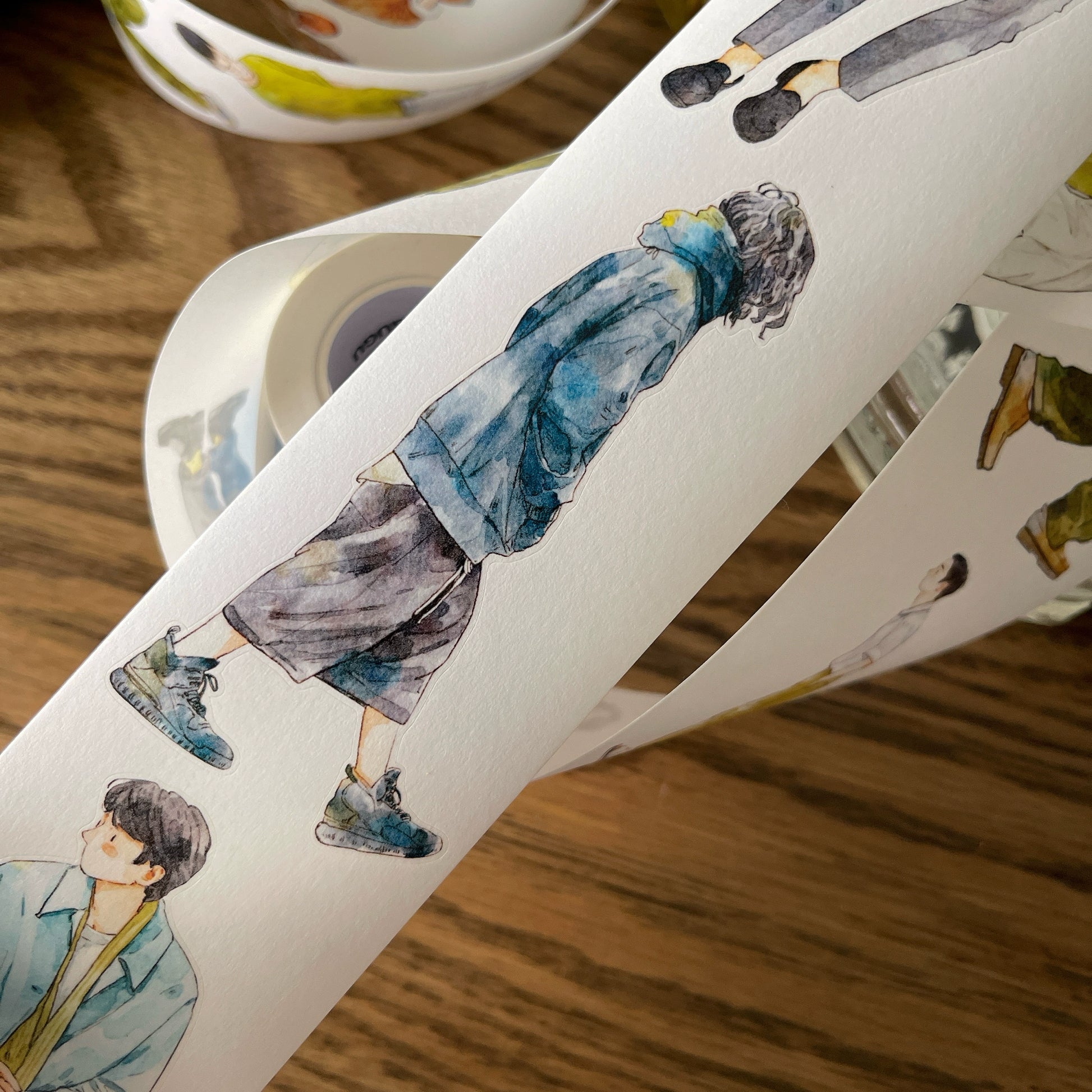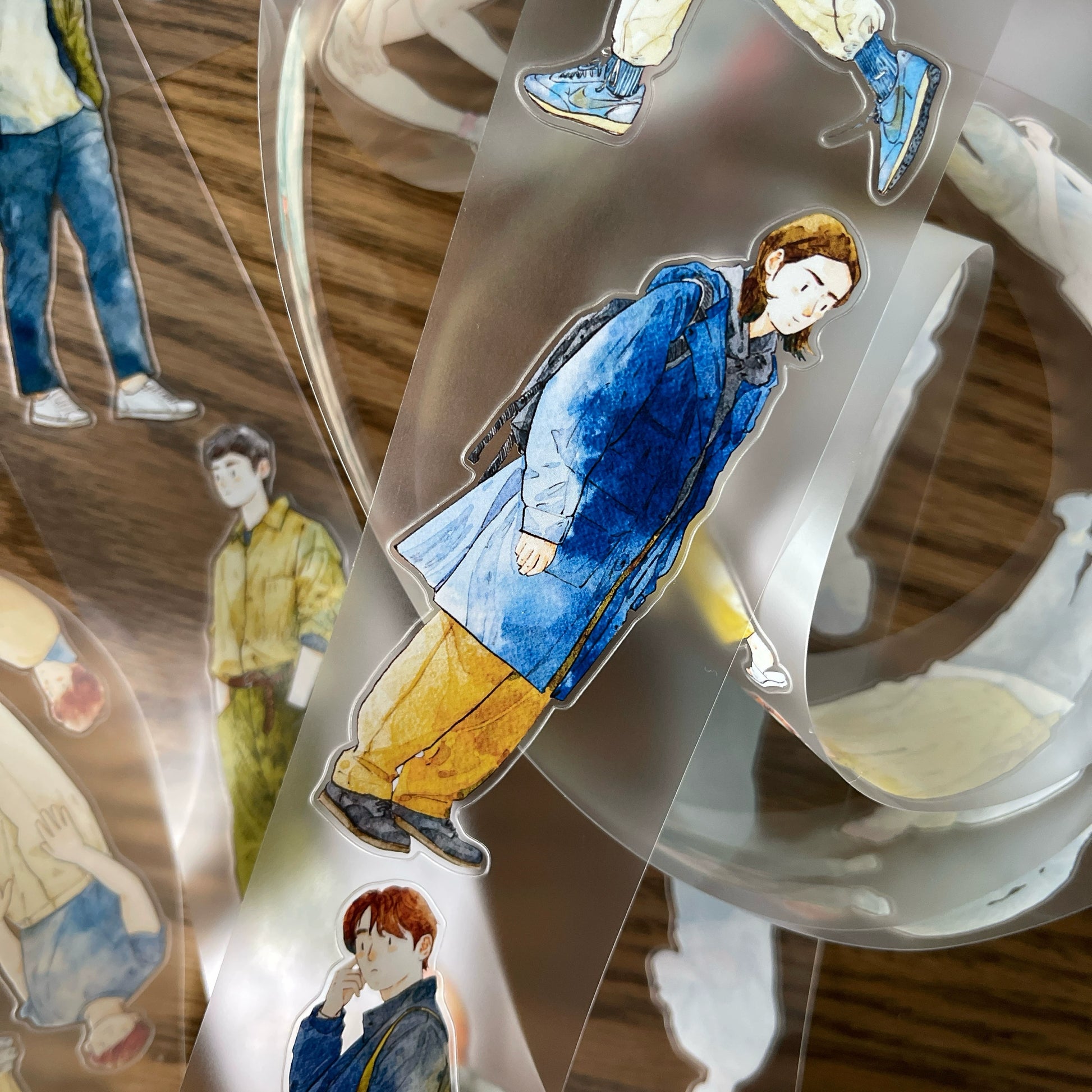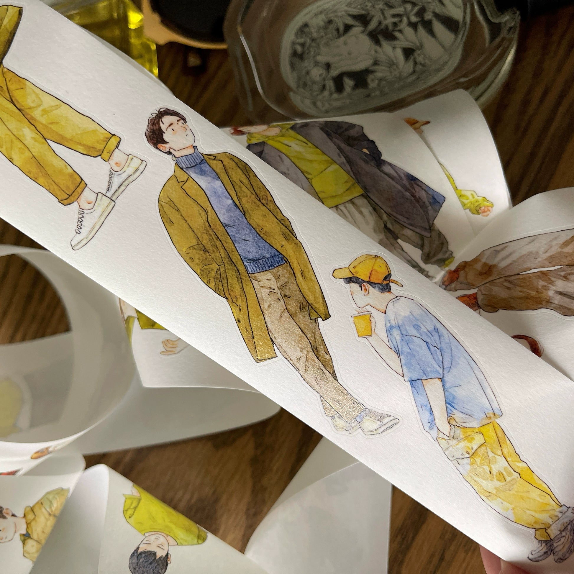 DingDing Vol10【34#That Cute Guy】Original Design Pre-Cut Washi/PET Tape Stickers,for Scrapbook Supplies,Journaling,Junk Journal,Bullet Journal,Planner Stickers