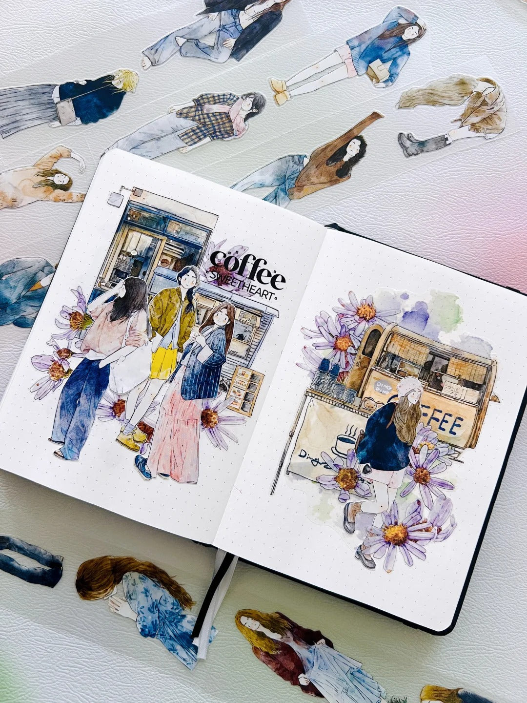 DingDing Washi Tape Set-2 Rolls(39+A50) Washi/PET Tape Stickers,Original Designs,Fashion Characters Figures for Scrapbooks Supplies,Journaling,Junk Journal,Bullet Journals,Planners
