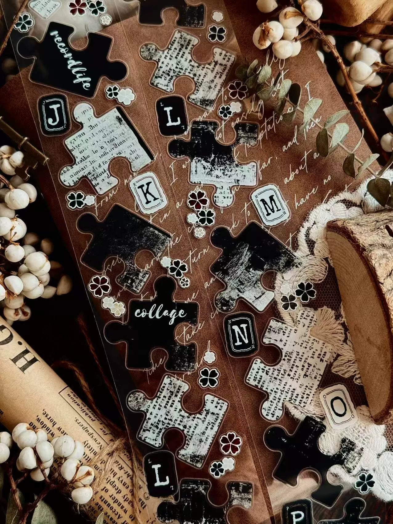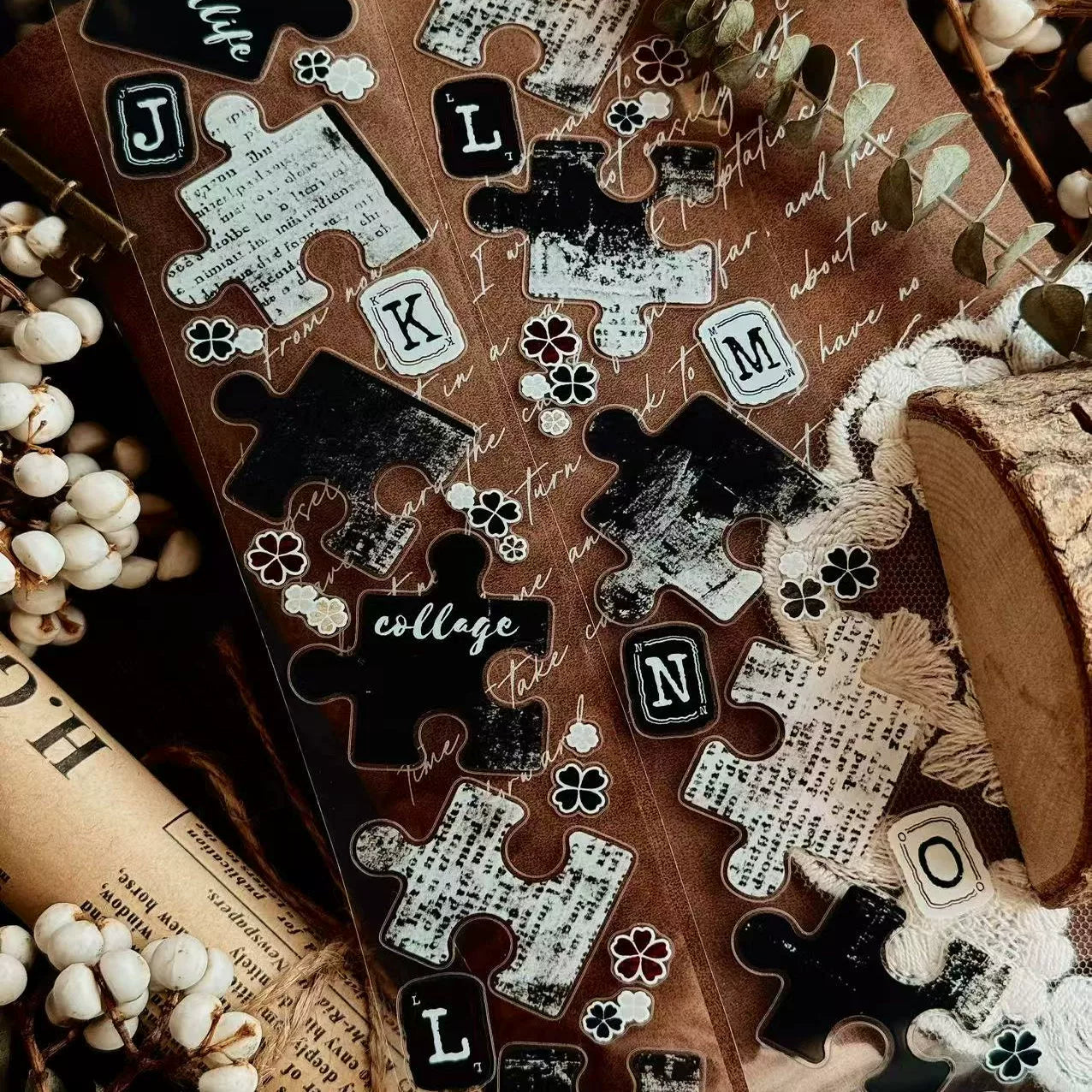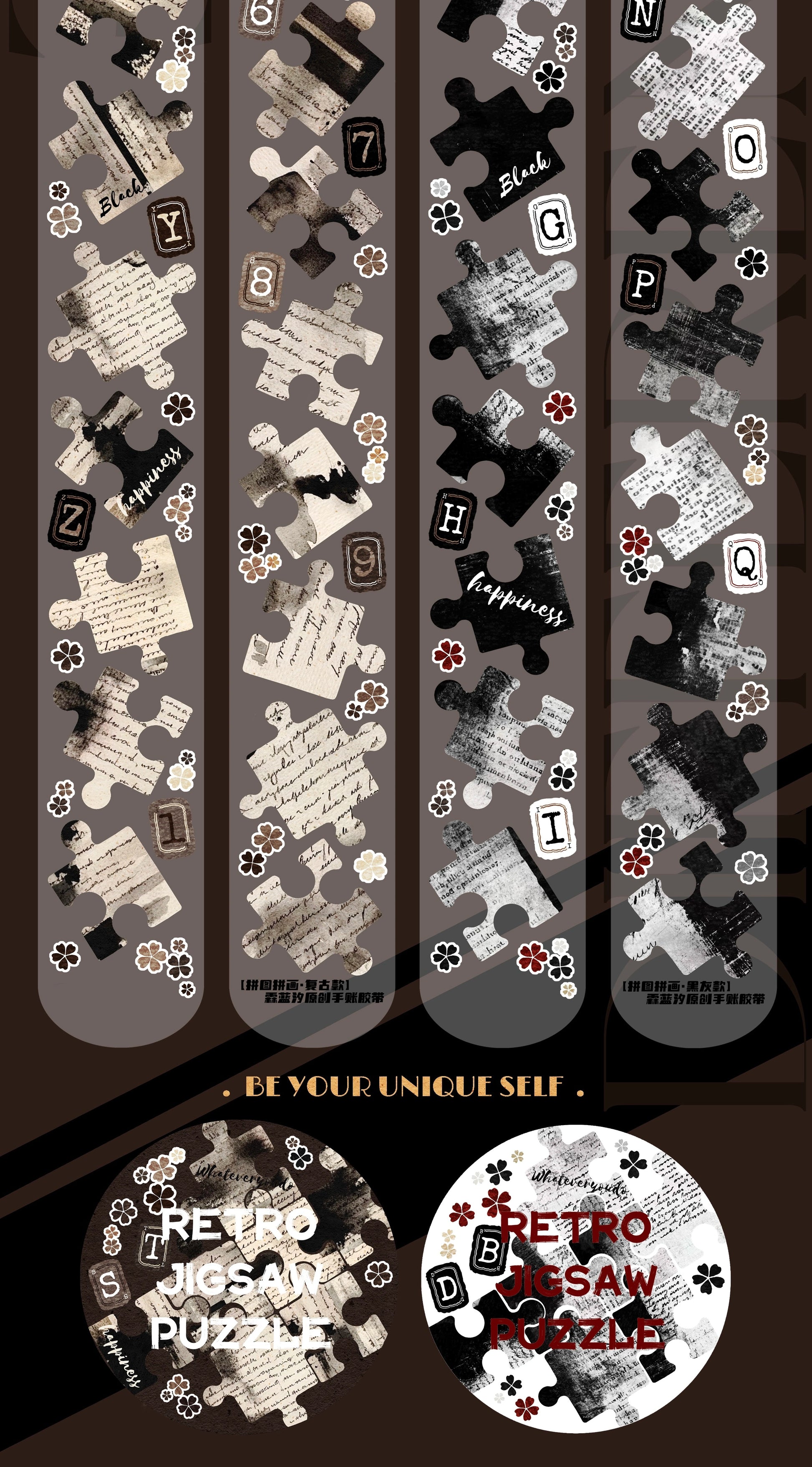 Linlanxi 【Puzzle Painting】Original Pre-cut Washi/Pet Tape,New Fashion Retro Wider English Counted Tape