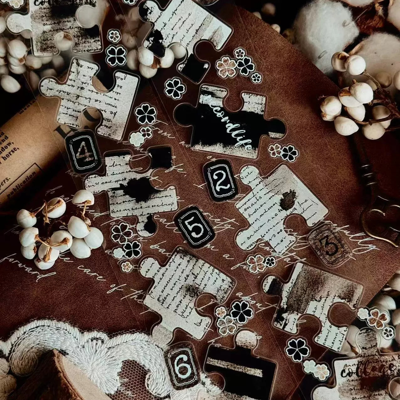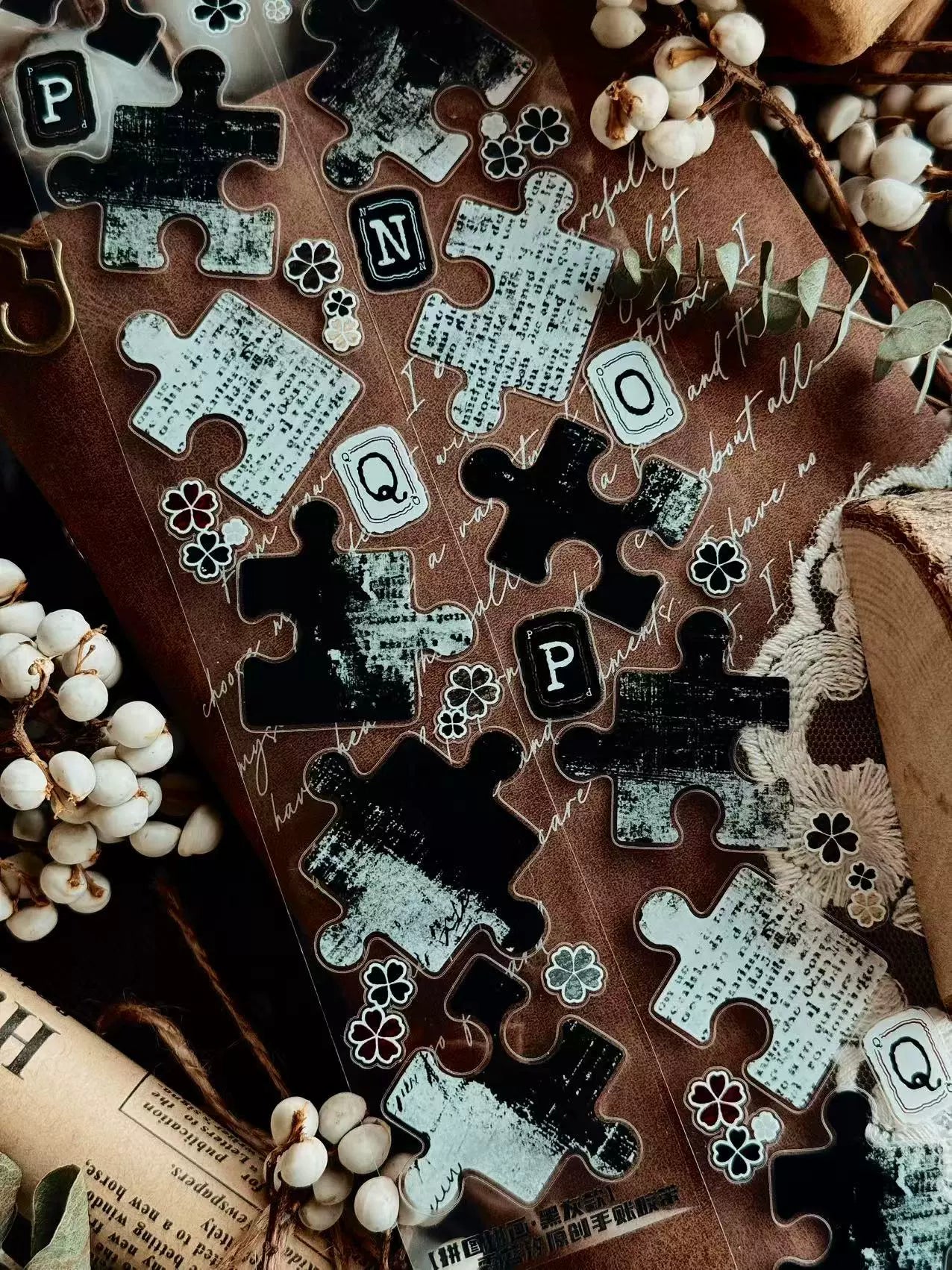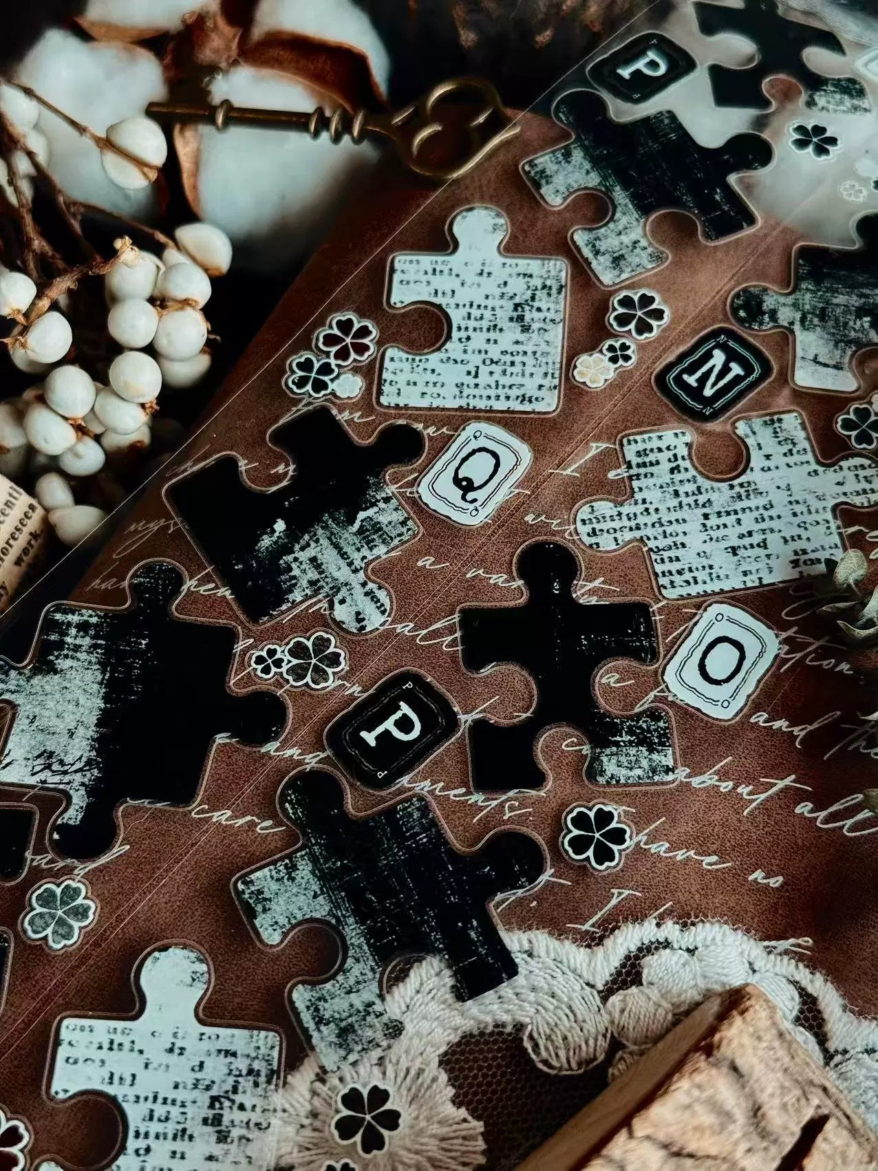 Linlanxi 【Puzzle Painting】Original Pre-cut Washi/Pet Tape,New Fashion Retro Wider English Counted Tape