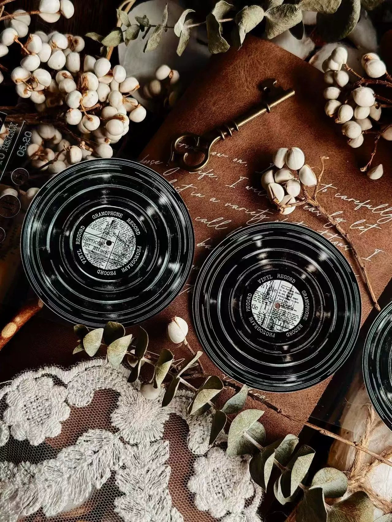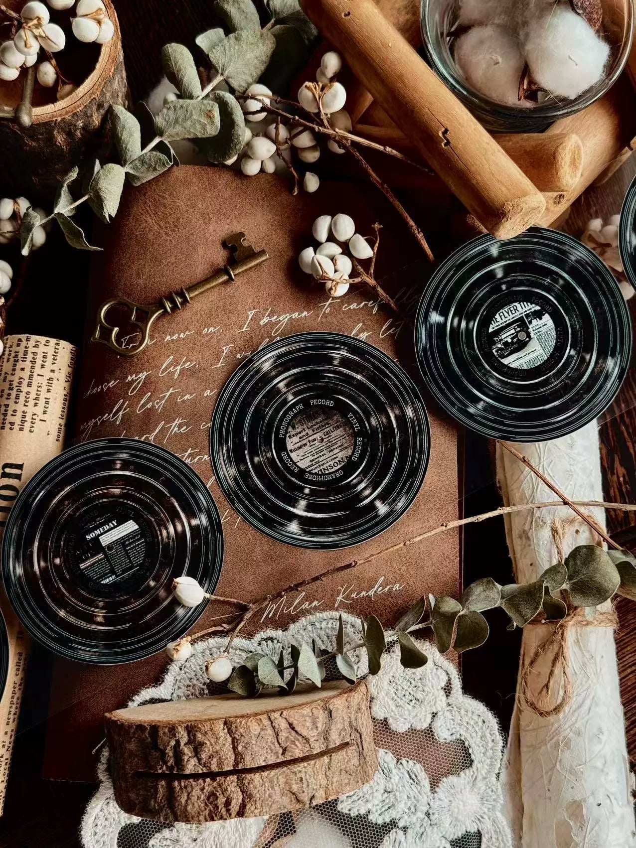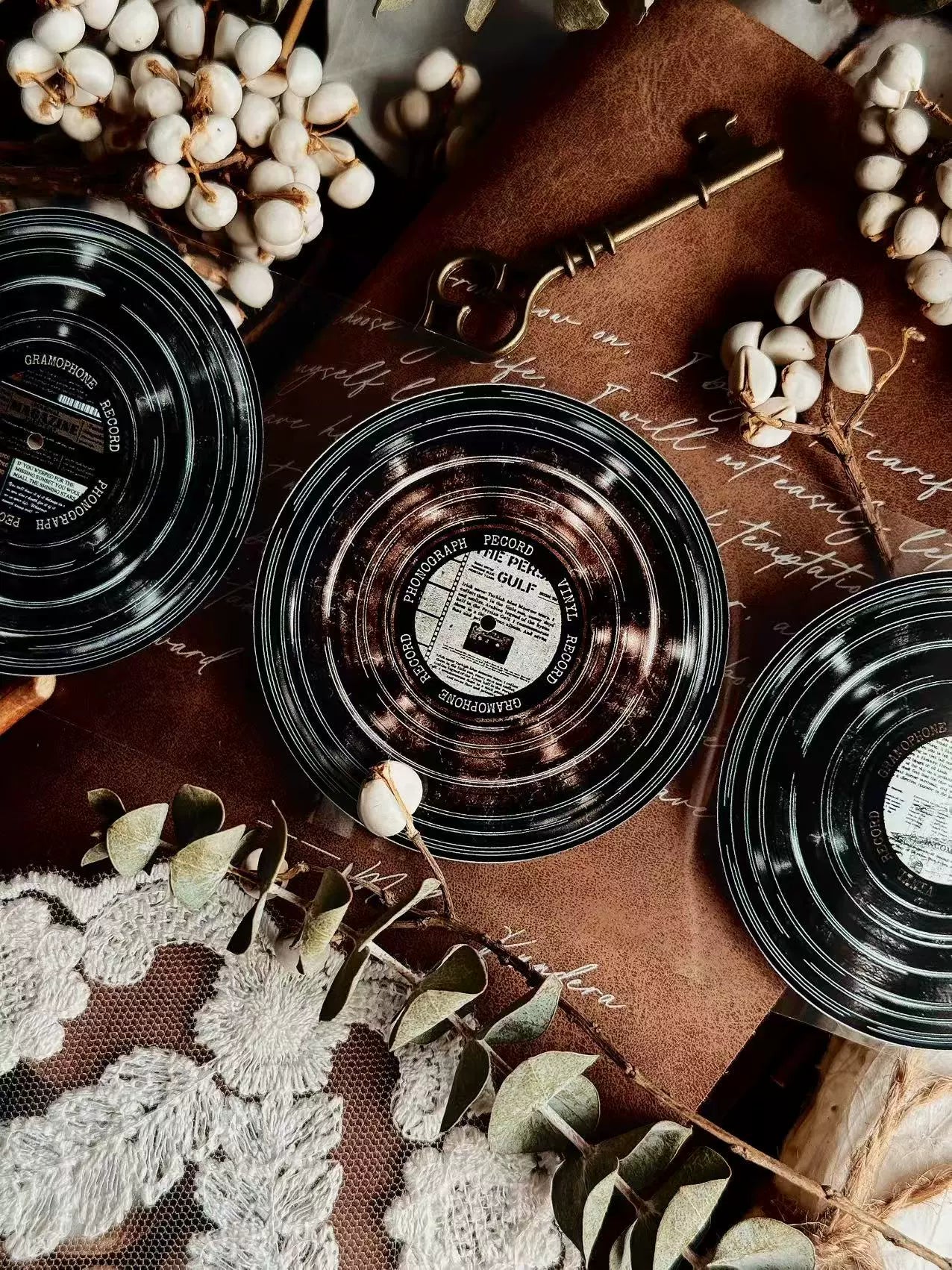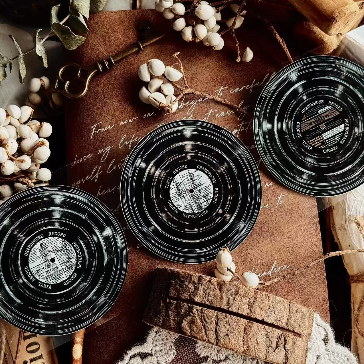 Linlanxi【Record 】 Original Retro Vintage Black Vinyl Record Background Washi/Pet Tape