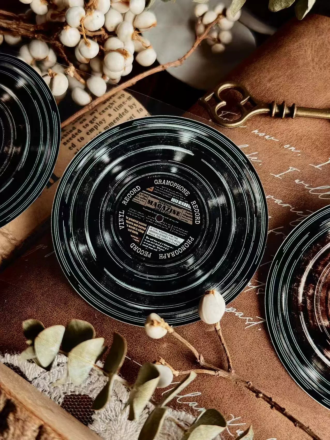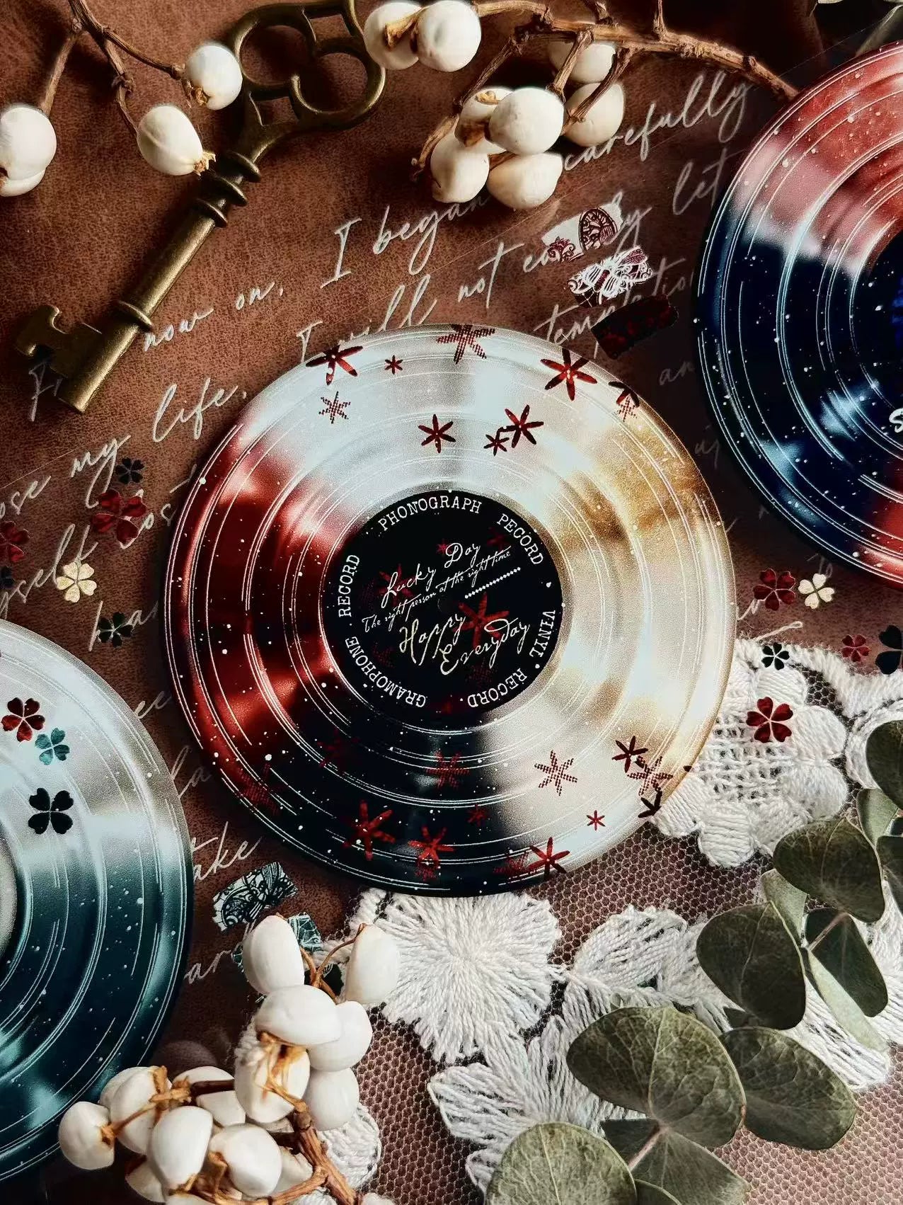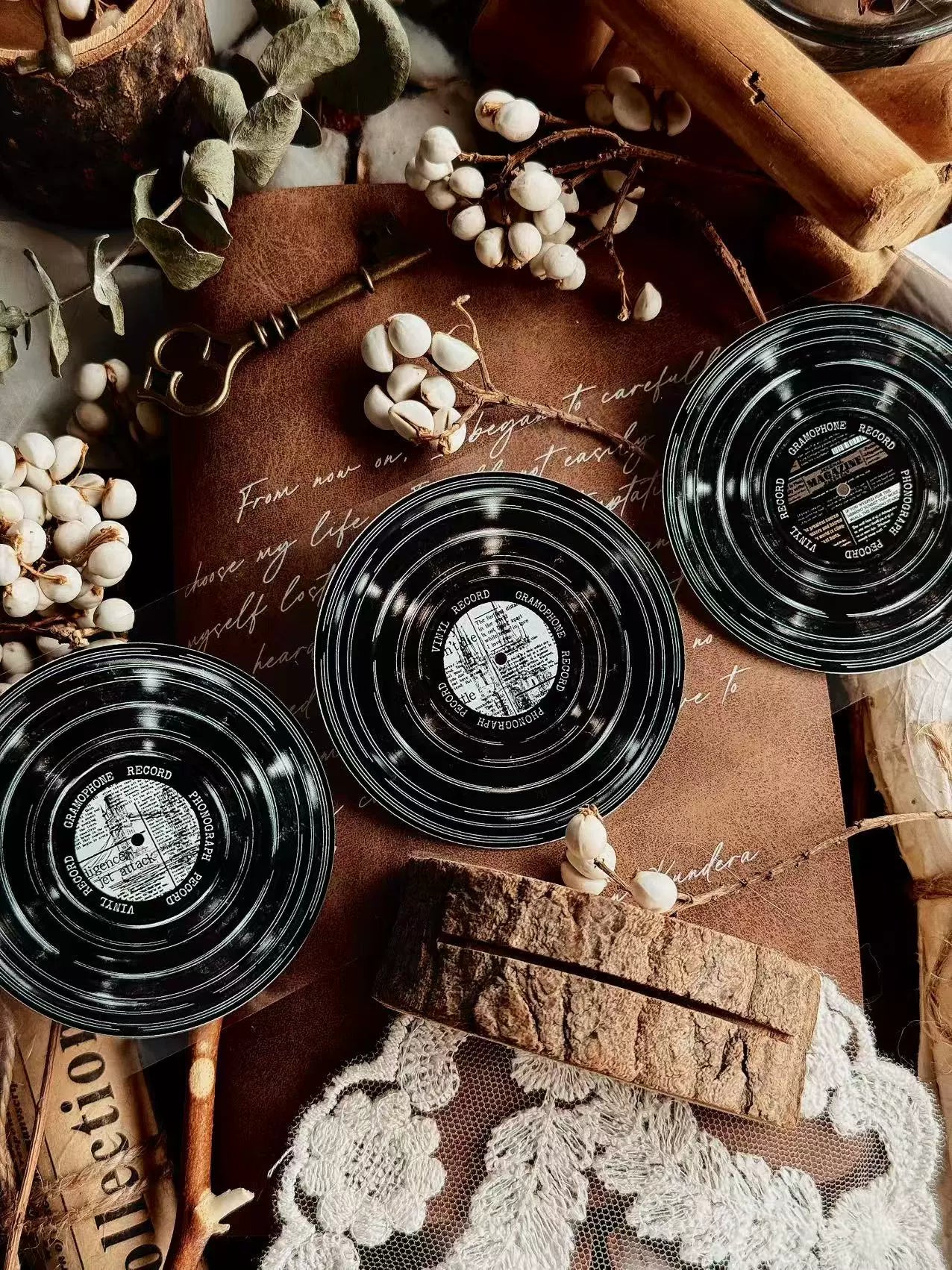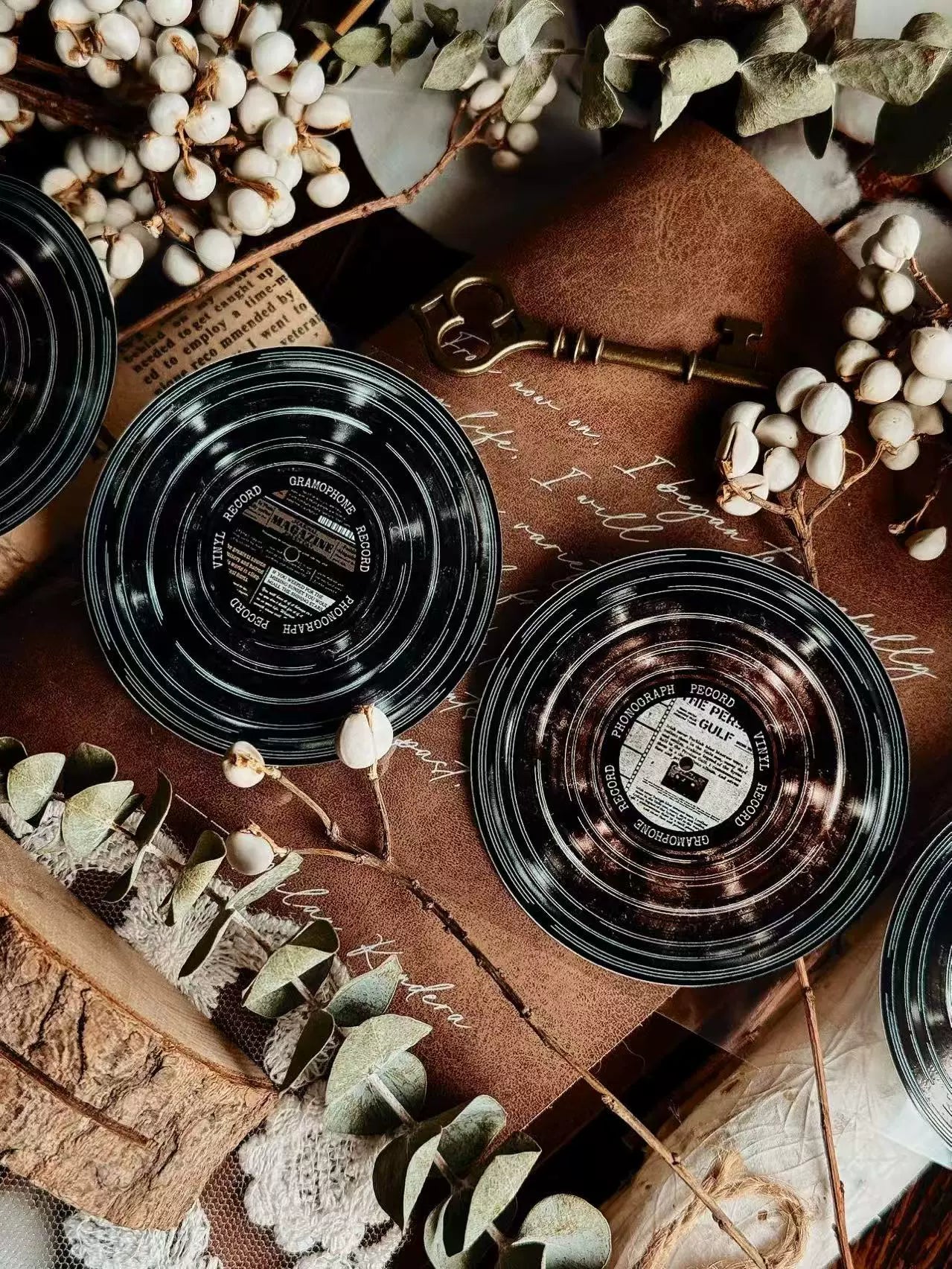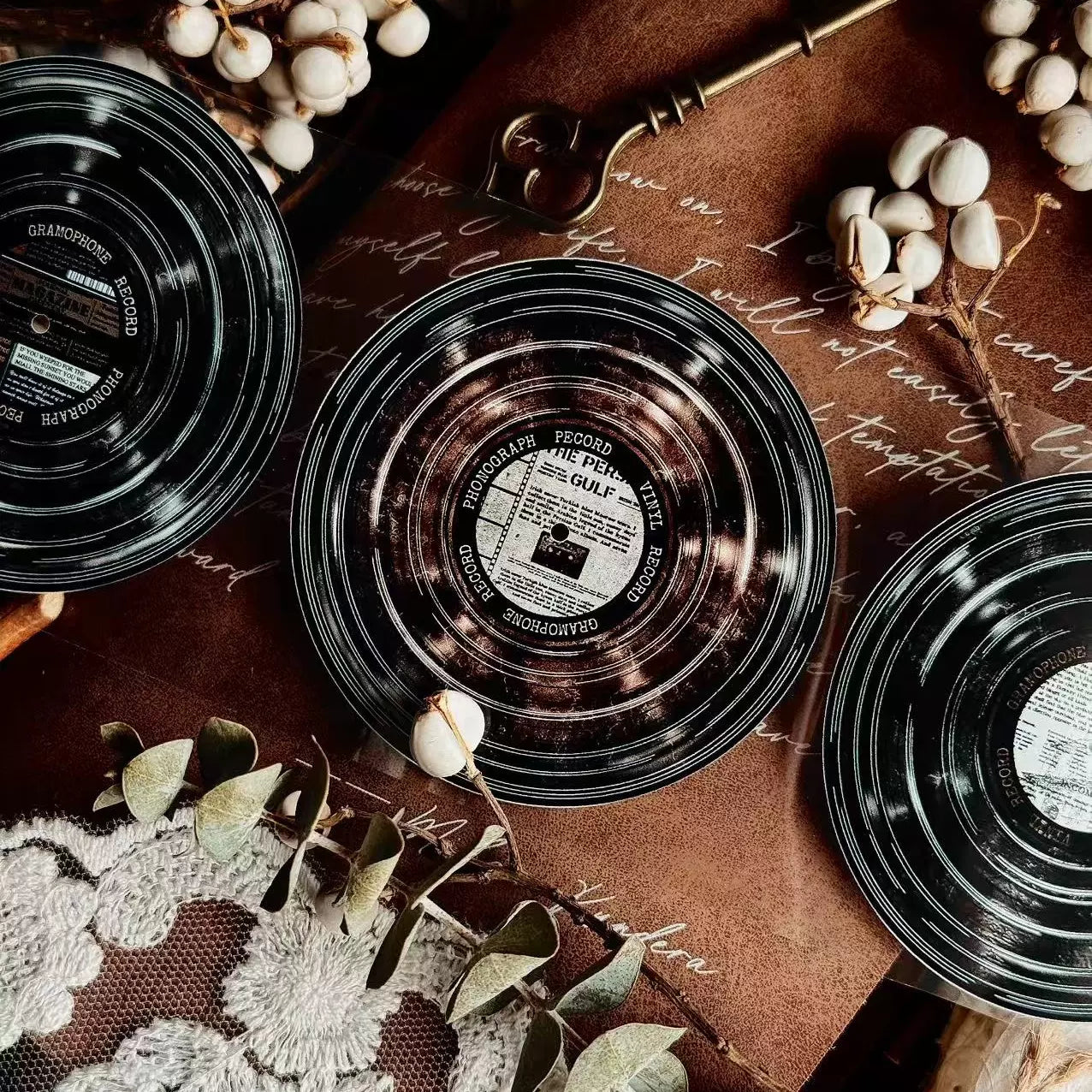 Linlanxi【Record 】 Original Retro Vintage Black Vinyl Record Background Washi/Pet Tape