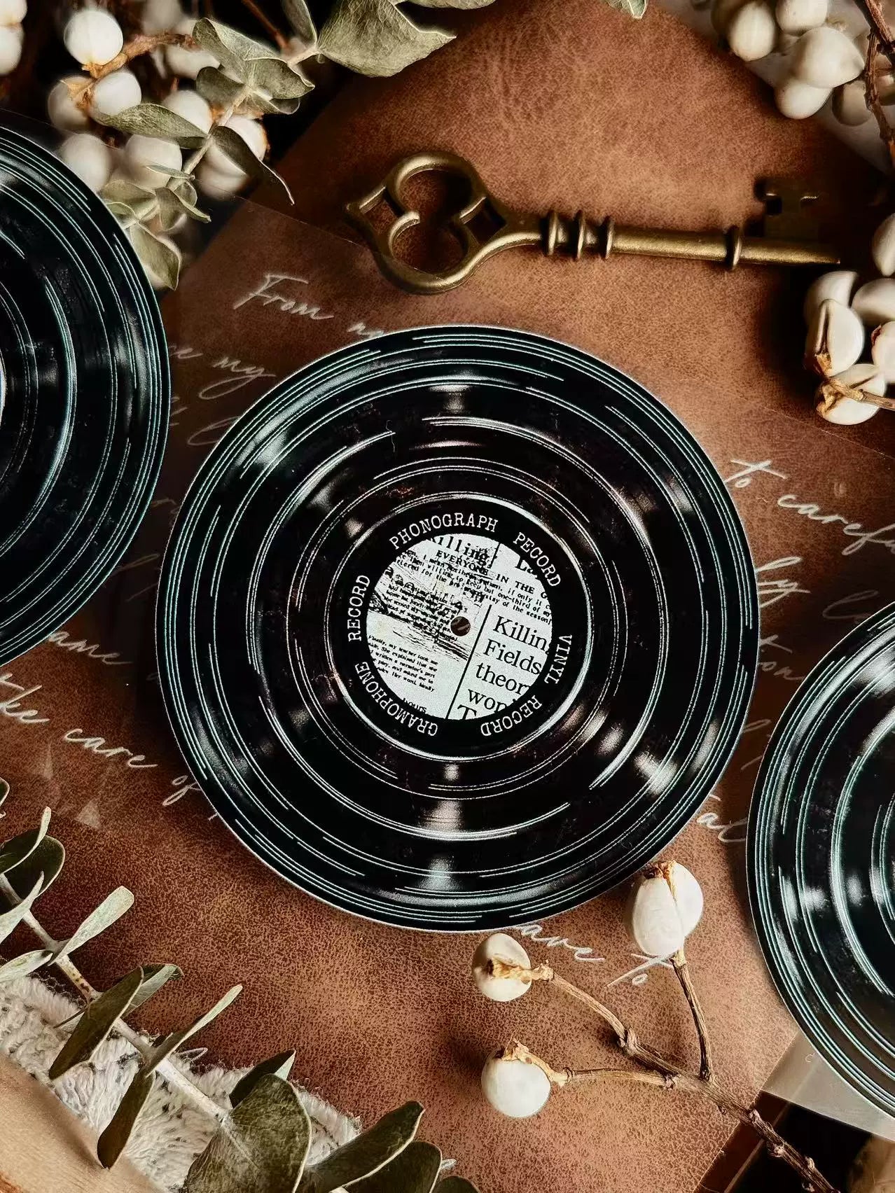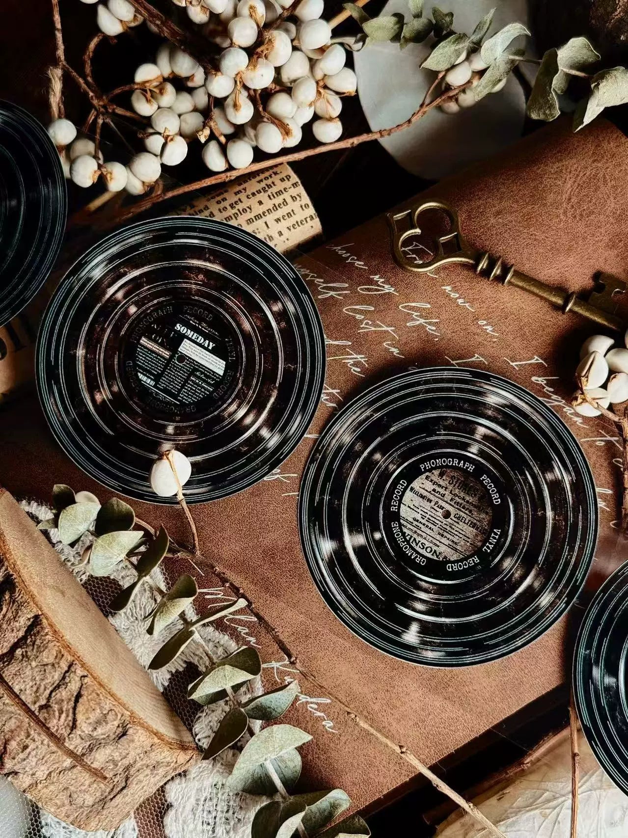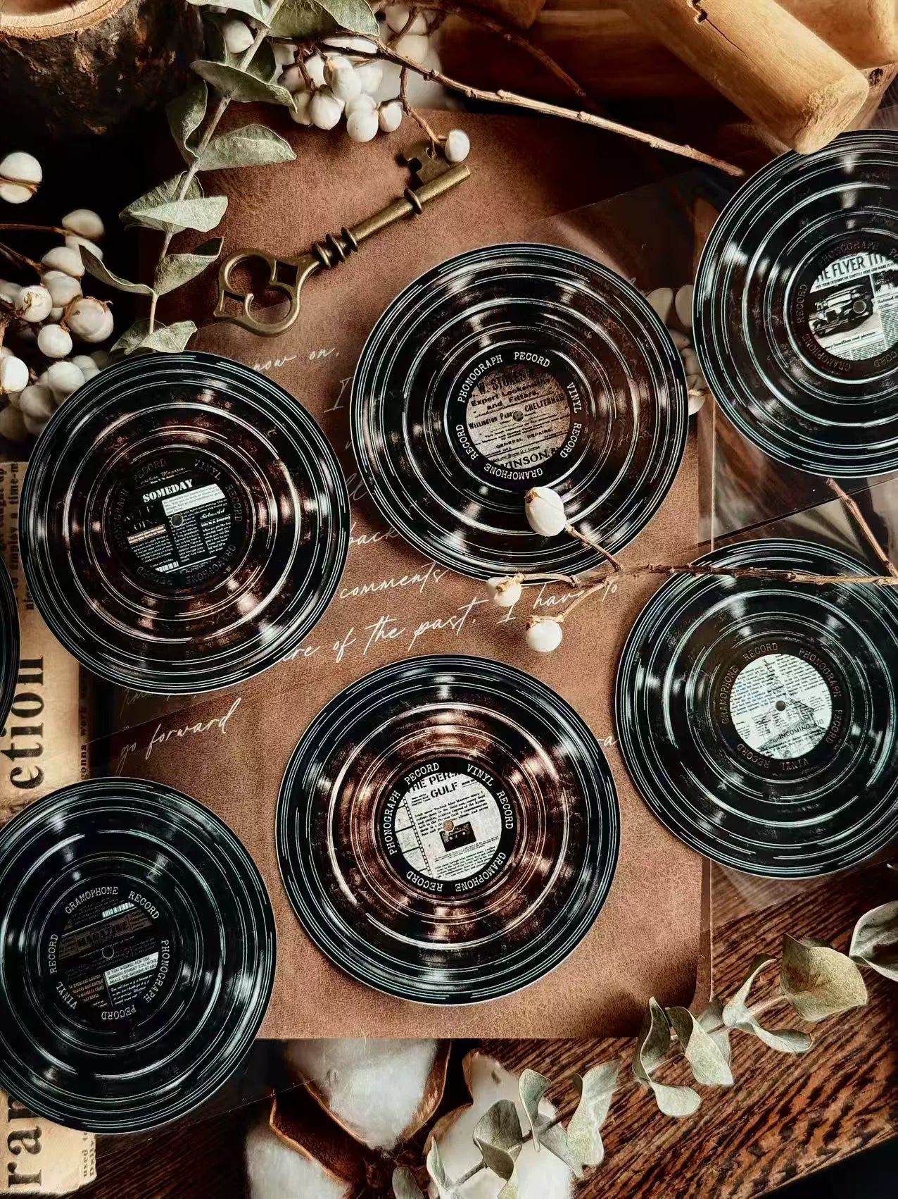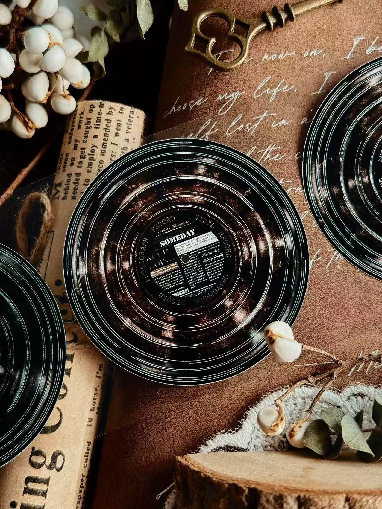 Linlanxi【Record 】 Original Retro Vintage Black Vinyl Record Background Washi/Pet Tape