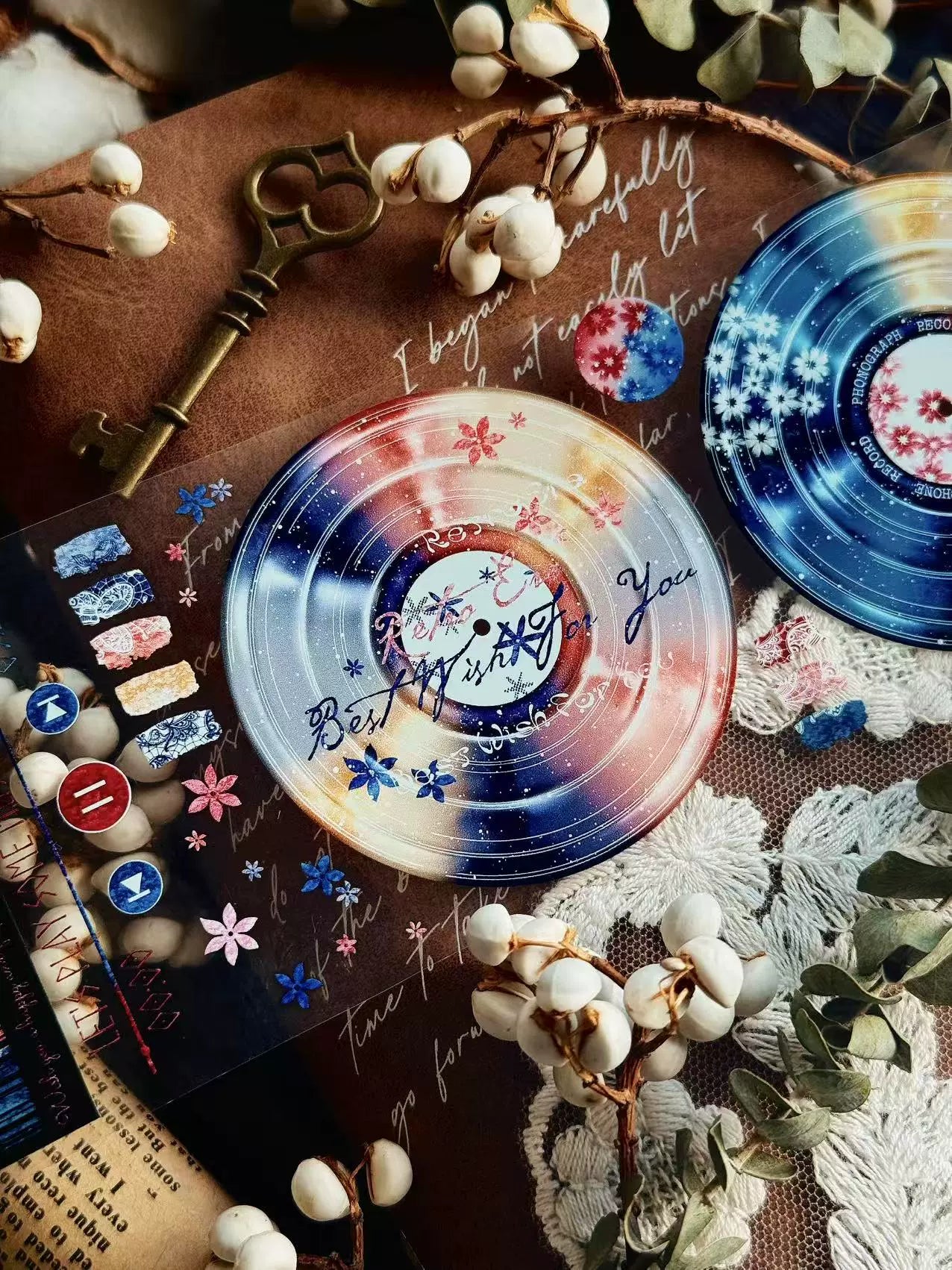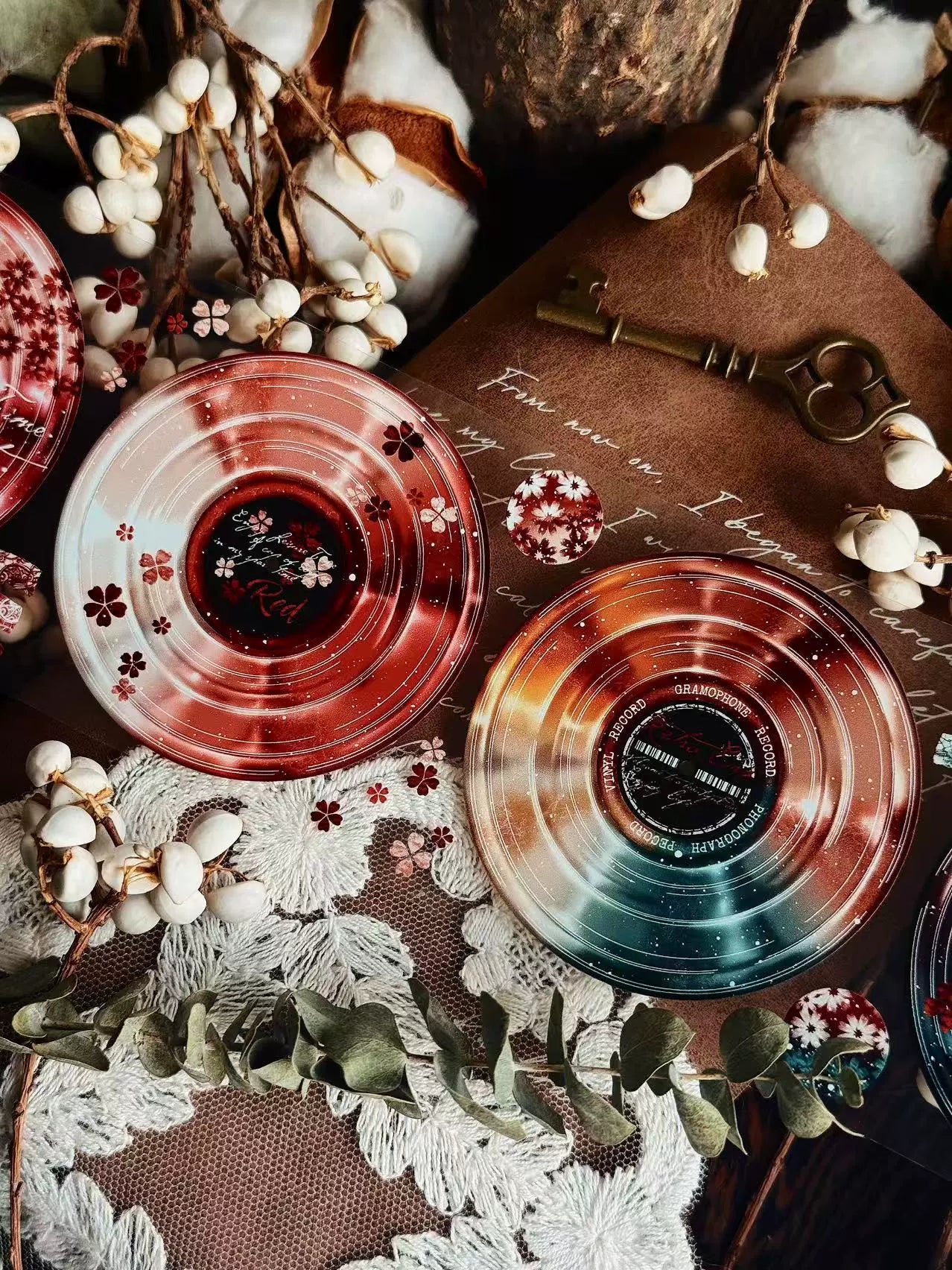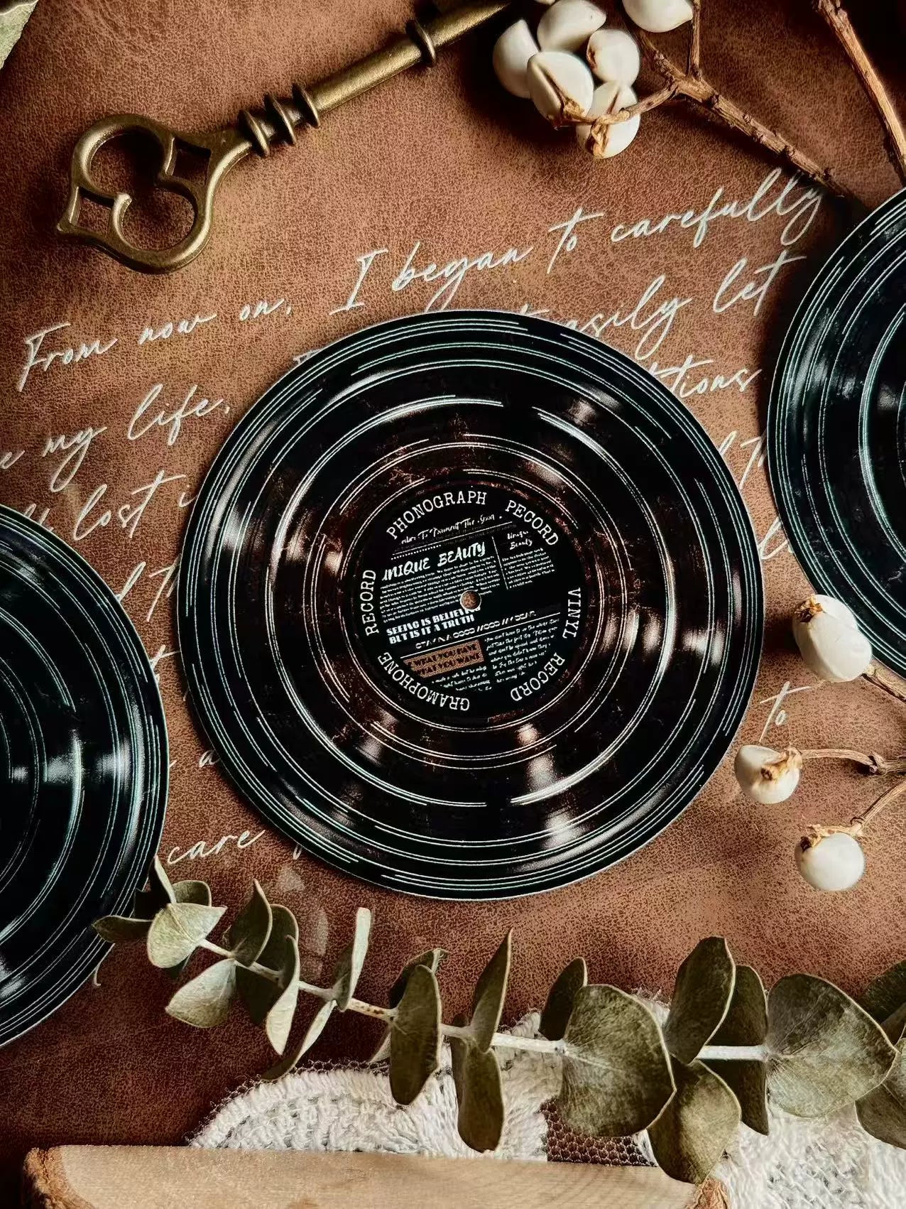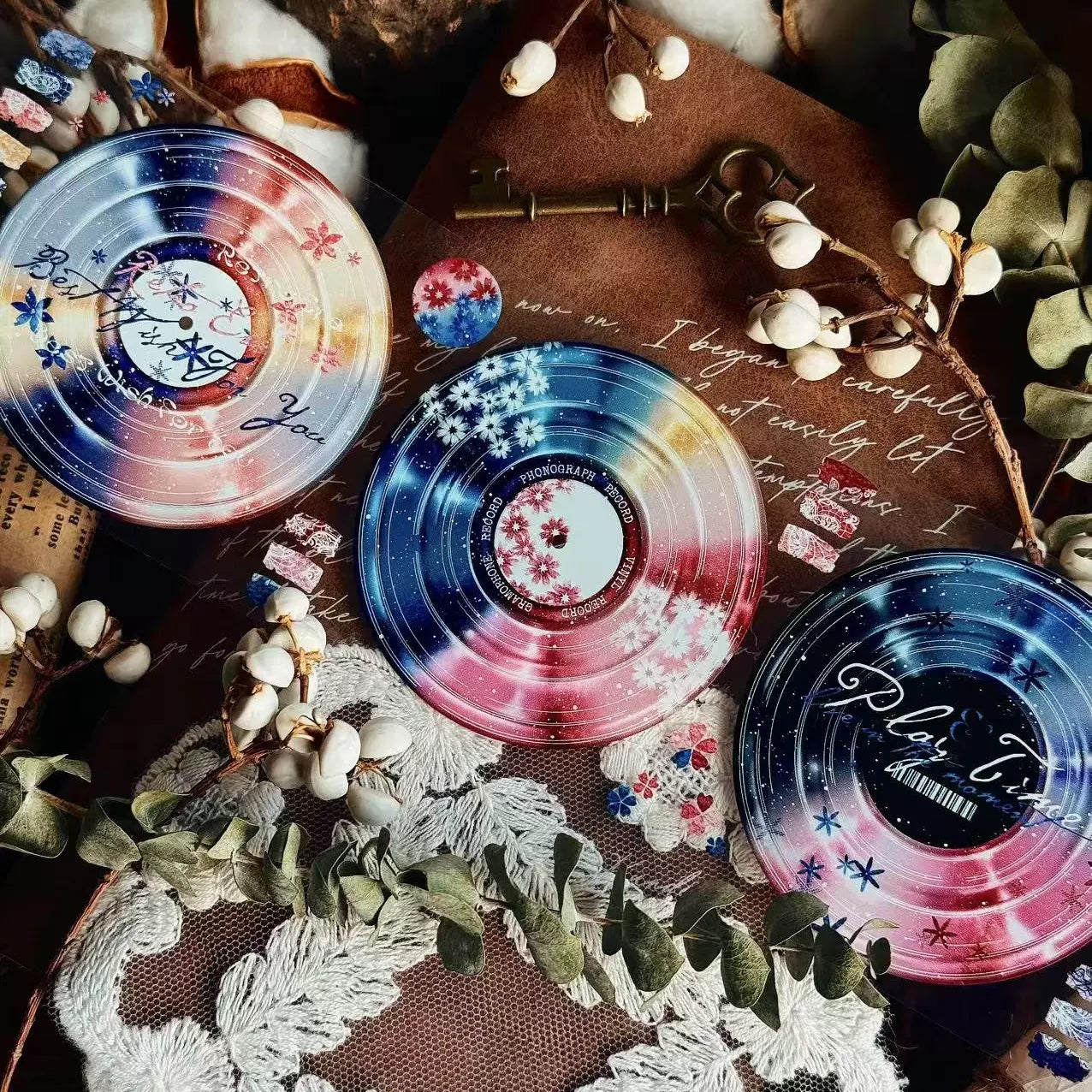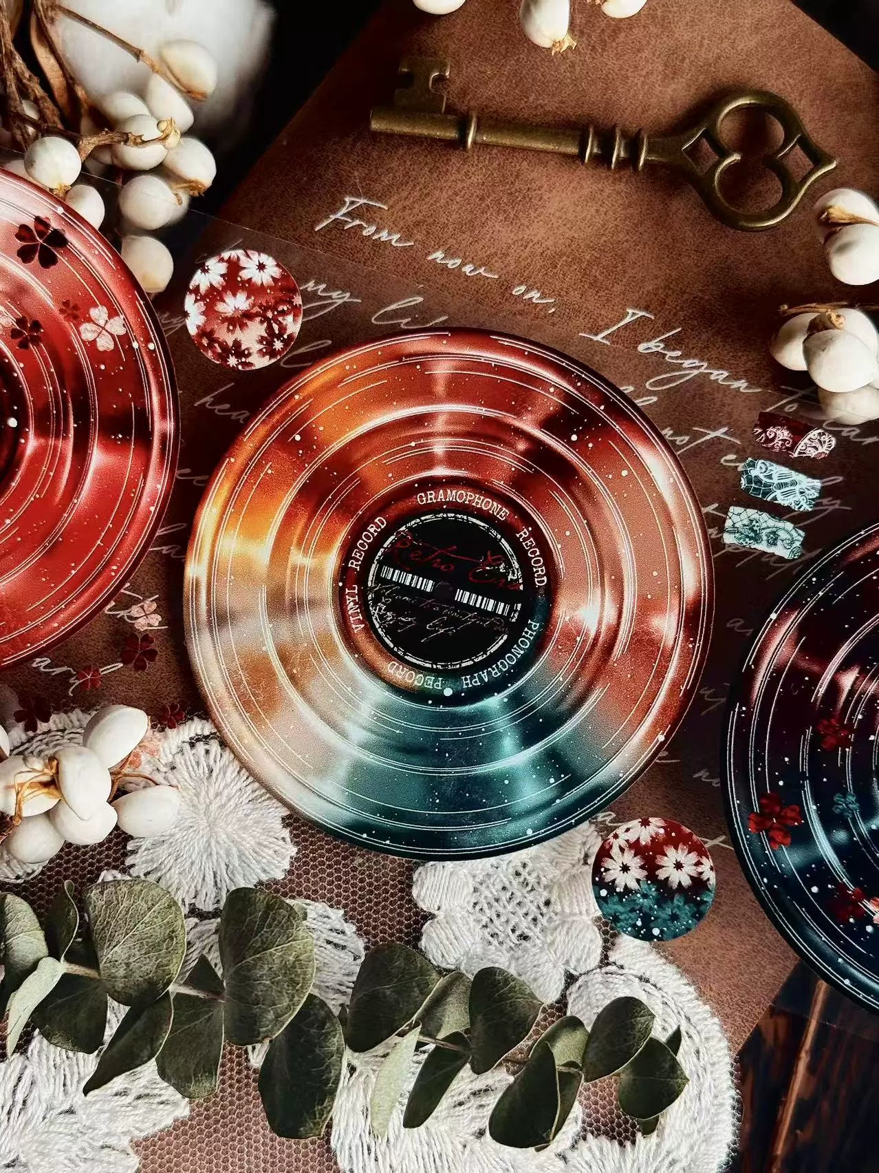 Linlanxi【Record 】 Original Retro Vintage Black Vinyl Record Background Washi/Pet Tape