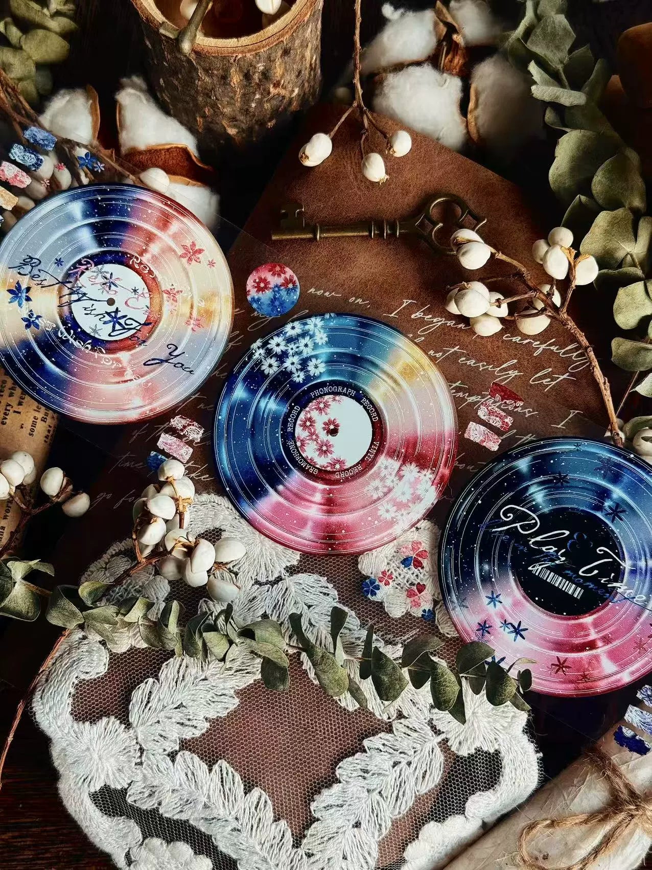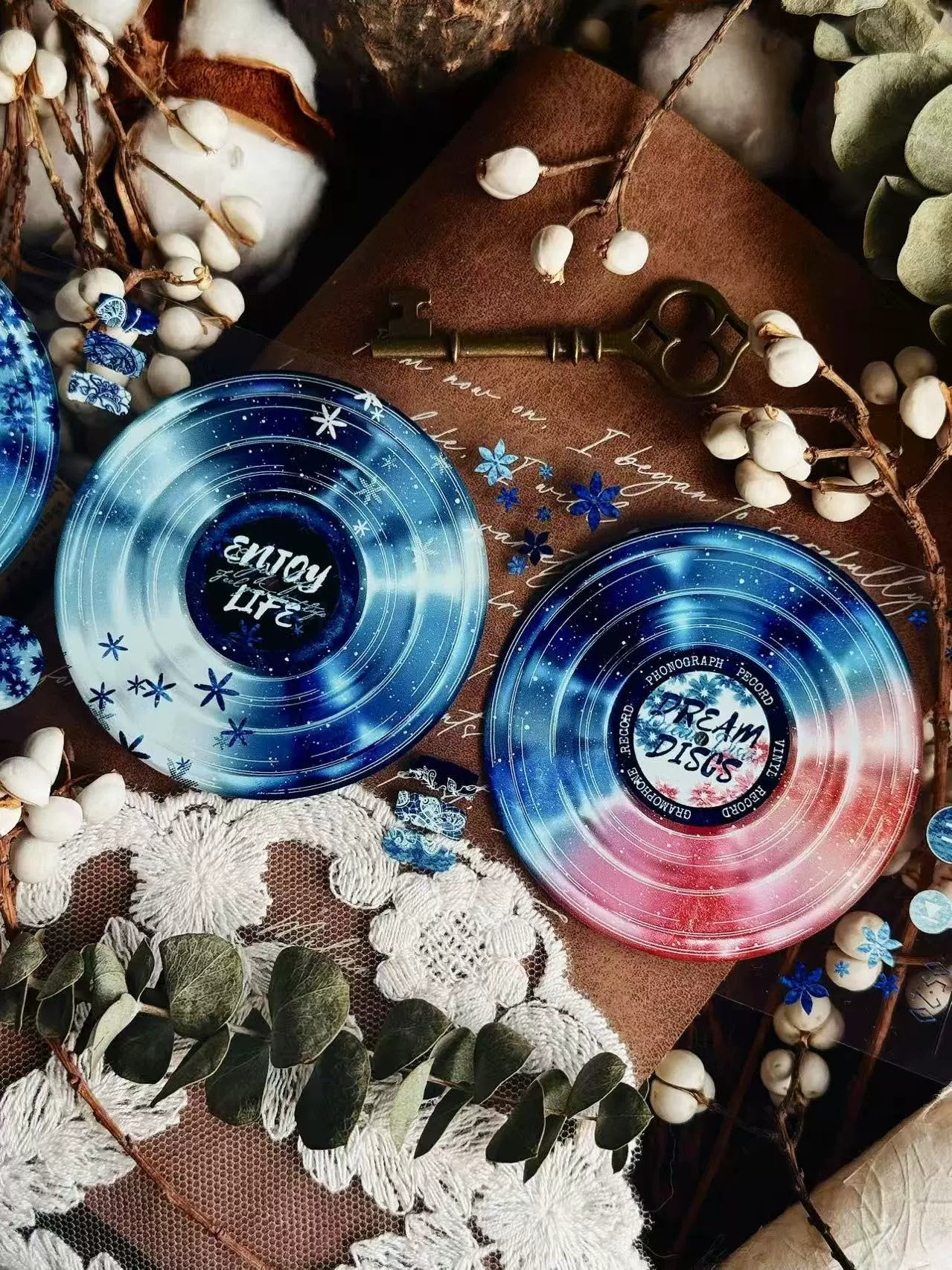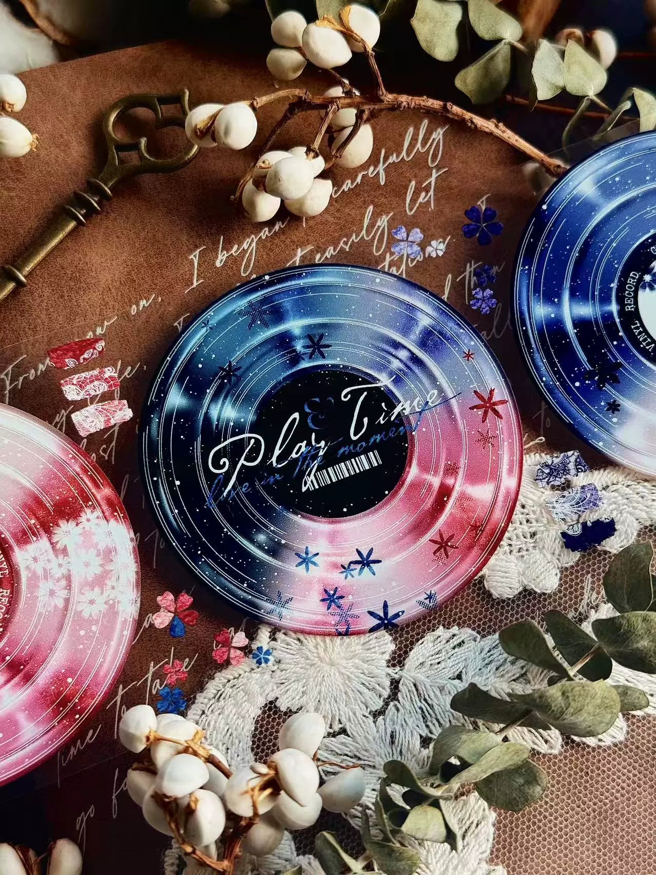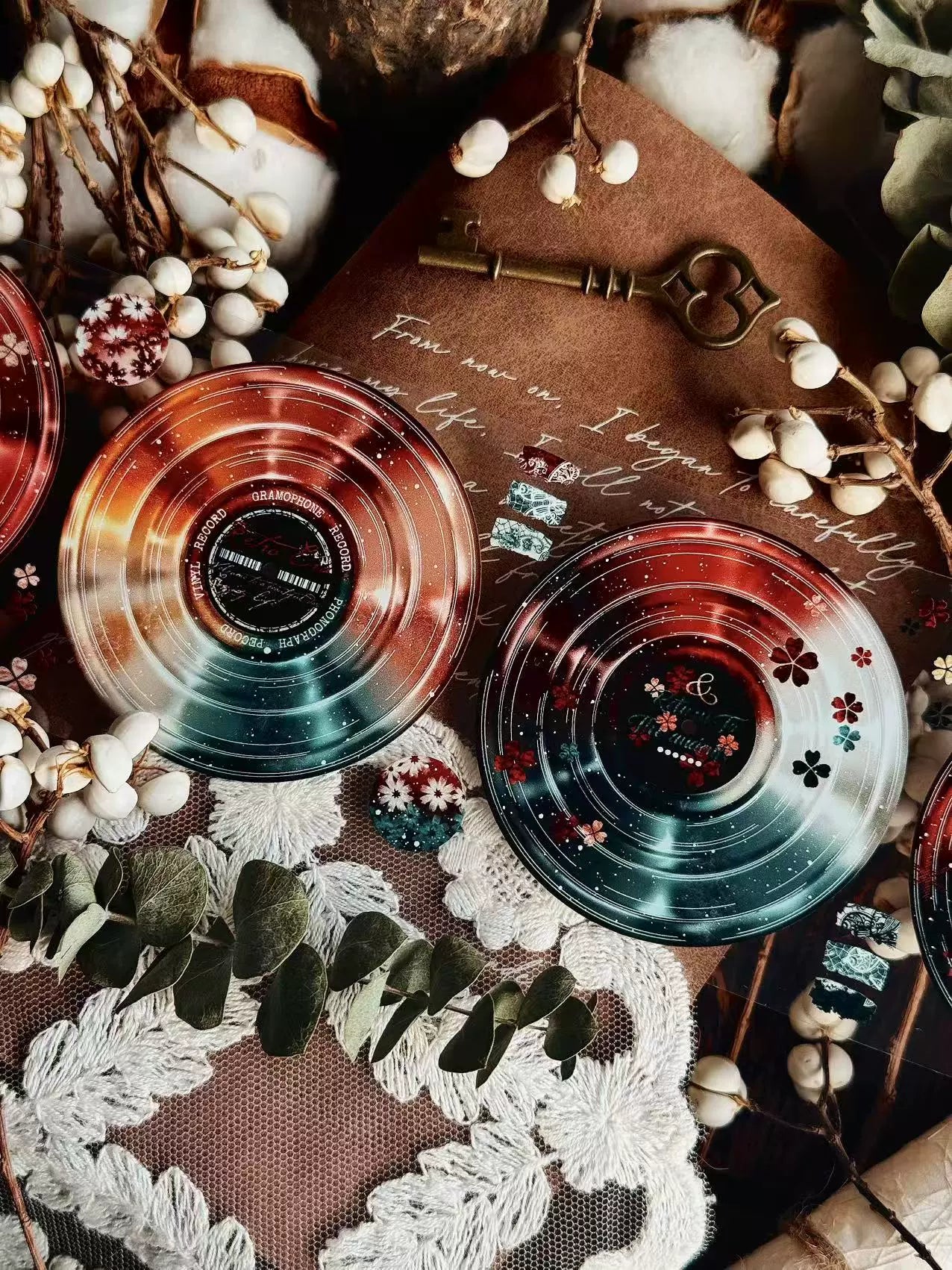 Linlanxi【Record 】 Original Retro Vintage Black Vinyl Record Background Washi/Pet Tape