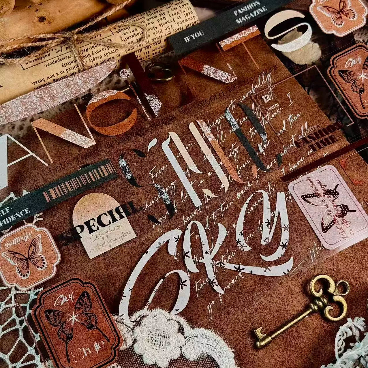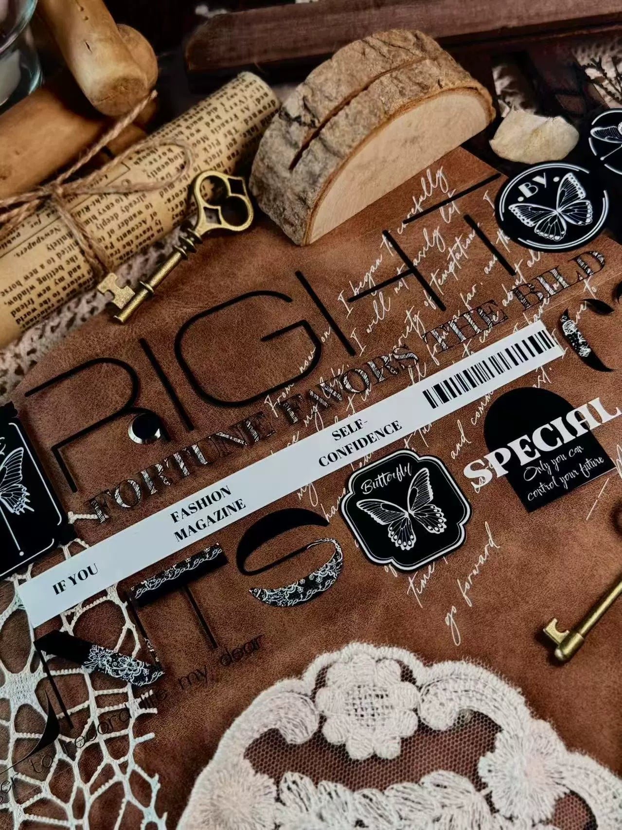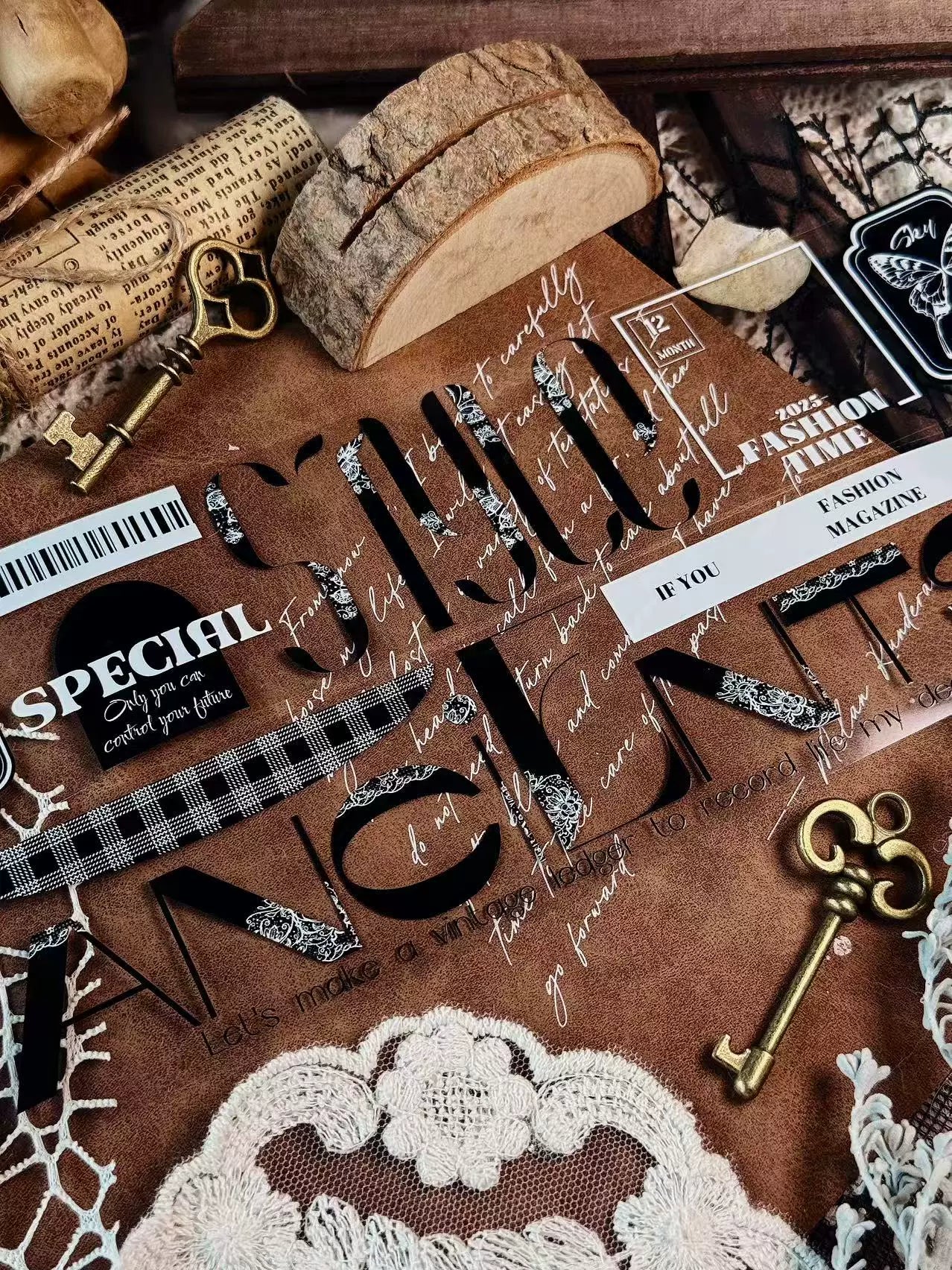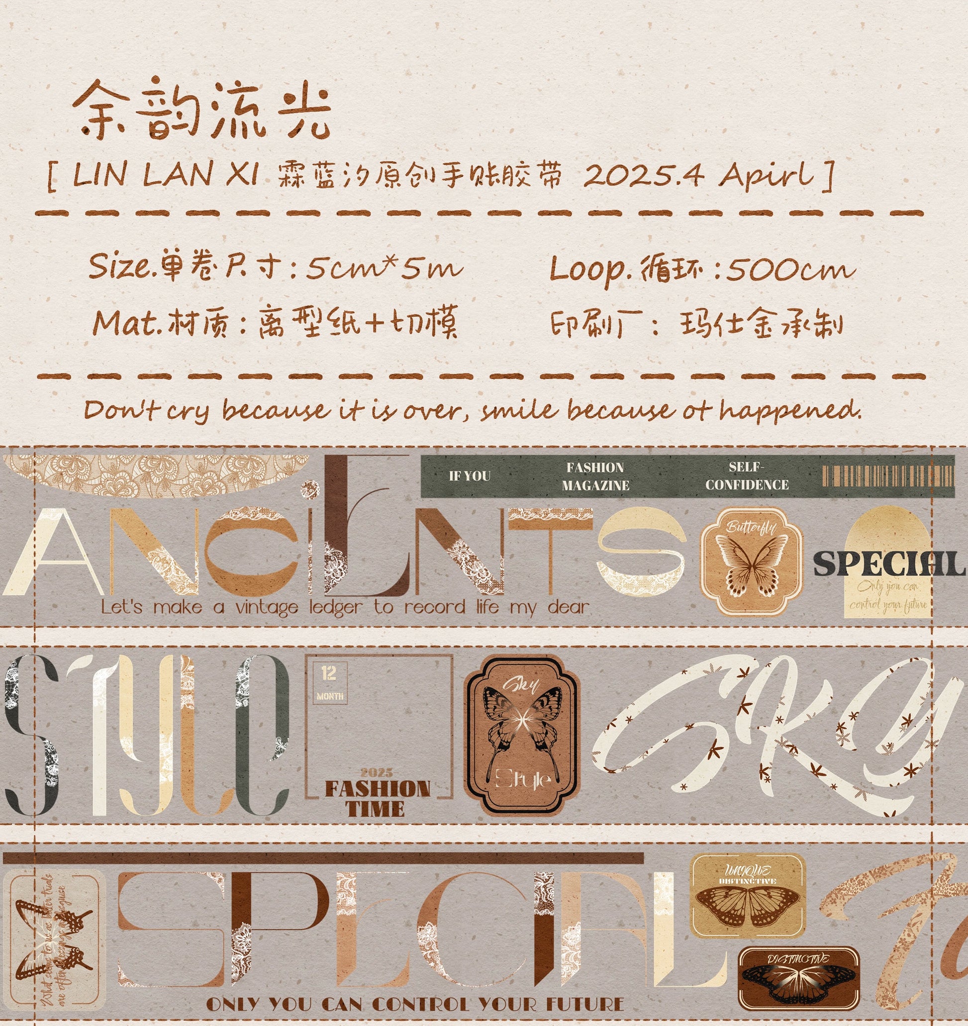 Linlanxi 【Residual Charm and Flowing Light】Original Pre-cut Washi/Pet Tape,New Fashion Retro Wider English Text