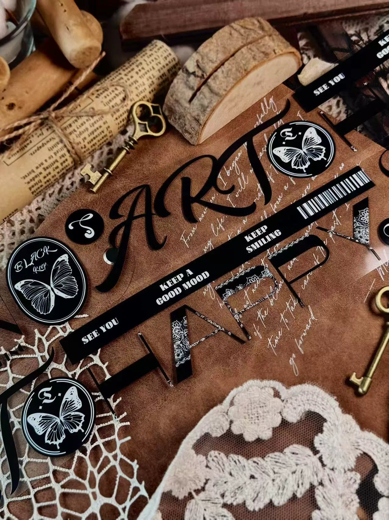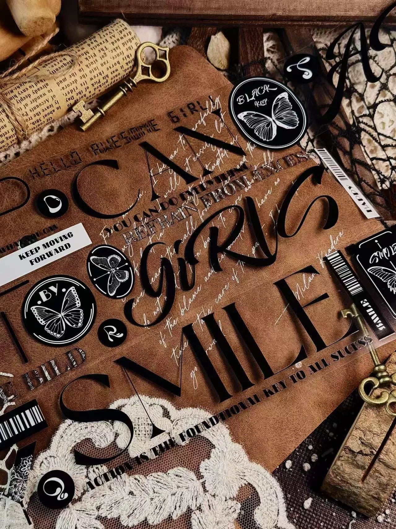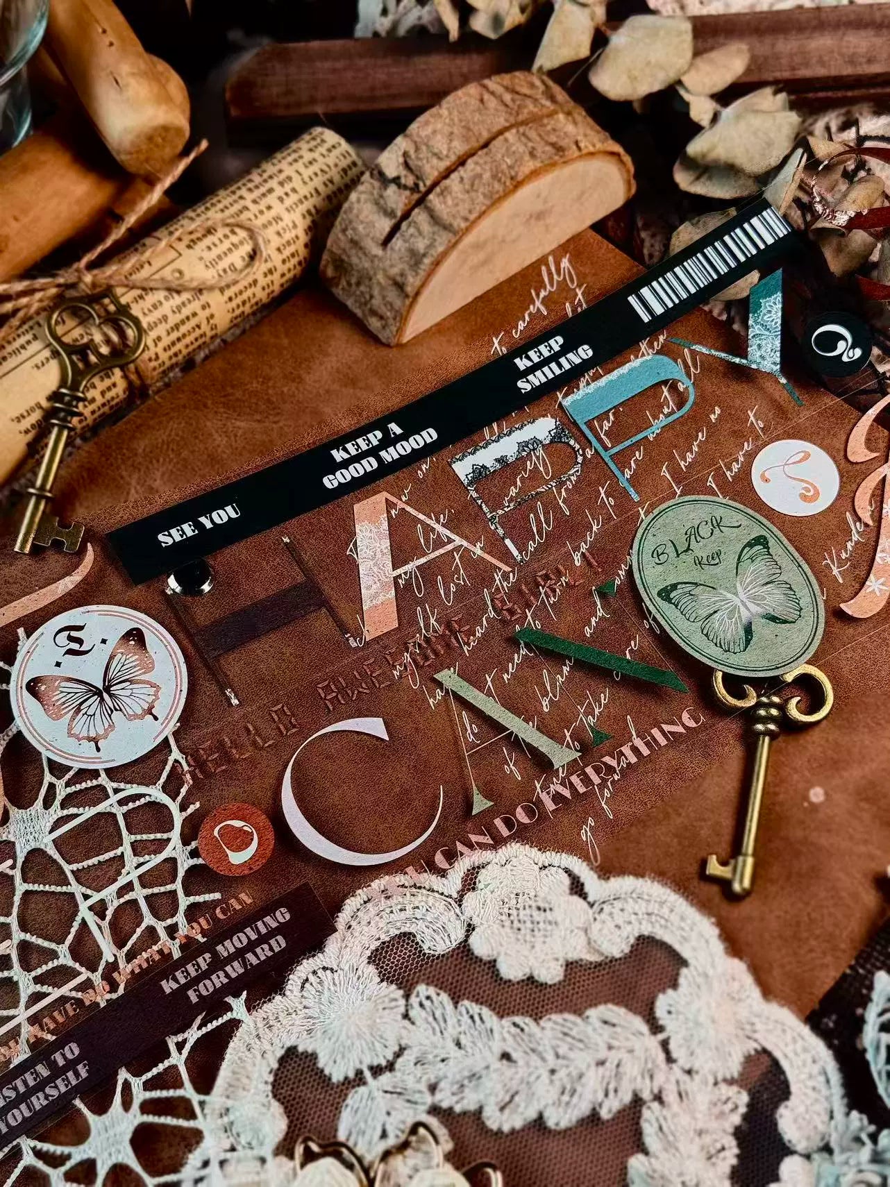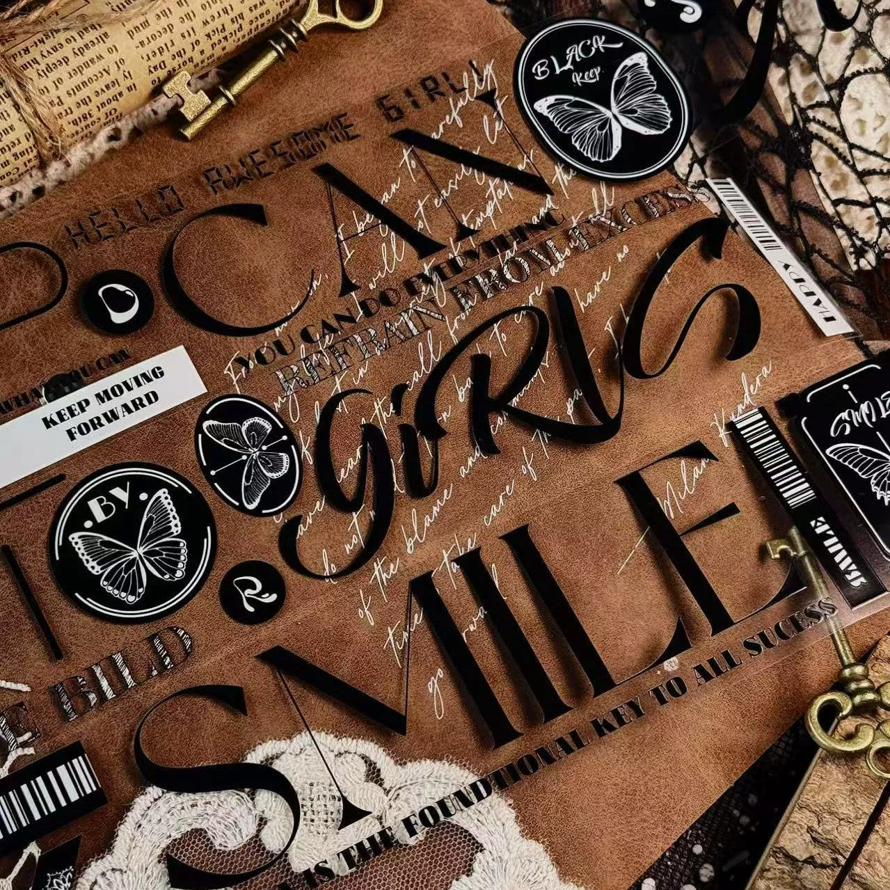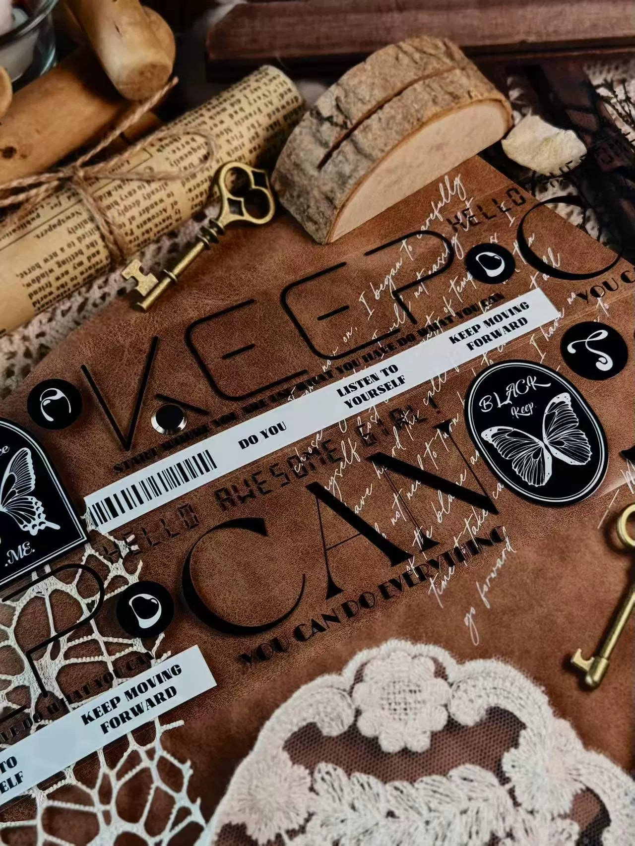 Linlanxi 【Residual Charm and Flowing Light】Original Pre-cut Washi/Pet Tape,New Fashion Retro Wider English Text