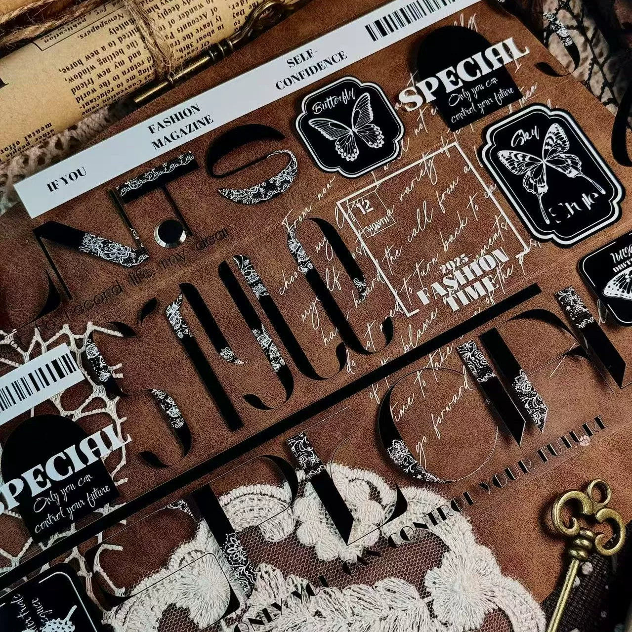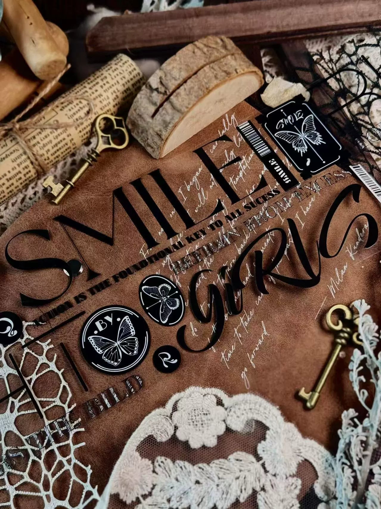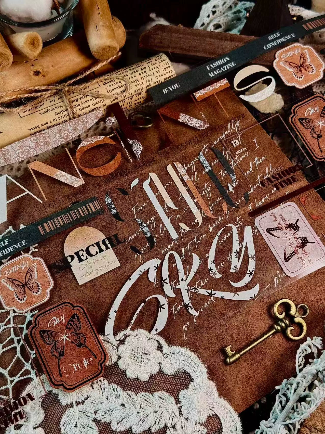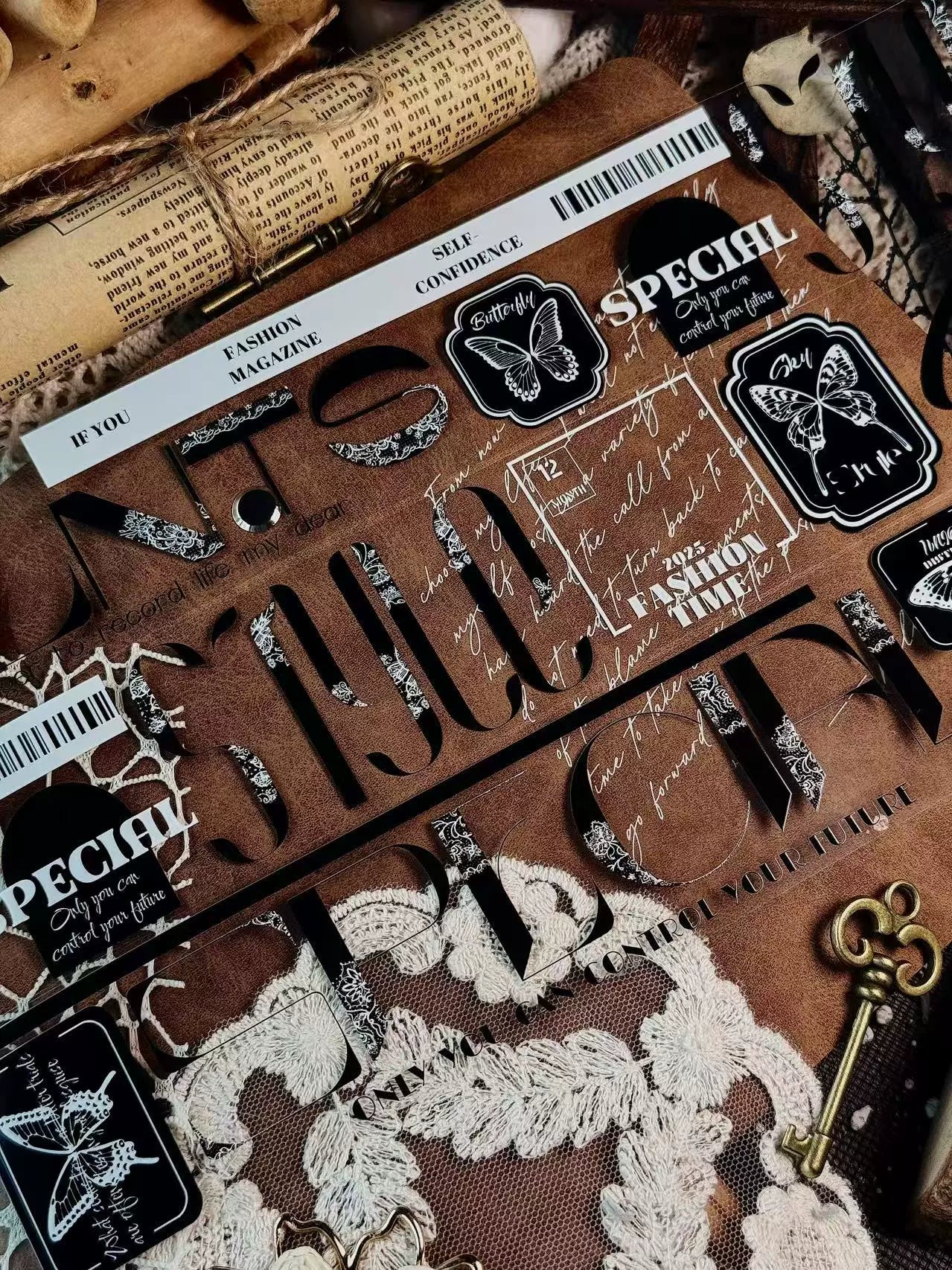 Linlanxi 【Residual Charm and Flowing Light】Original Pre-cut Washi/Pet Tape,New Fashion Retro Wider English Text