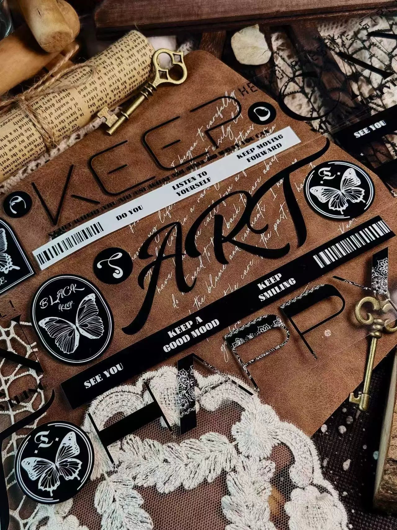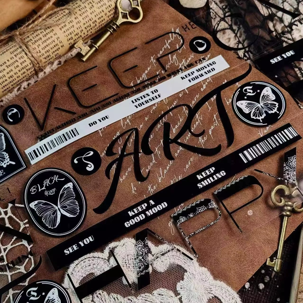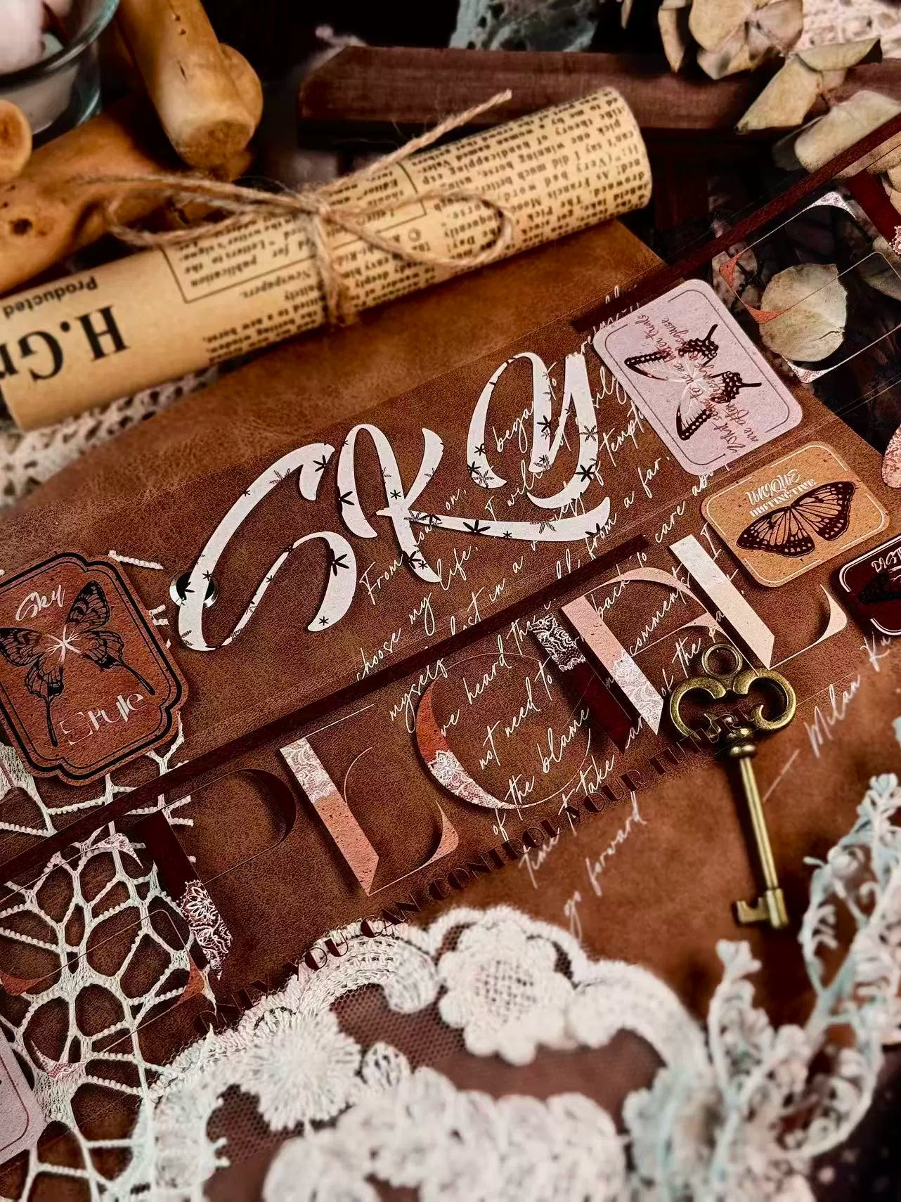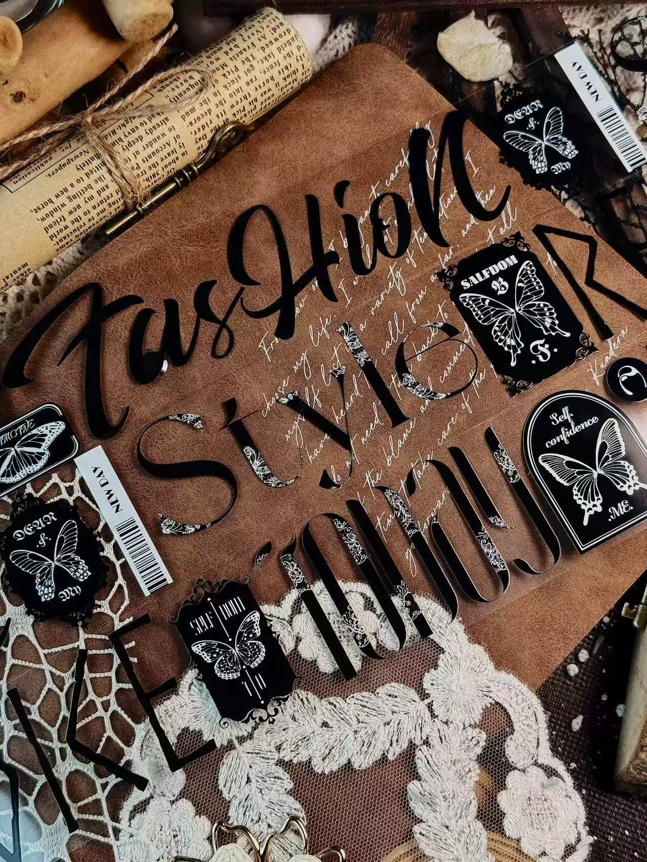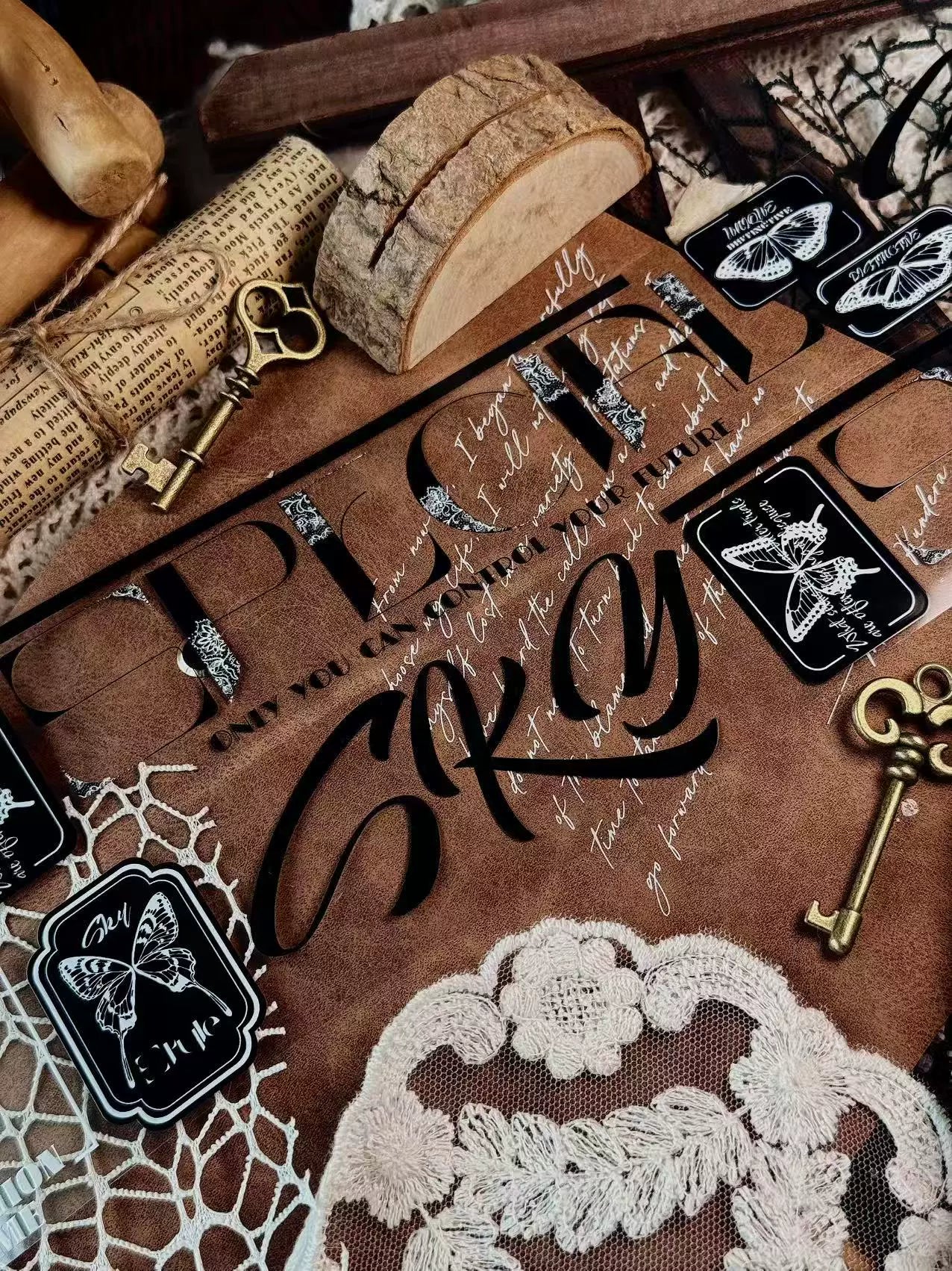 Linlanxi 【Residual Charm and Flowing Light】Original Pre-cut Washi/Pet Tape,New Fashion Retro Wider English Text