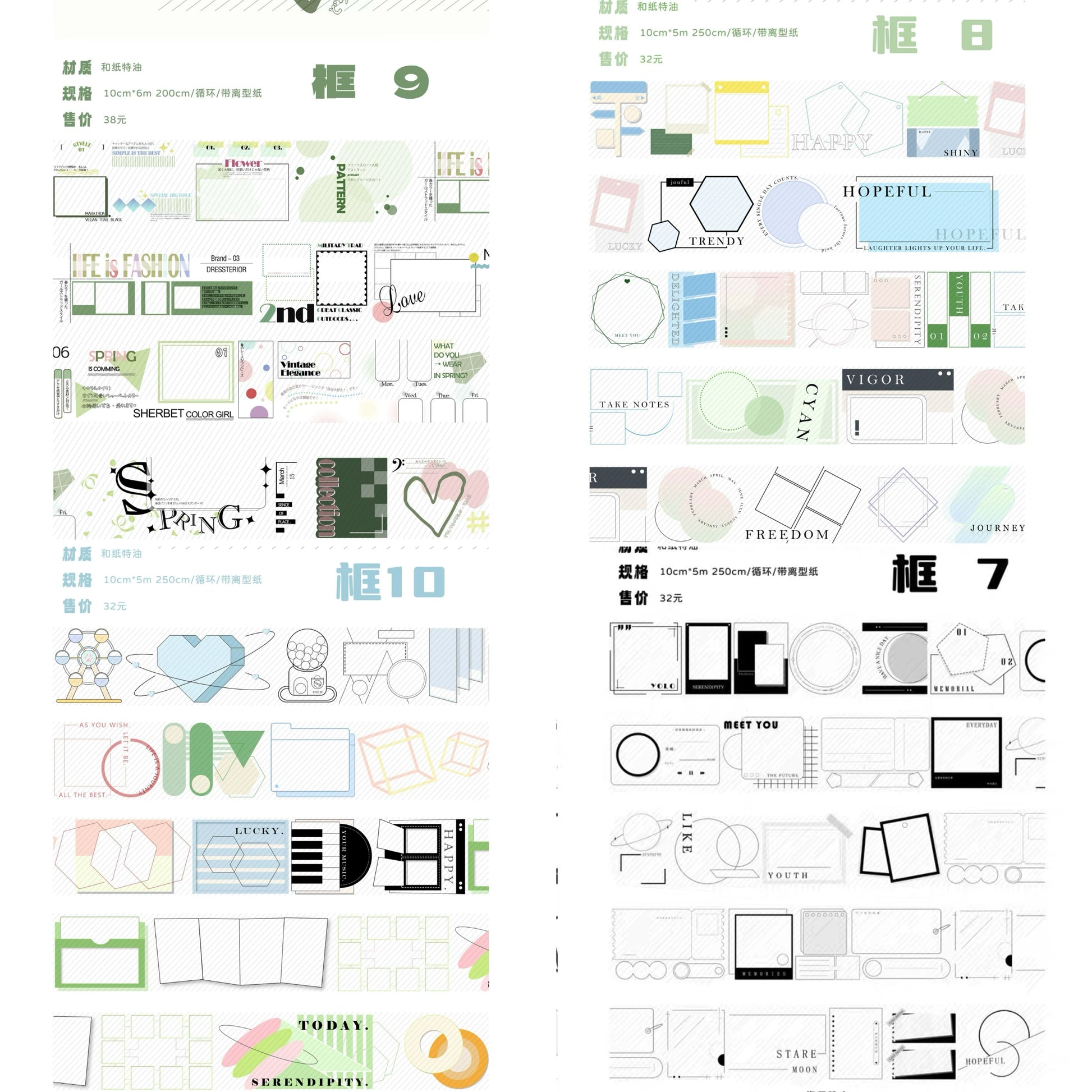 Meet Again Studio【Versatile Frame Series(7-10) in April 2025】Washi/PET Tape,for Scrapbook Supplies,Scrapbook Tape Stickers,Junk Journal Supplies