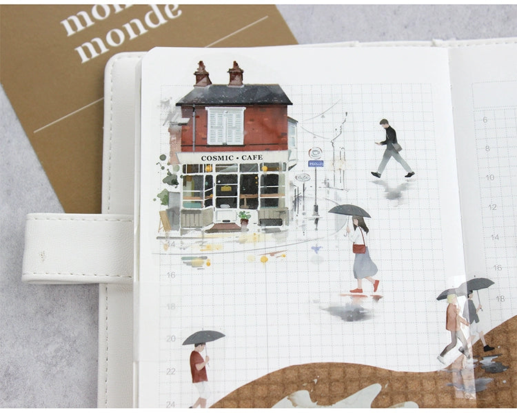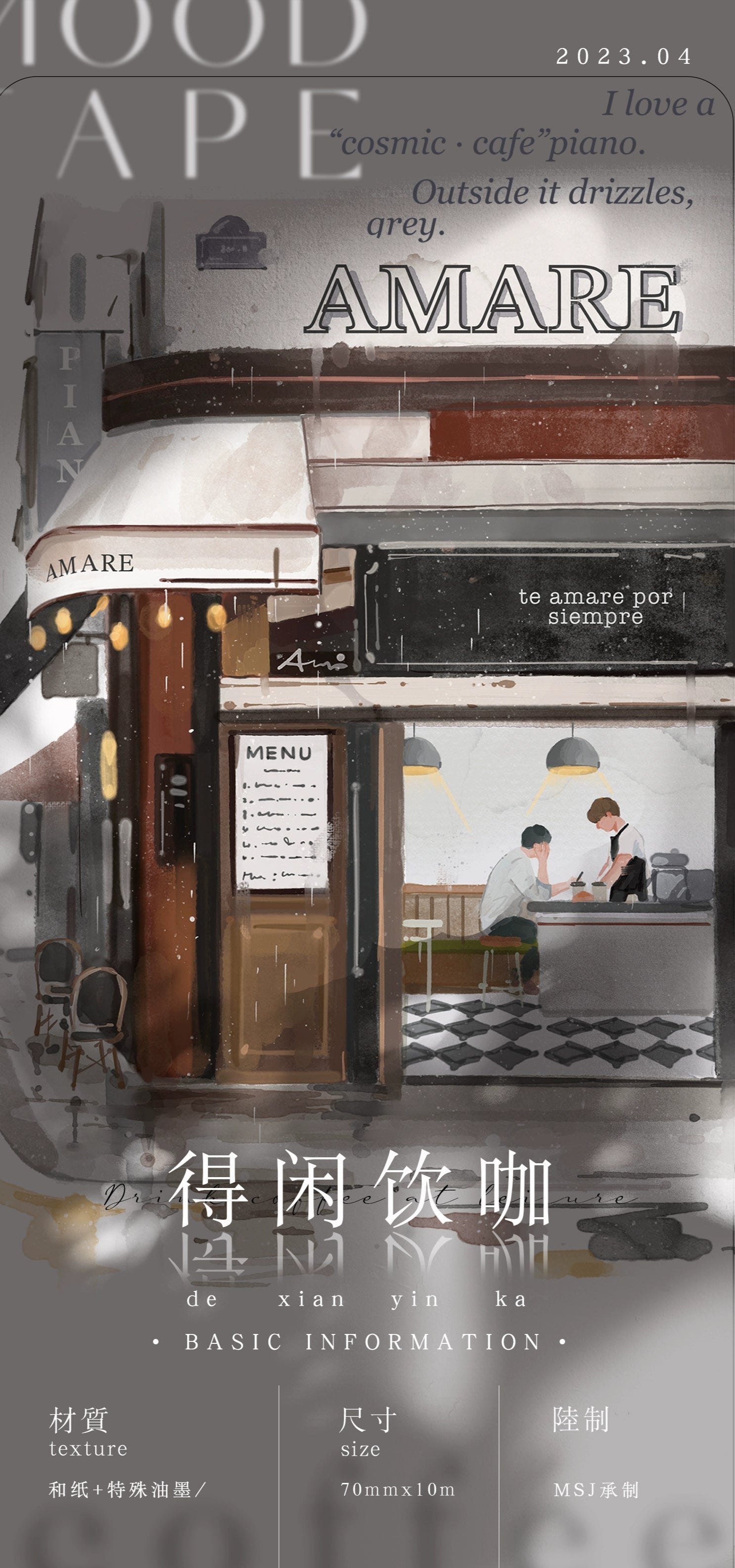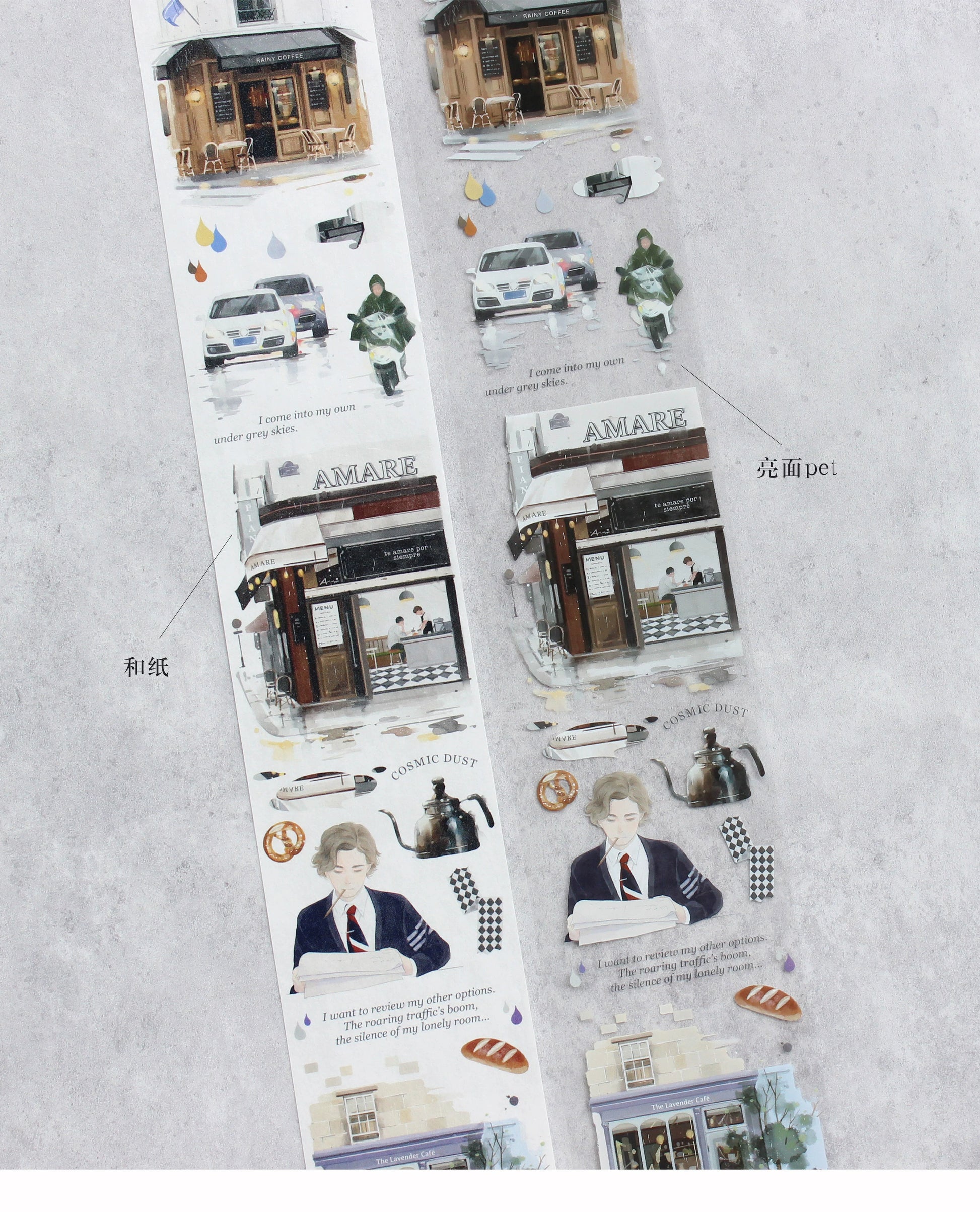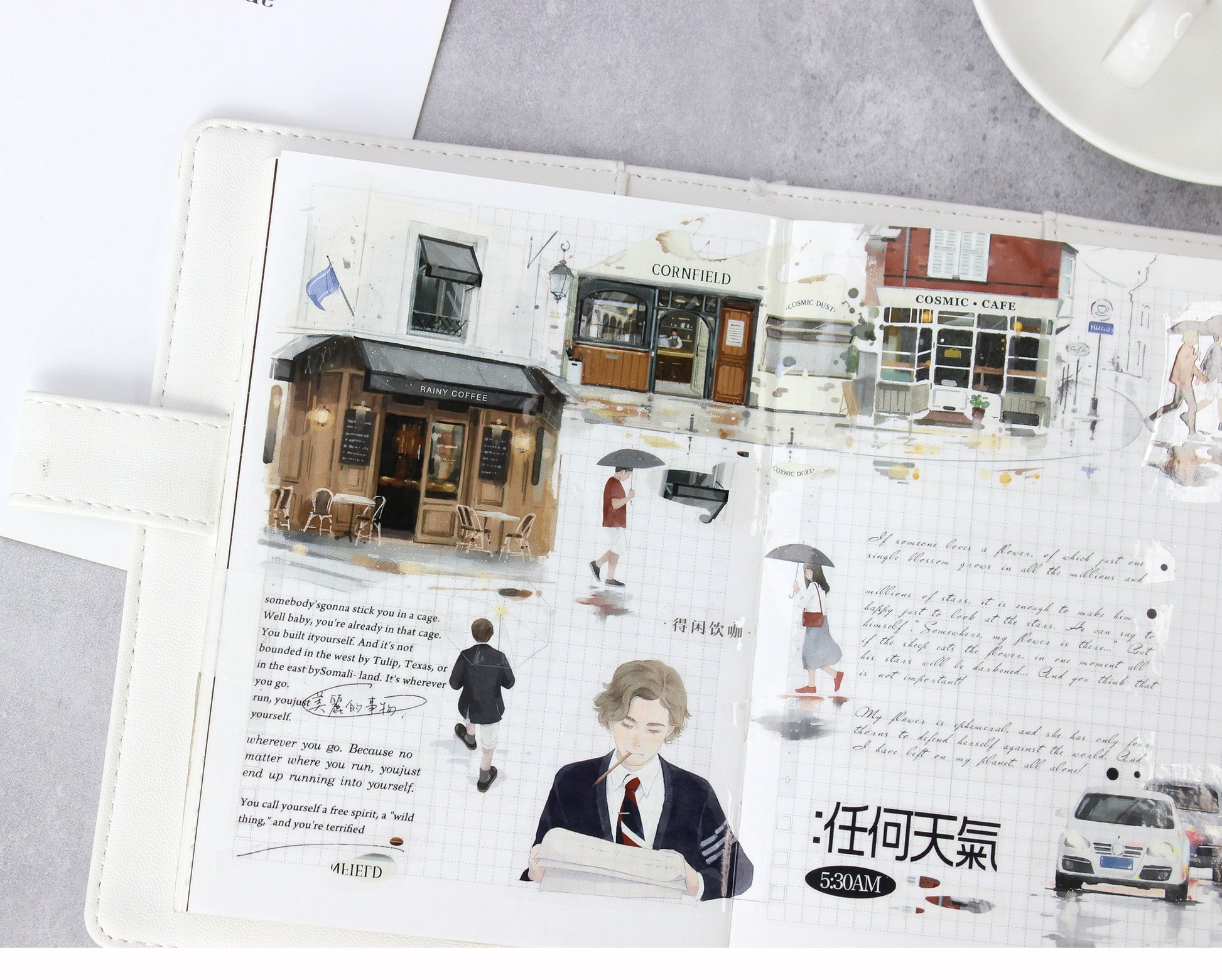 Moodtape【Leisurely Drinking Coffee】Coffee Shop Washi Tape Stickers for DIY Decorative Materials,Scrapbook Supplies,Junk Journal