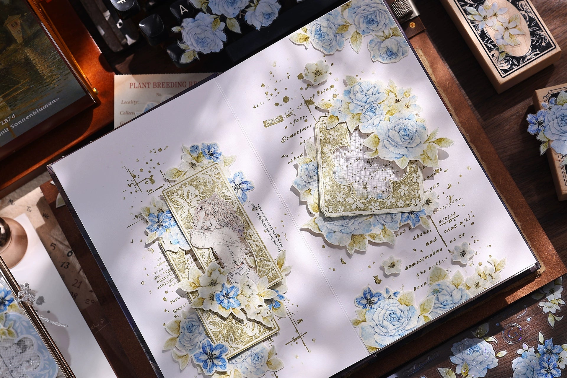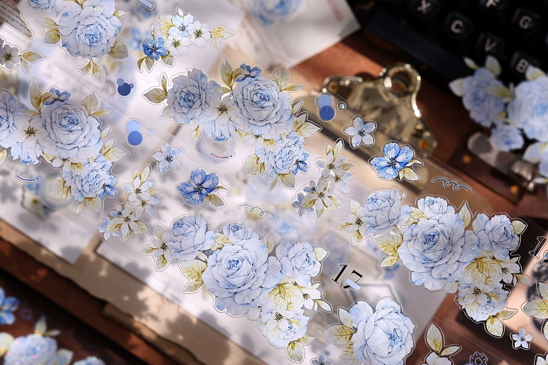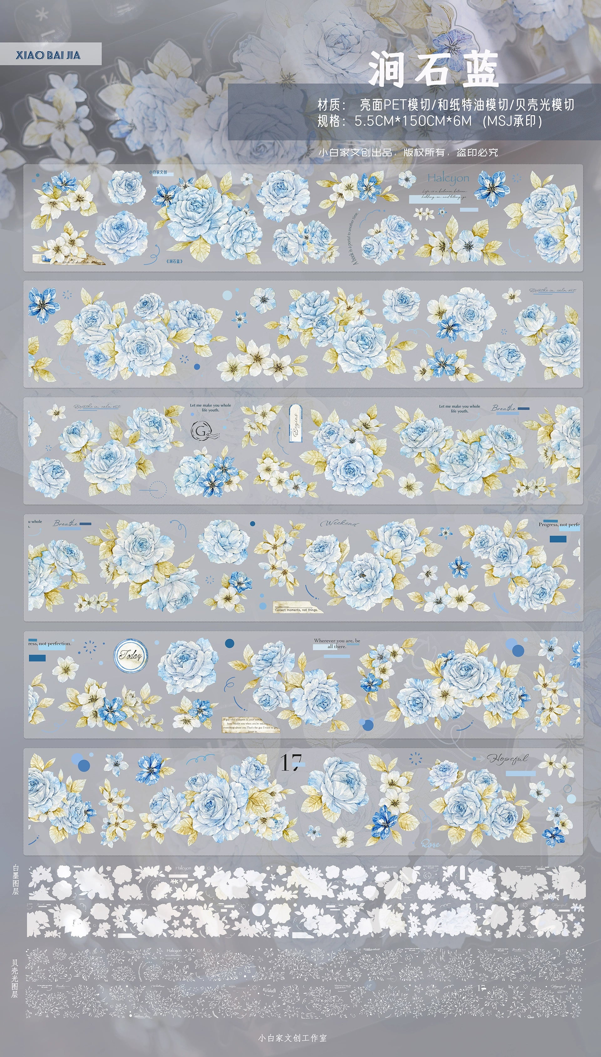 XiaoBaiJia【Jian Shi Blue】Light Retro Orginal Design Washi Pet Tape Landscape Stickers