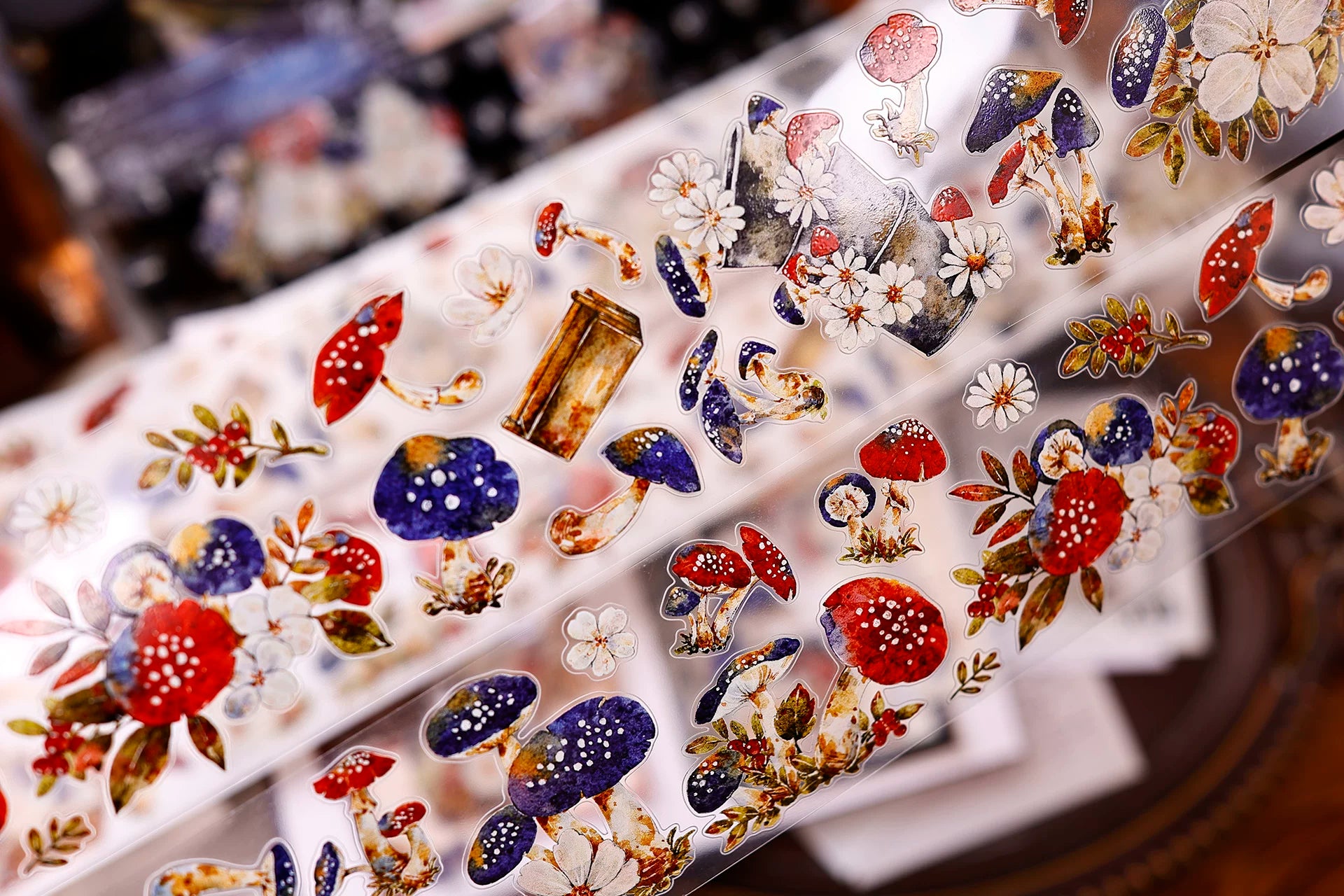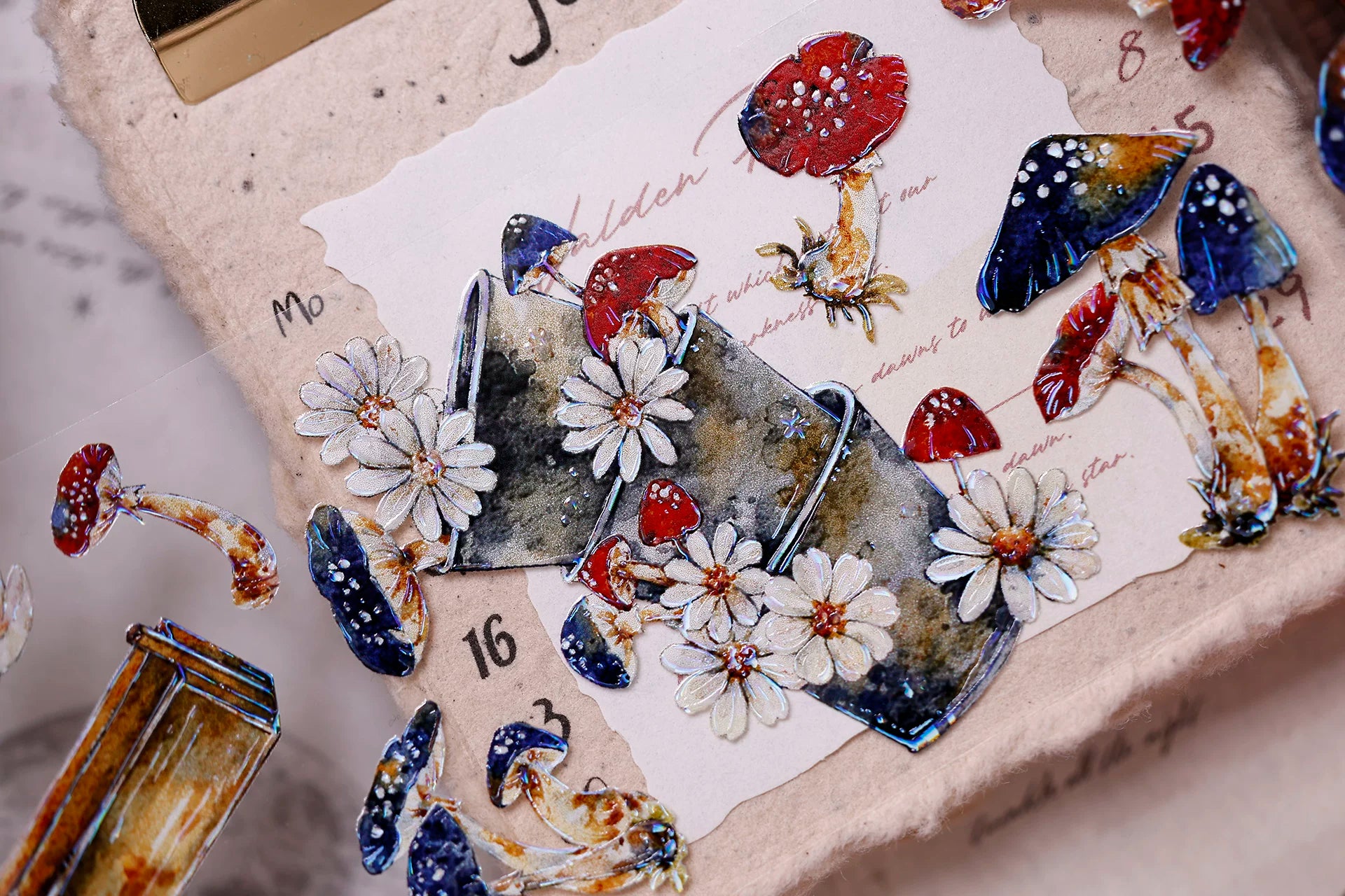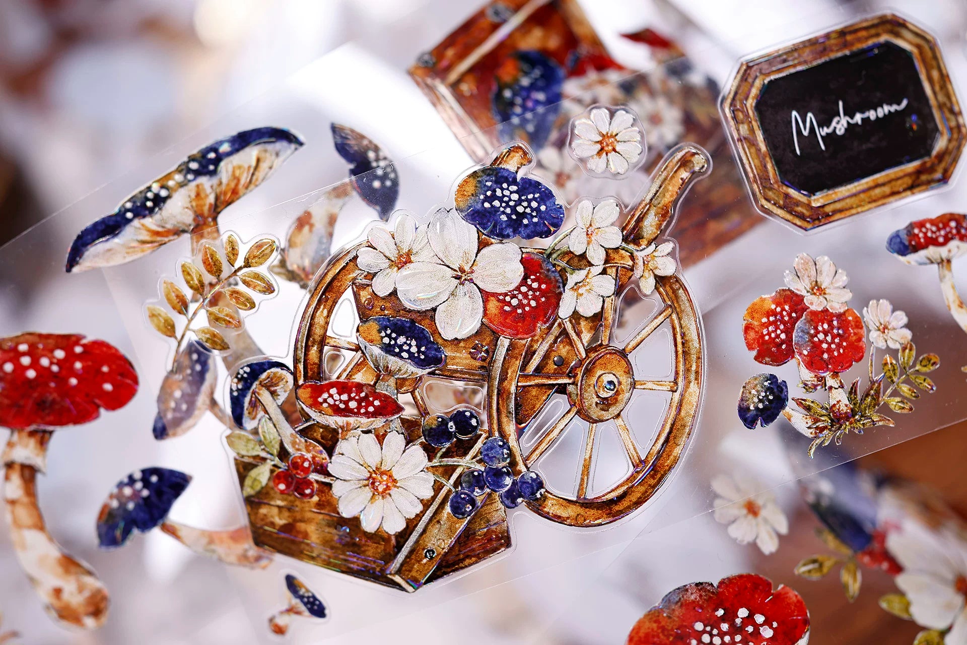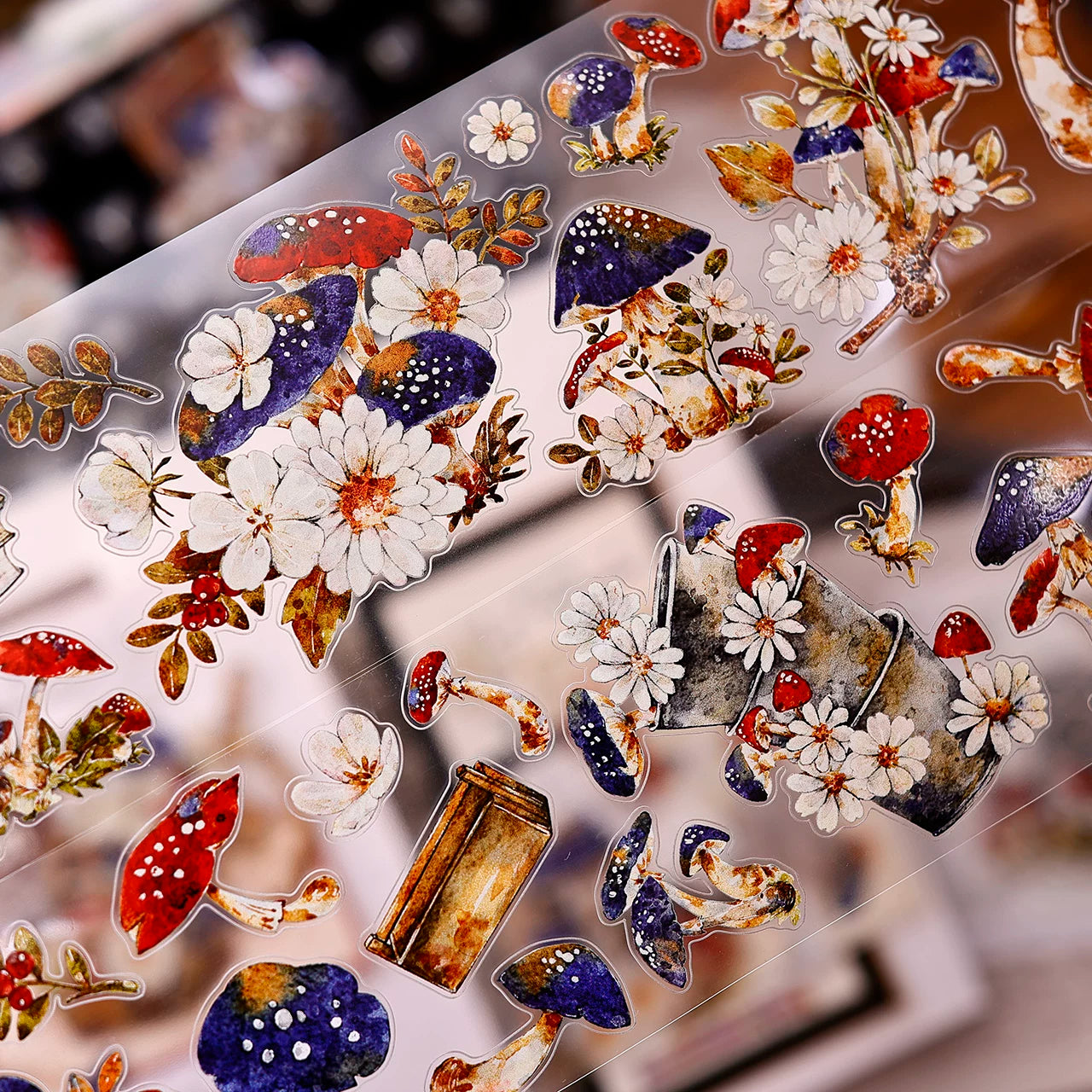 XiaoBaiJia【Mushroom Tales in the Woods】Orginal Design Kiss-cut Washi Pet Floral Tape Light Retro Landscaping Stickers