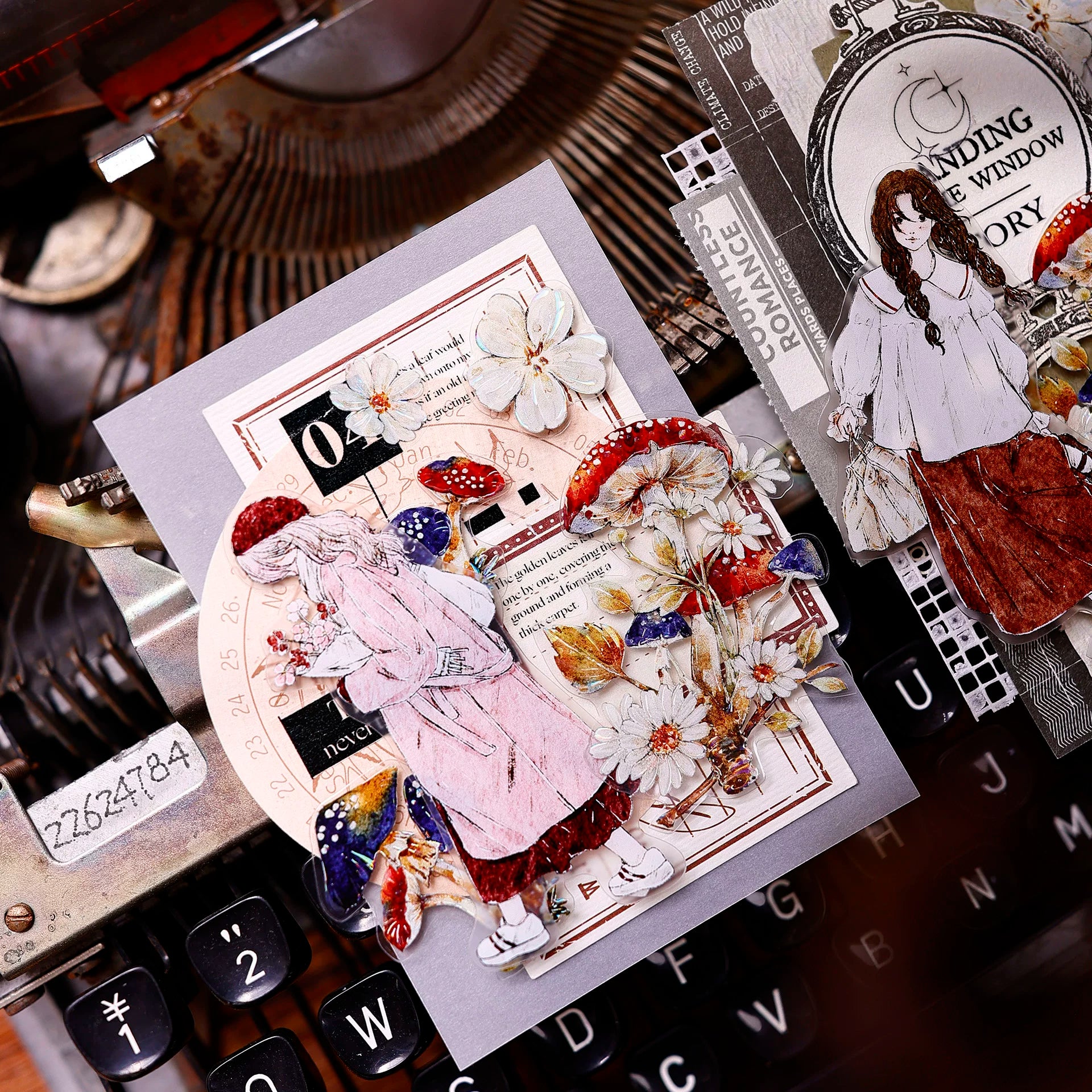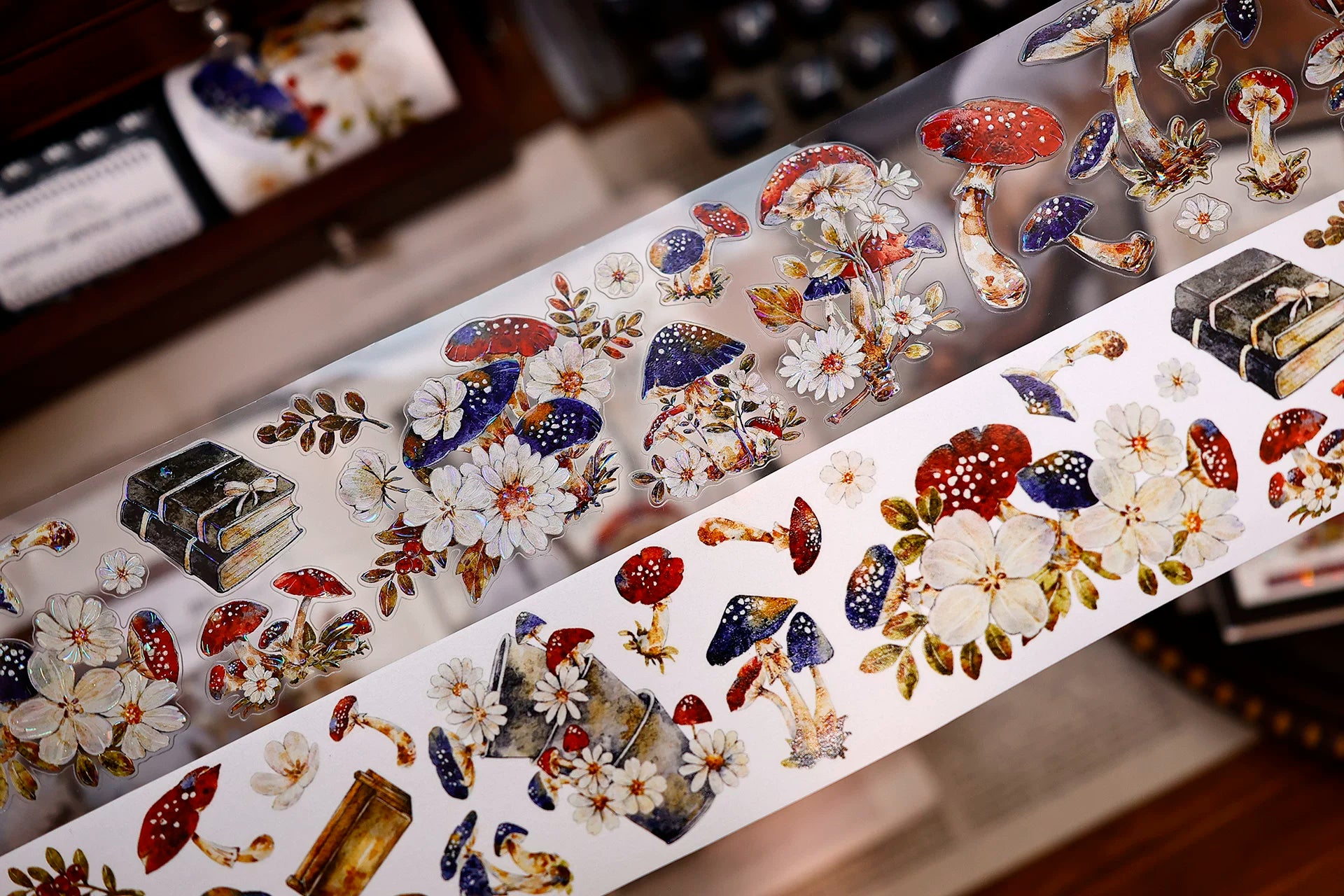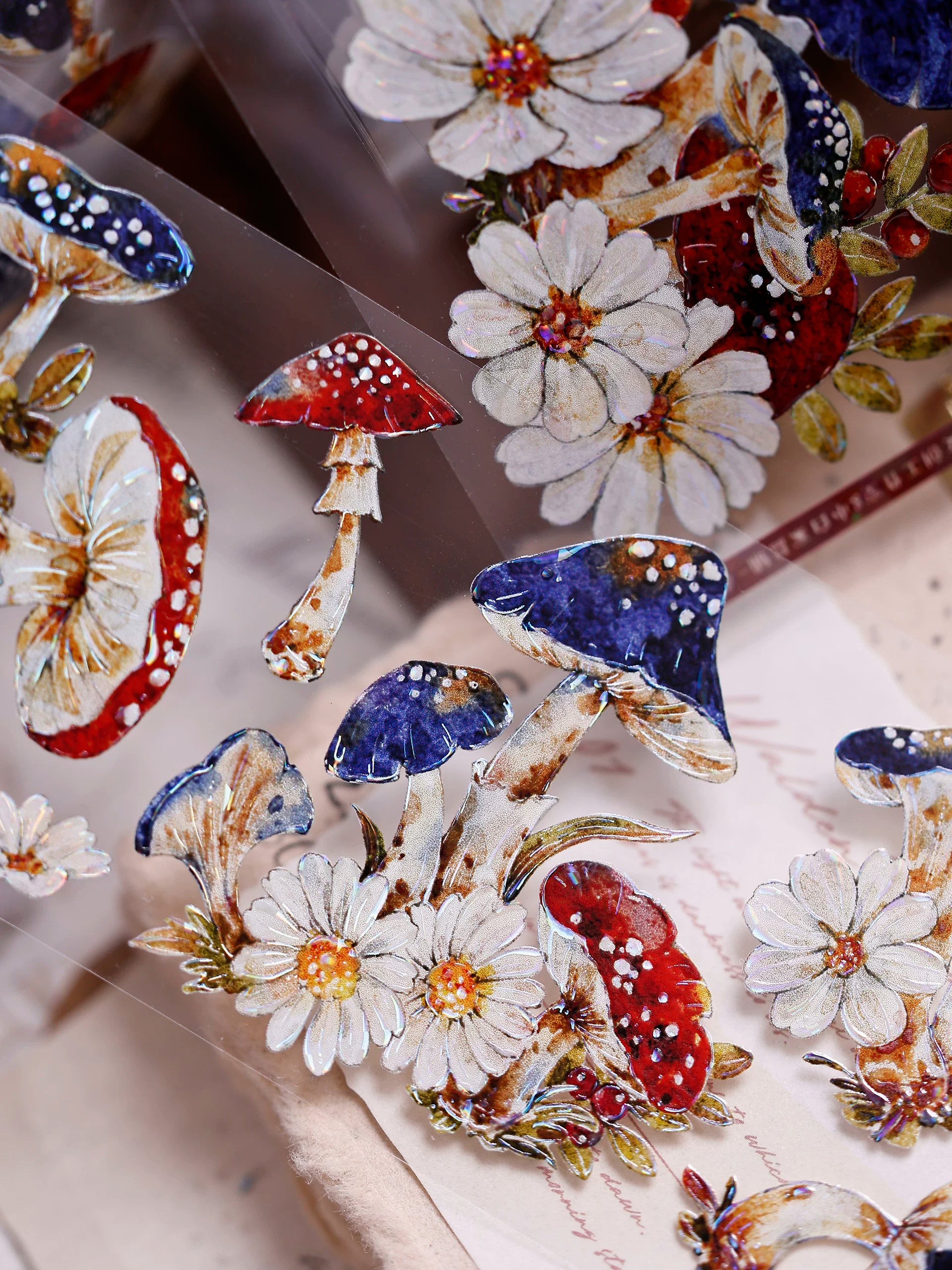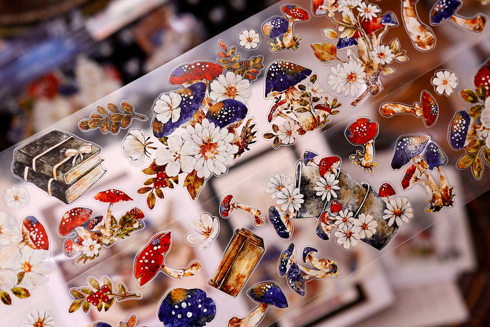 XiaoBaiJia【Mushroom Tales in the Woods】Orginal Design Kiss-cut Washi Pet Floral Tape Light Retro Landscaping Stickers