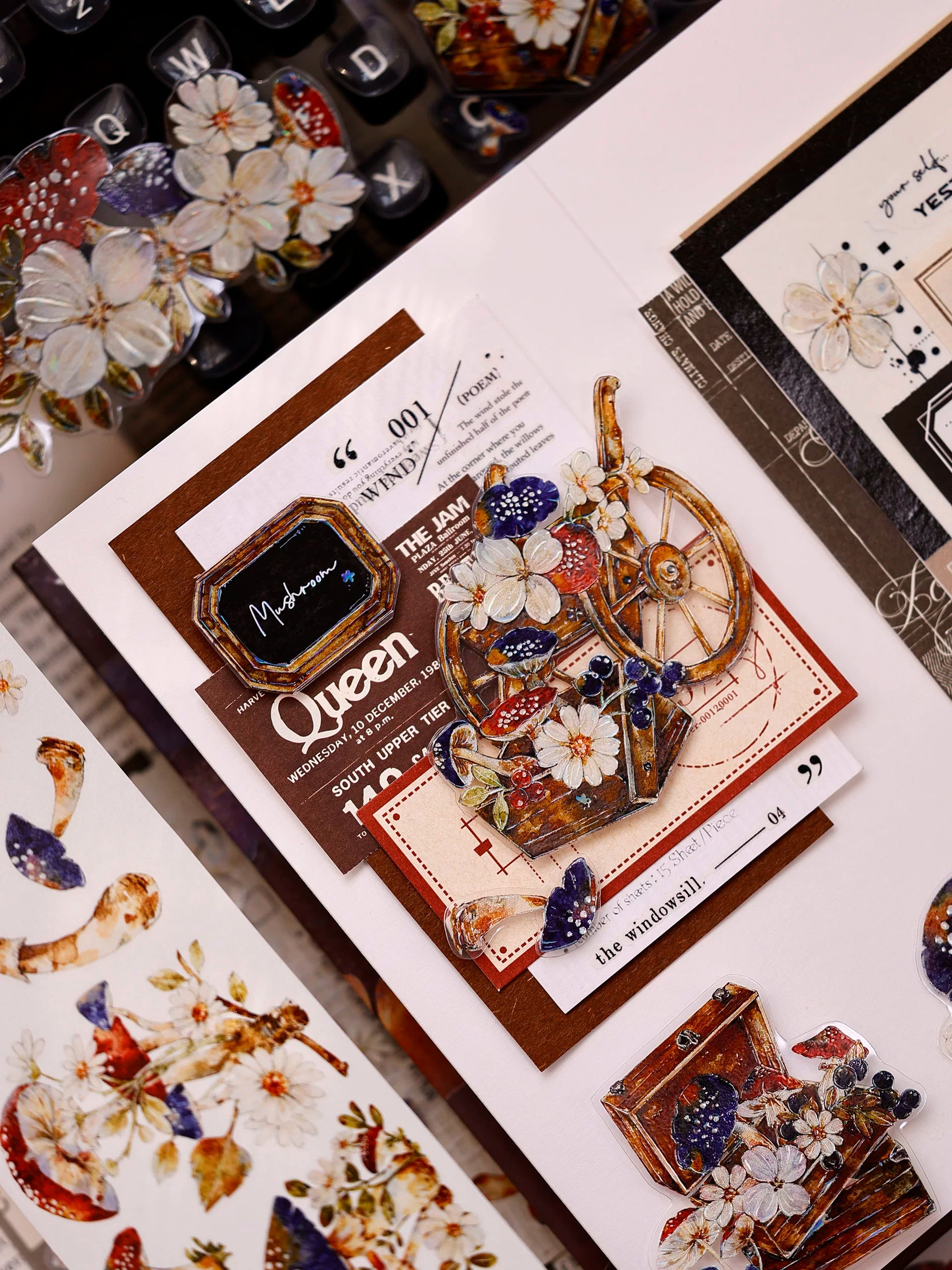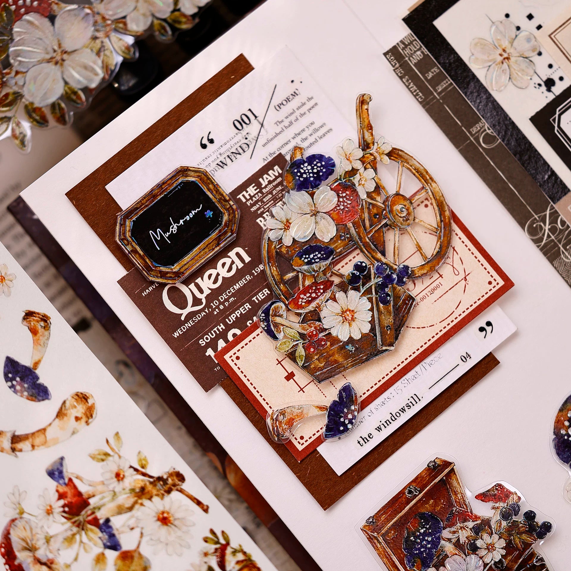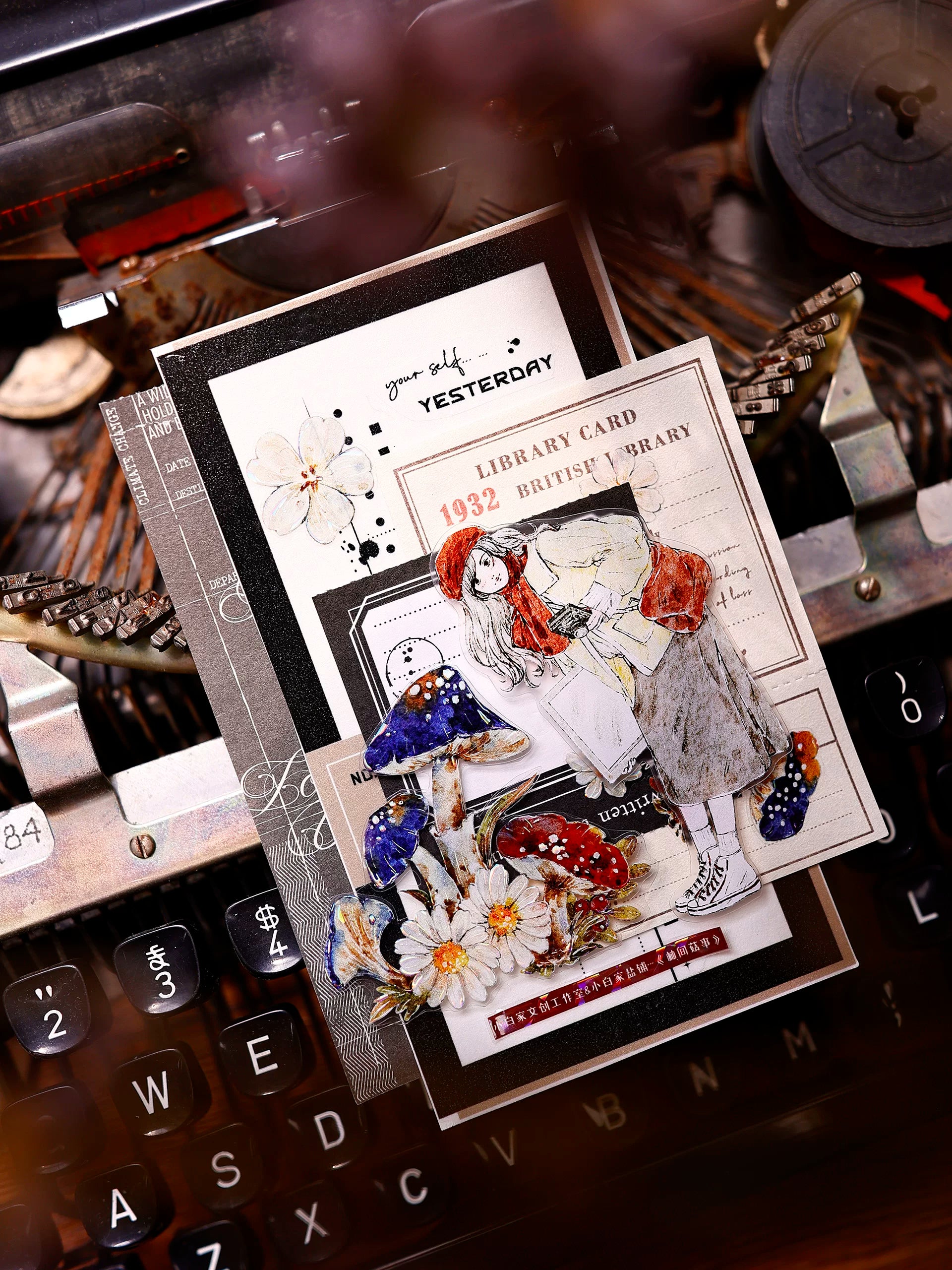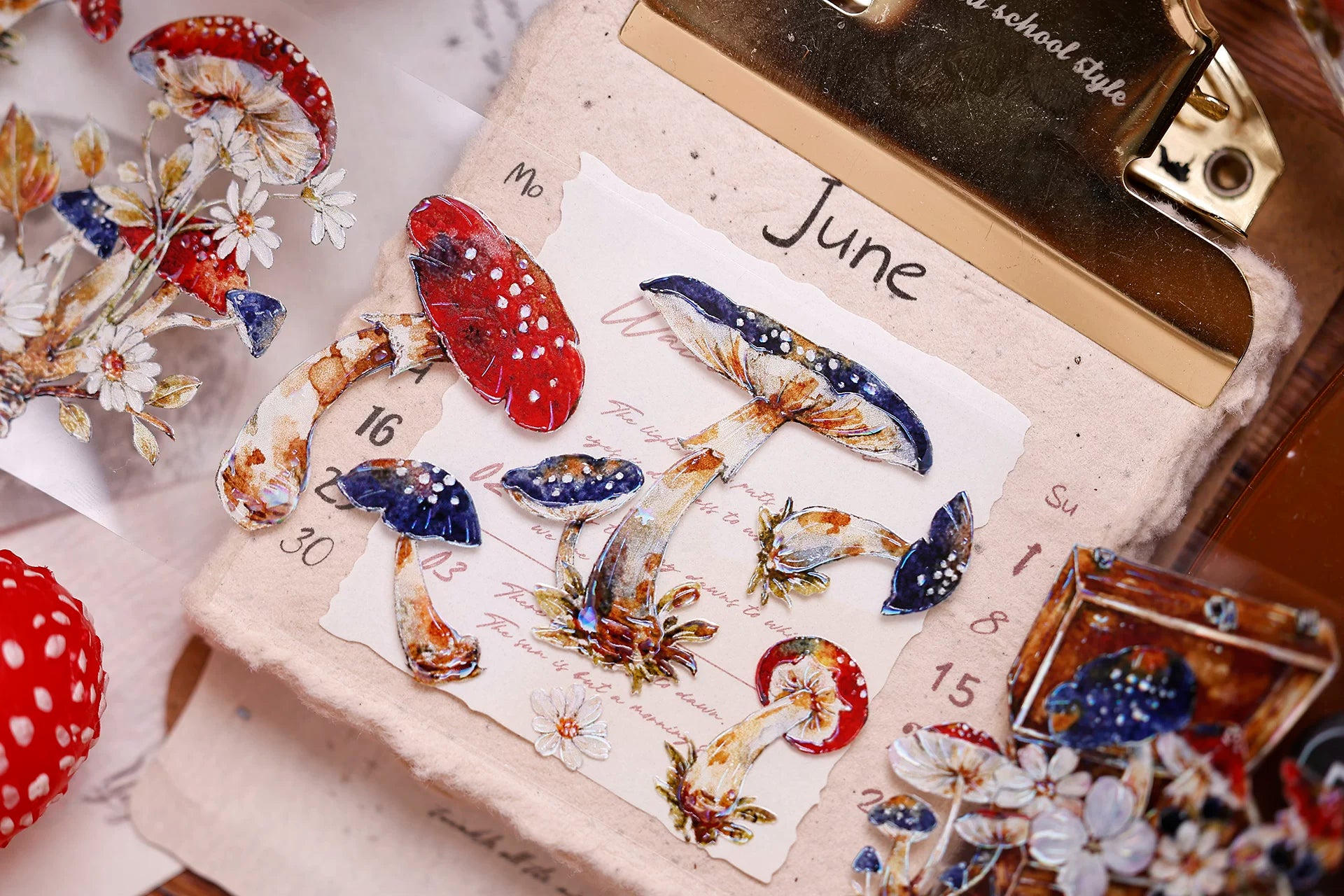 XiaoBaiJia【Mushroom Tales in the Woods】Orginal Design Kiss-cut Washi Pet Floral Tape Light Retro Landscaping Stickers