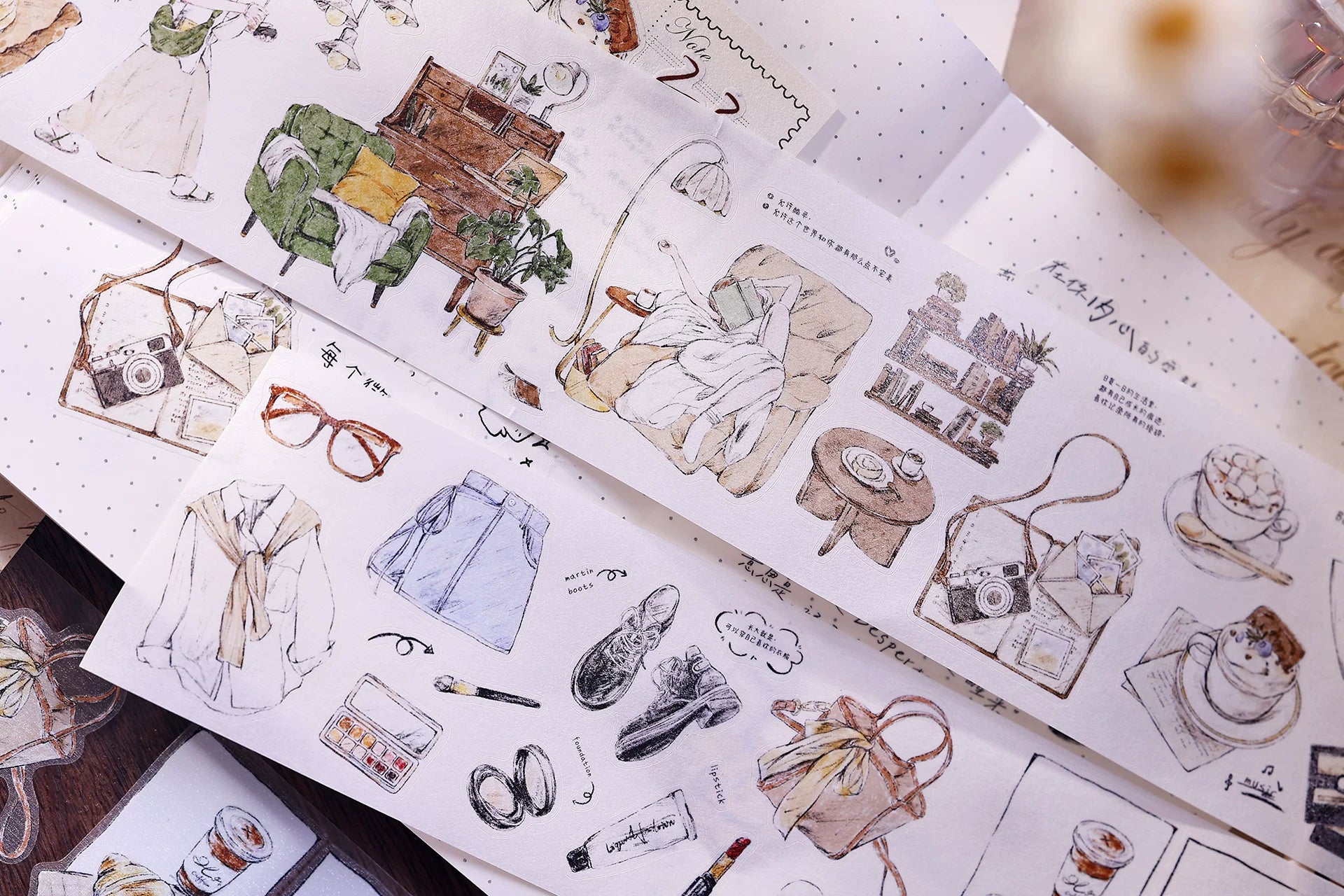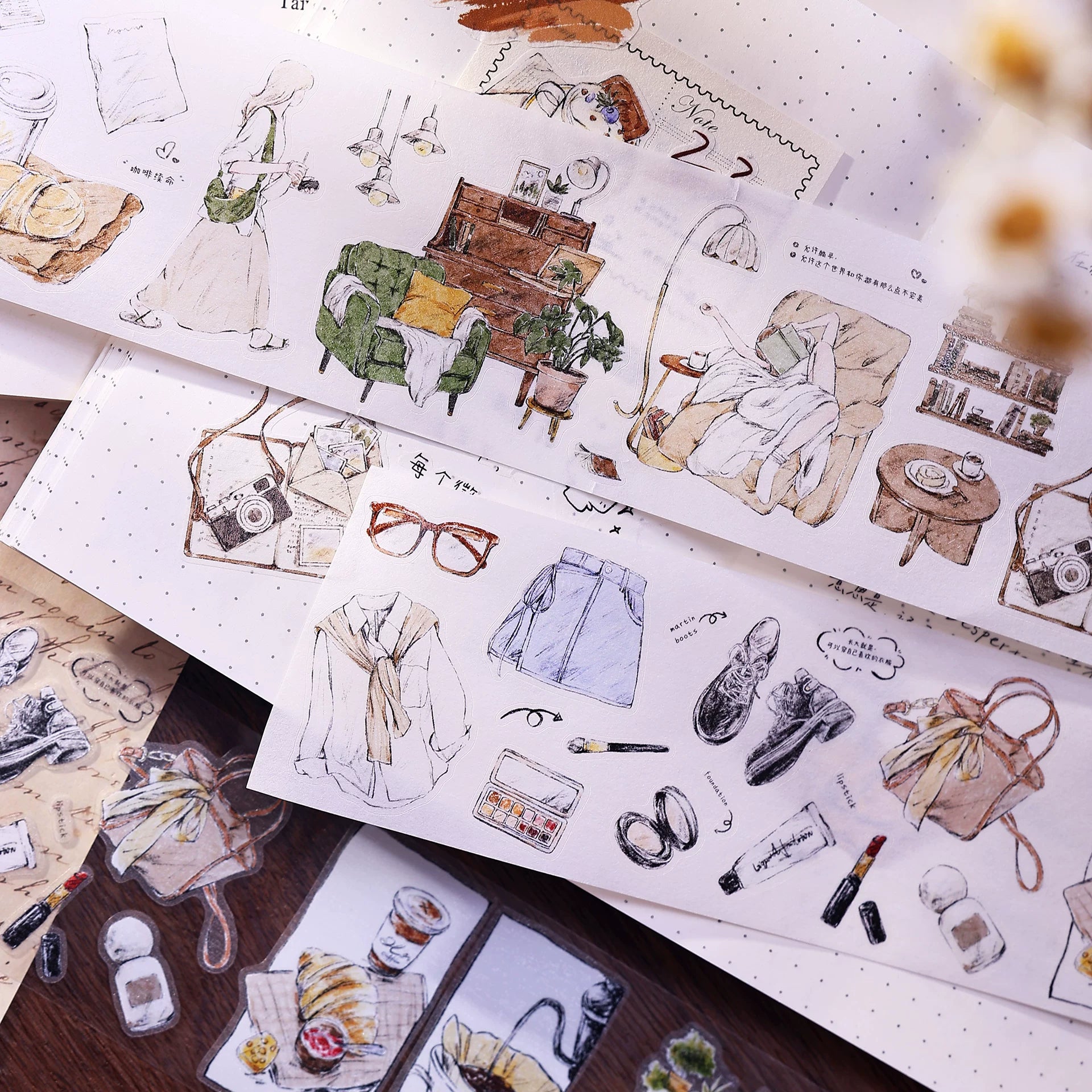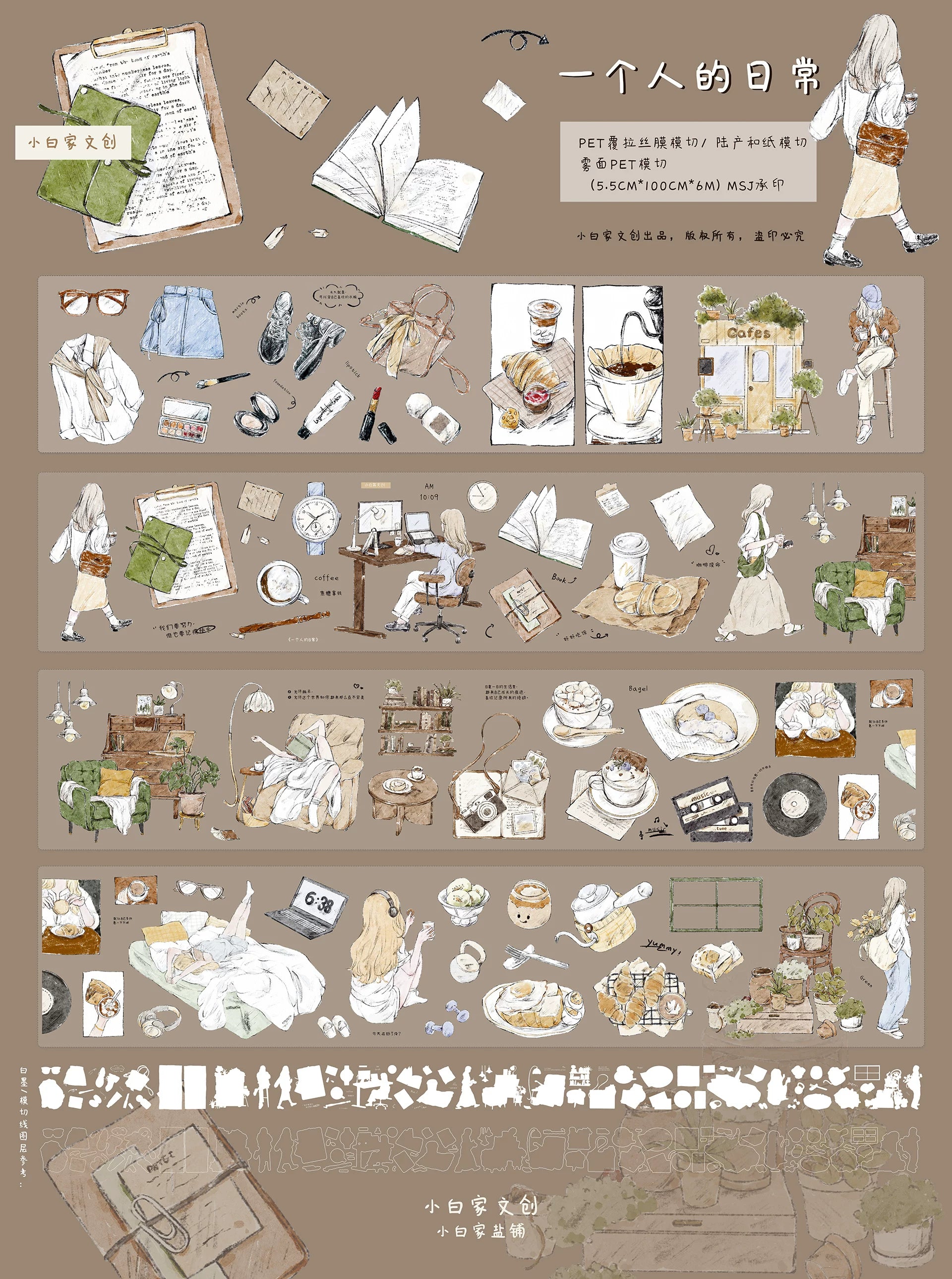 XiaoBaiJia Salt Series【A Person's Daily Routine】Pre-cut Orginal Design Washi/Pet Tape Light Retro Stickers