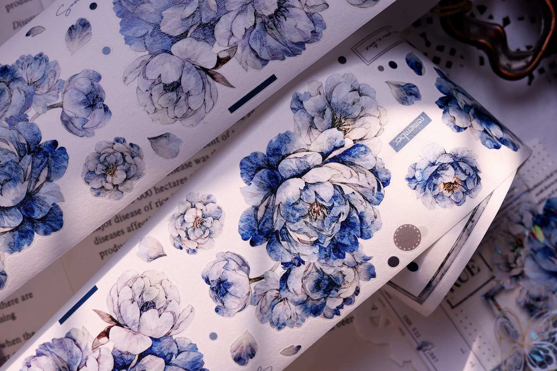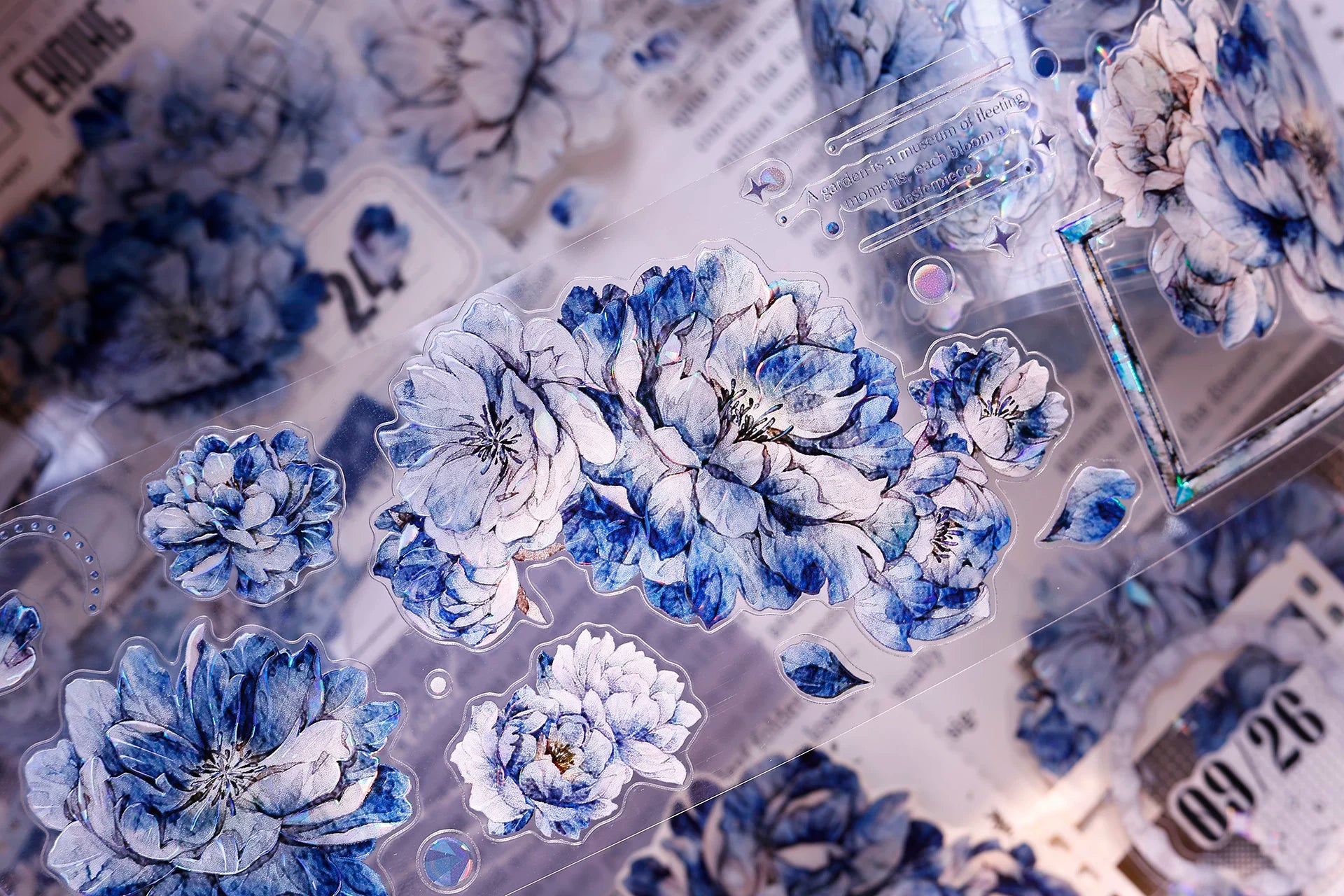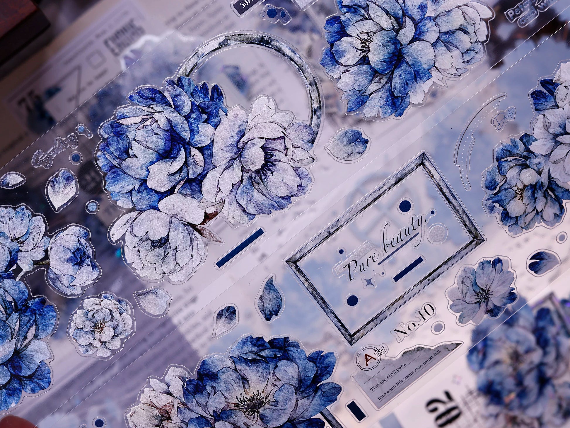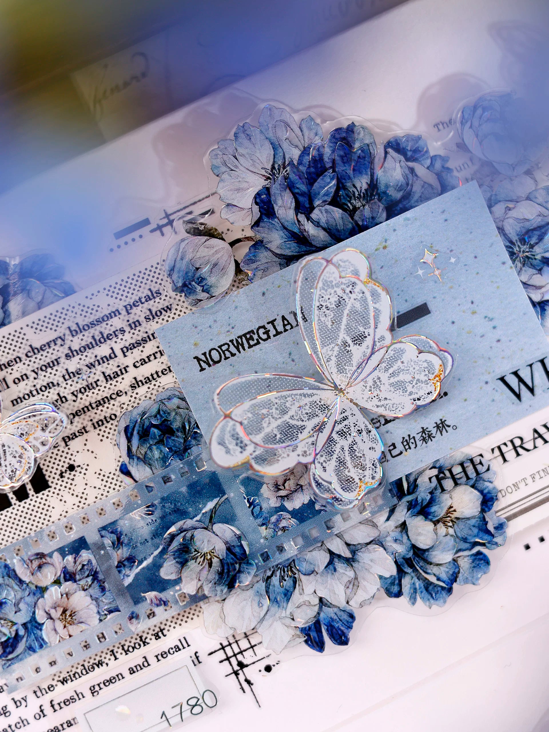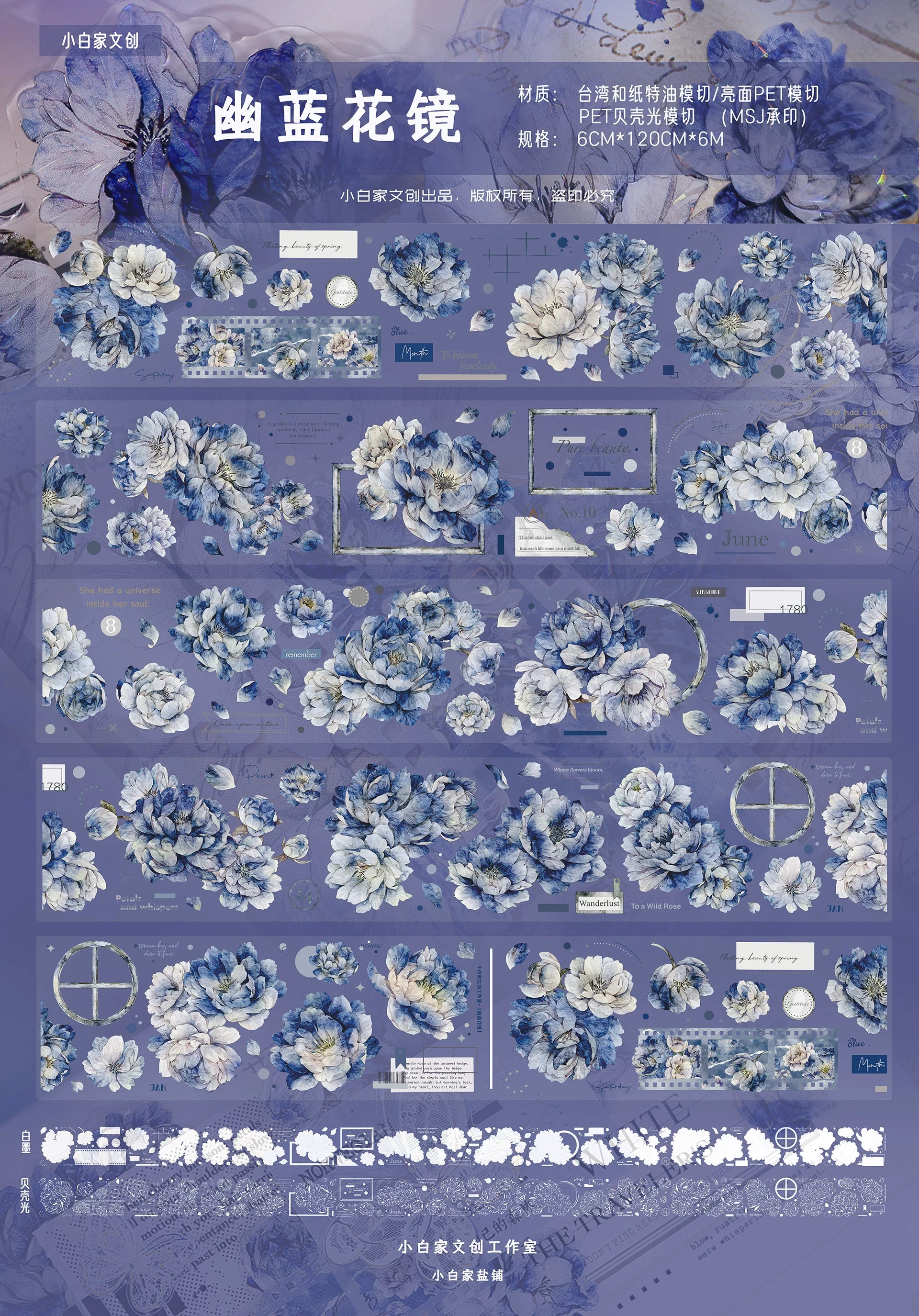 XiaoBaiJia Salt Series【Blue Mirror】Orginal Design Kiss-cut Washi/Pet Floral Tape Light Retro Landscaping Stickers