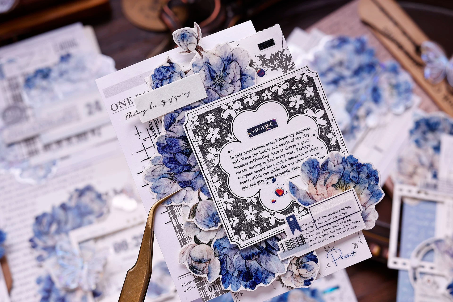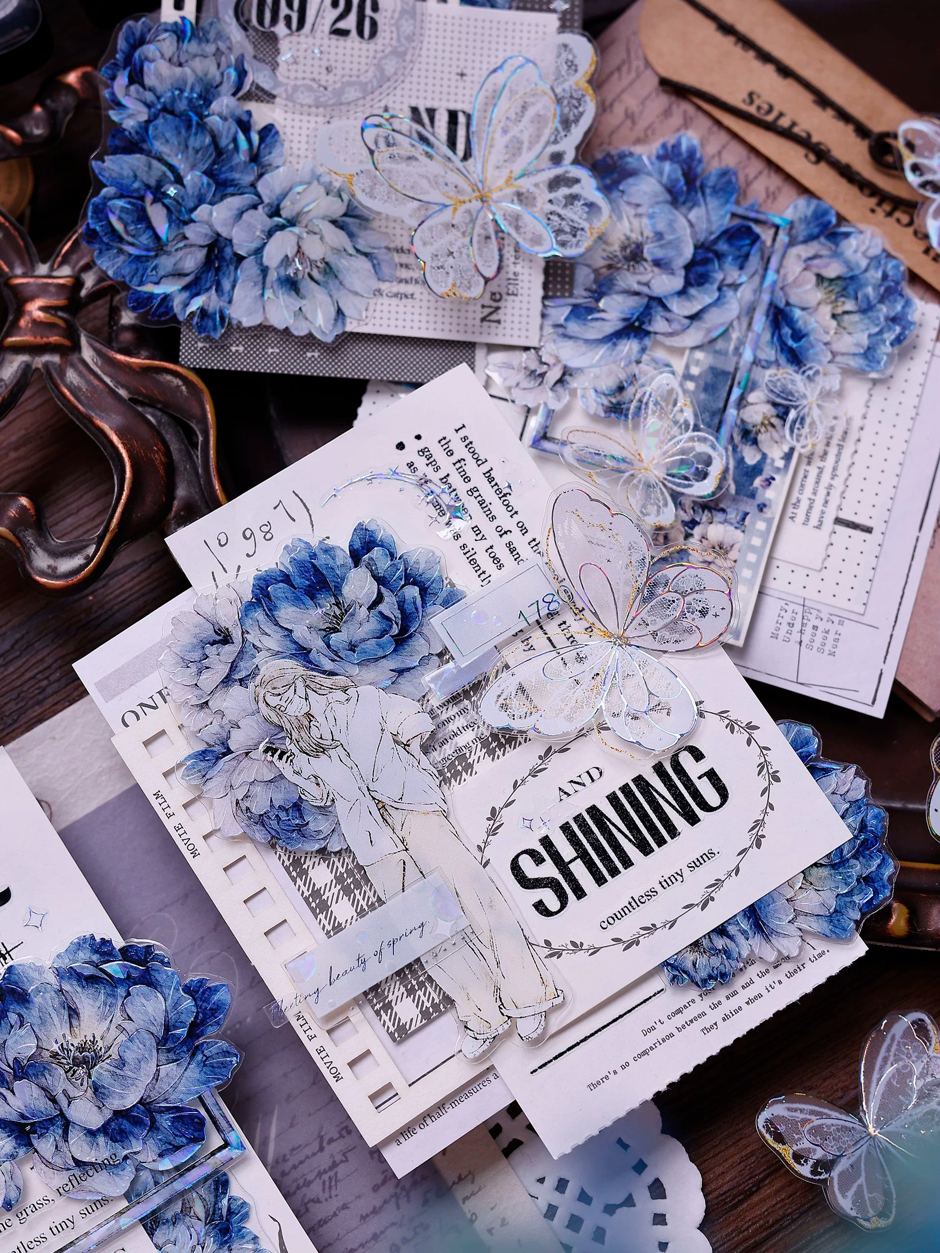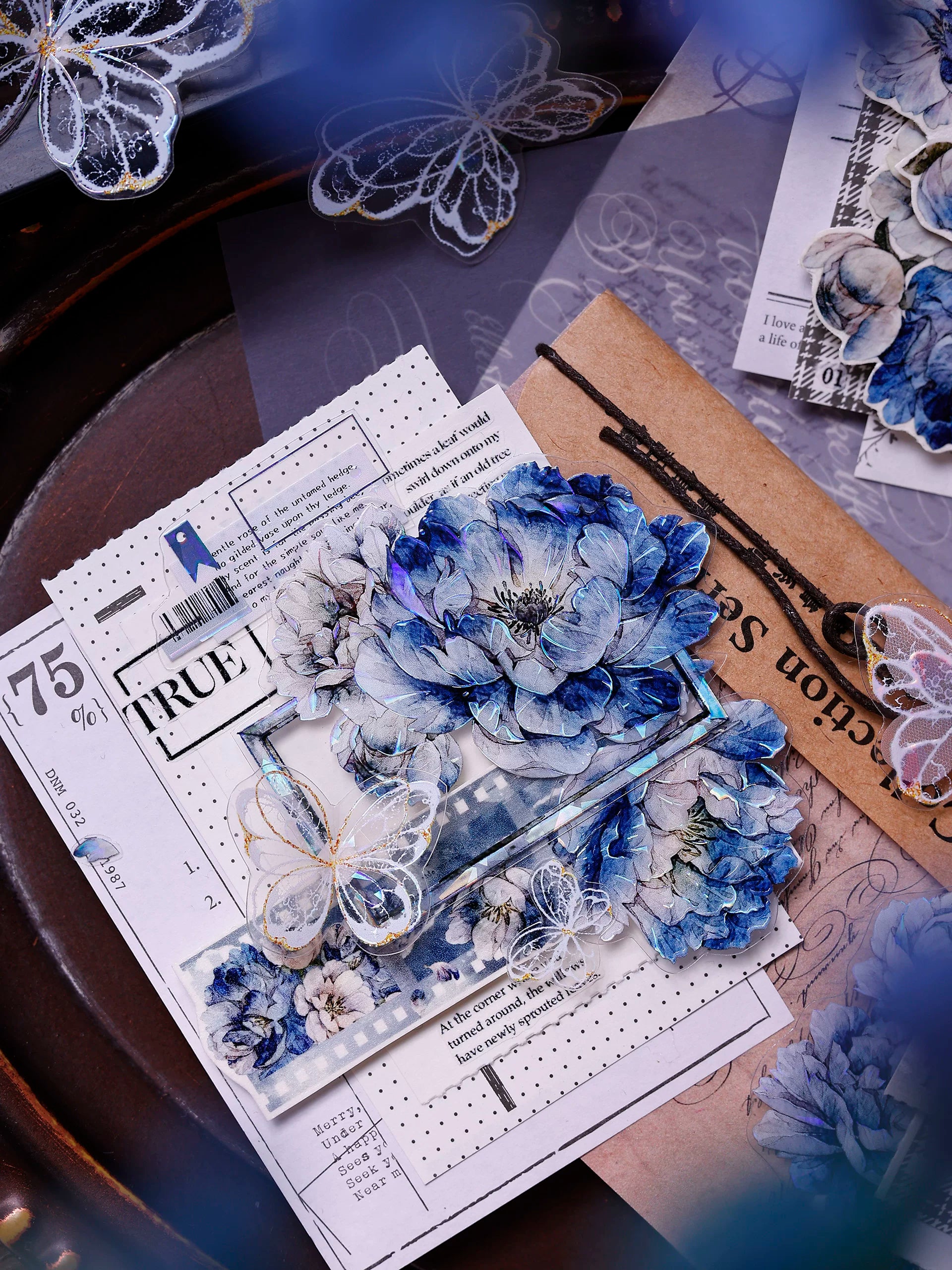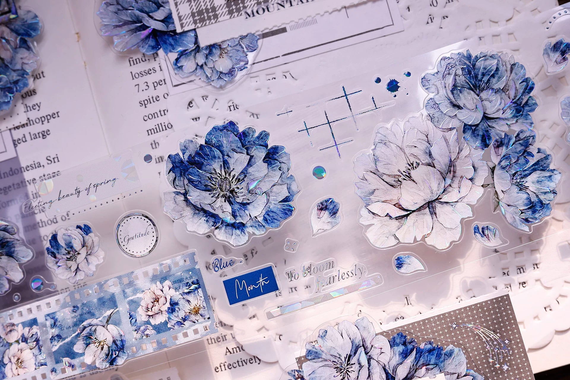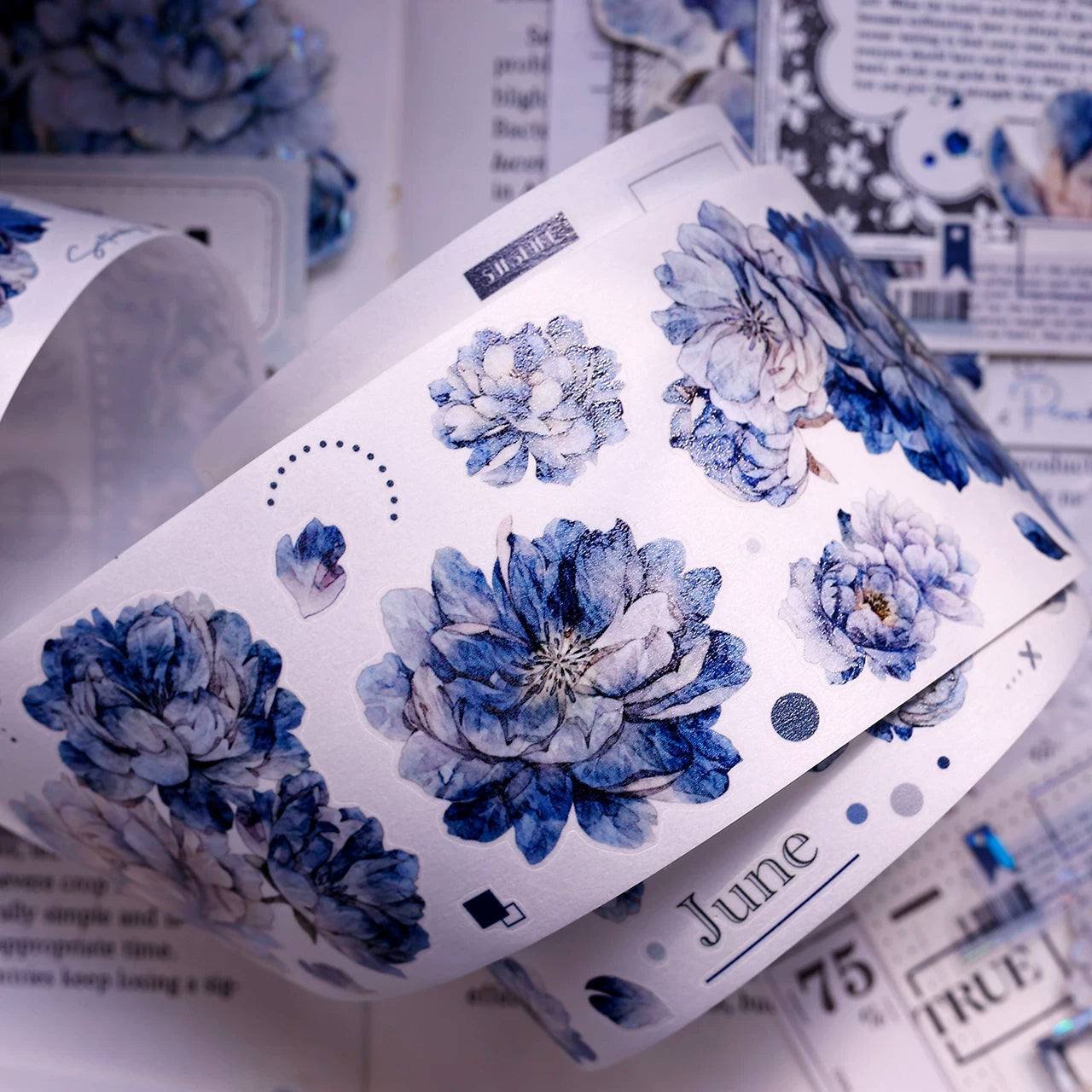 XiaoBaiJia Salt Series【Blue Mirror】Orginal Design Kiss-cut Washi/Pet Floral Tape Light Retro Landscaping Stickers