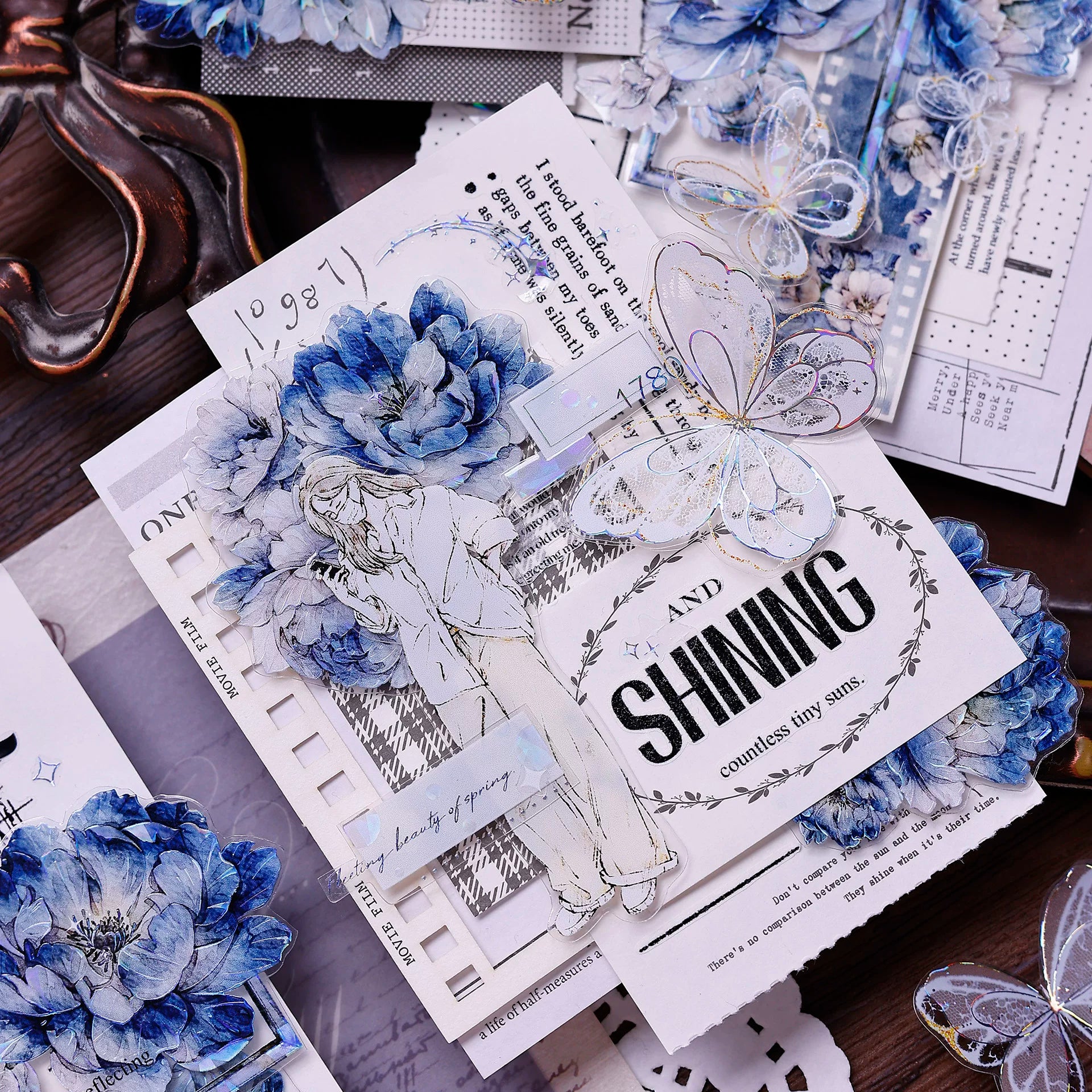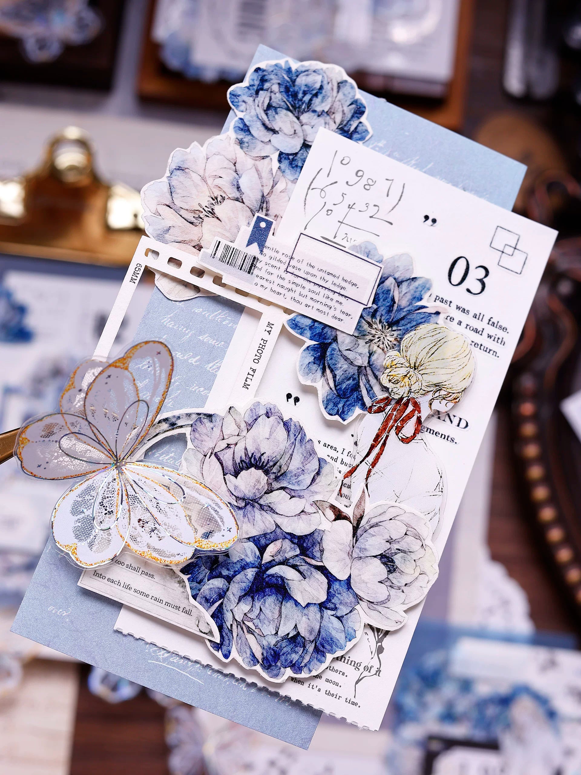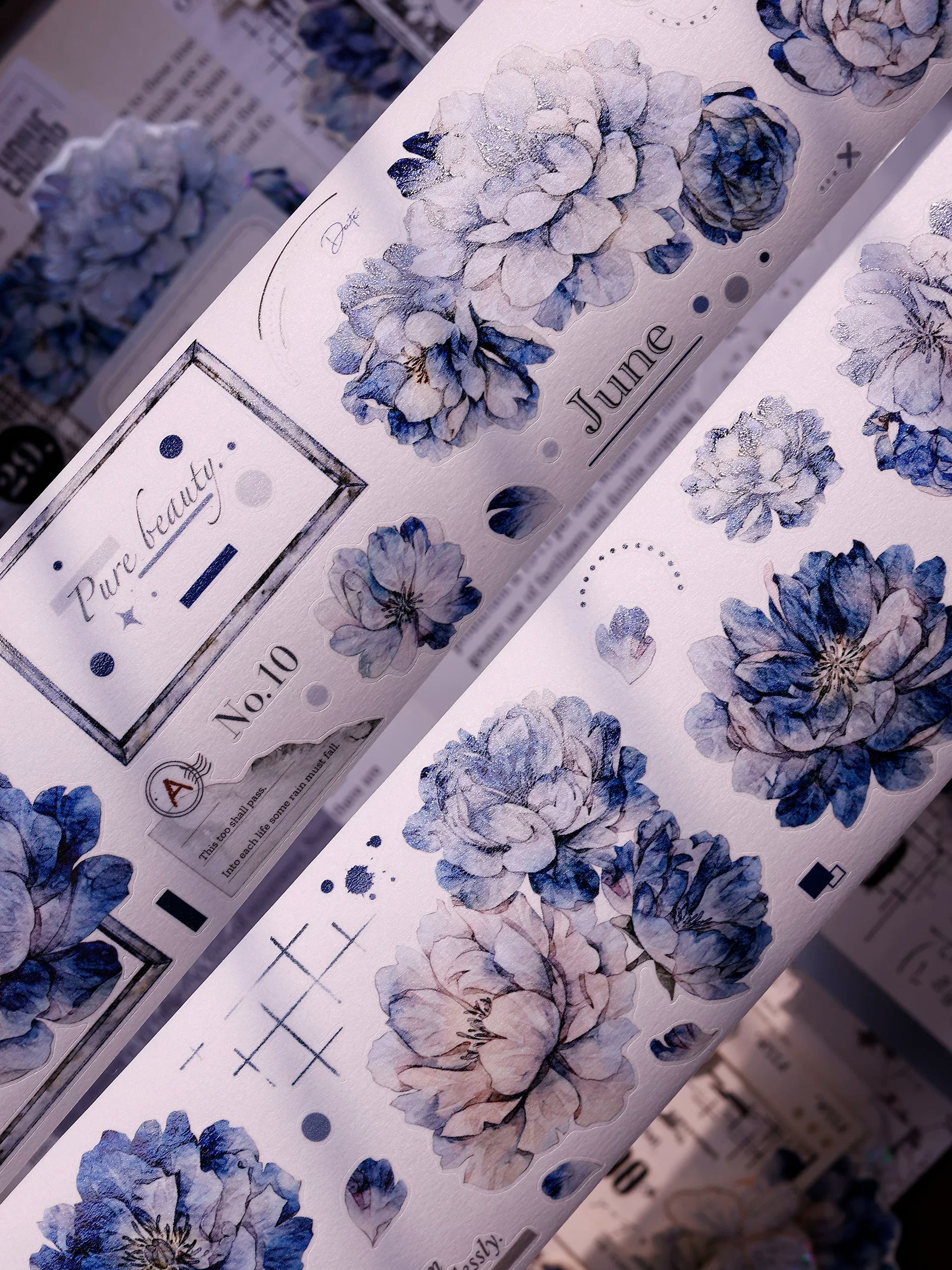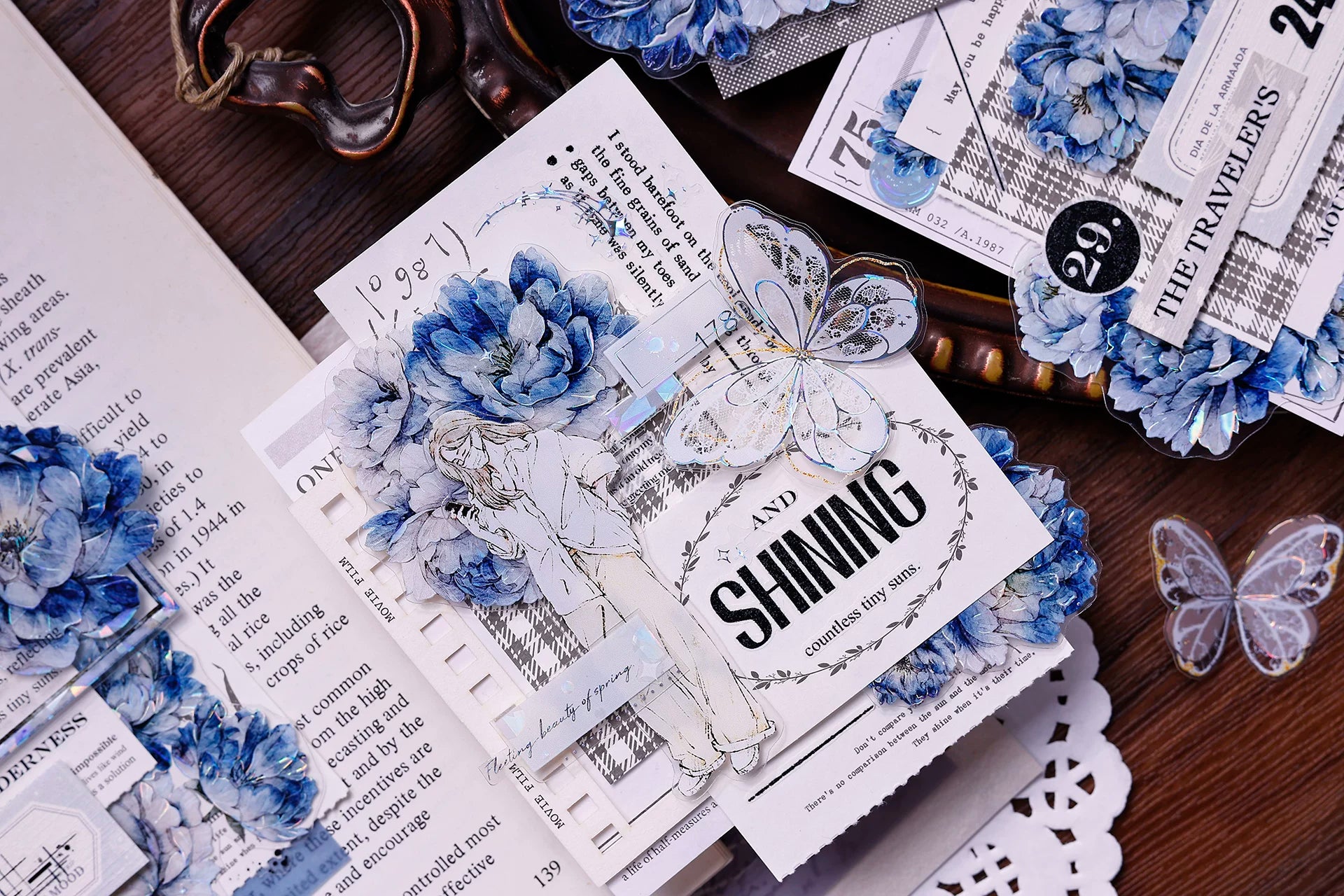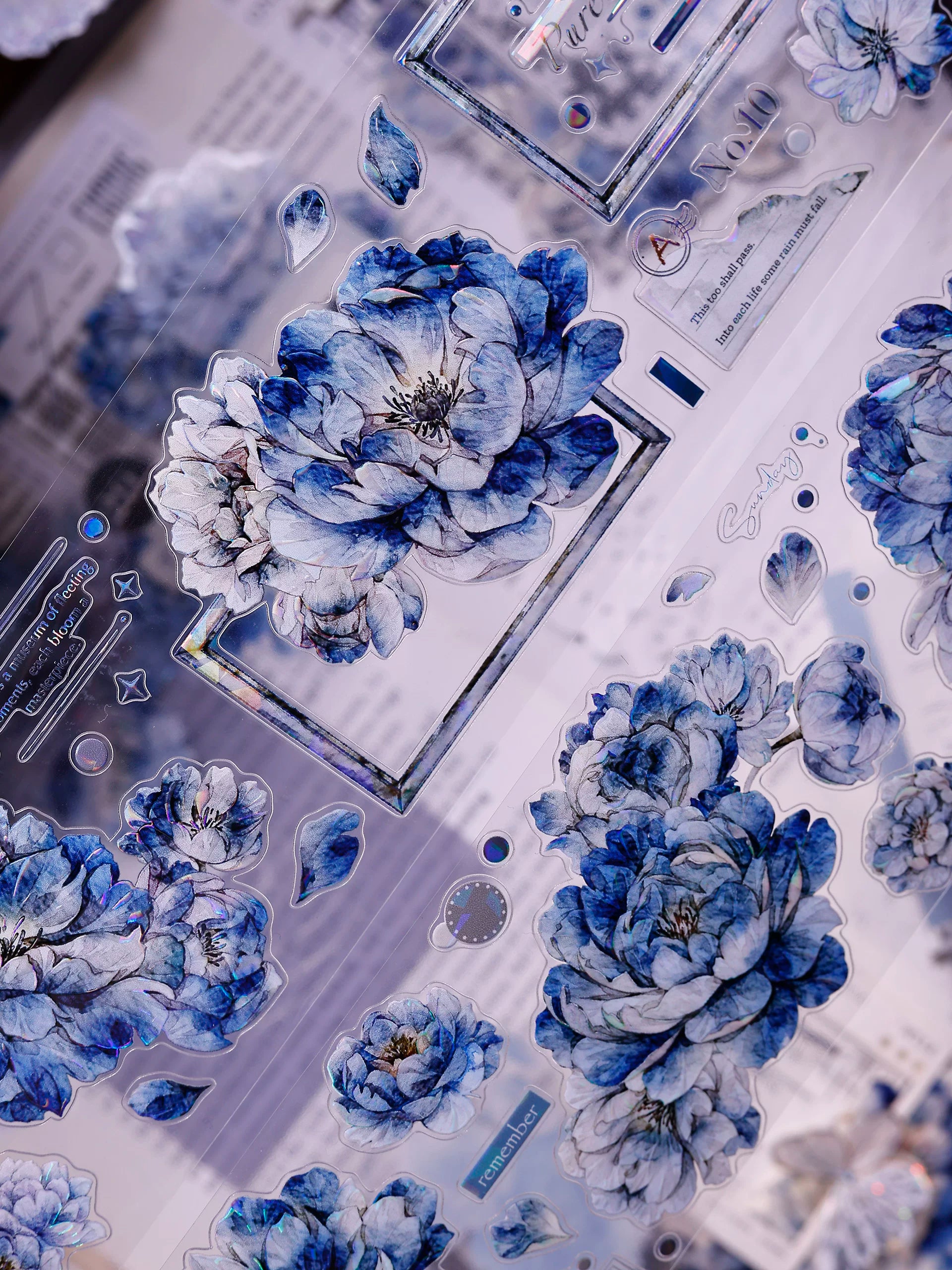 XiaoBaiJia Salt Series【Blue Mirror】Orginal Design Kiss-cut Washi/Pet Floral Tape Light Retro Landscaping Stickers