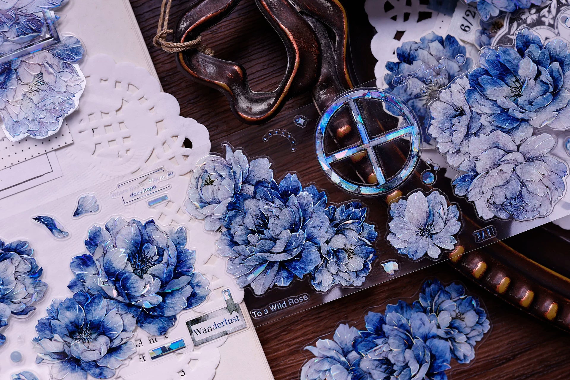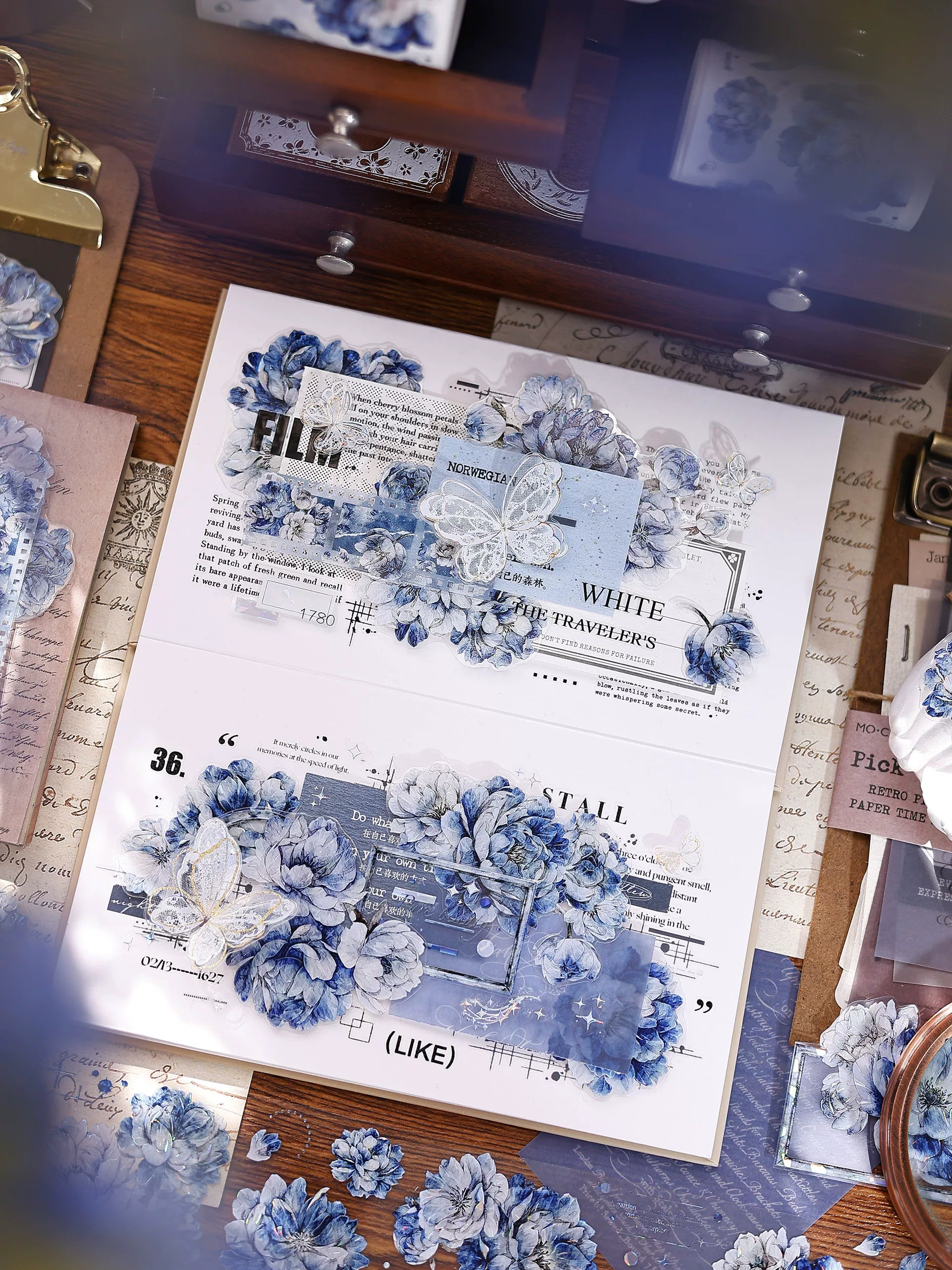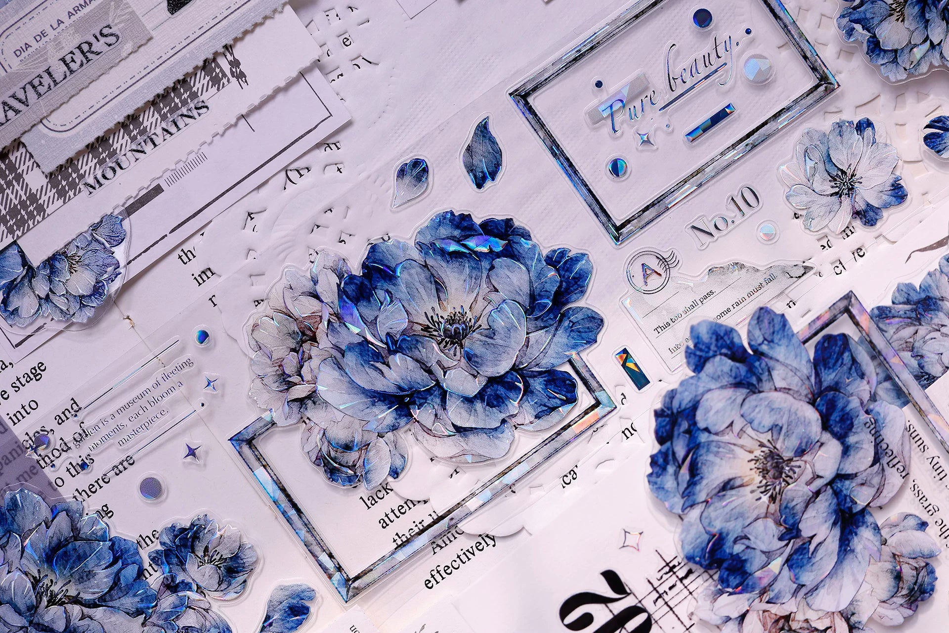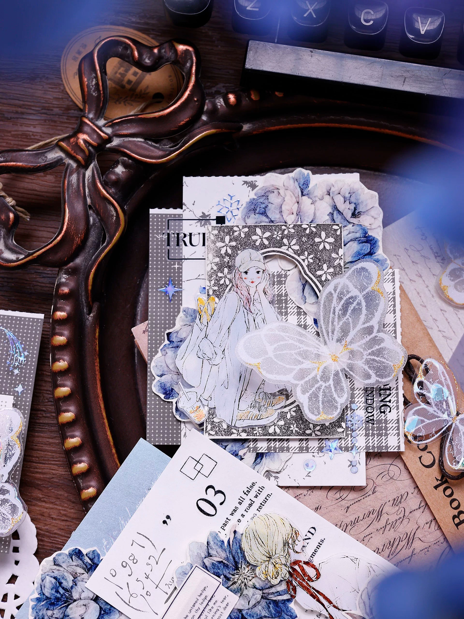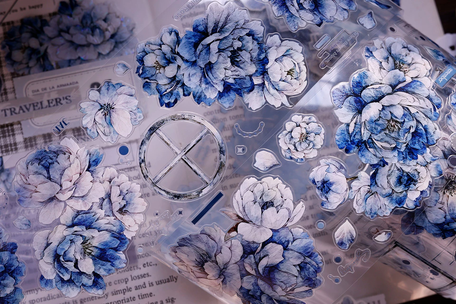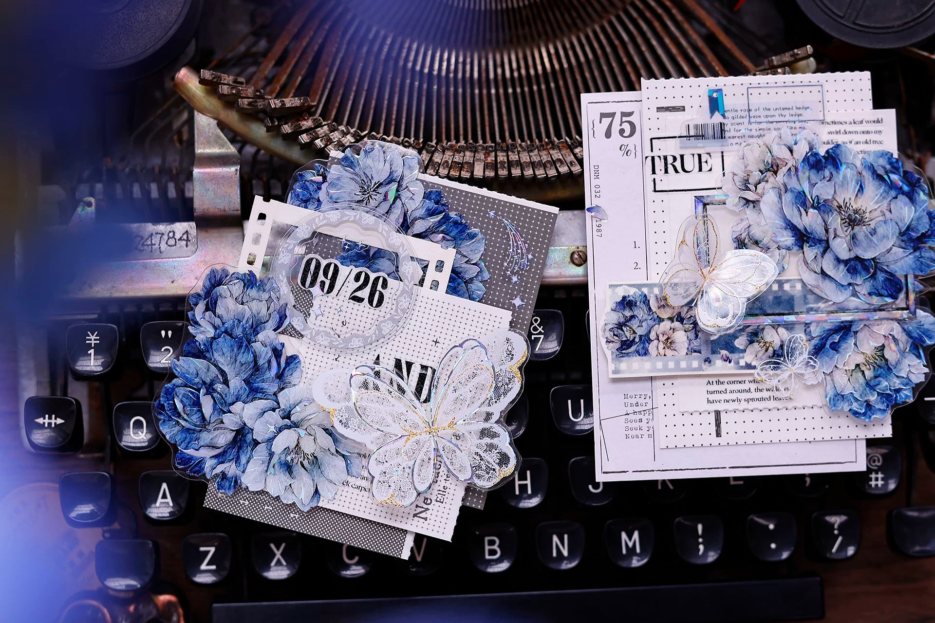 XiaoBaiJia Salt Series【Blue Mirror】Orginal Design Kiss-cut Washi/Pet Floral Tape Light Retro Landscaping Stickers