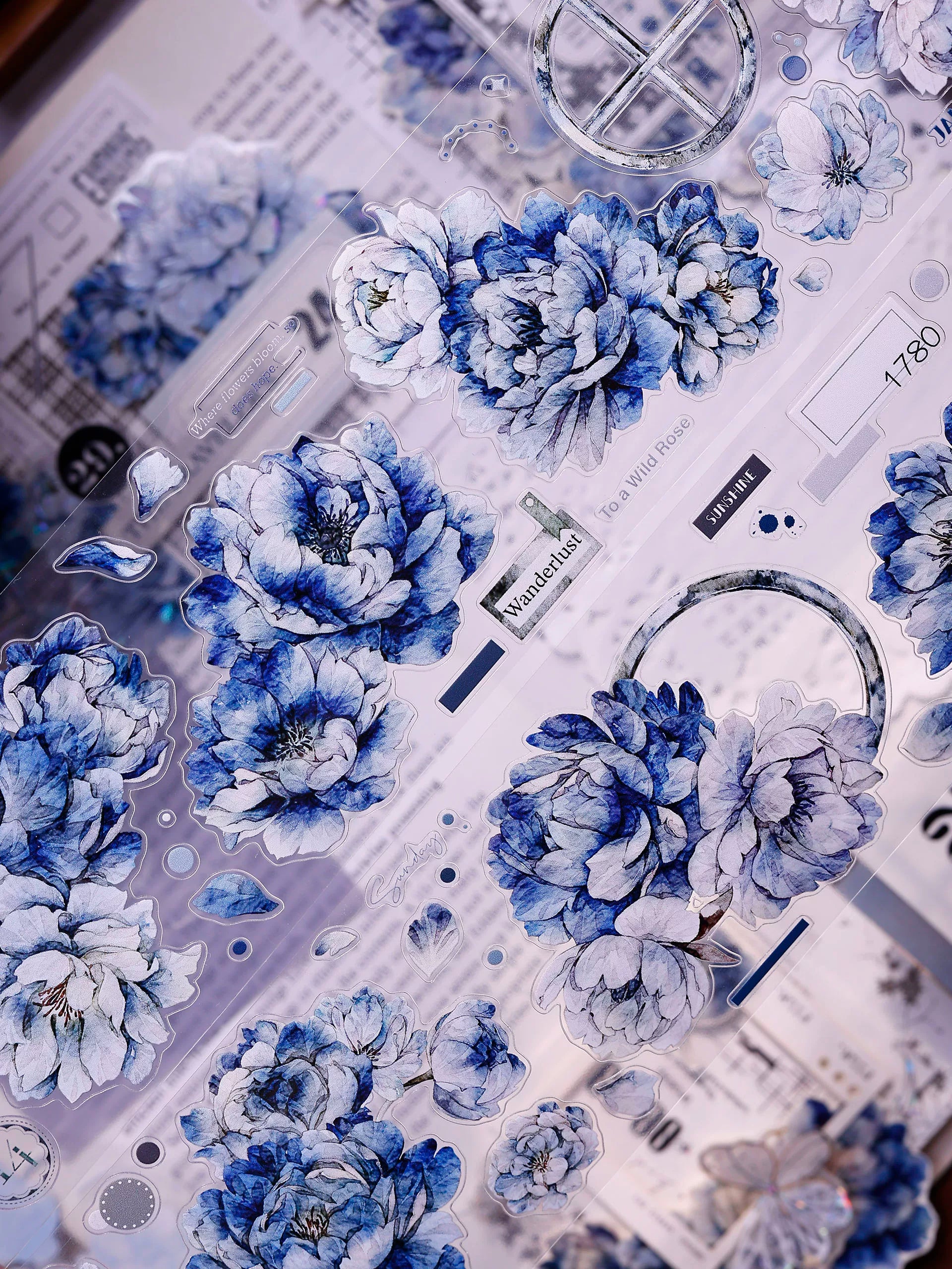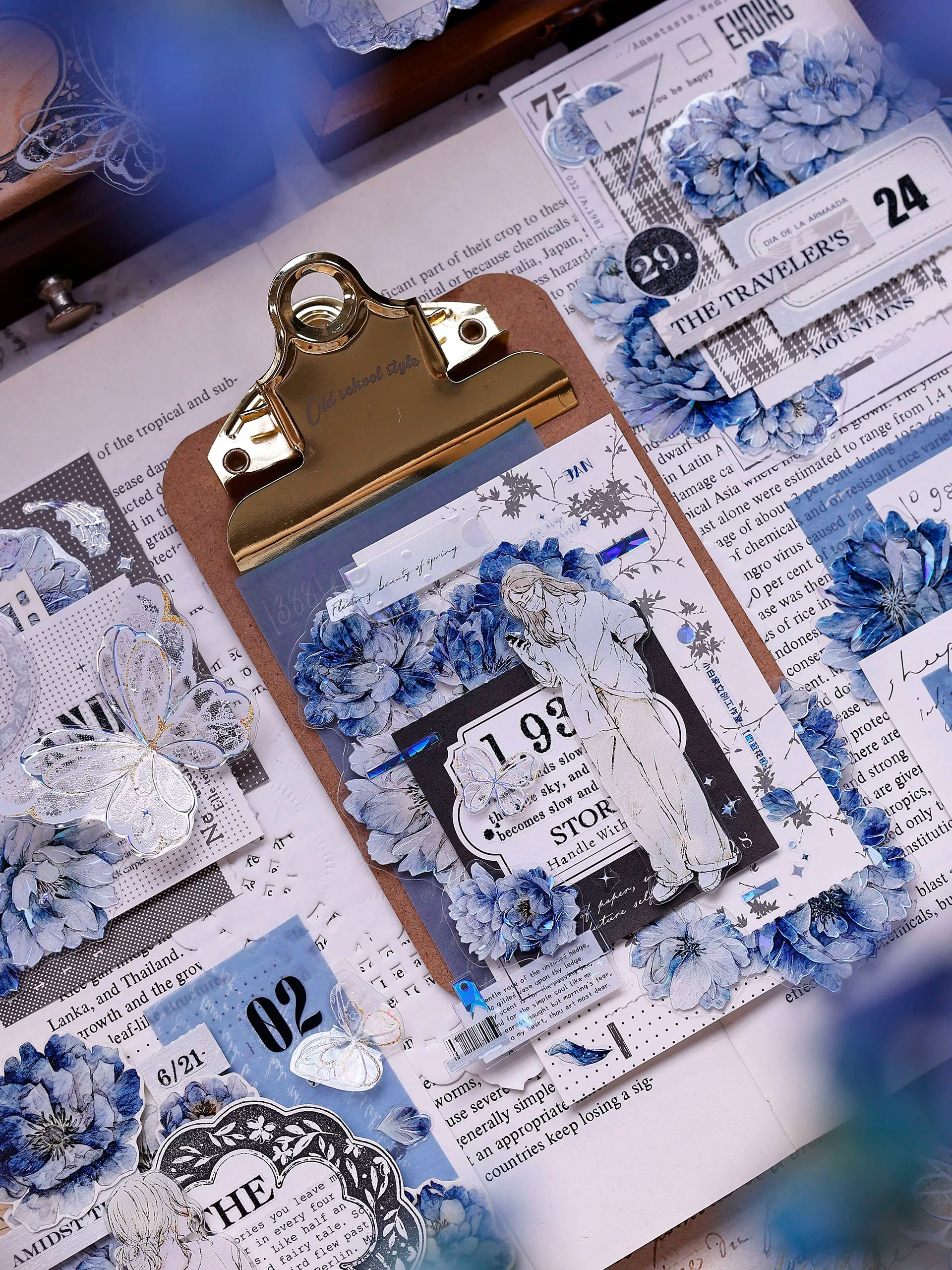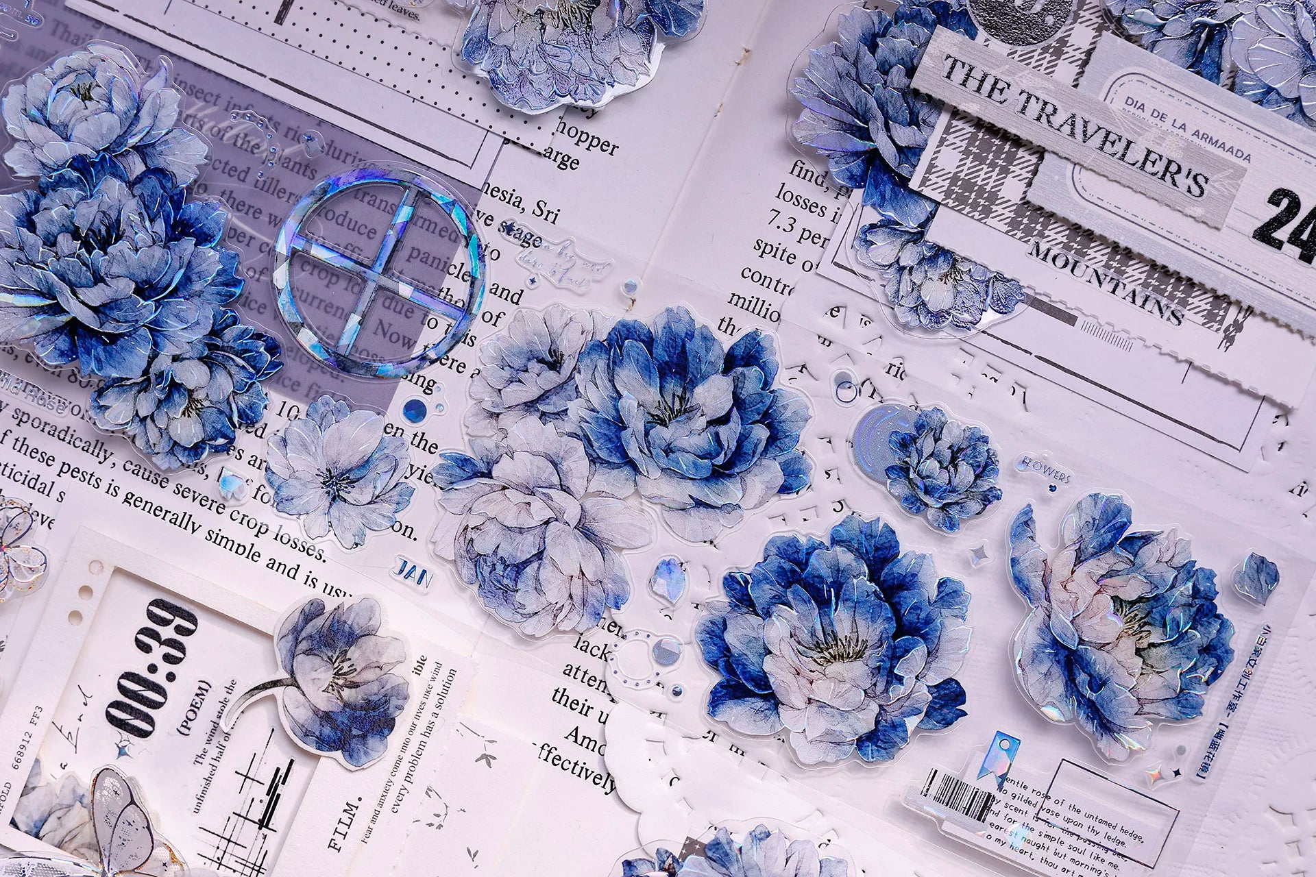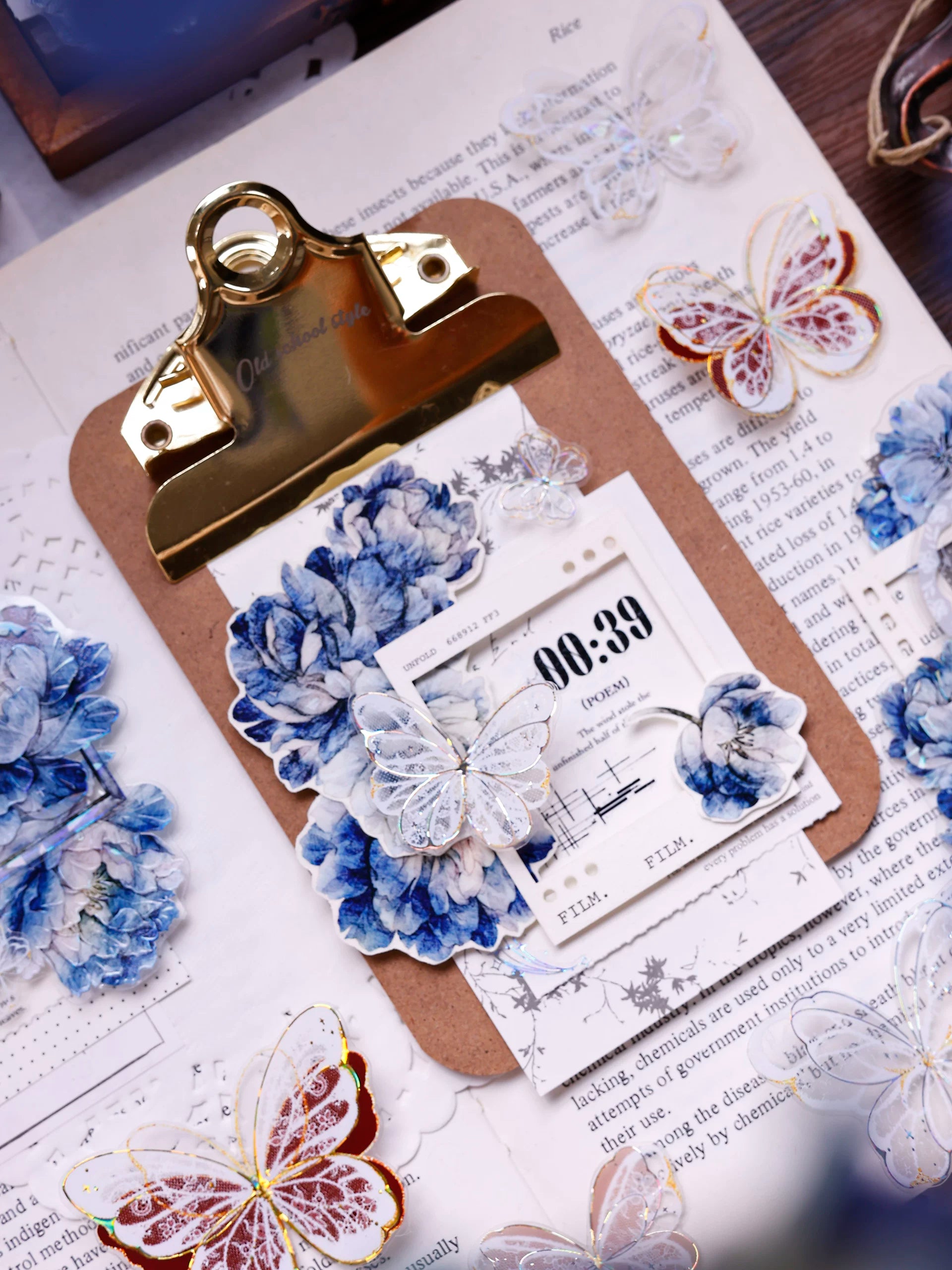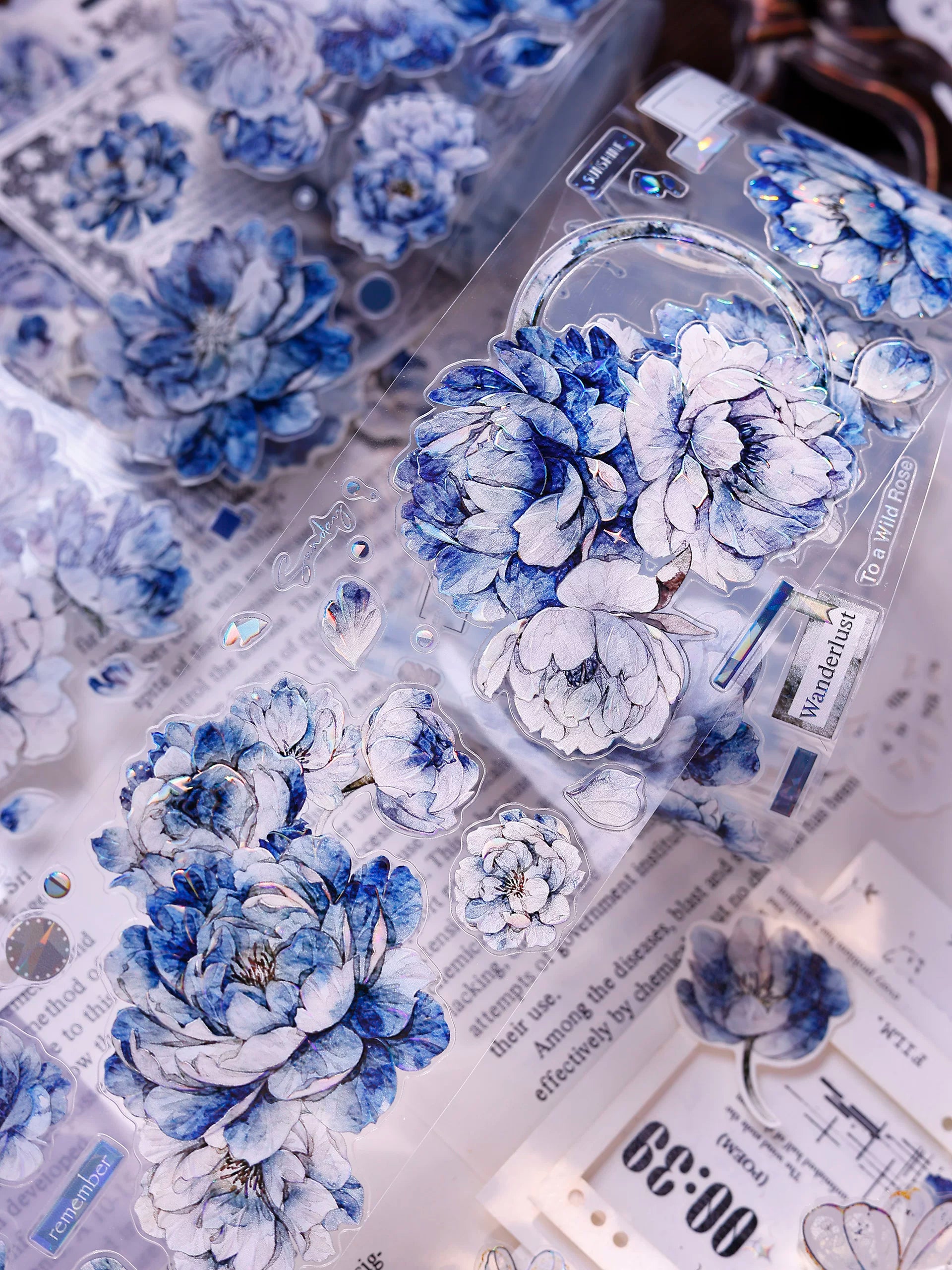 XiaoBaiJia Salt Series【Blue Mirror】Orginal Design Kiss-cut Washi/Pet Floral Tape Light Retro Landscaping Stickers