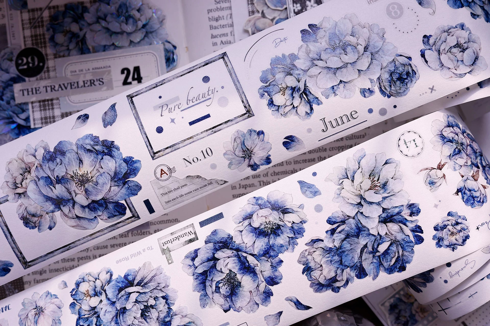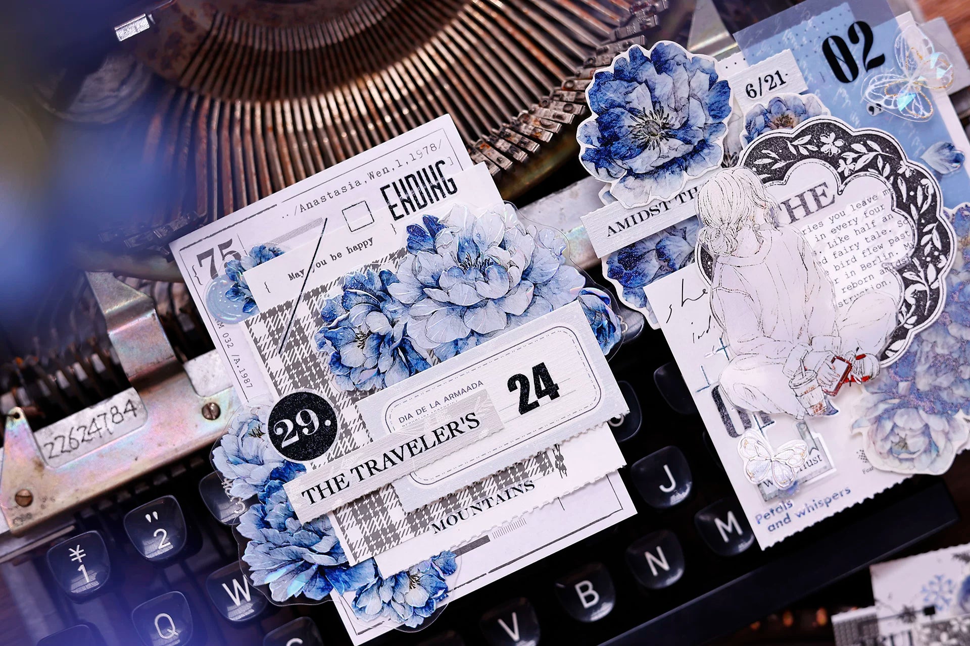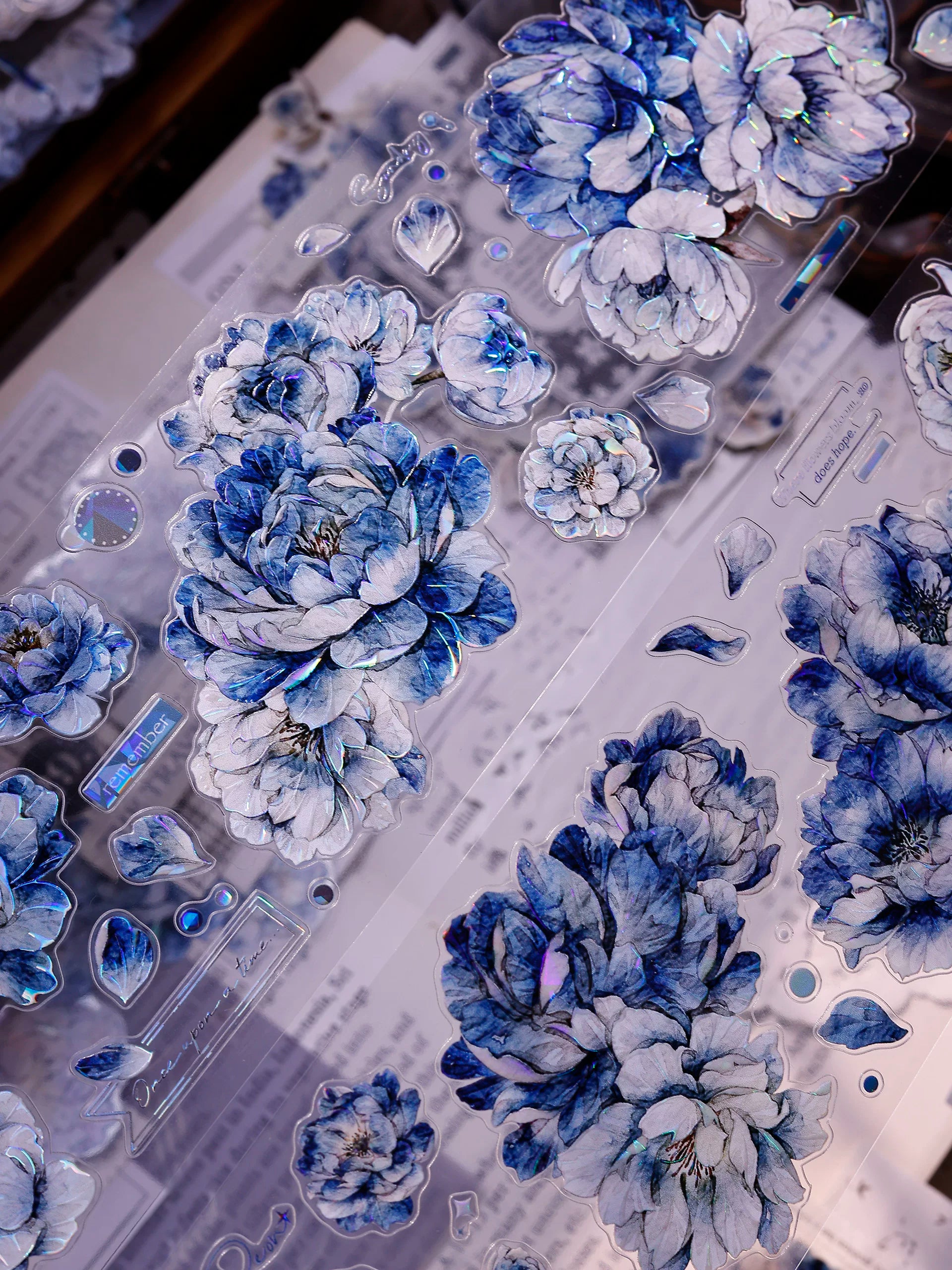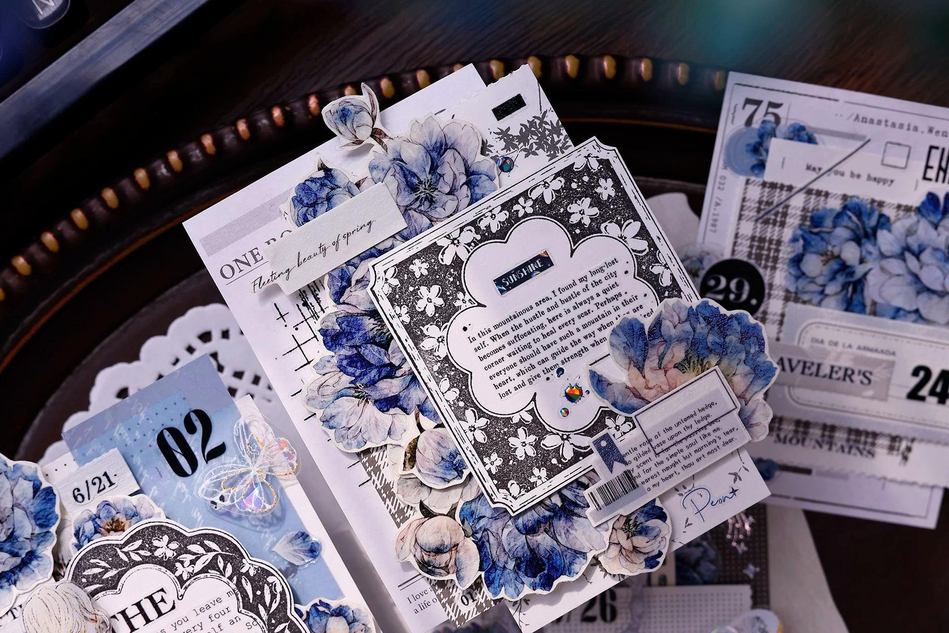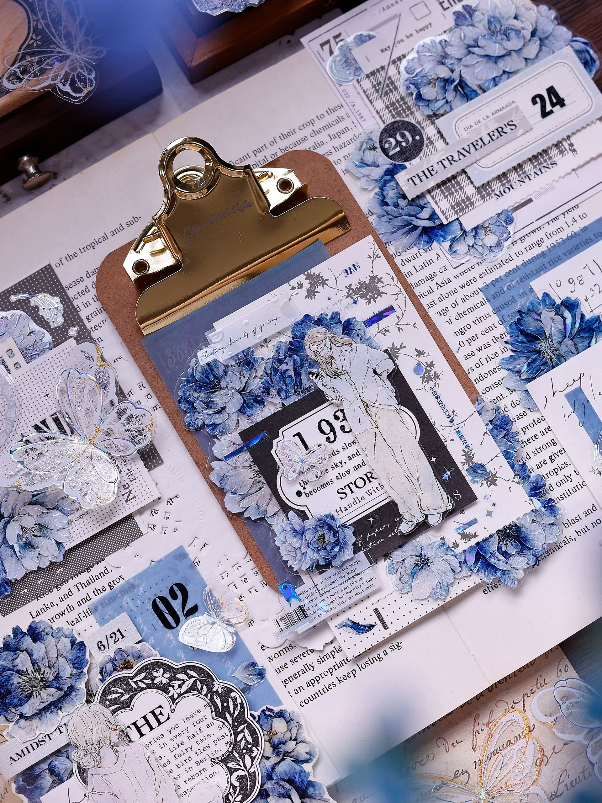 XiaoBaiJia Salt Series【Blue Mirror】Orginal Design Kiss-cut Washi/Pet Floral Tape Light Retro Landscaping Stickers