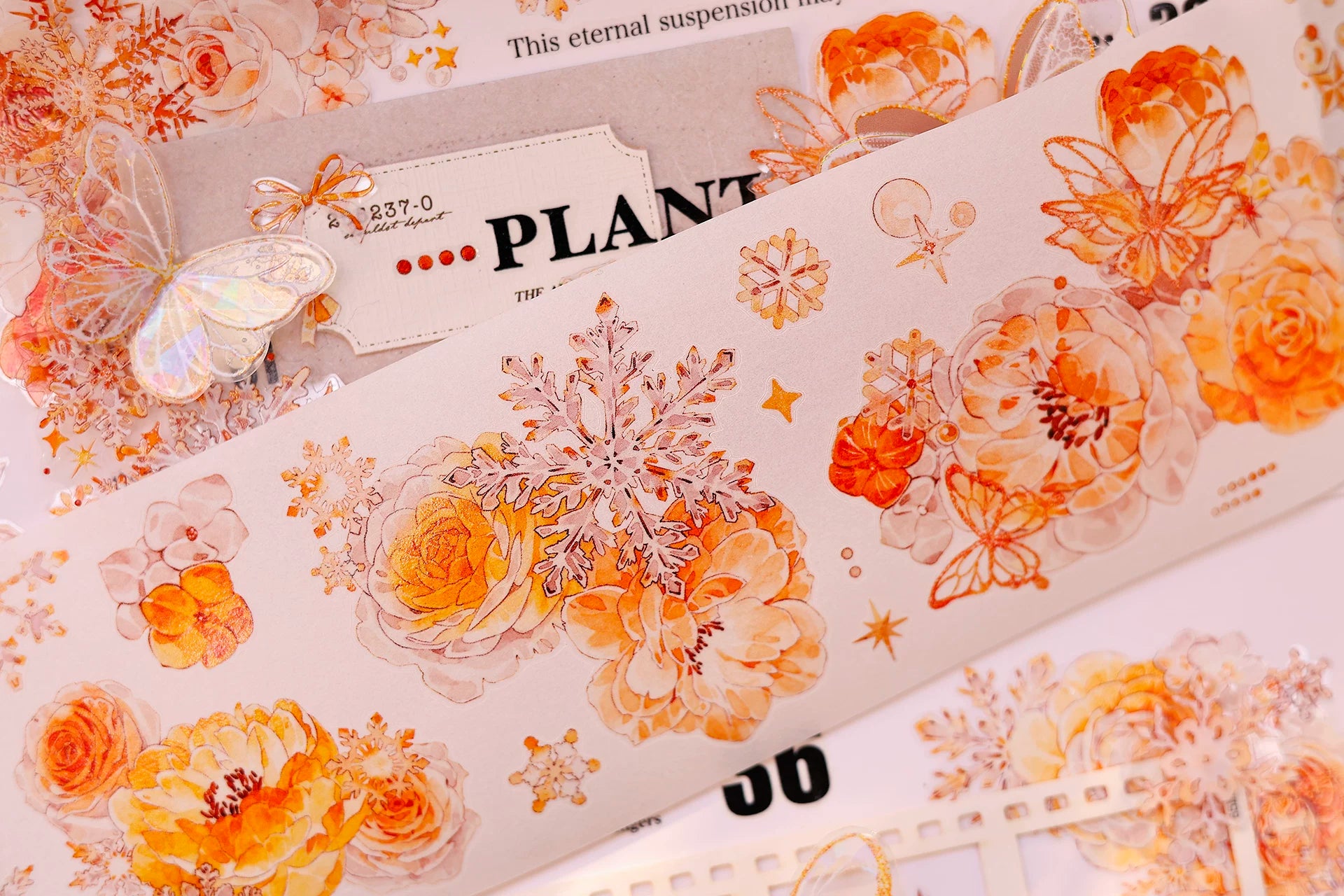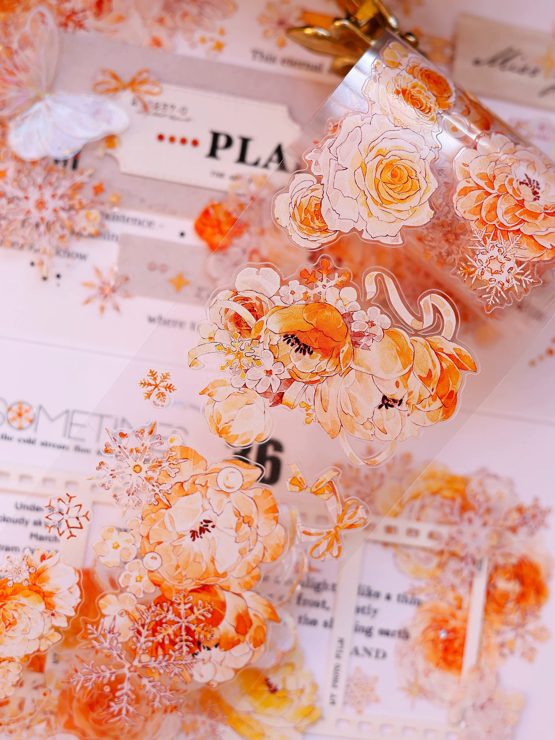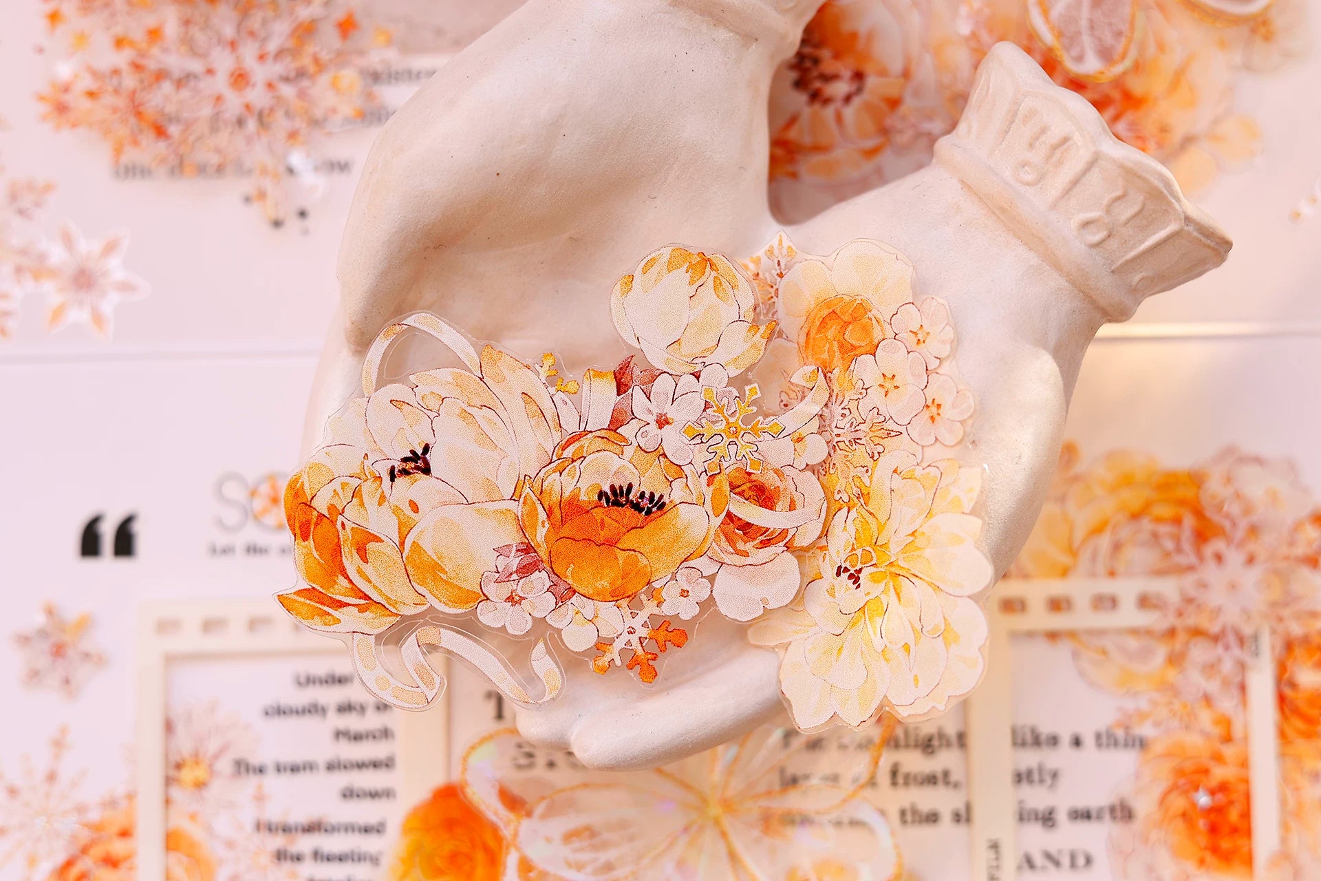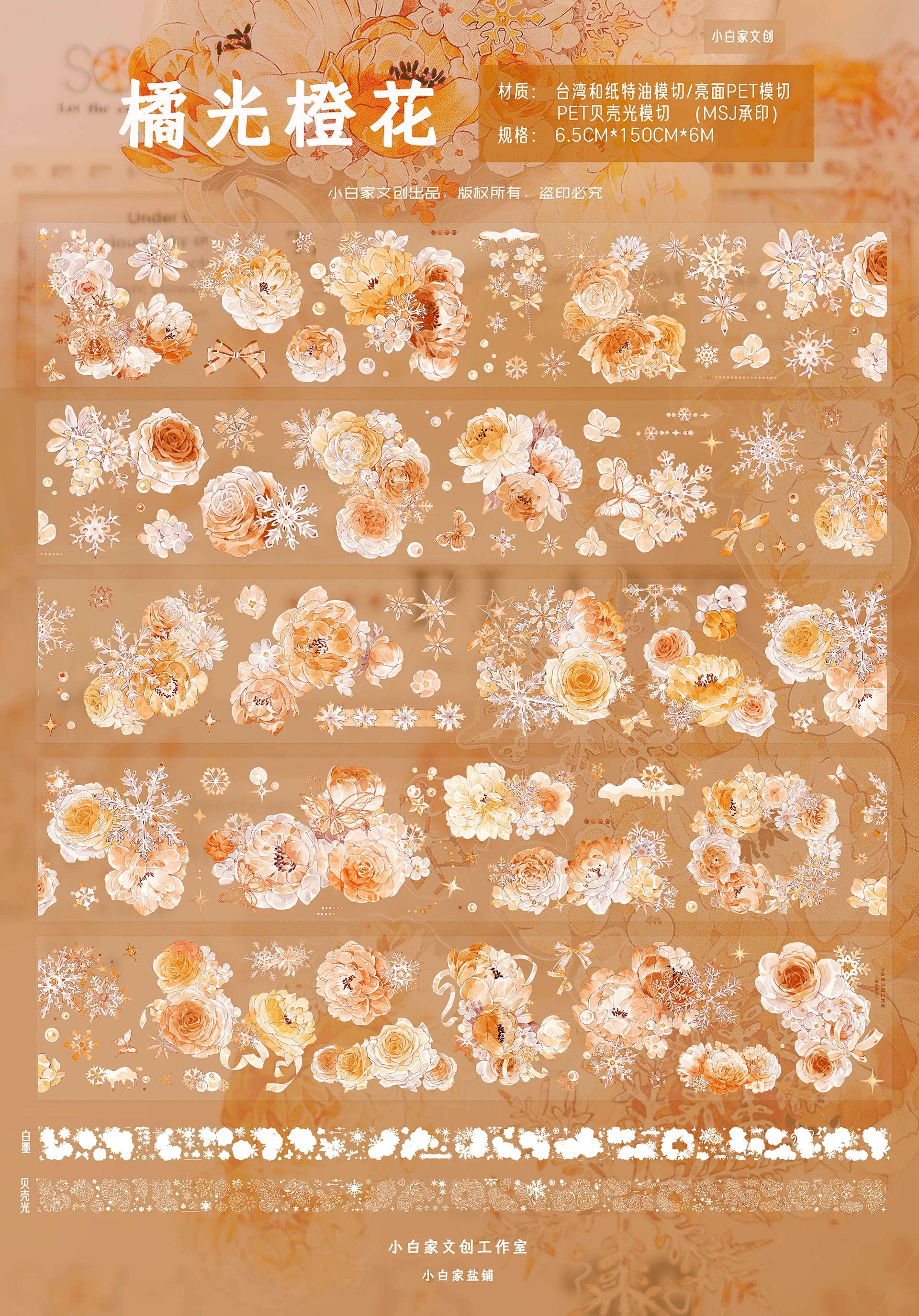 XiaoBaiJia Salt Series【Orange Light Orange Blossom】Orginal Design Kiss-cut Washi/Pet Floral Tape Light Retro Landscaping Stickers
