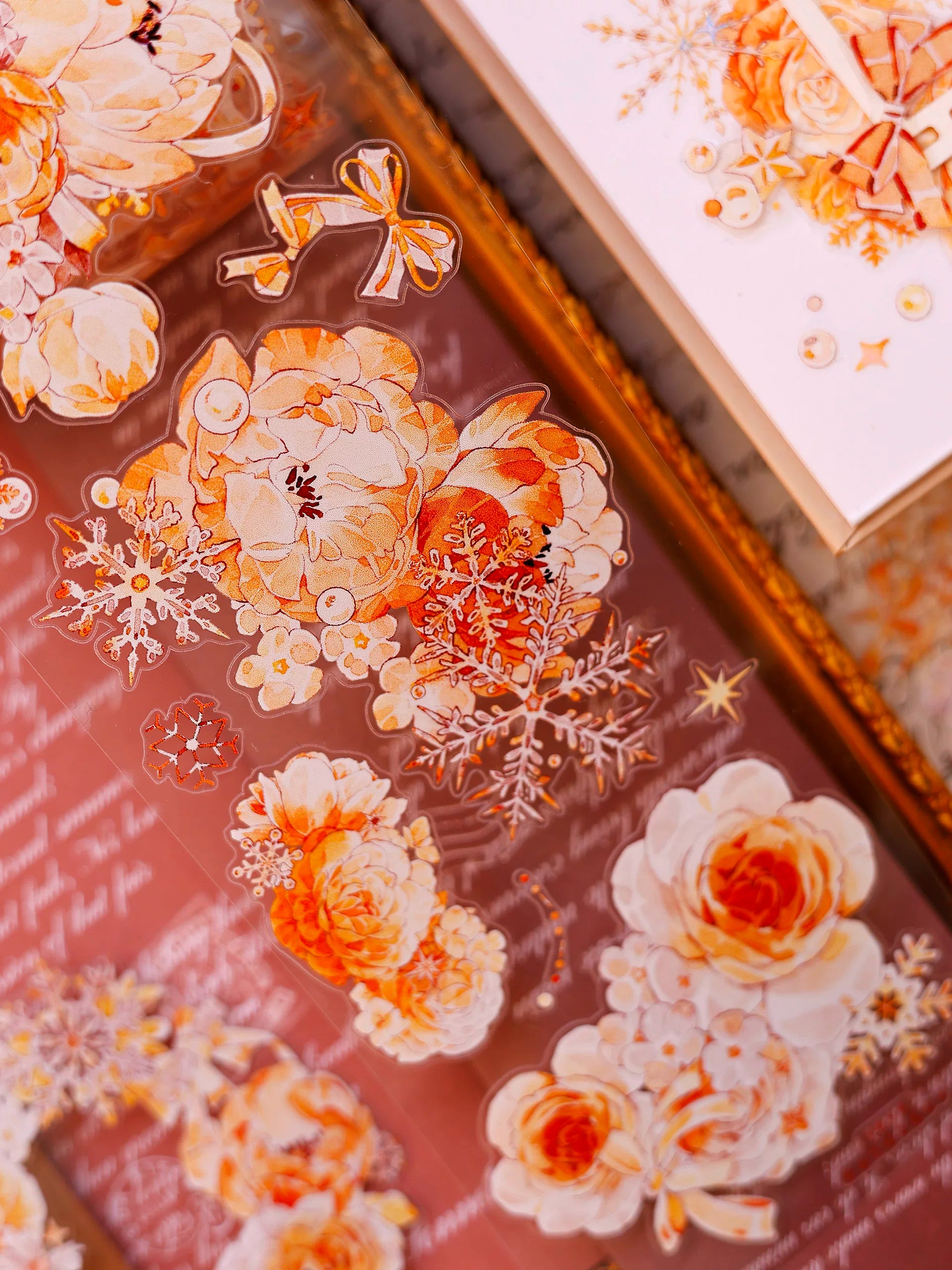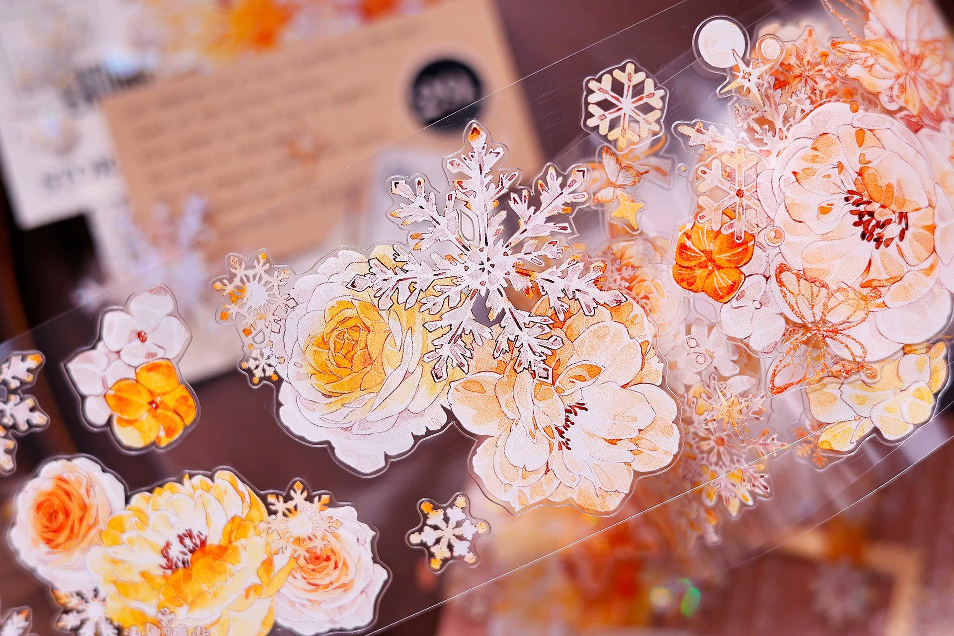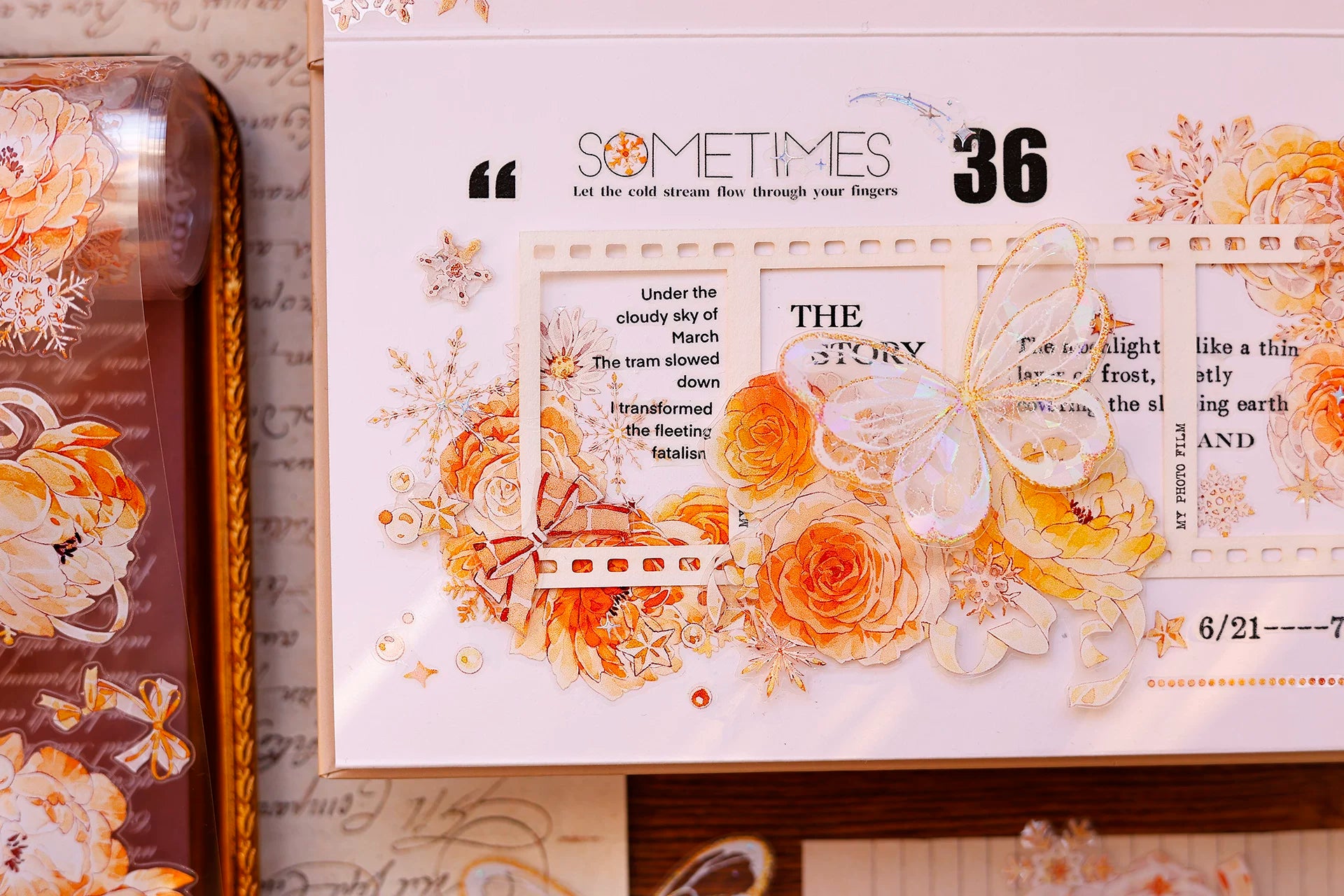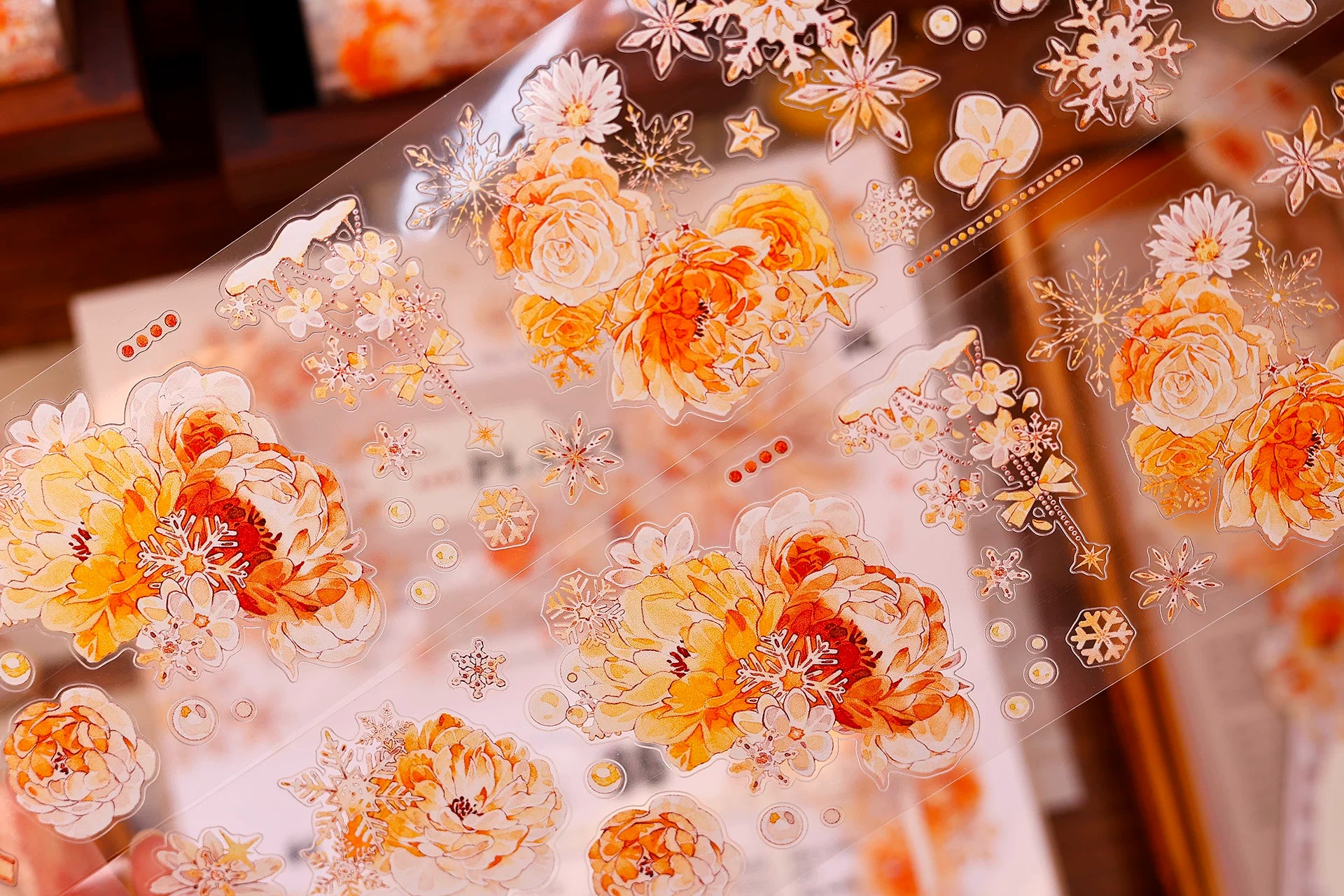 XiaoBaiJia Salt Series【Orange Light Orange Blossom】Orginal Design Kiss-cut Washi/Pet Floral Tape Light Retro Landscaping Stickers