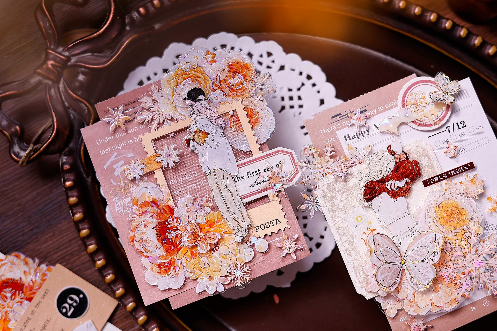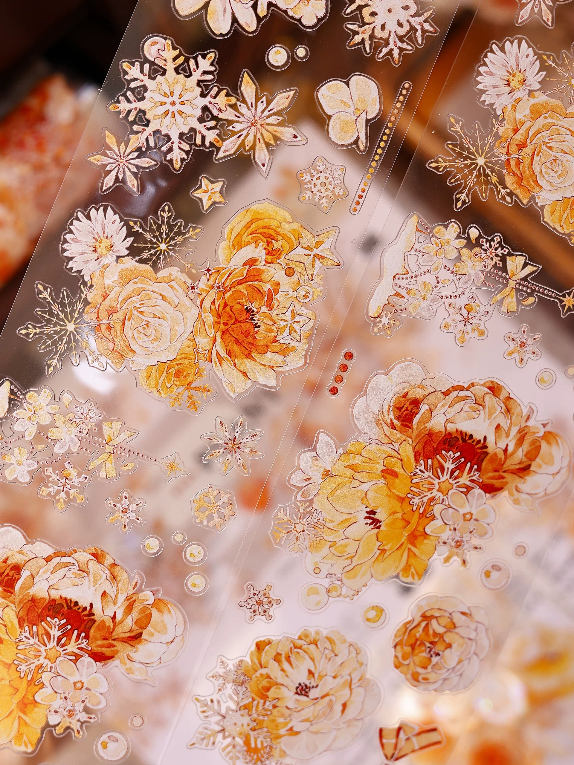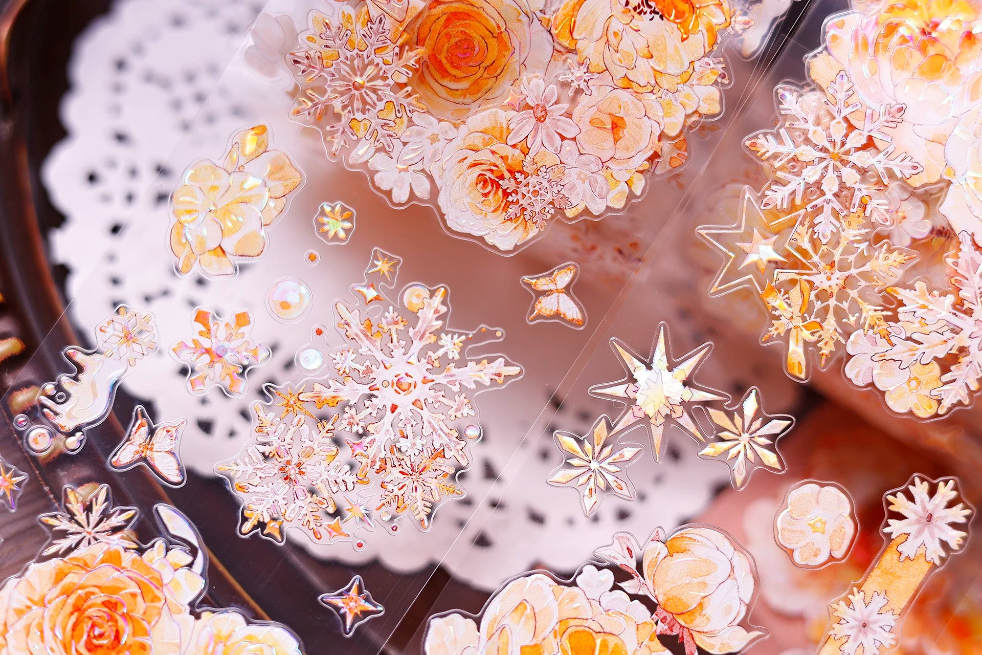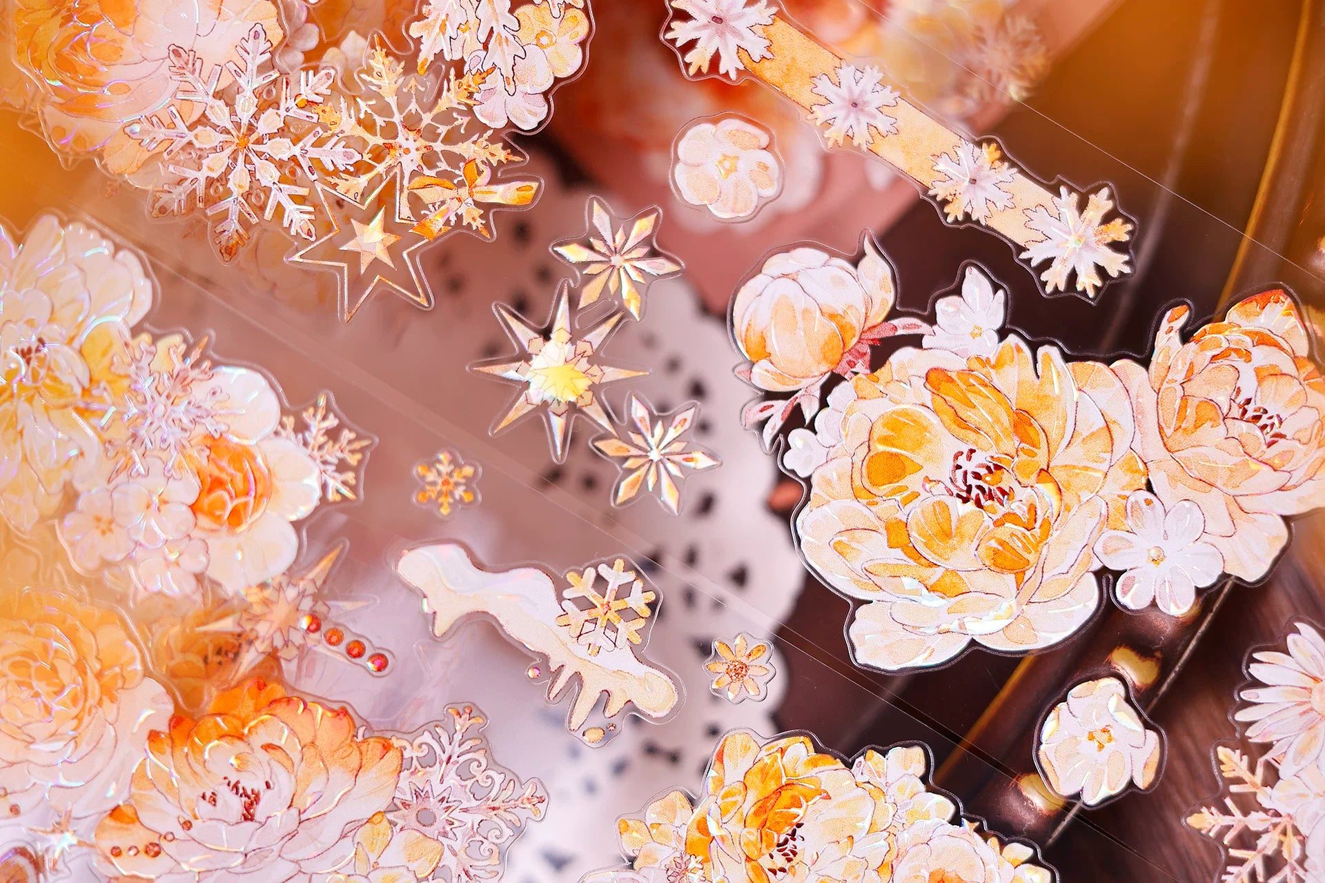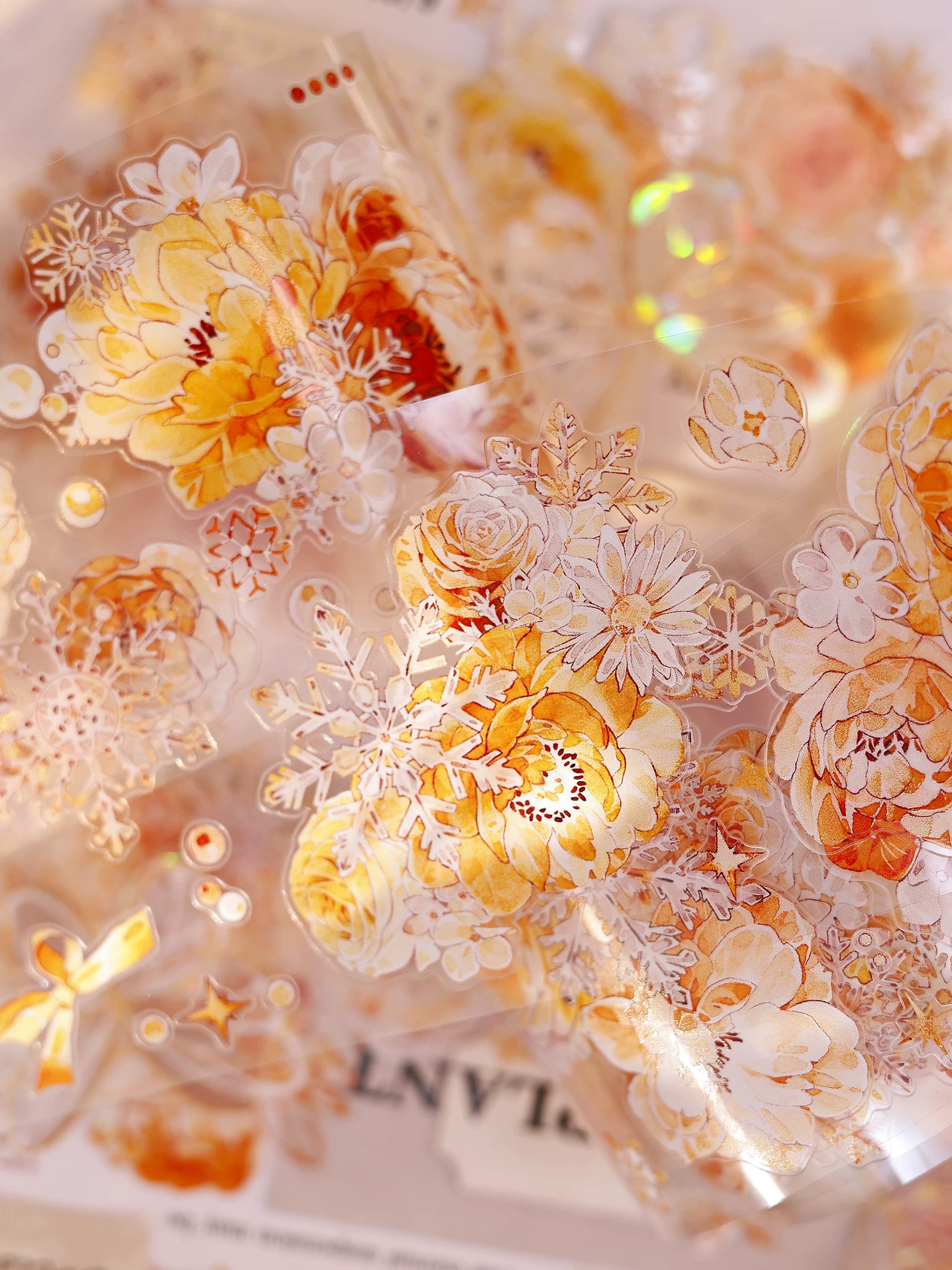XiaoBaiJia Salt Series【Orange Light Orange Blossom】Orginal Design Kiss-cut Washi/Pet Floral Tape Light Retro Landscaping Stickers