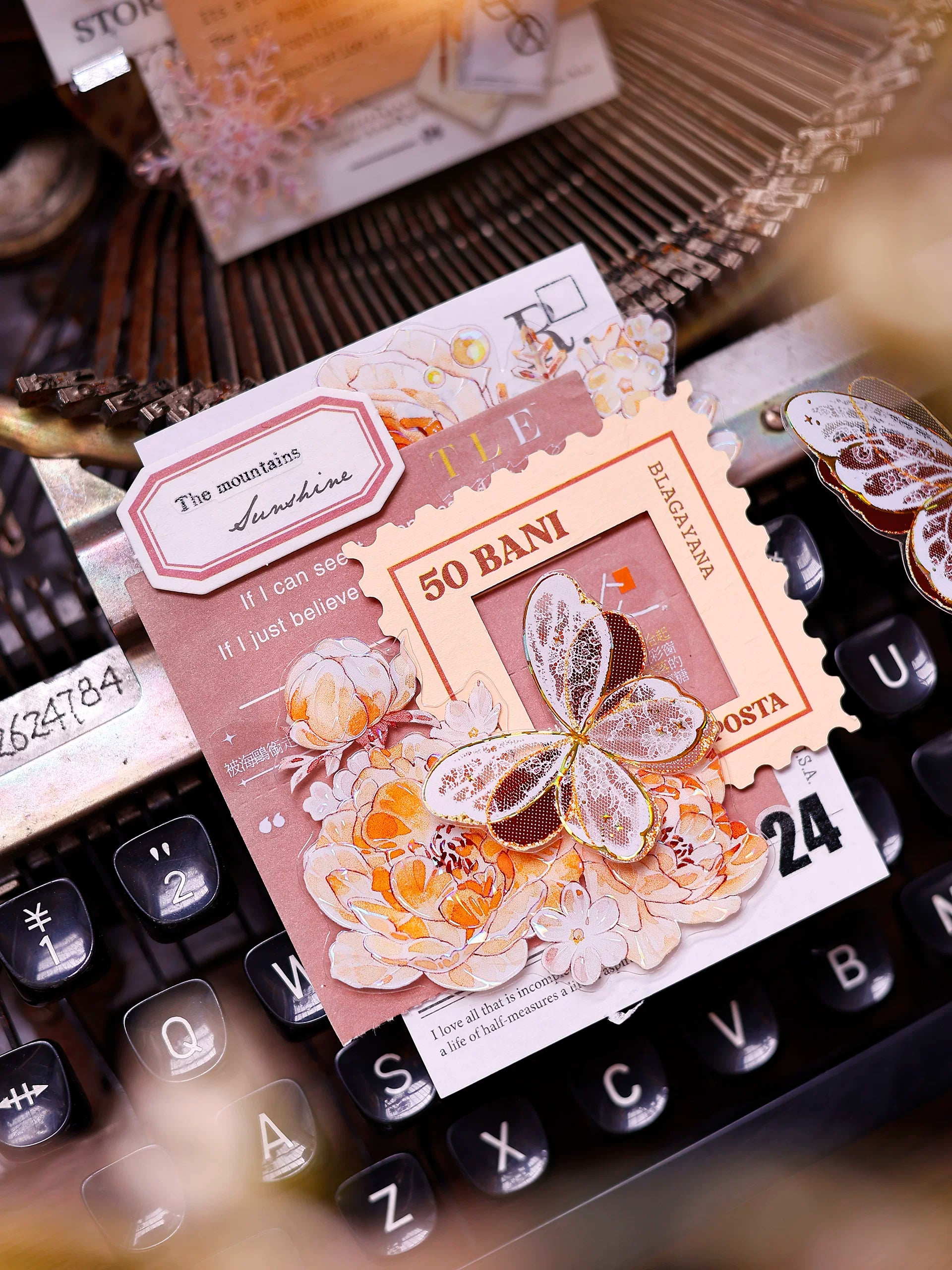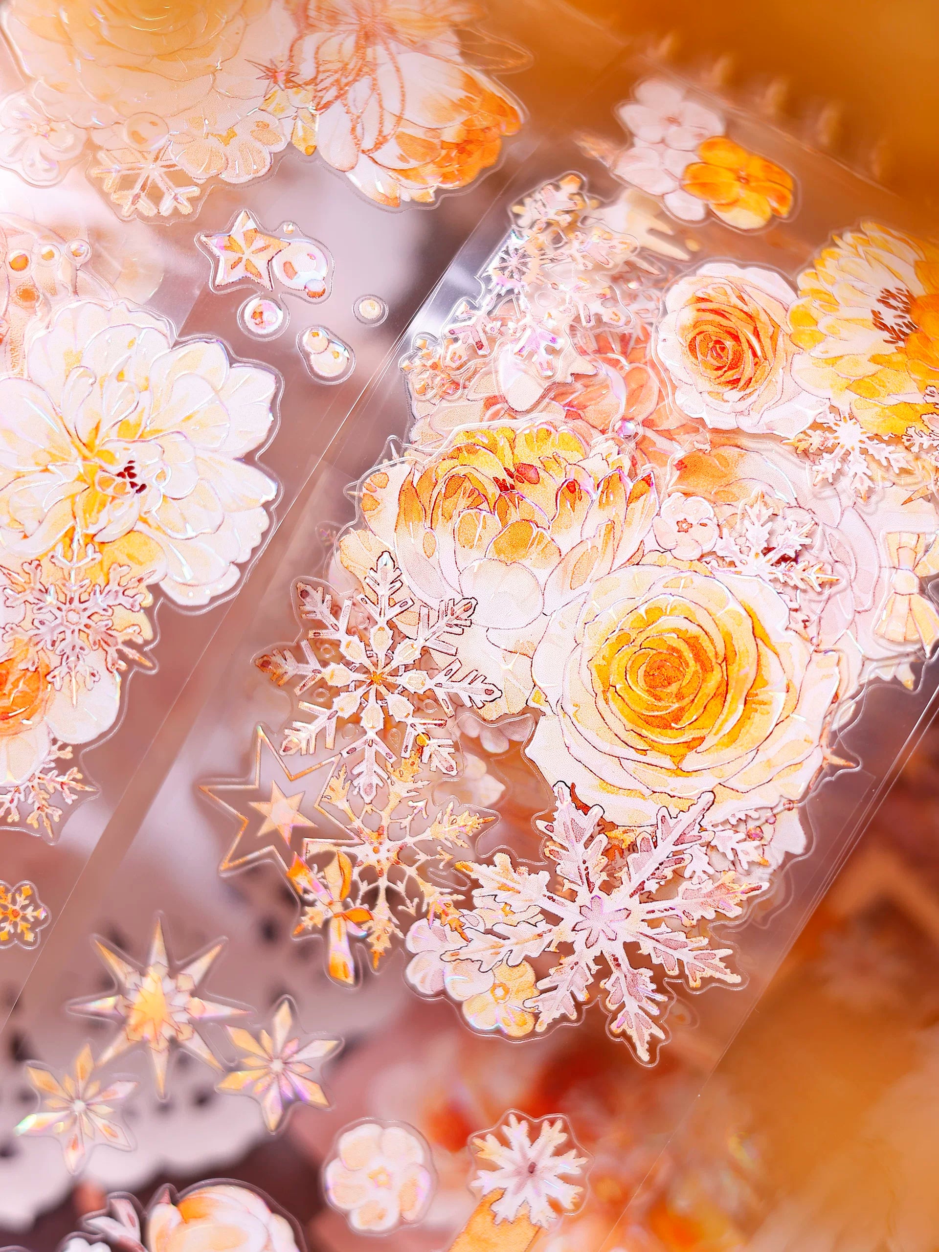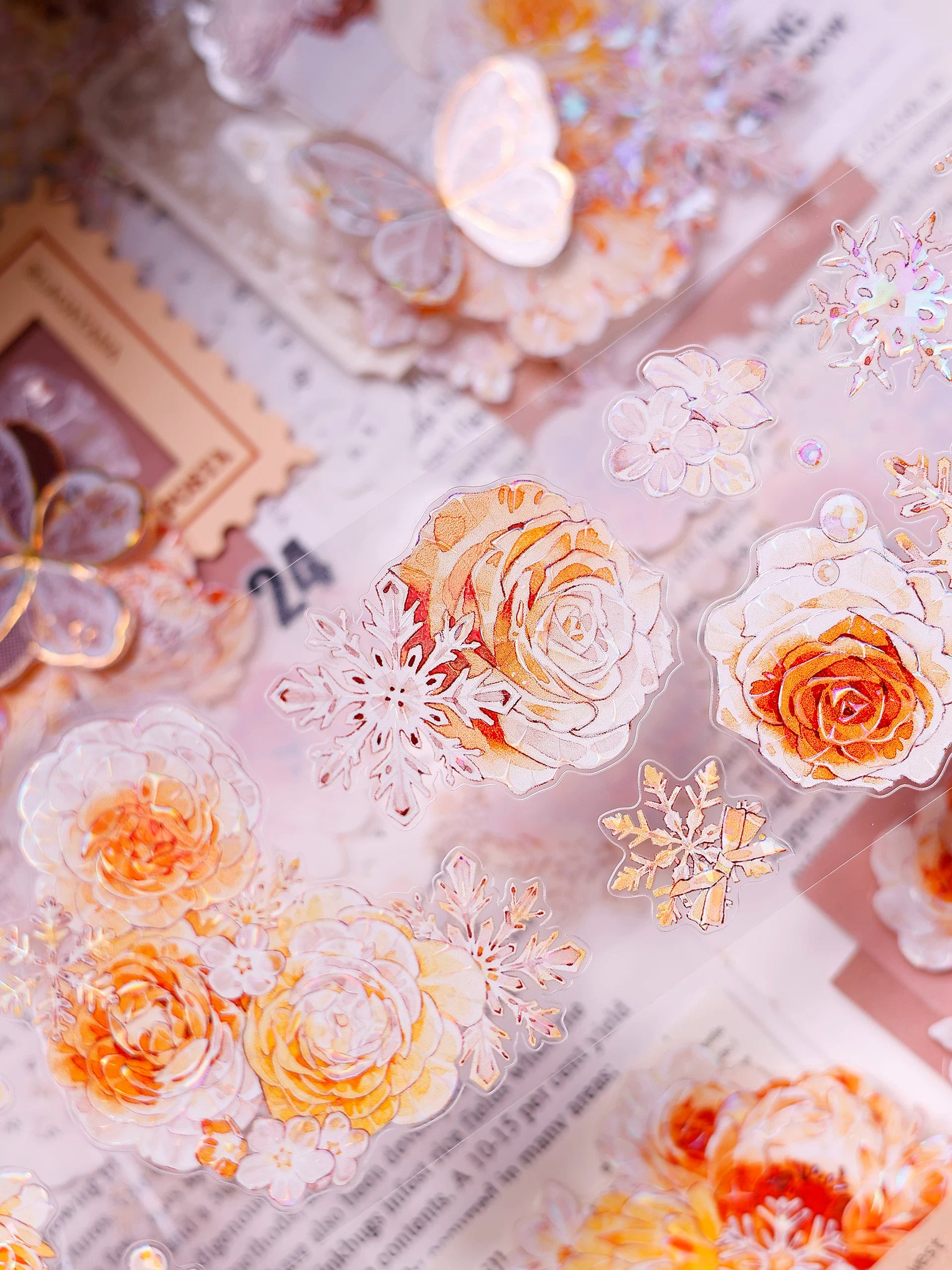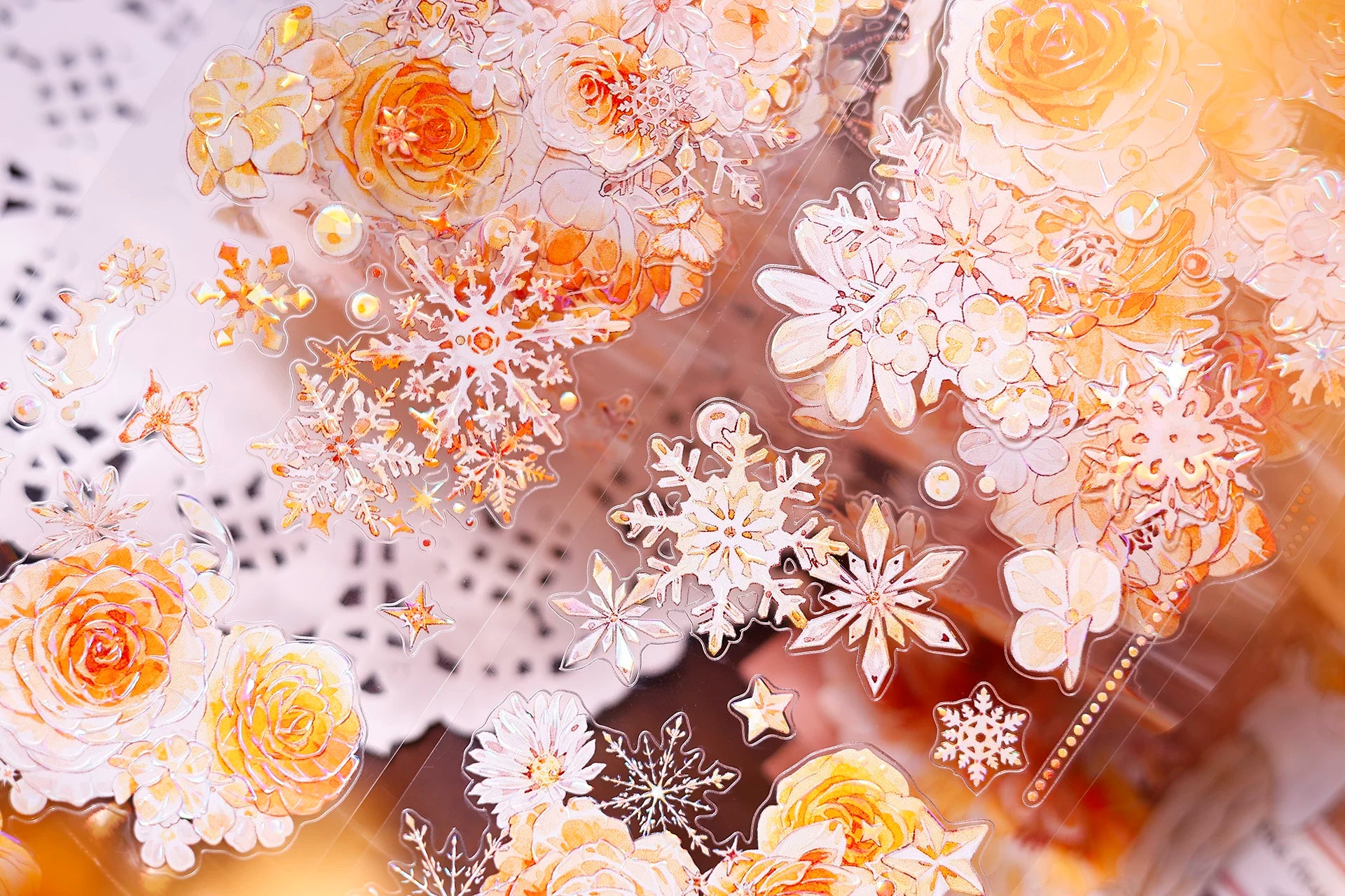 XiaoBaiJia Salt Series【Orange Light Orange Blossom】Orginal Design Kiss-cut Washi/Pet Floral Tape Light Retro Landscaping Stickers