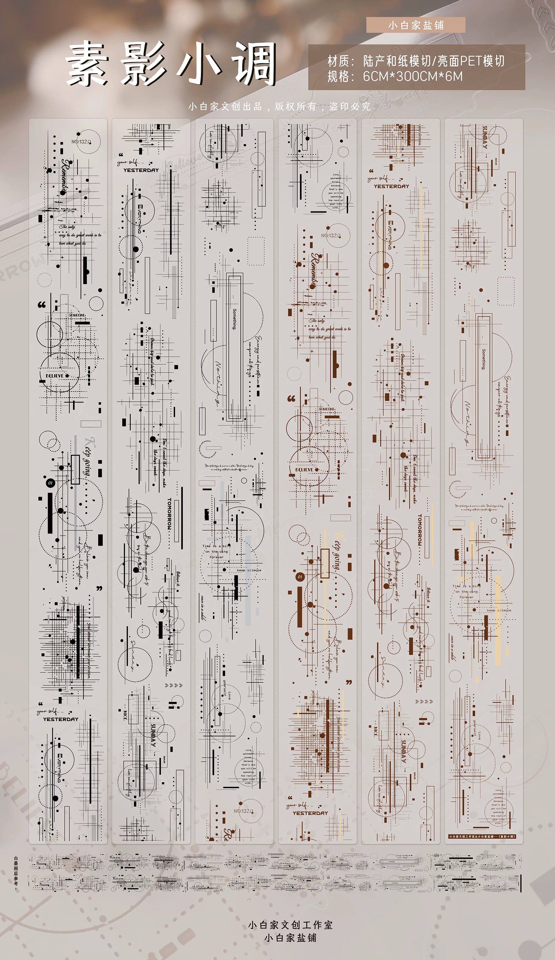 XiaoBaiJia Salt Series【Shadow Serenade】Pre-cut Orginal Design Washi/Pet Tape Light Retro Stickers