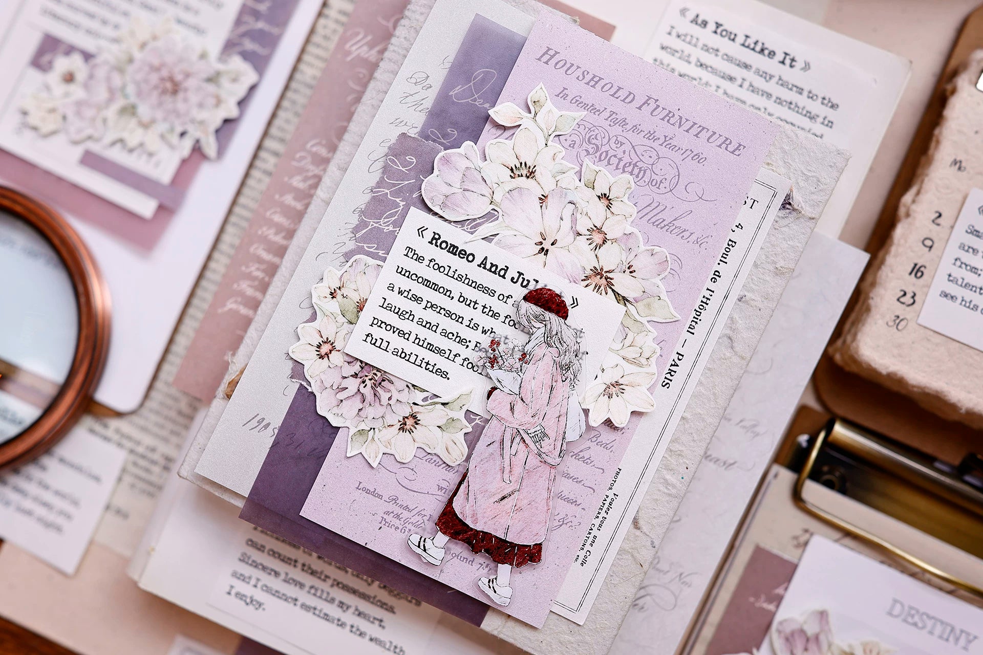 XiaoBaiJia Salt Series【Smoky Purple】Pre-cut Orginal Design Washi/Pet Tape Light Retro Stickers