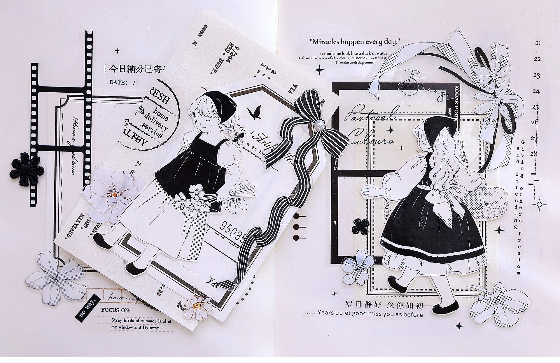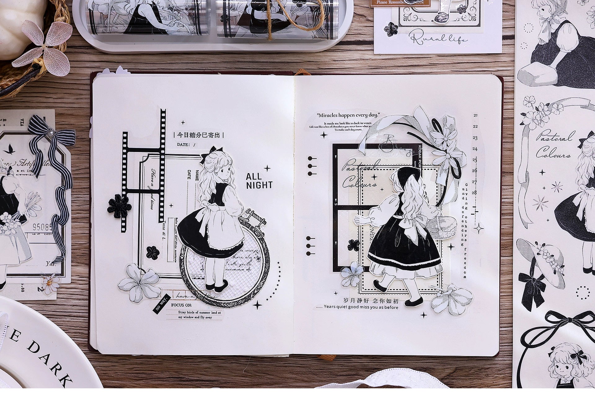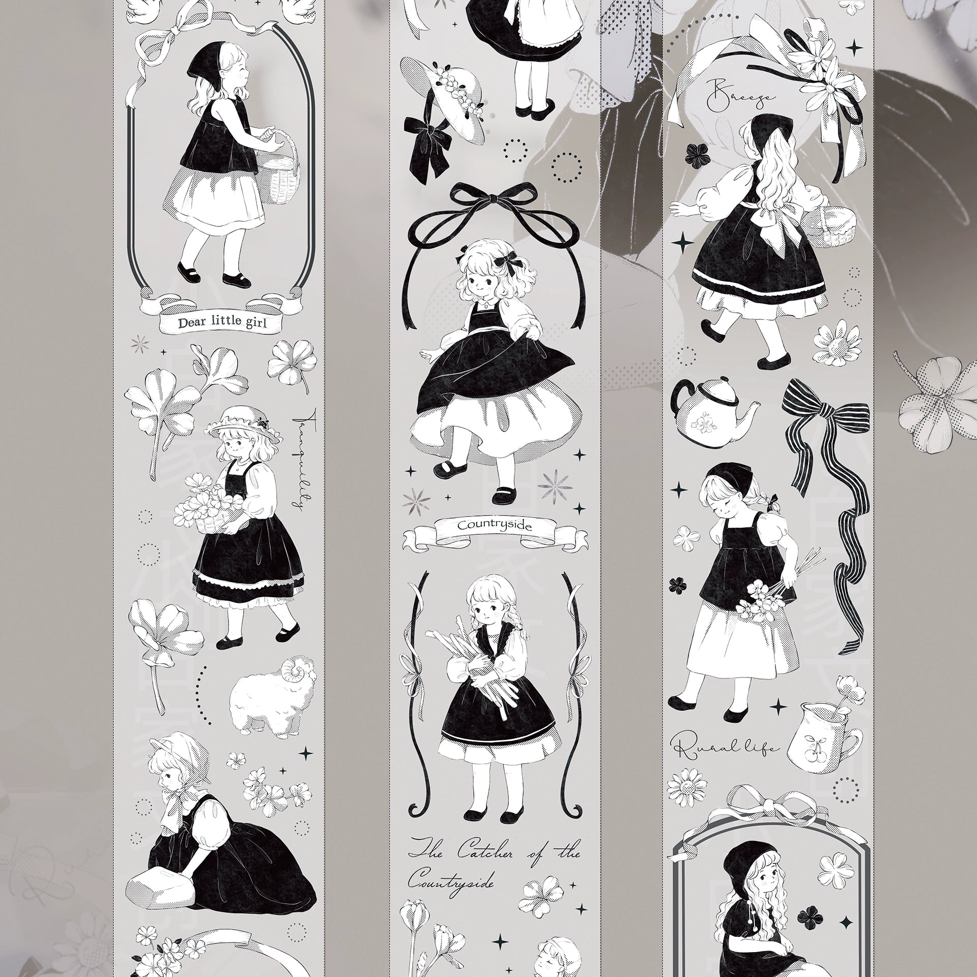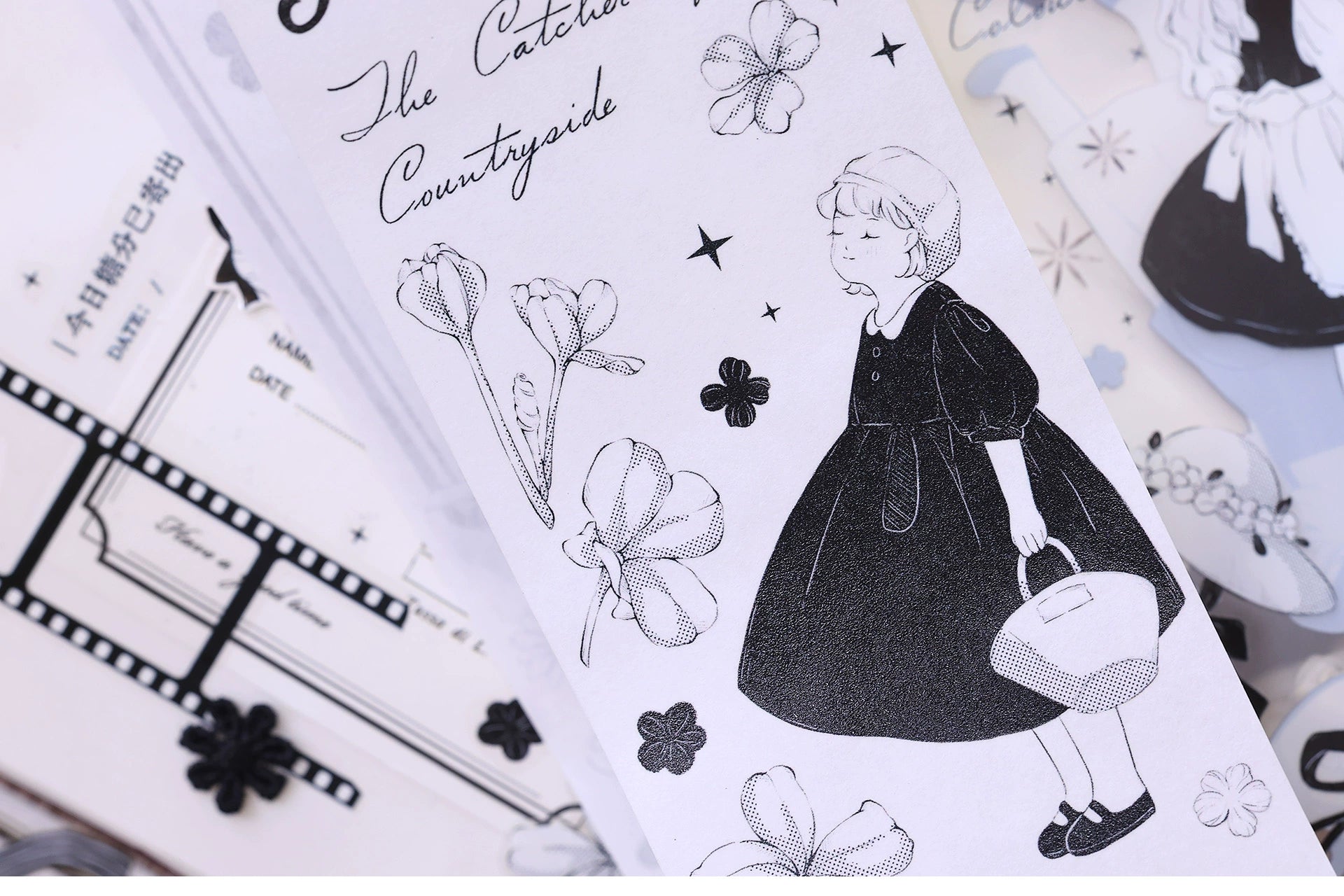 XiaoBaiJia【Small Countryside】Light Retro Black and White Characters Orginal Design Washi Pet Tape Stickers