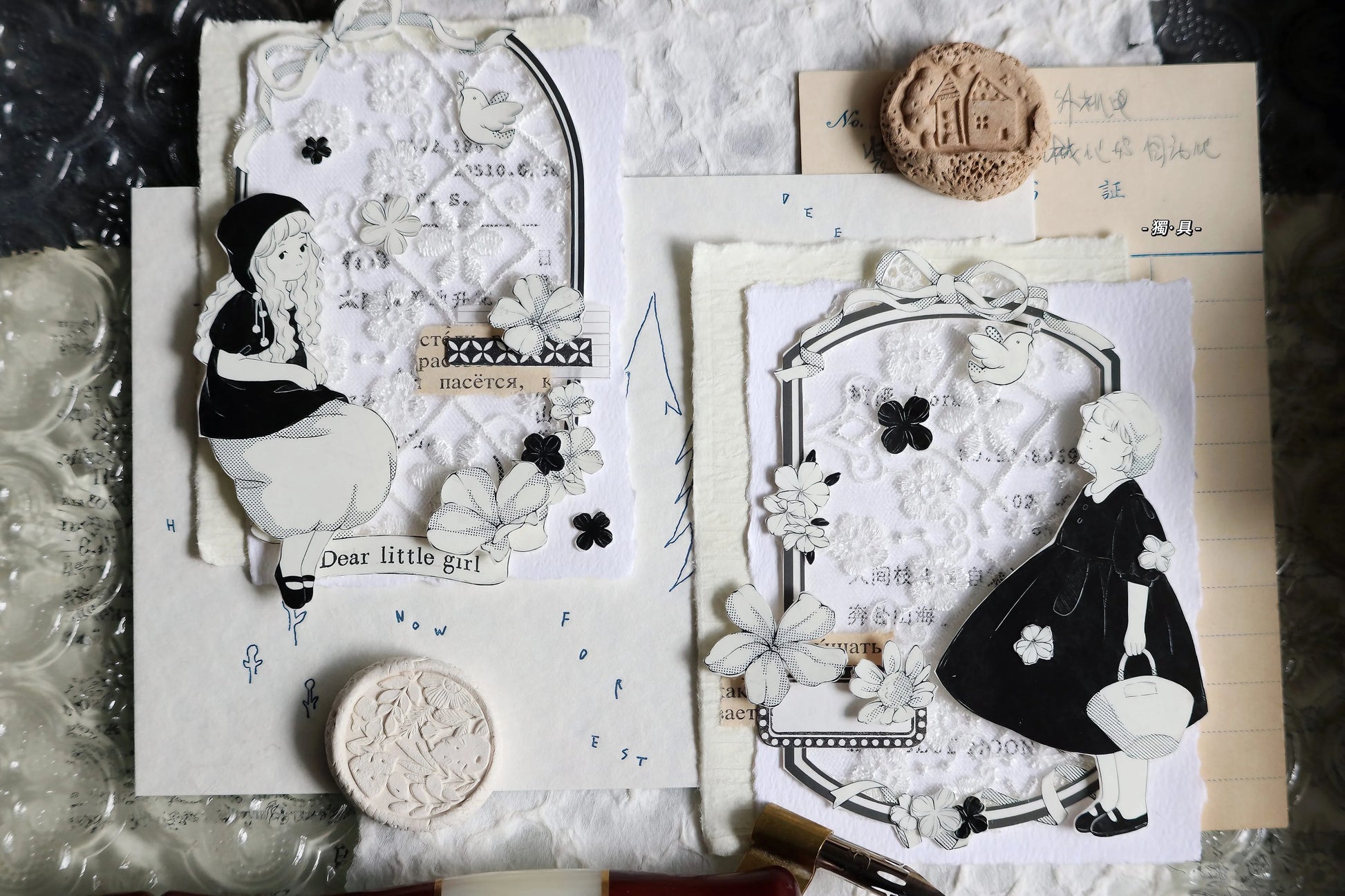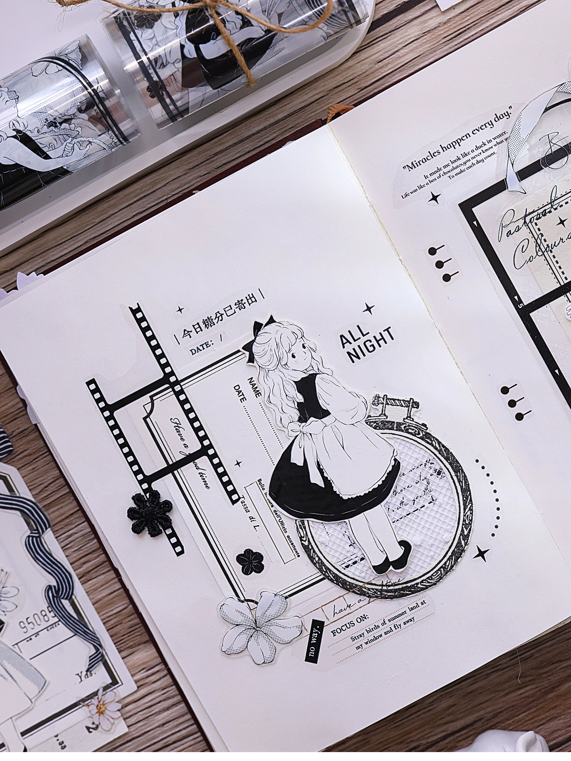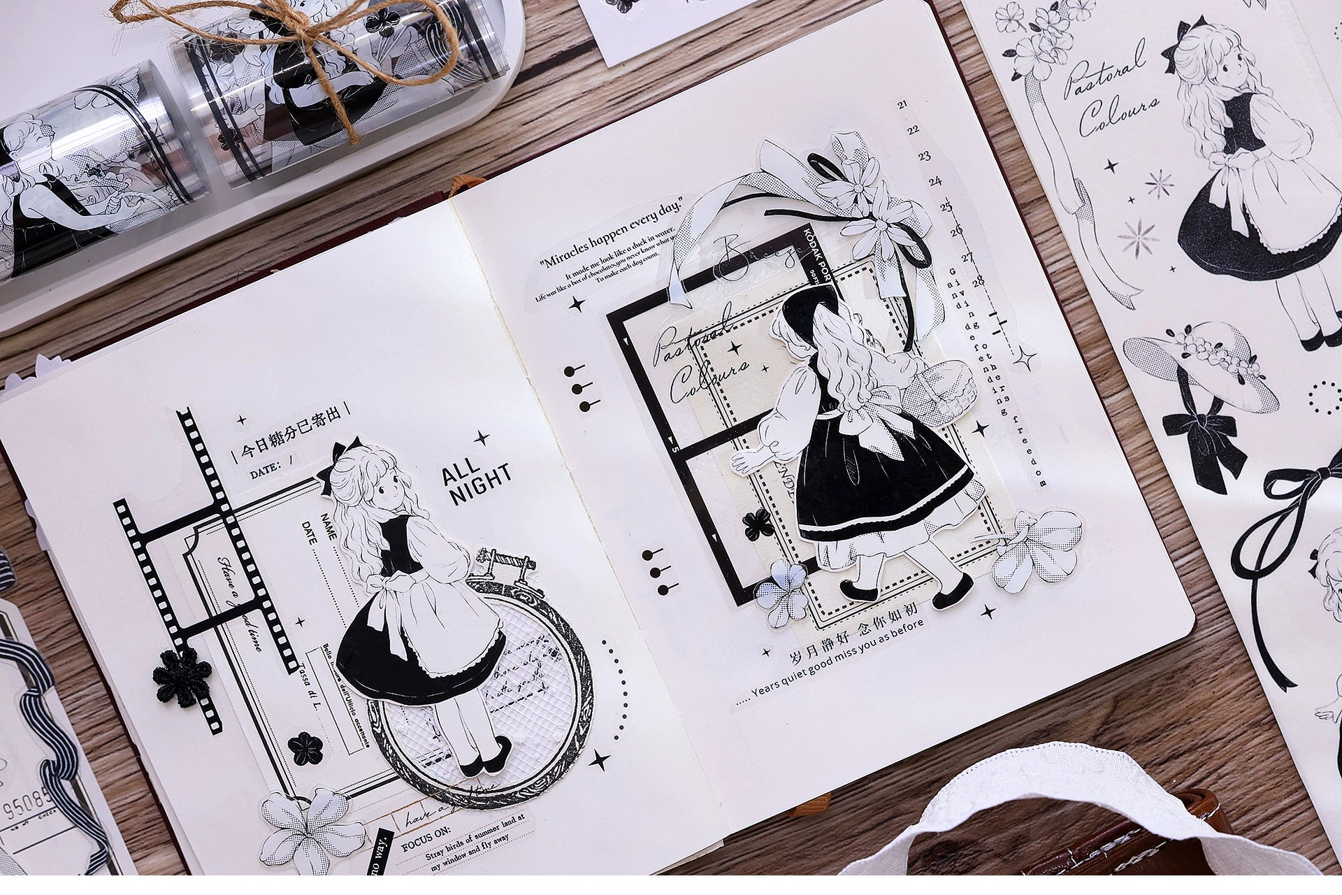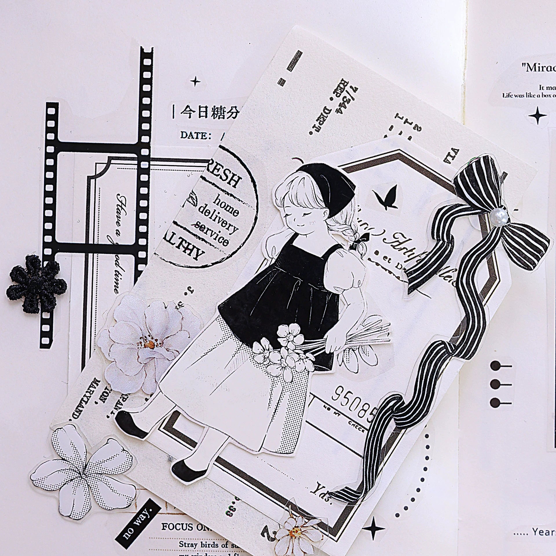 XiaoBaiJia【Small Countryside】Light Retro Black and White Characters Orginal Design Washi Pet Tape Stickers