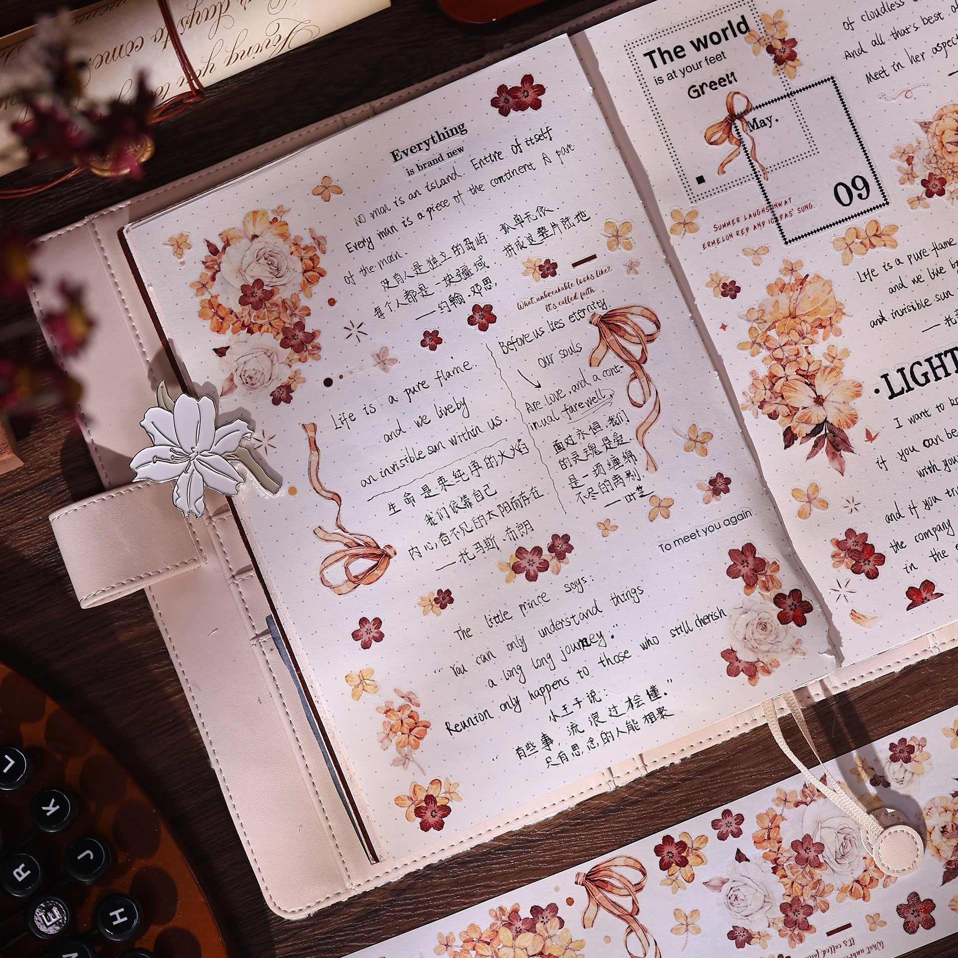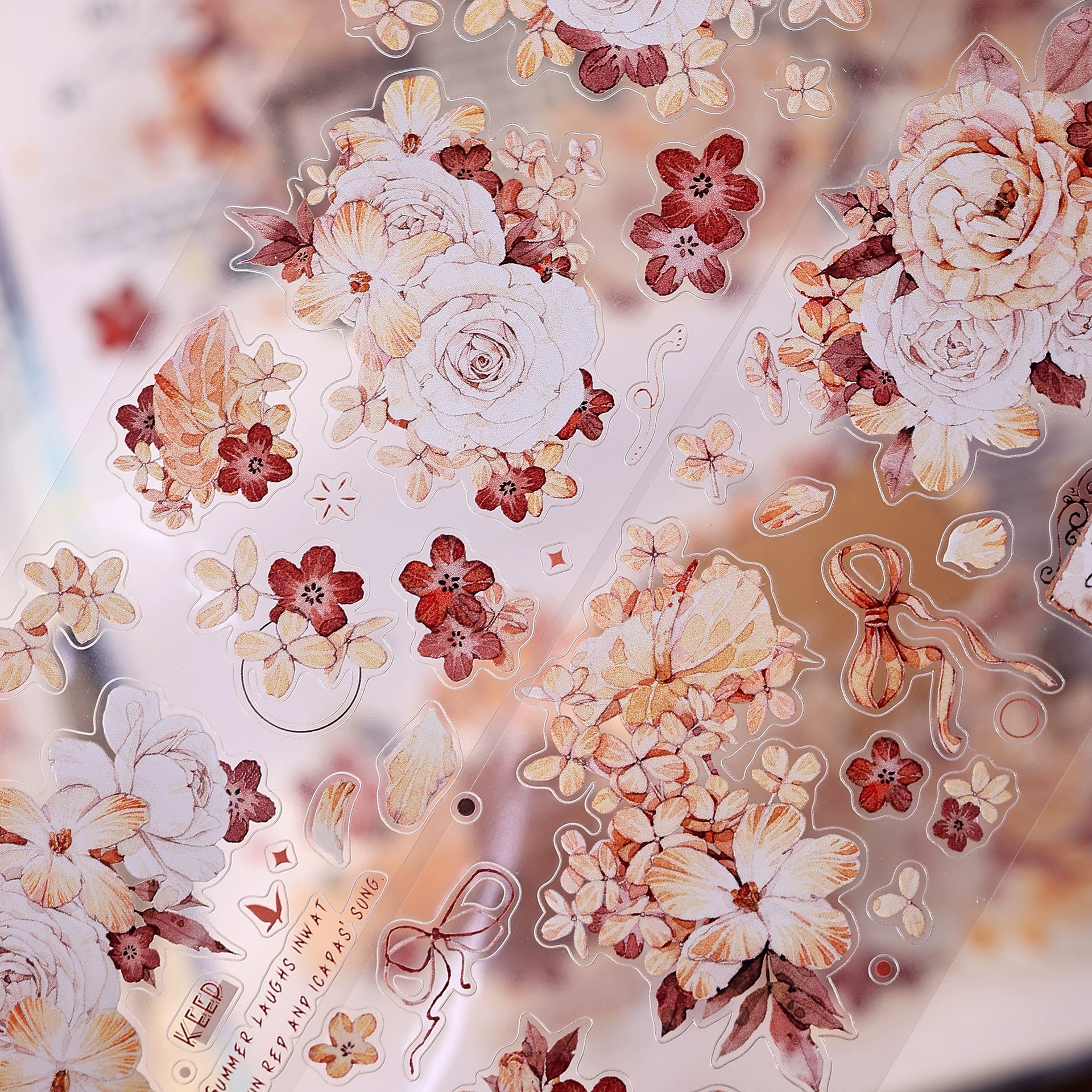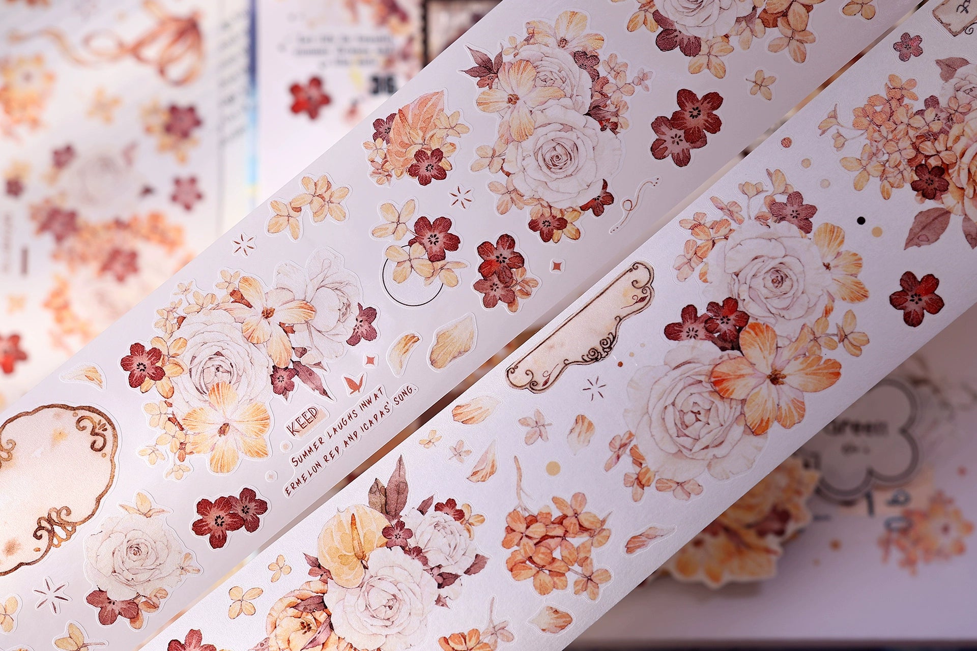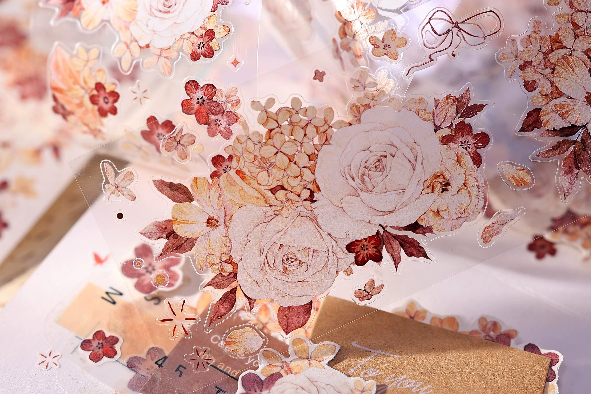 XiaoBaiJia【Tea Dyeing】Light Retro Flowers Orginal Design Washi Pet Tape Stickers