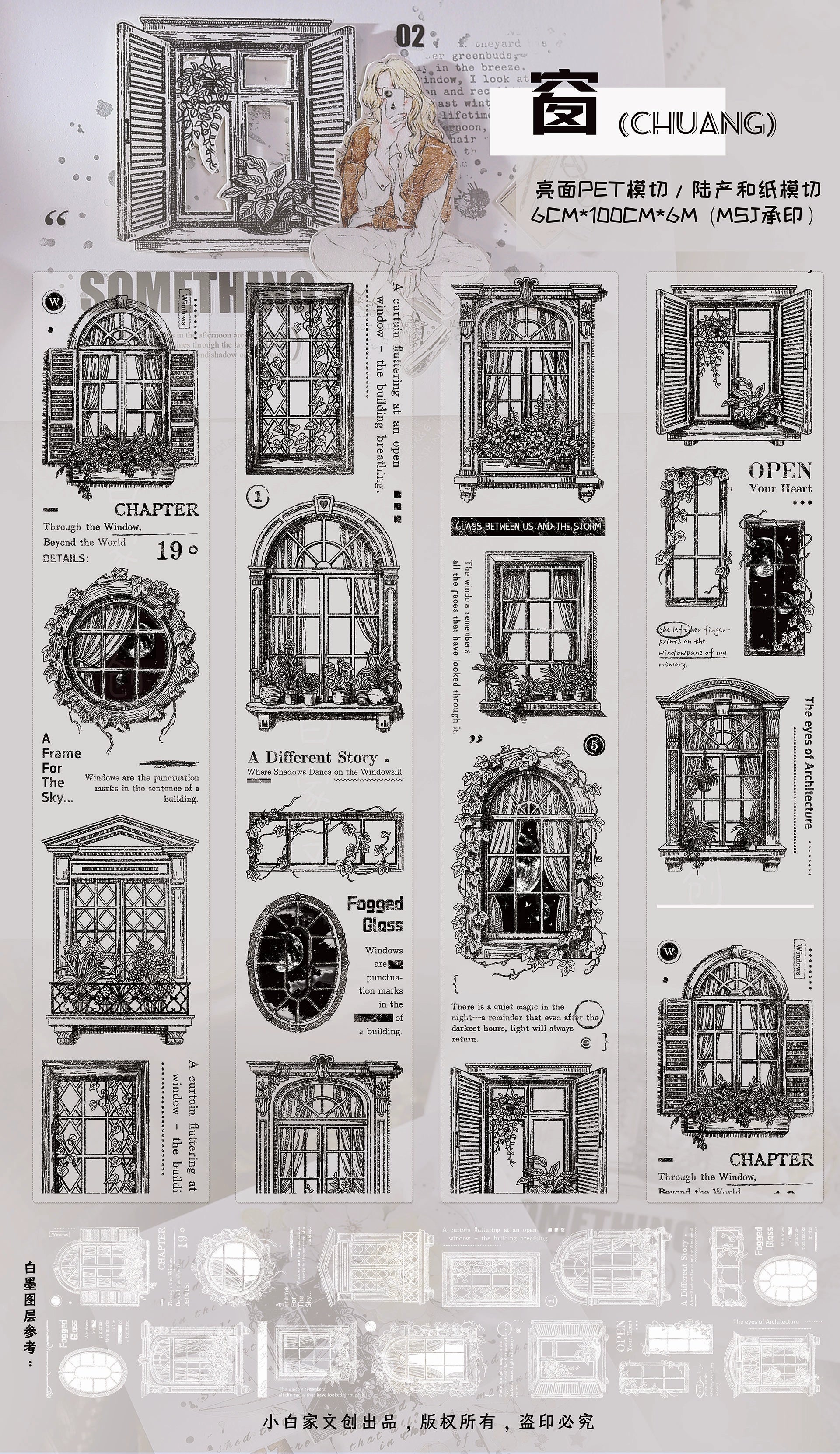 XiaoBaiJia【Window】Light Retro Orginal Design Washi Pet Tape Landscape Stickers
