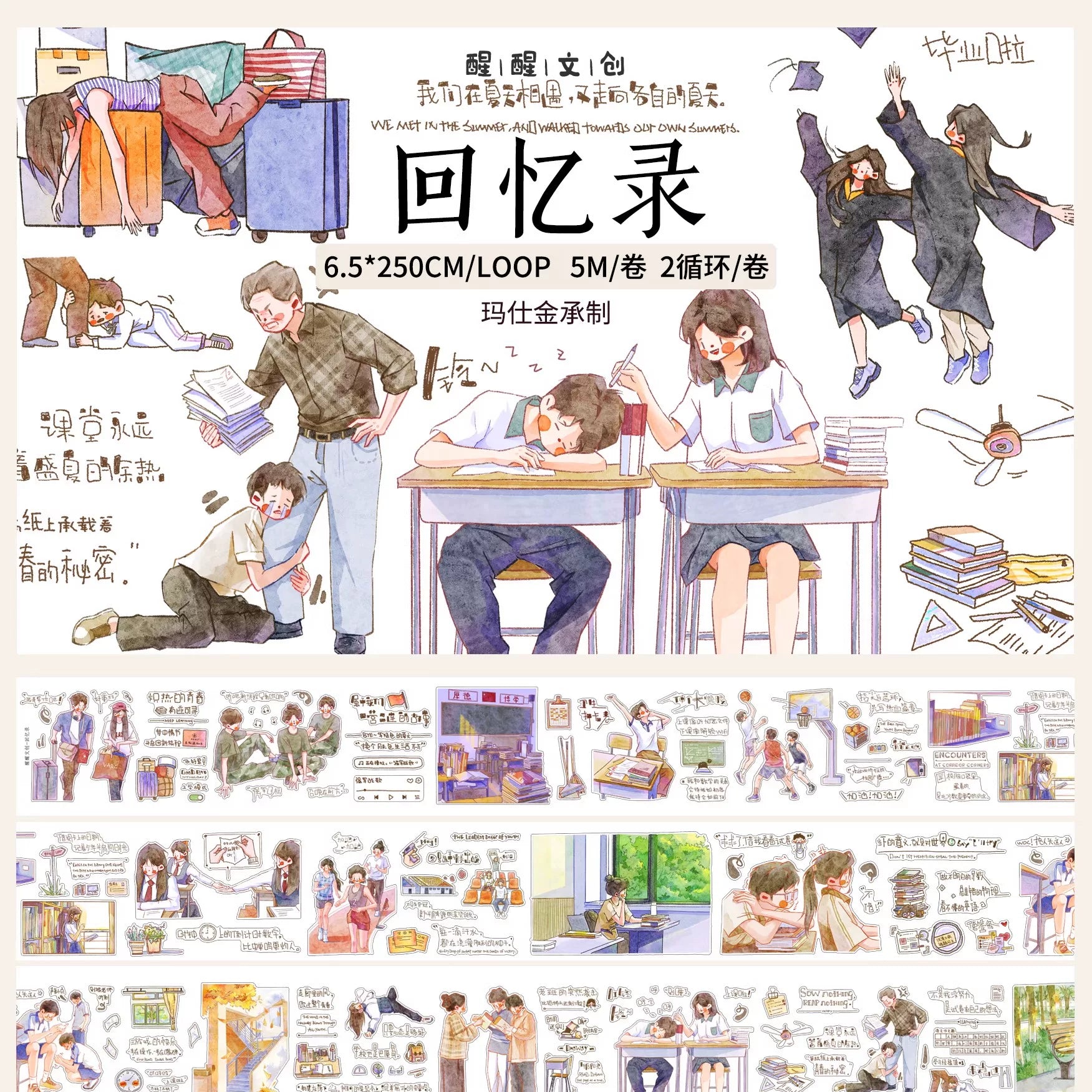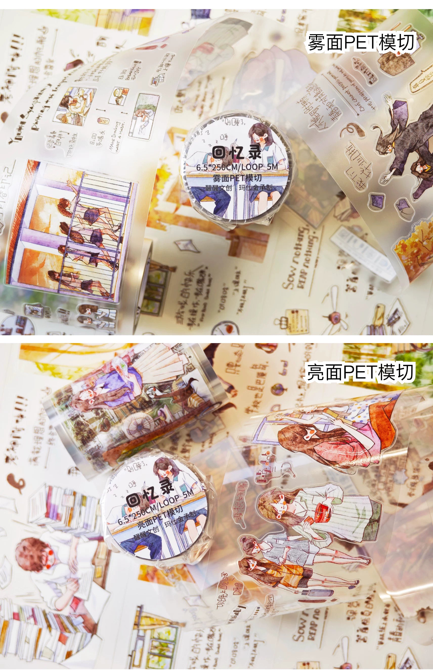XingXing【Memoir】 Pre-cut Light Retro Campus Youth Washi/PET Tape