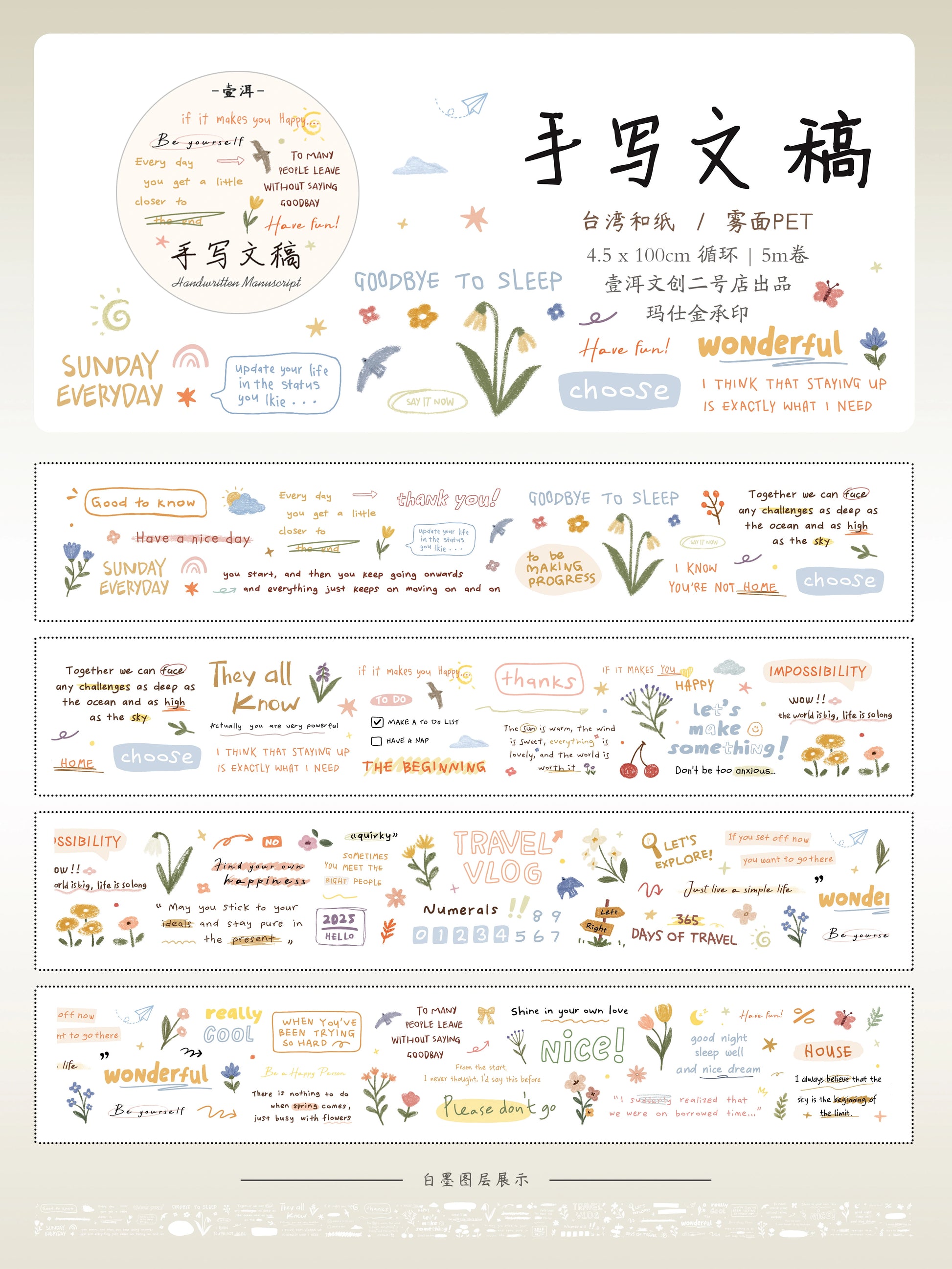 YiEr Minimalist Style Vol3【Handwritten Manuscript】Light Retro Orginal Design Washi Pet Tape Landscape Stickers