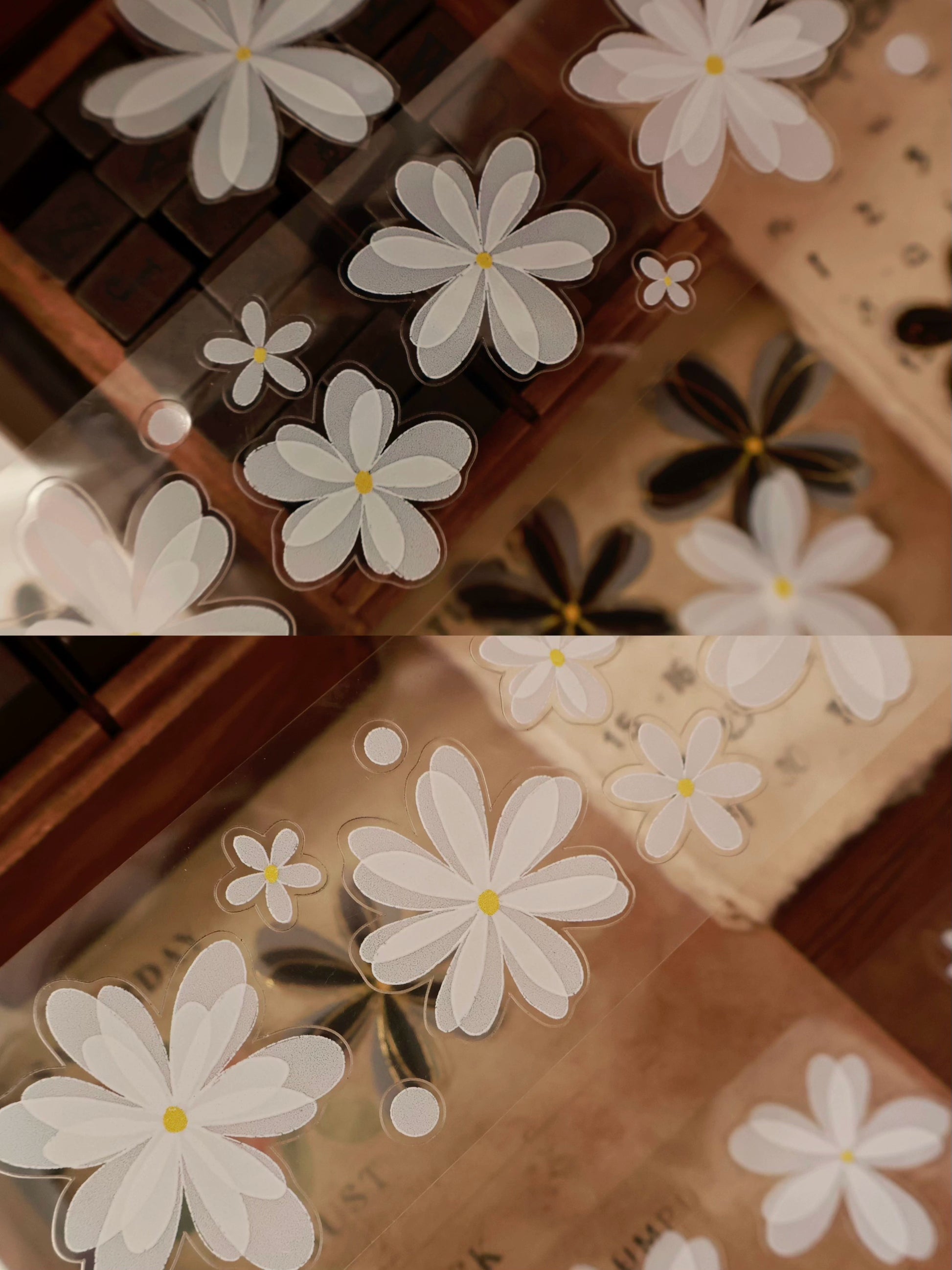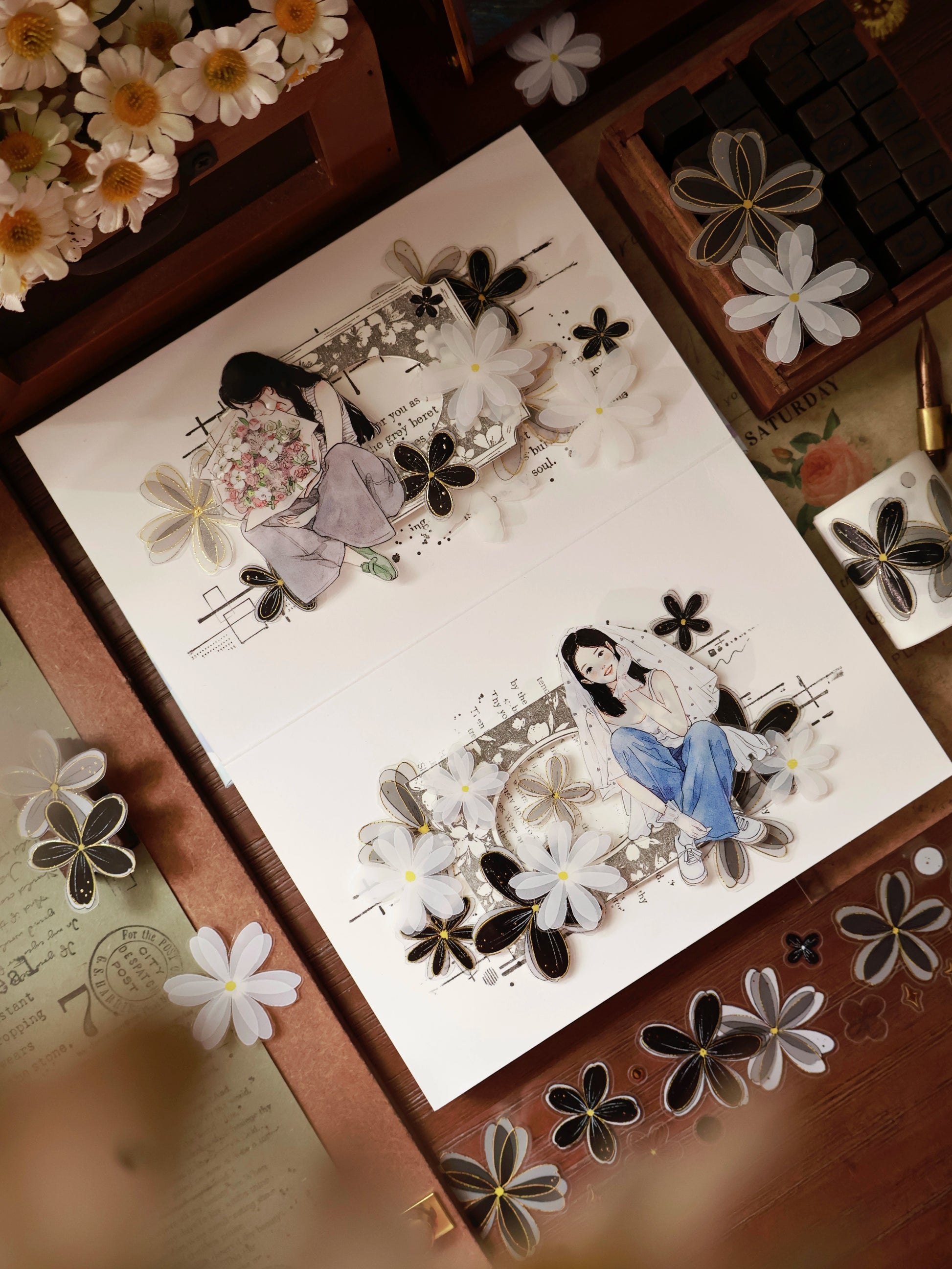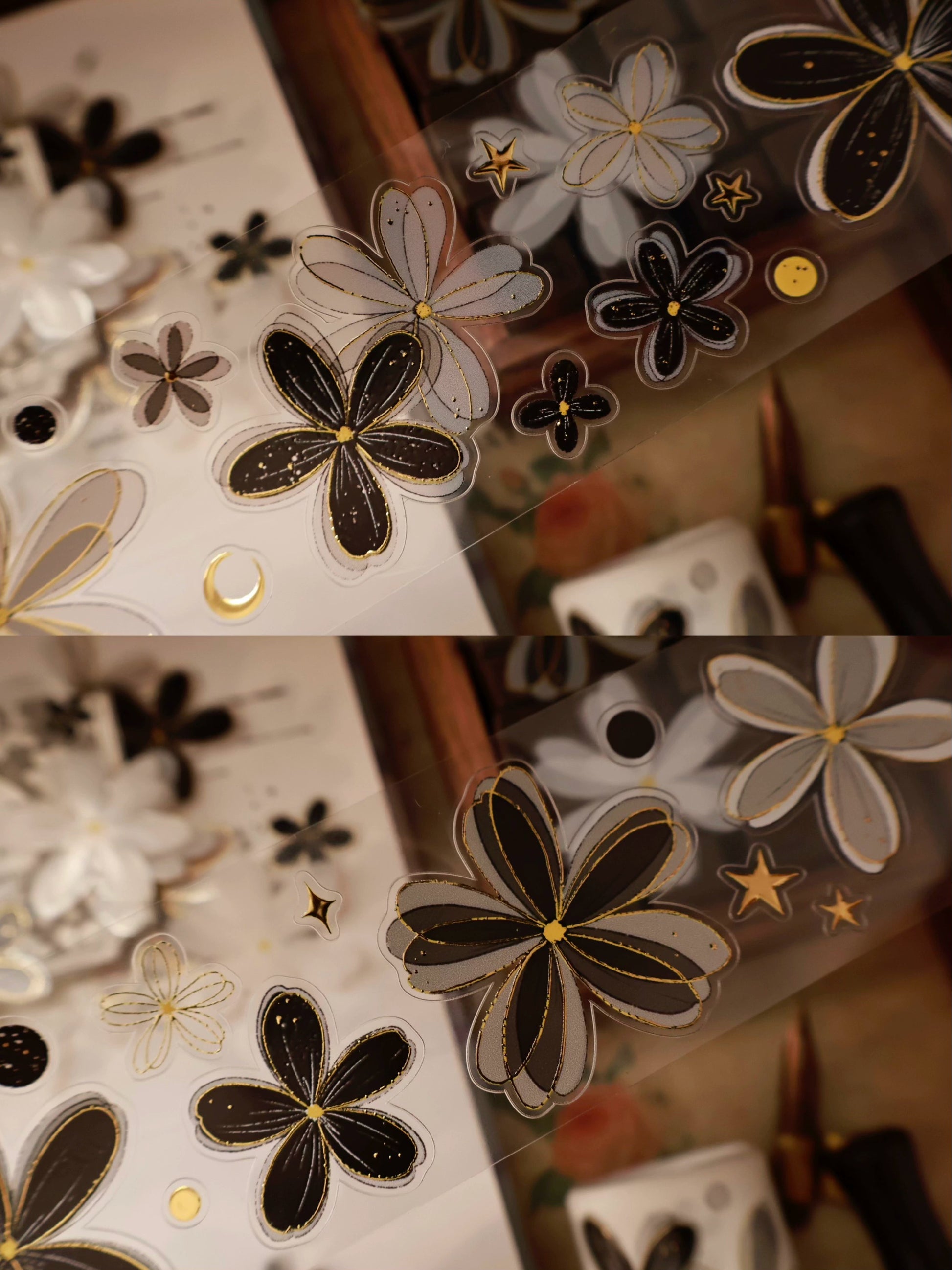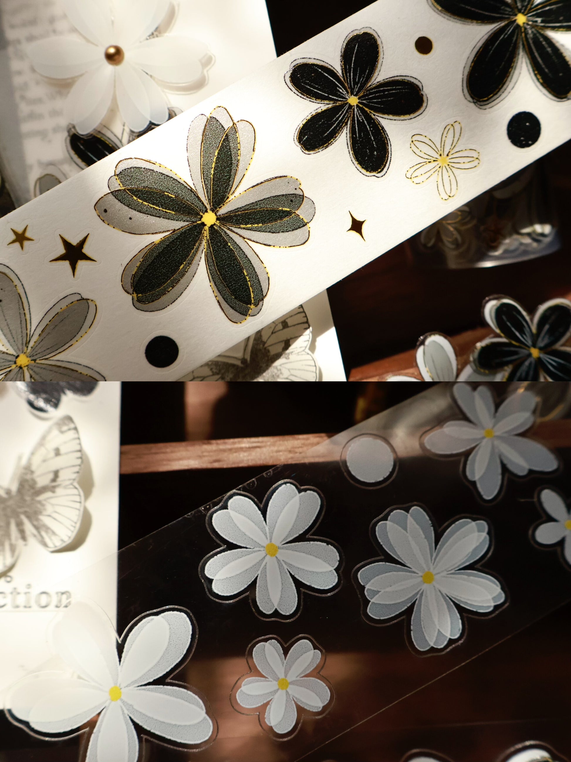YiEr Vol15【Black and White Flowers】Orginal Design Pre-cut Washi/Pet Floral Tape Light Retro Landscaping Stickers