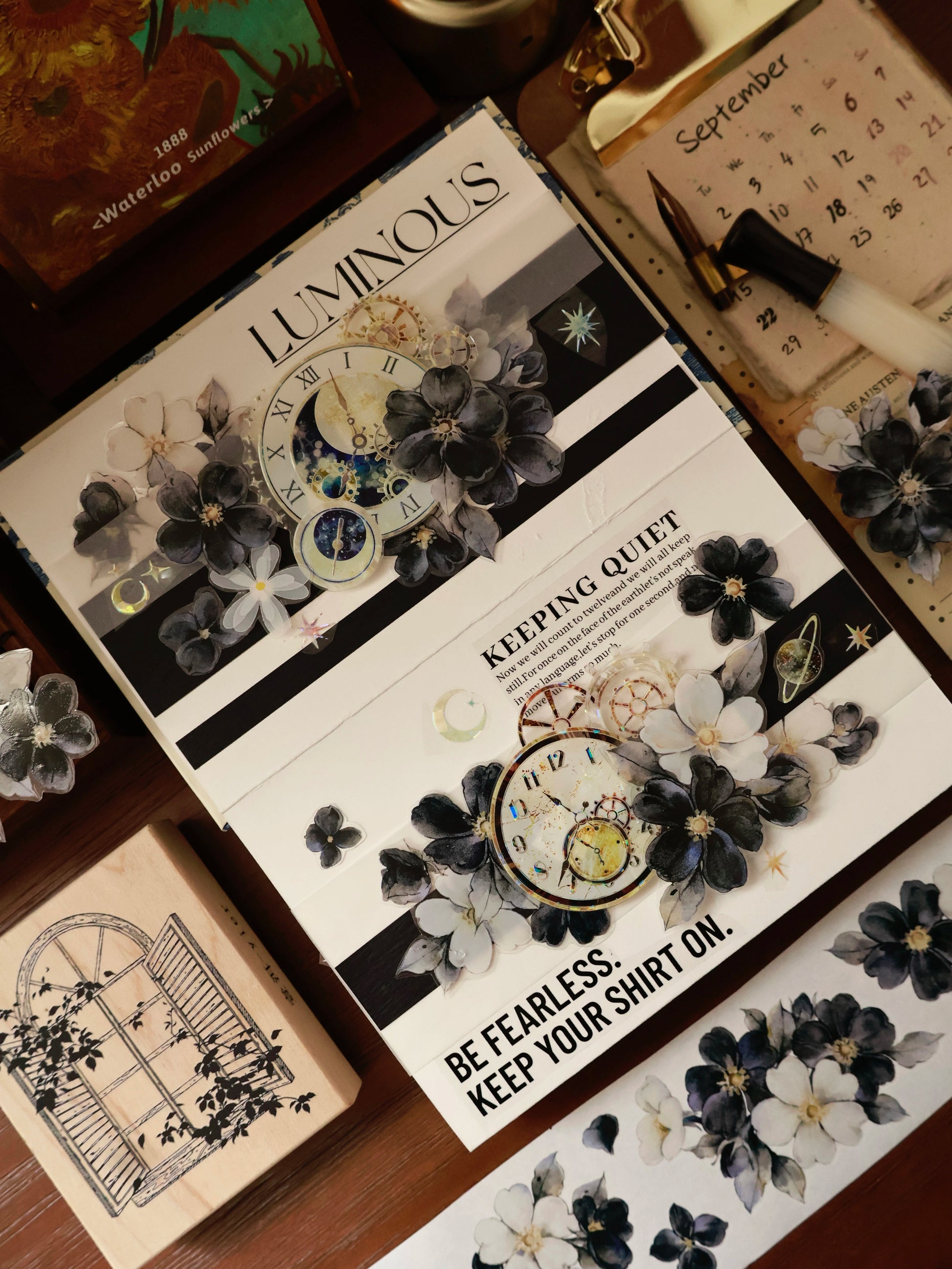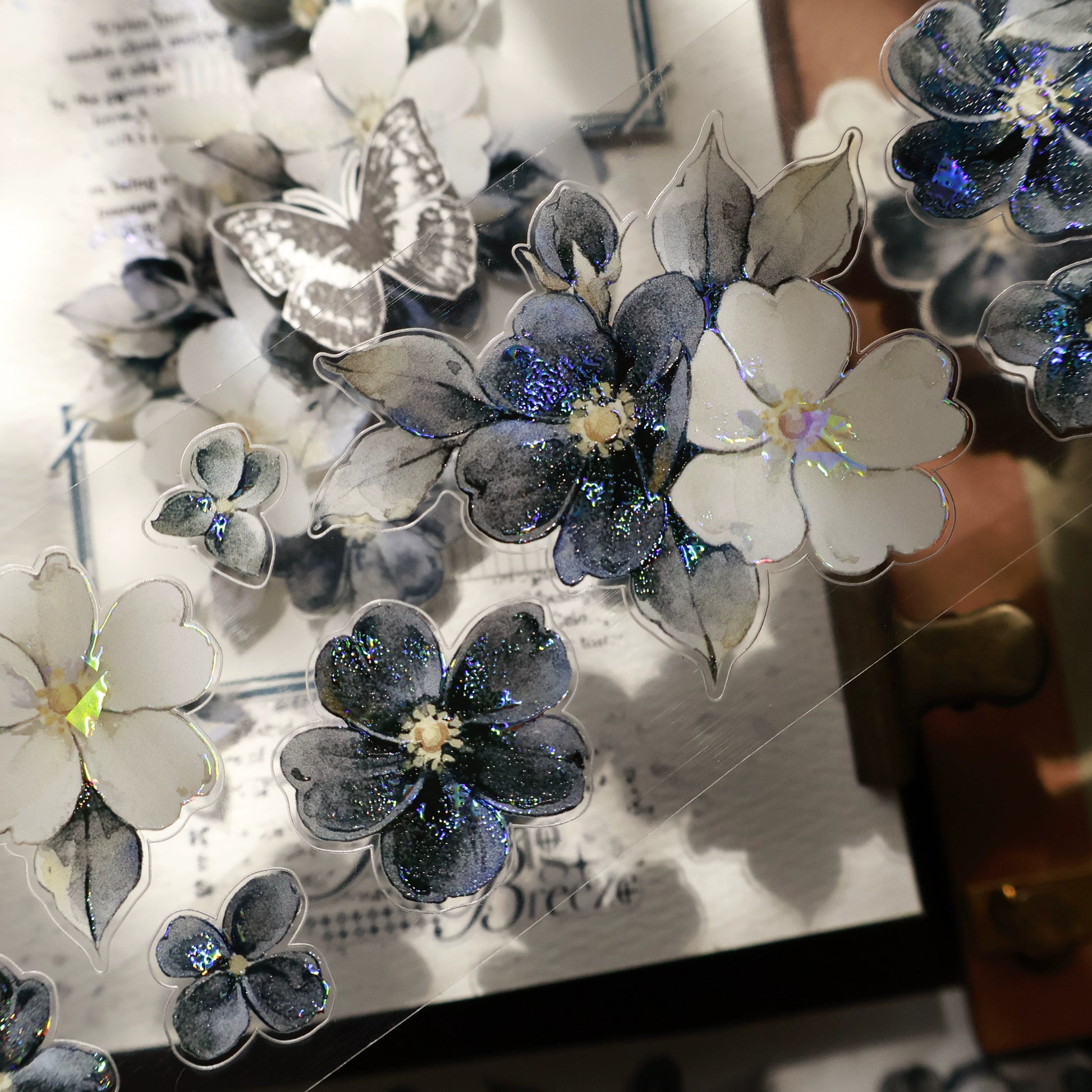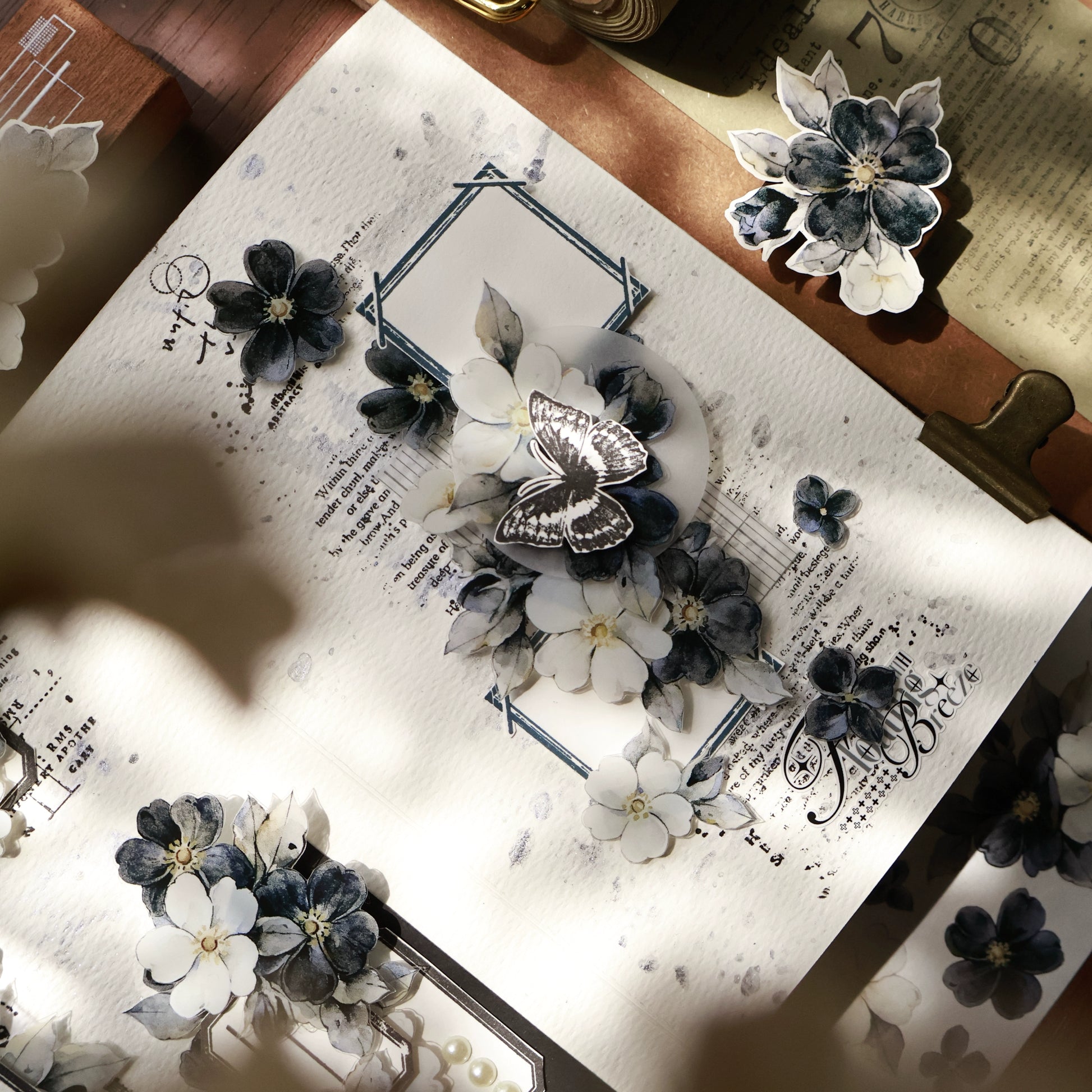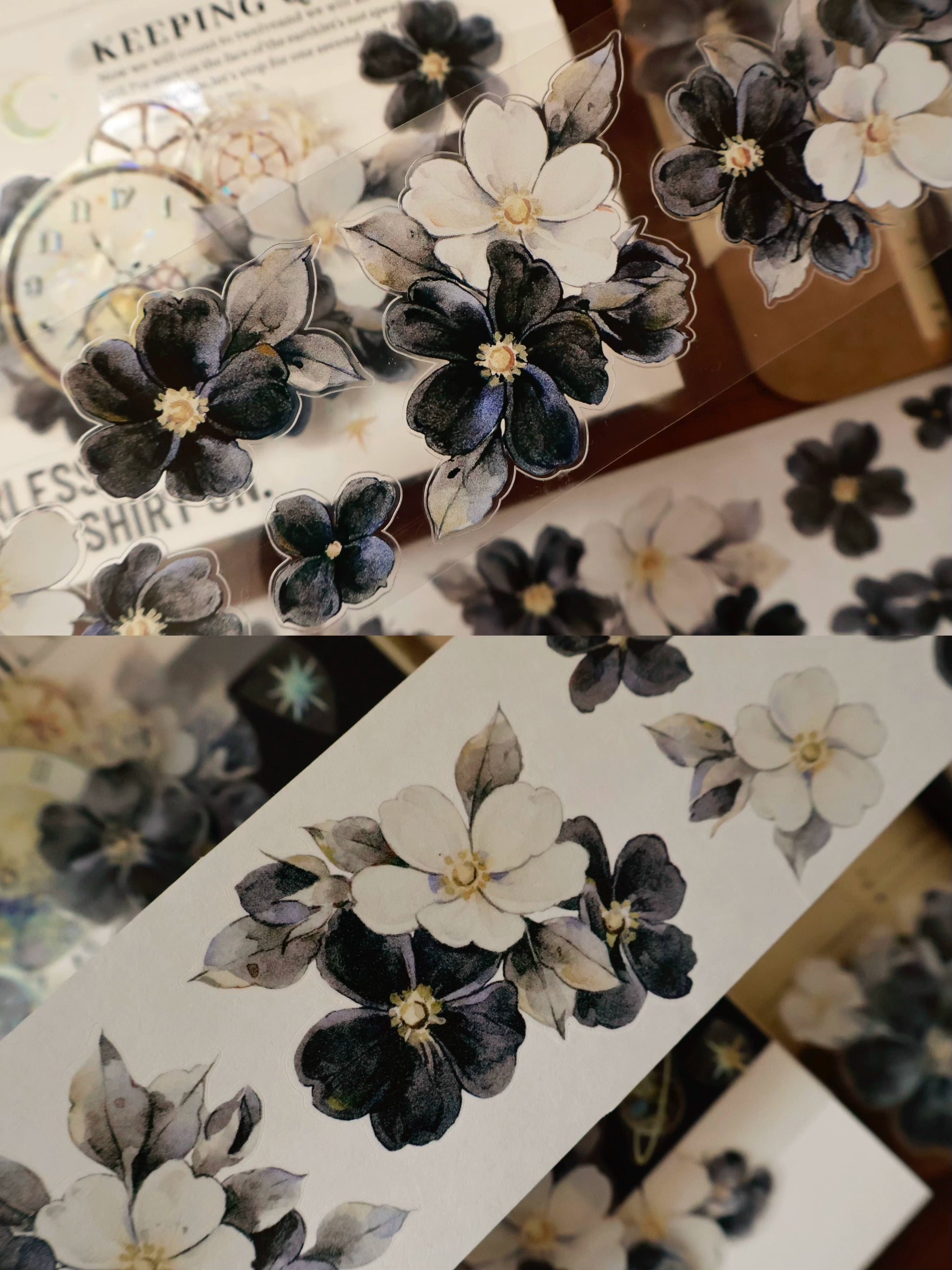 YiEr Vol15【Black and White Narrative Language】Orginal Design Pre-cut Washi/Pet Floral Tape Light Retro Landscaping Stickers