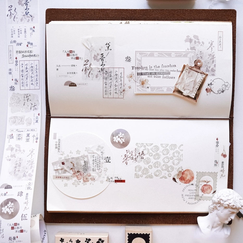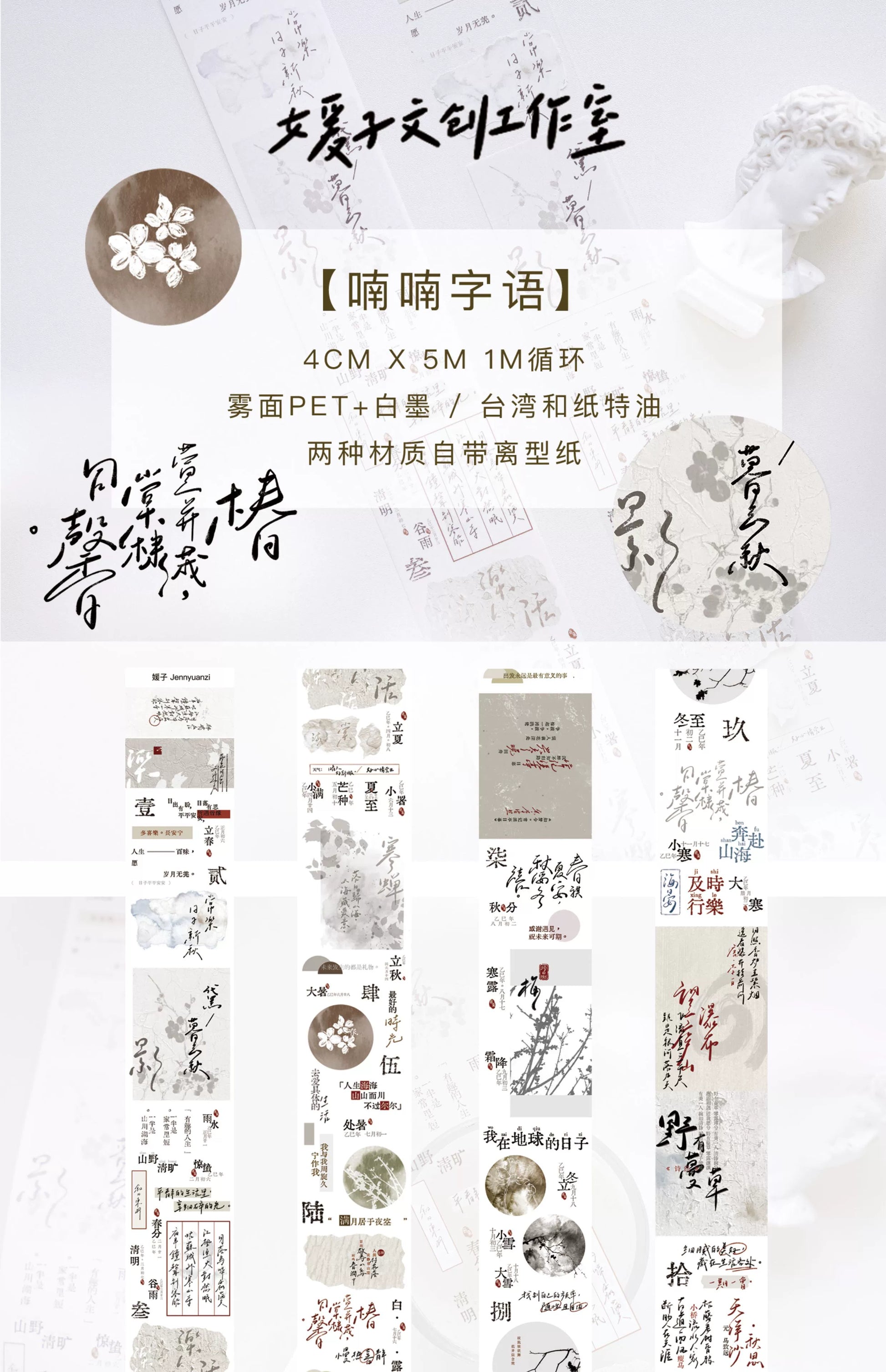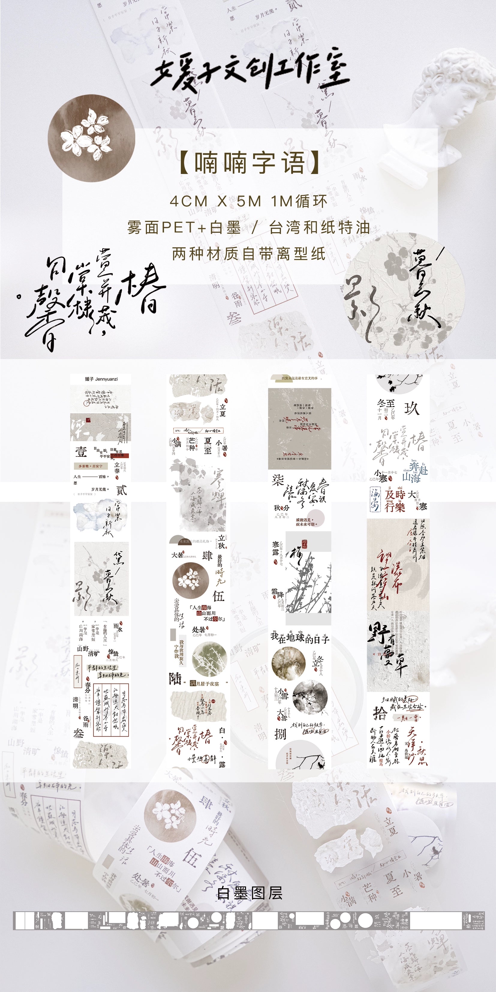 YuanZi Vol7【Murmuring Words】Orginal Design Washi/Pet Text Tape Light Retro Stickers,for Scrapbook Supplies,Scrapbook Tape Stickers,Junk Journal Supplies