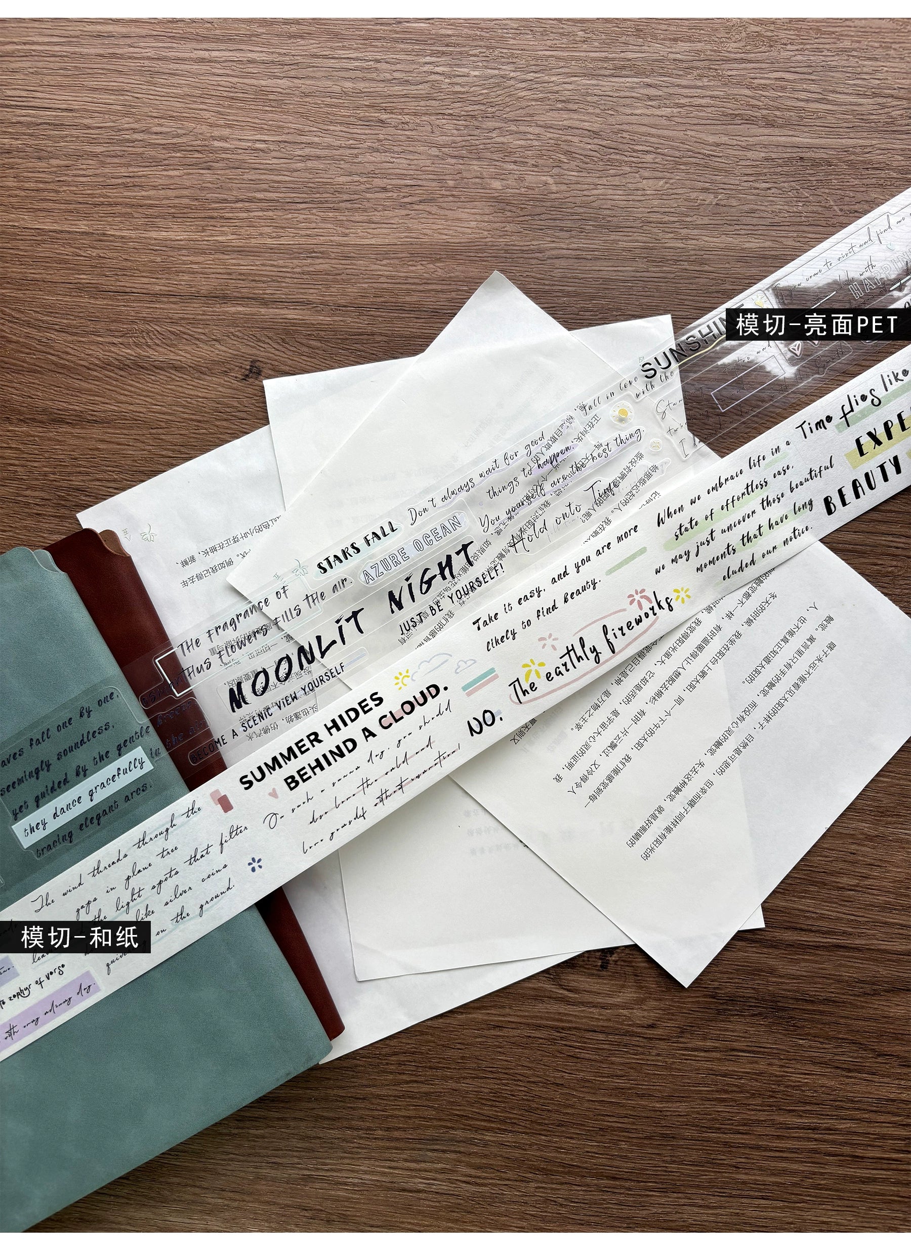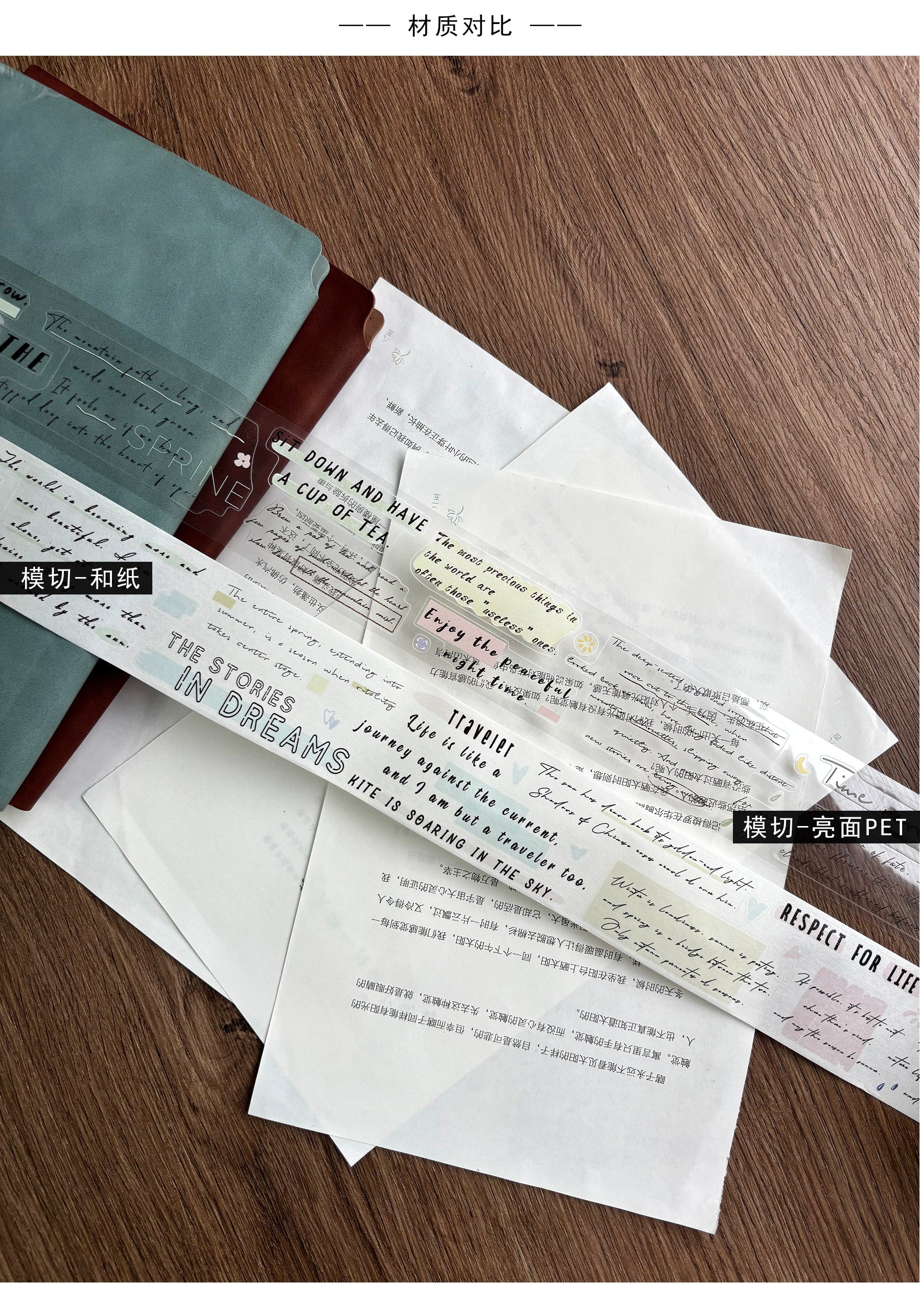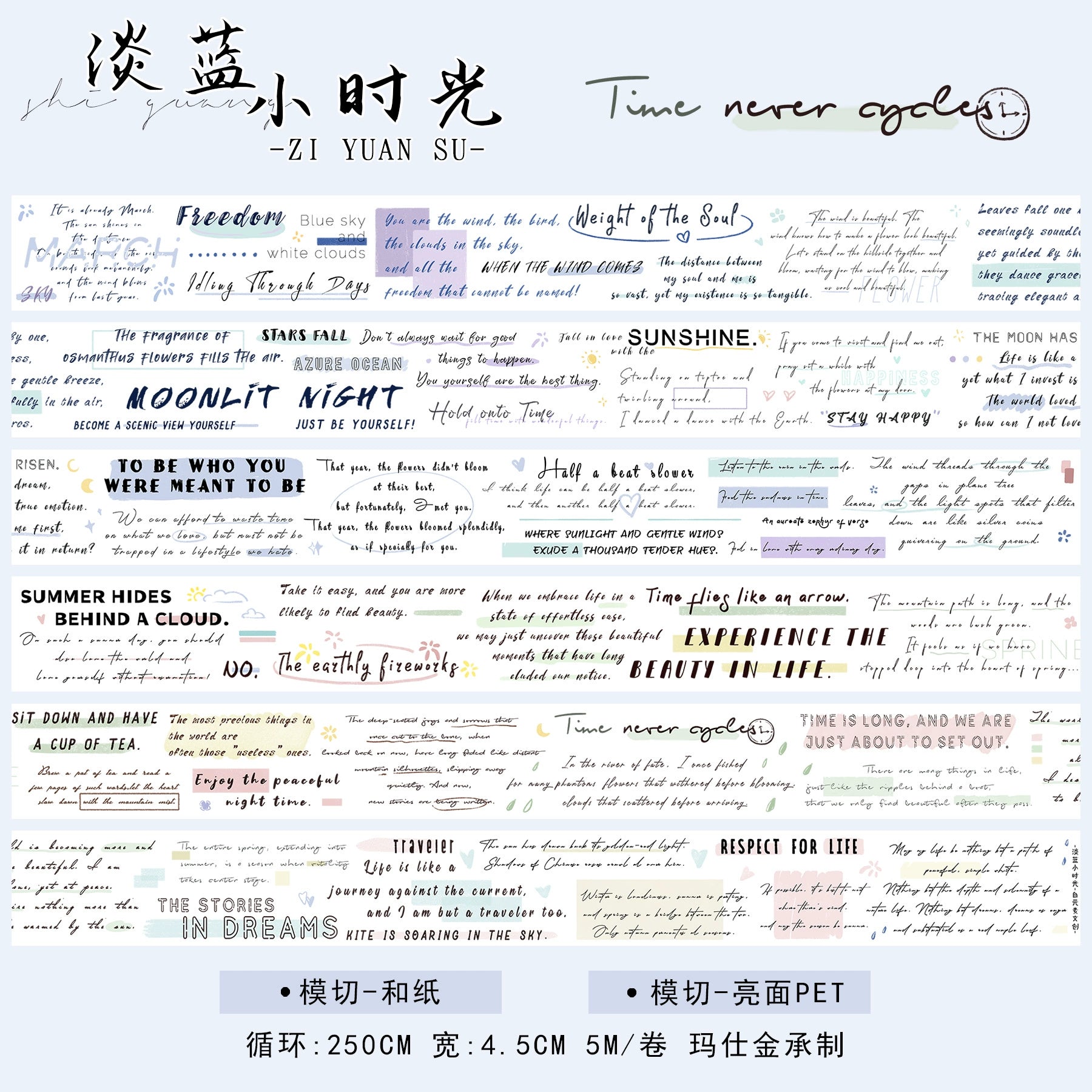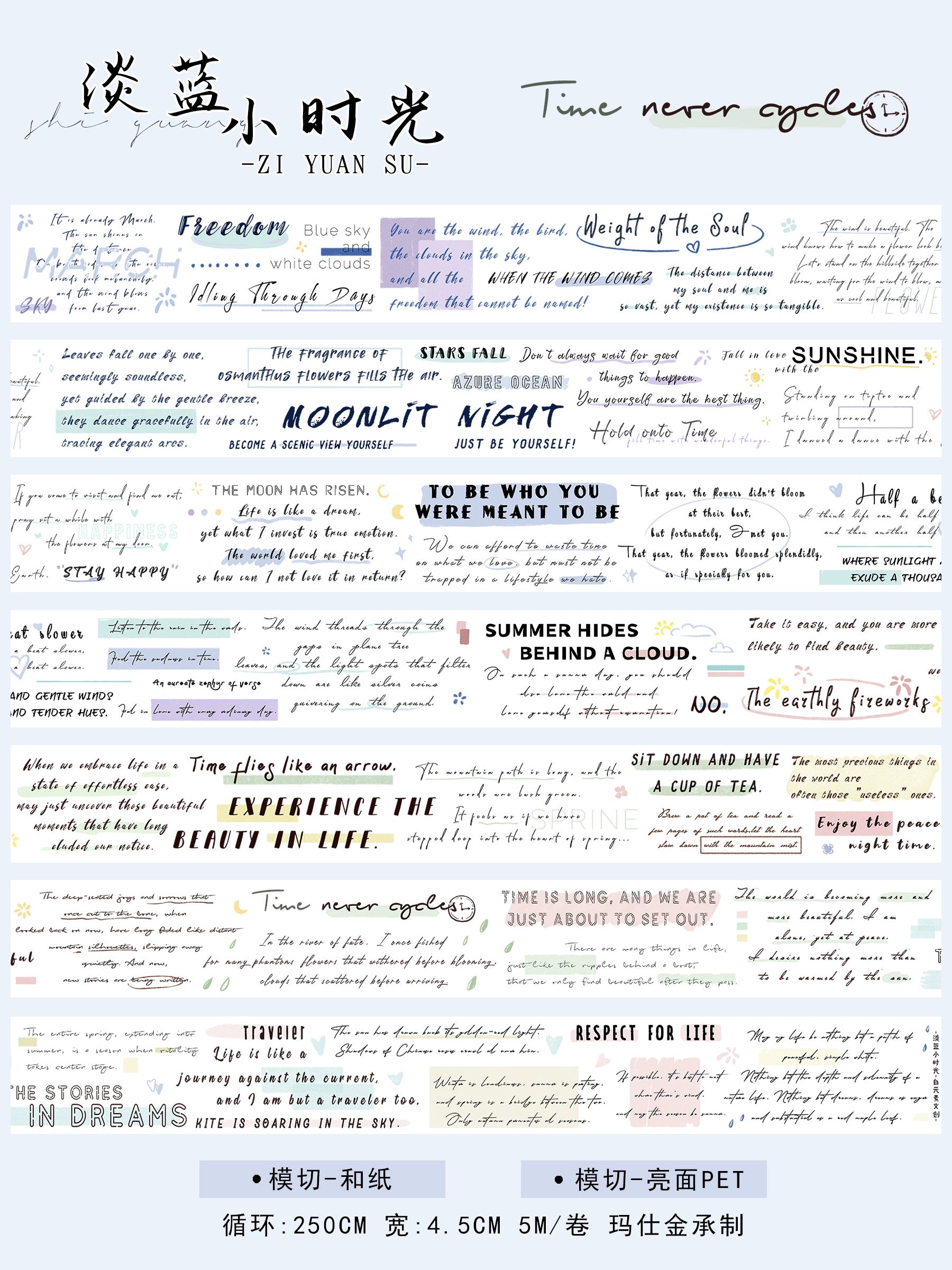 ZiYuanSu【Light Blue and Little Time】Background Text Pre-cut Washi/PET Tape,for Scrapbook Supplies,Scrapbook Tape Stickers,Junk Journal Supplies