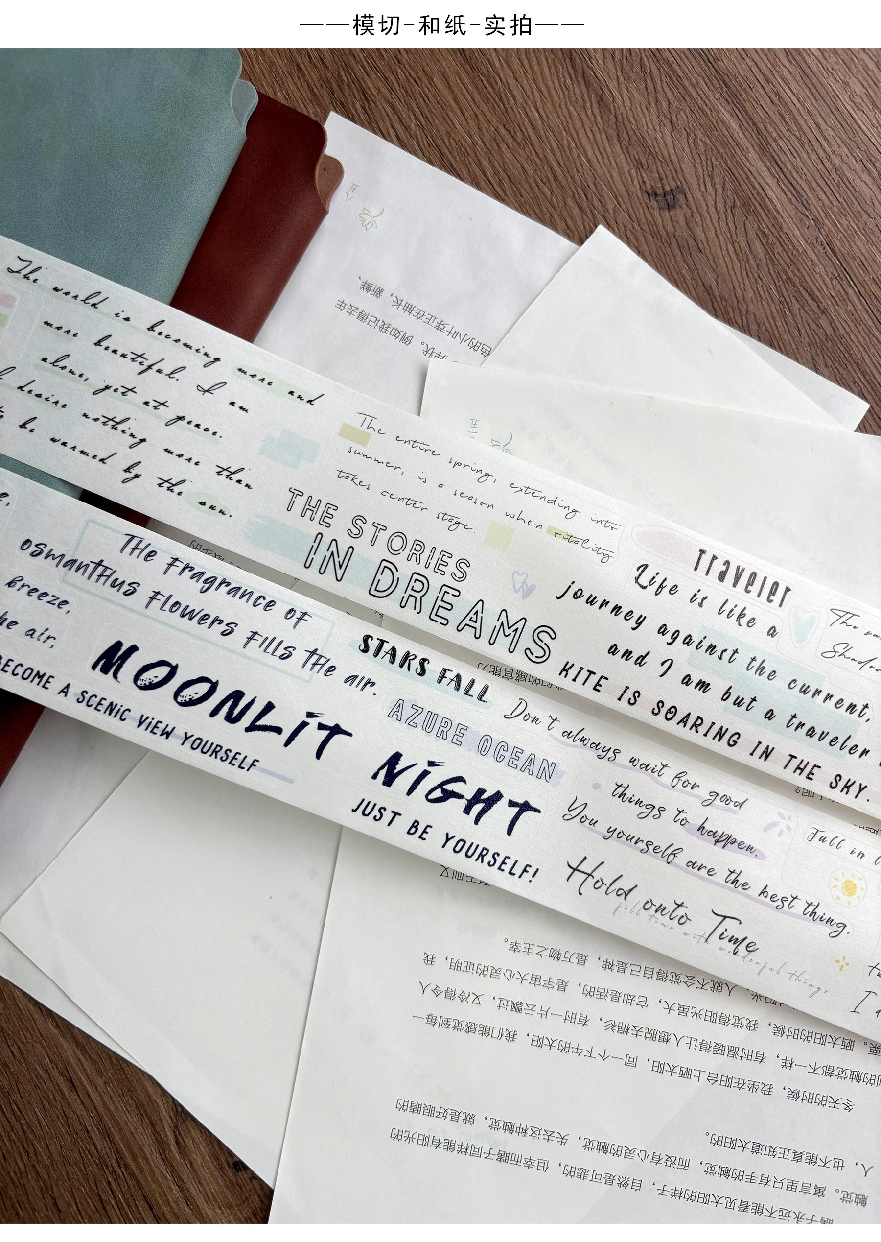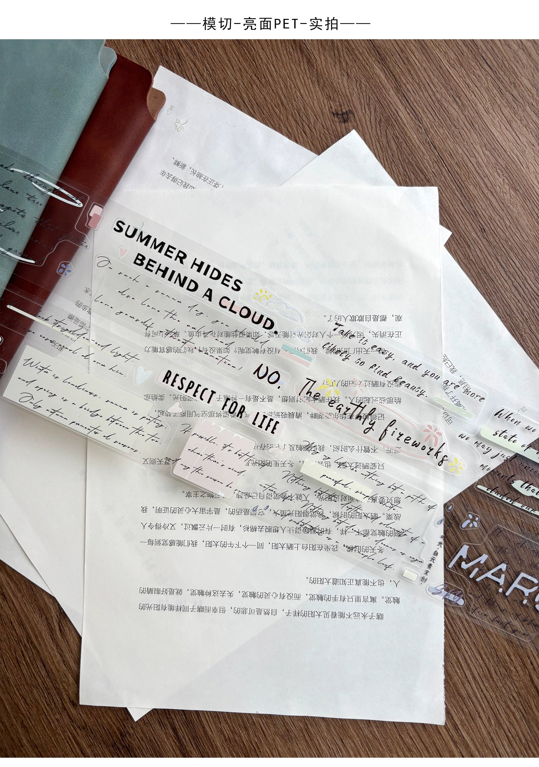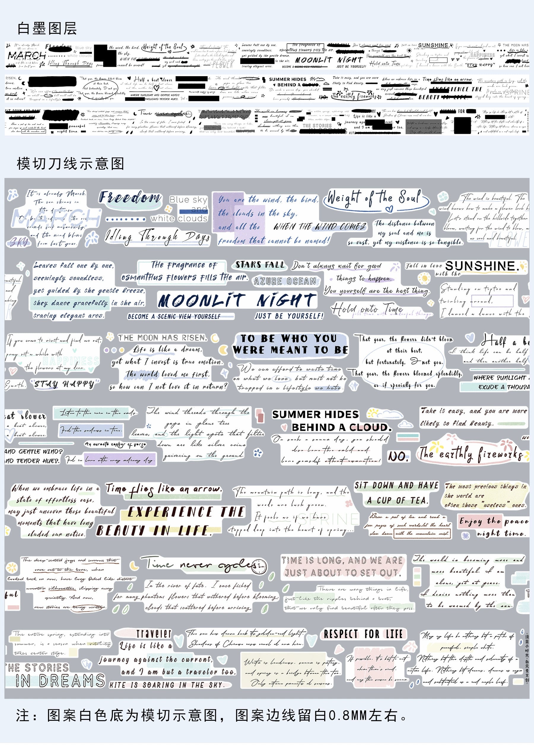 ZiYuanSu【Light Blue and Little Time】Background Text Pre-cut Washi/PET Tape,for Scrapbook Supplies,Scrapbook Tape Stickers,Junk Journal Supplies