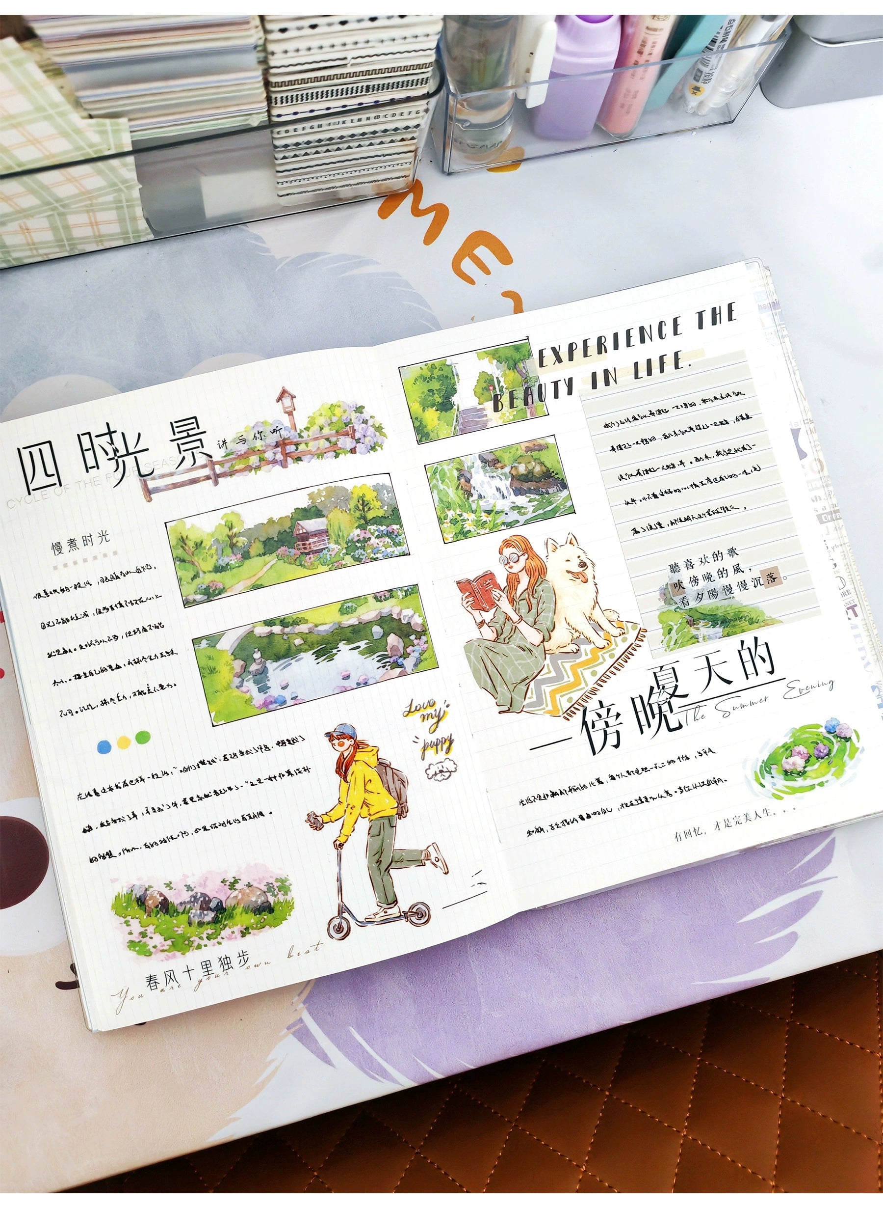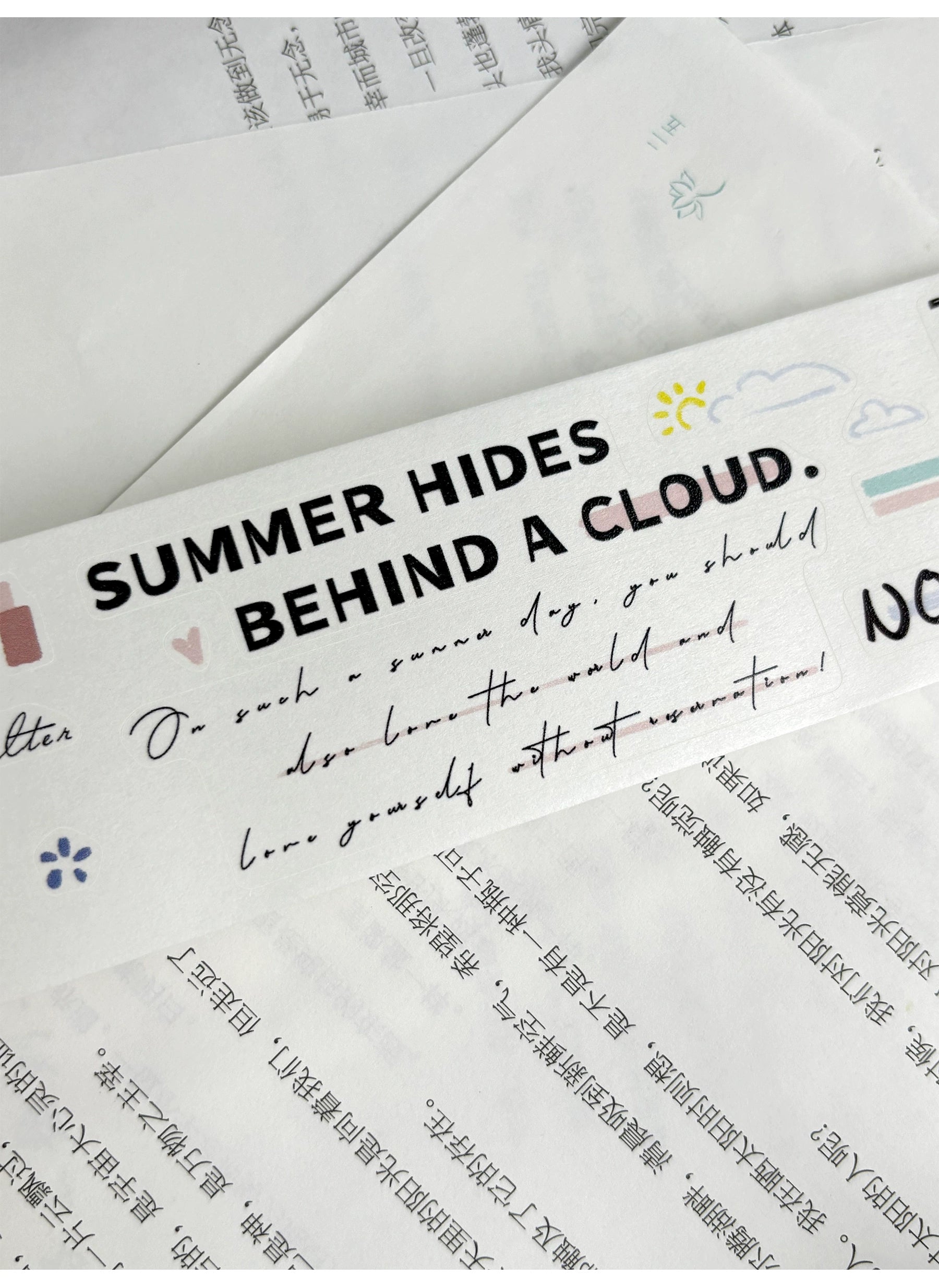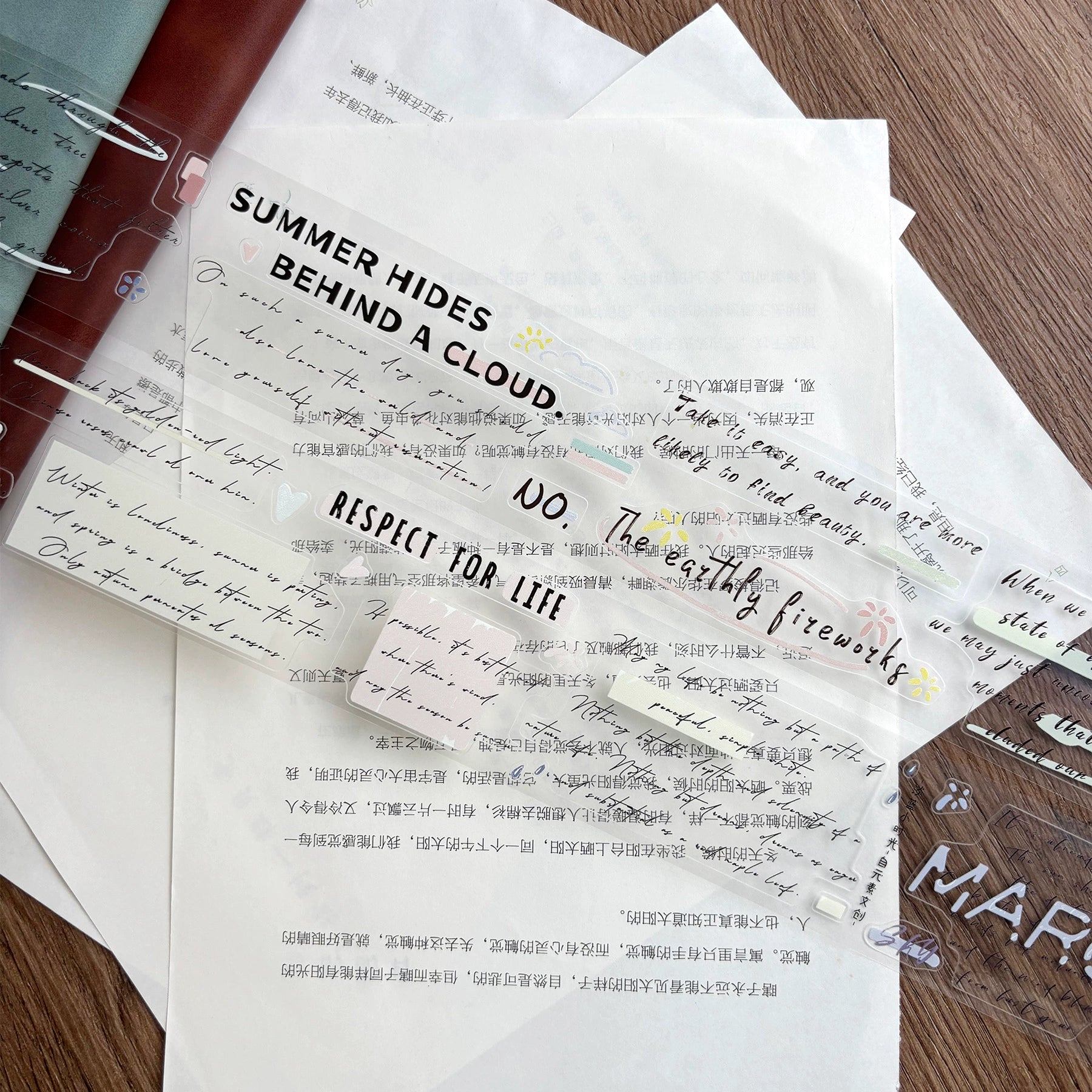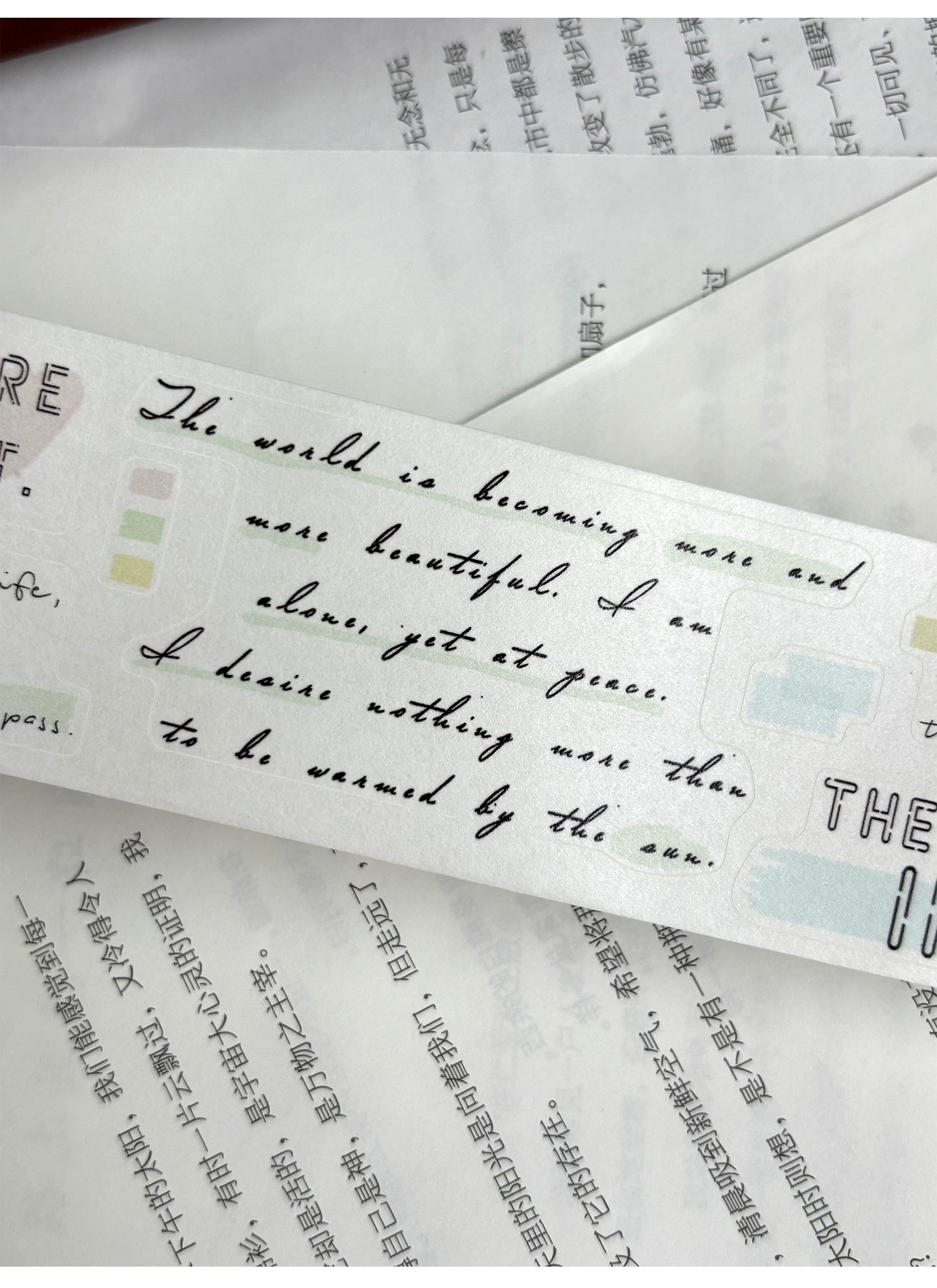 ZiYuanSu【Light Blue and Little Time】Background Text Pre-cut Washi/PET Tape,for Scrapbook Supplies,Scrapbook Tape Stickers,Junk Journal Supplies